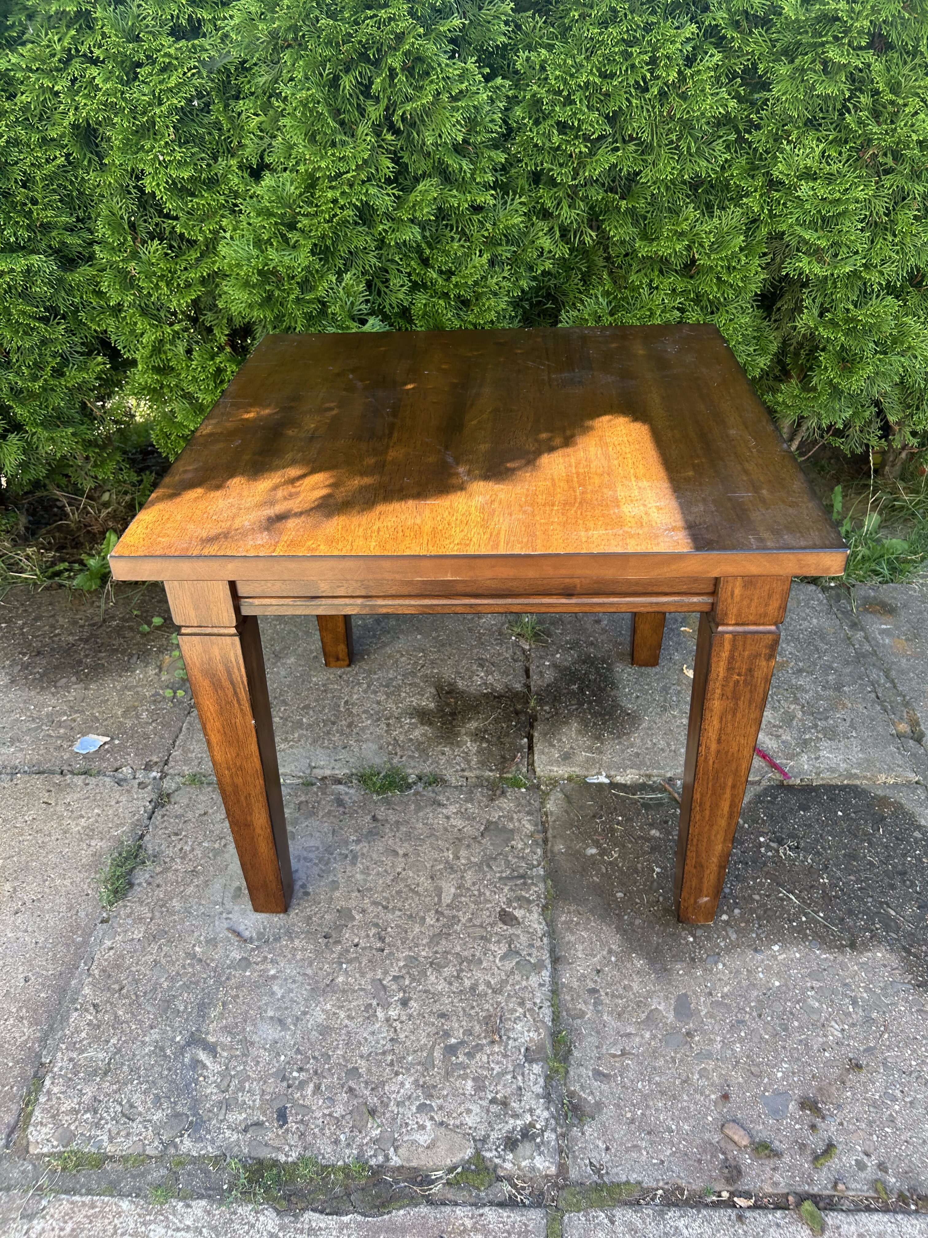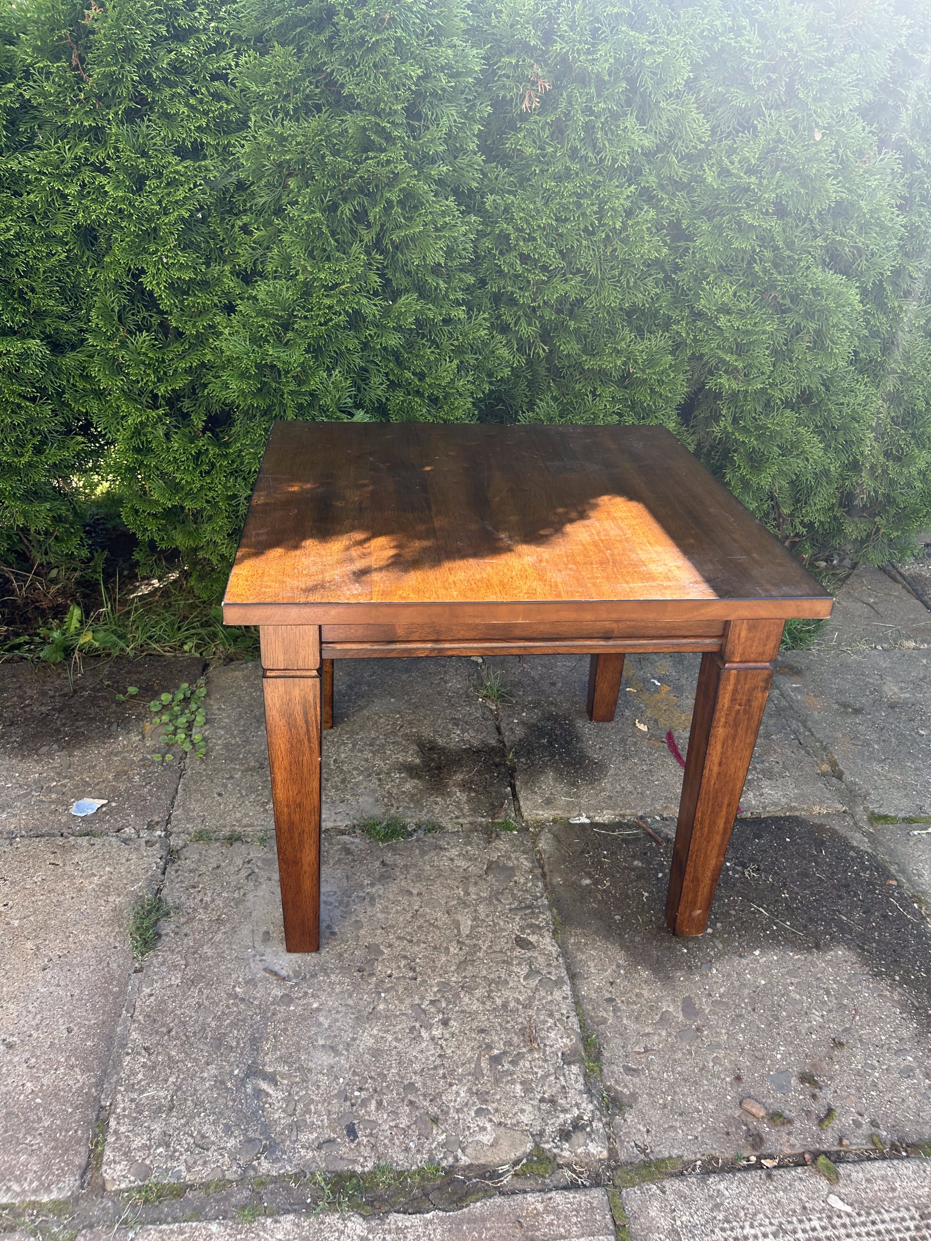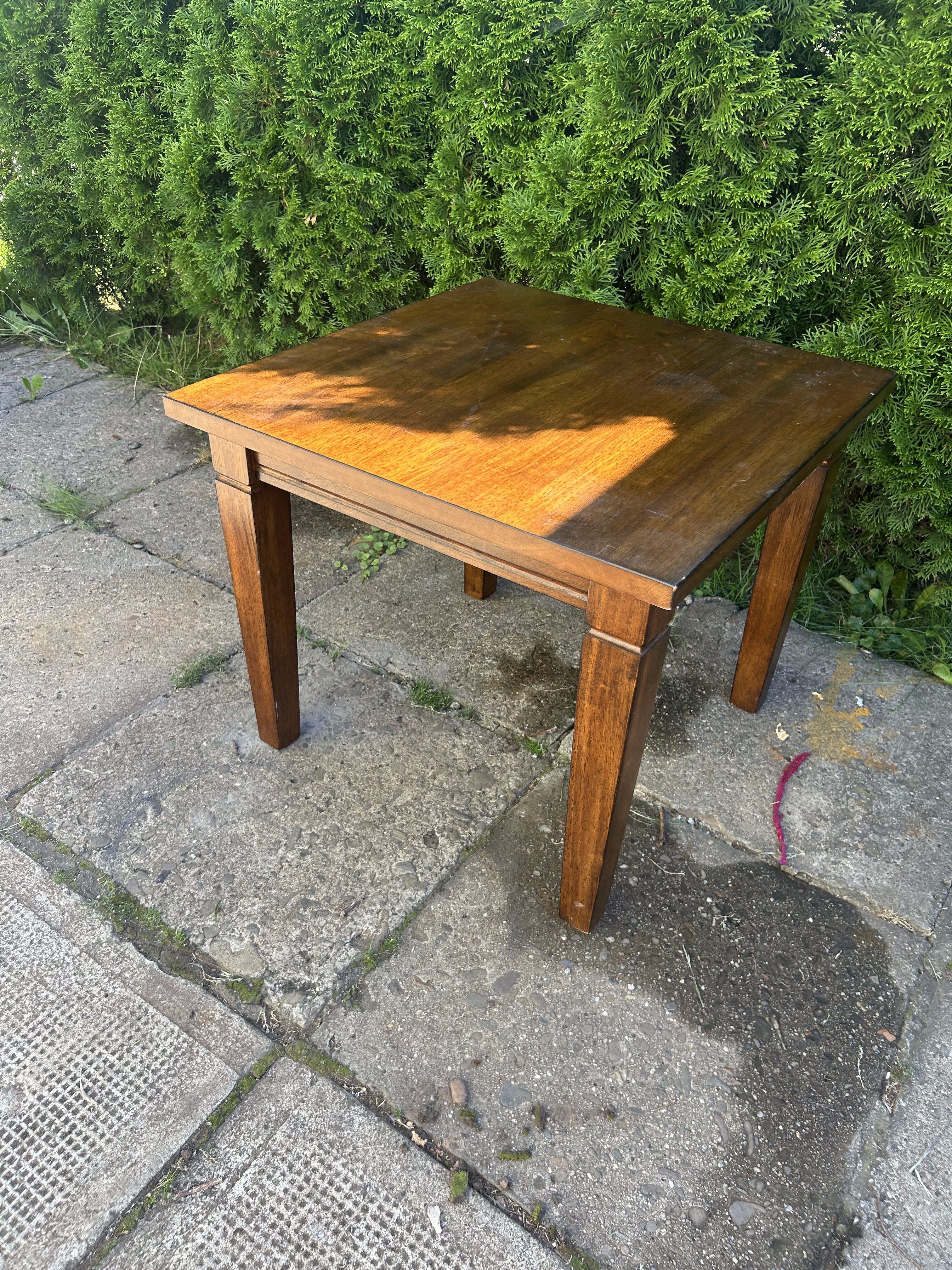 Solidny kwadratowy stolik wykonany z drewna, o prostej, klasycznej formie. Uniwersalny design sprawia, że doskonale wpasuje się w różne aranżacje wnętrz – od tradycyjnych po nowoczesne. Może pełnić funkcję stolika kawowego, pomocniczego przy sofie lub praktycznego mebla do sypialni. Naturalne usłojenie drewna nadaje mu ciepły, ponadczasowy charakter.