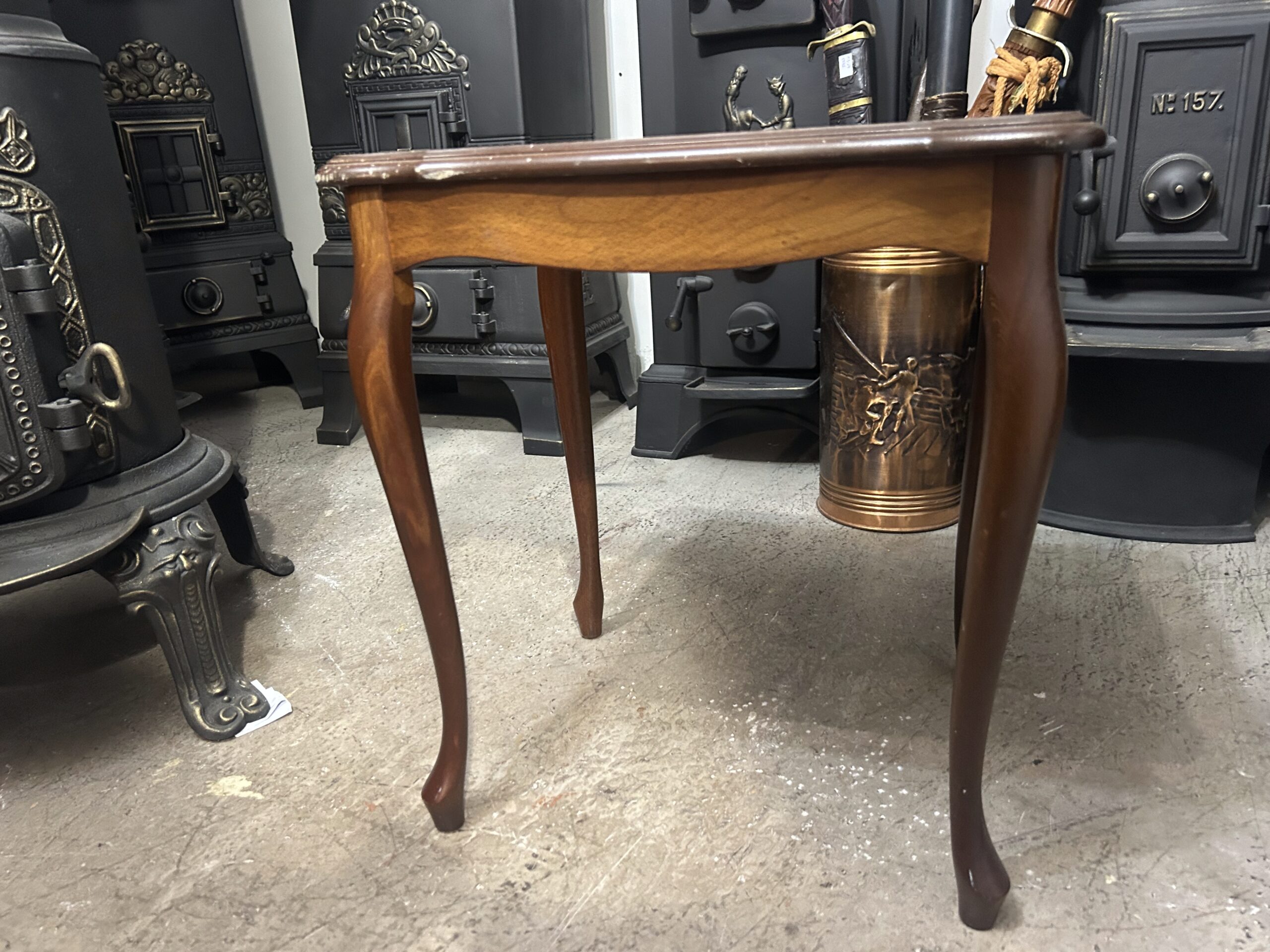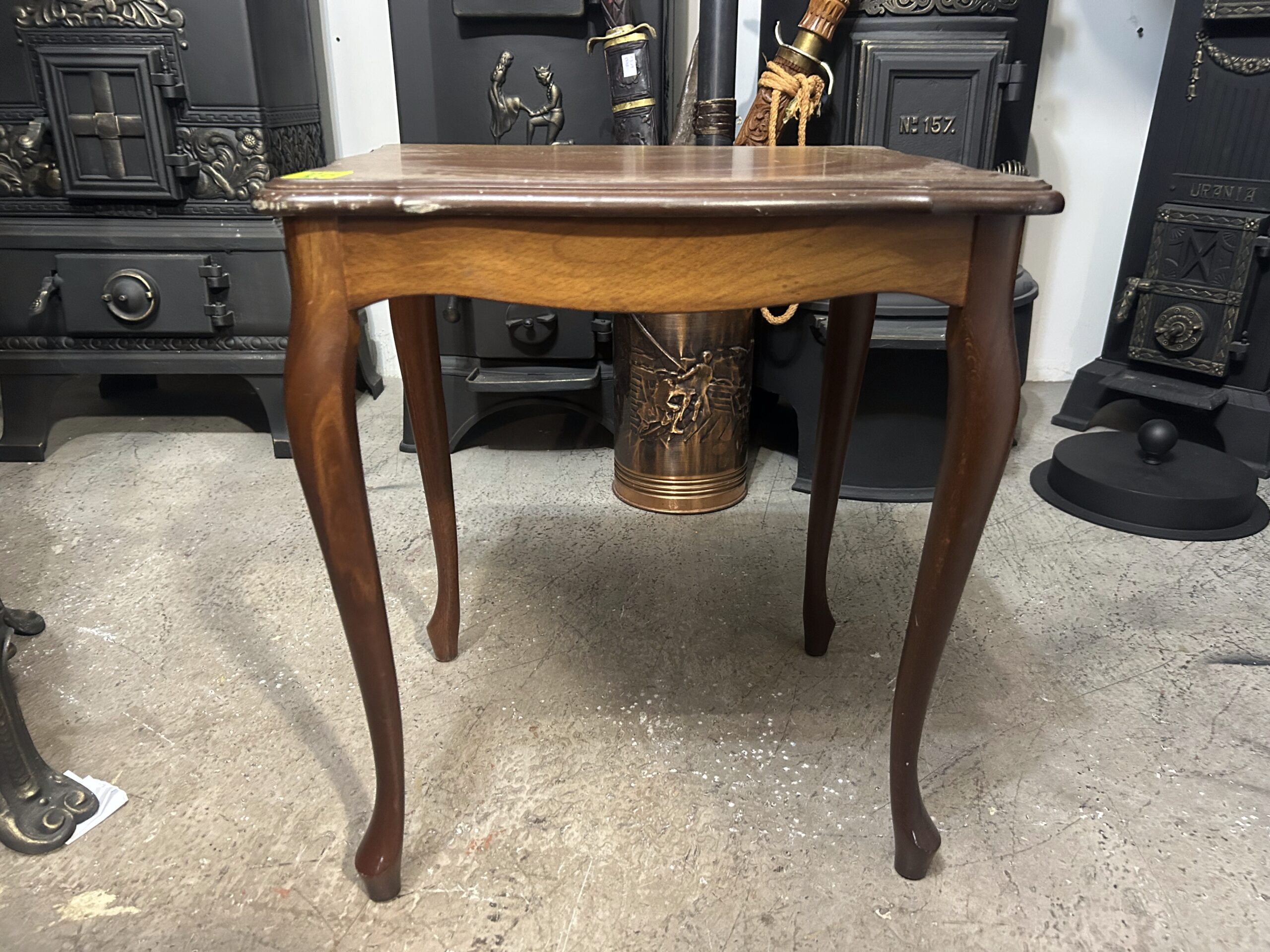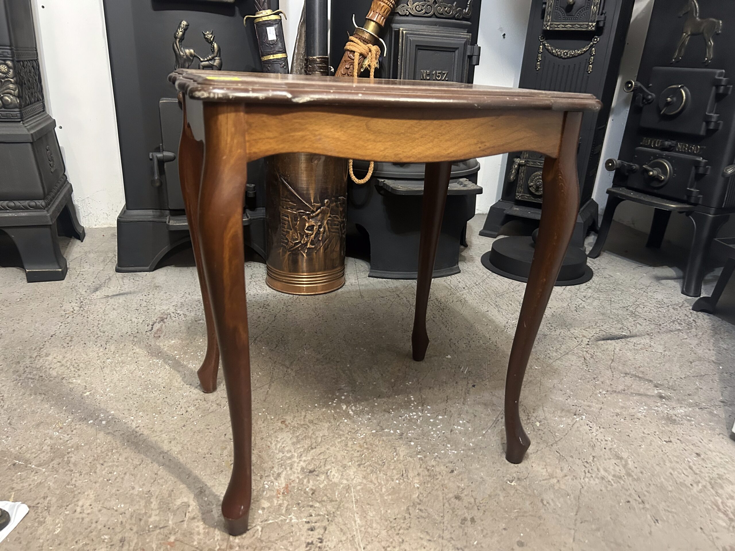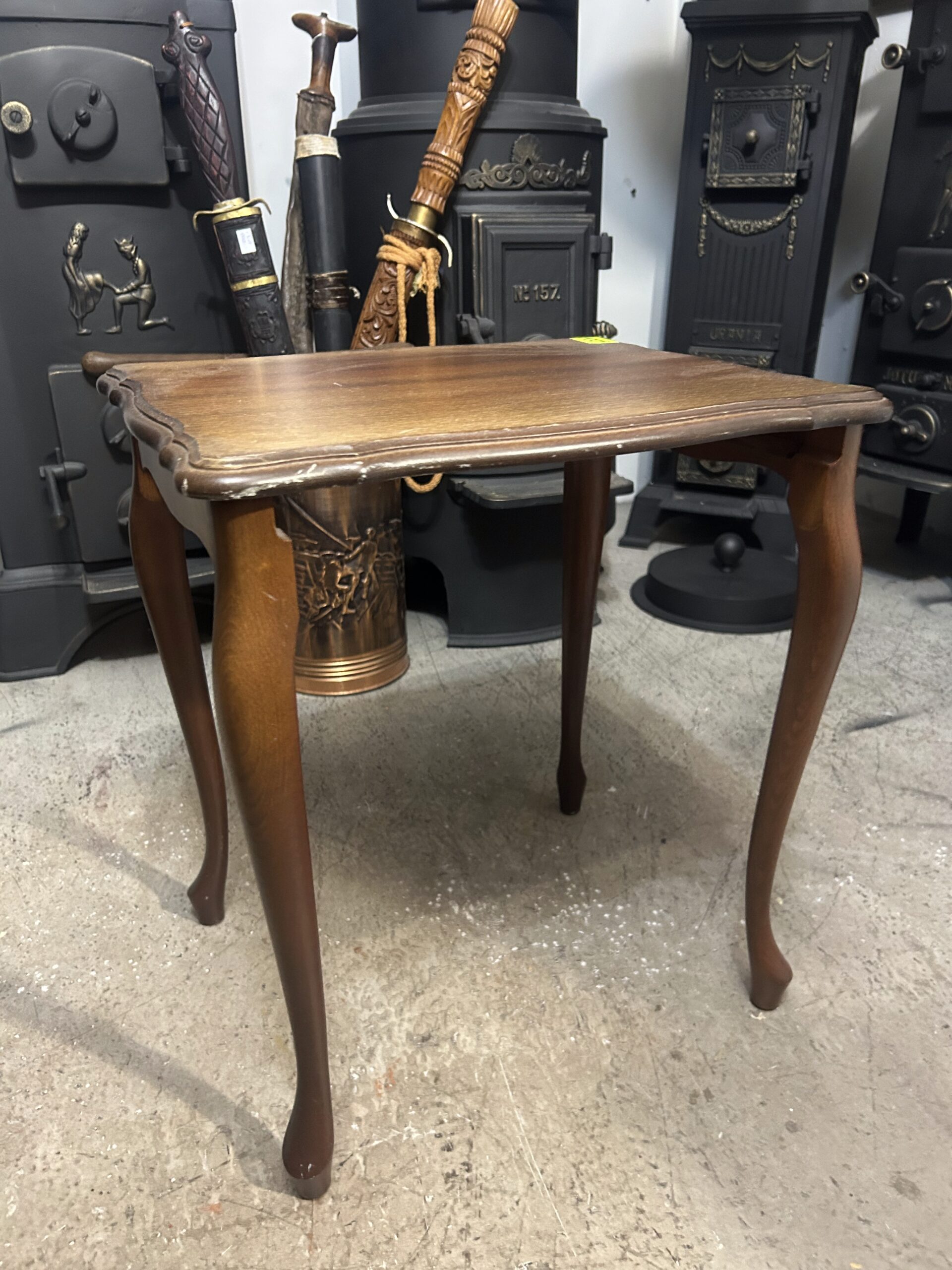 Elegancki drewniany stolik kawowy w stylu rococo, który zachwyca swoją finezyjną formą i klasycznym wykończeniem. Idealny zarówno jako funkcjonalny mebel, jak i ozdobny element wnętrza.