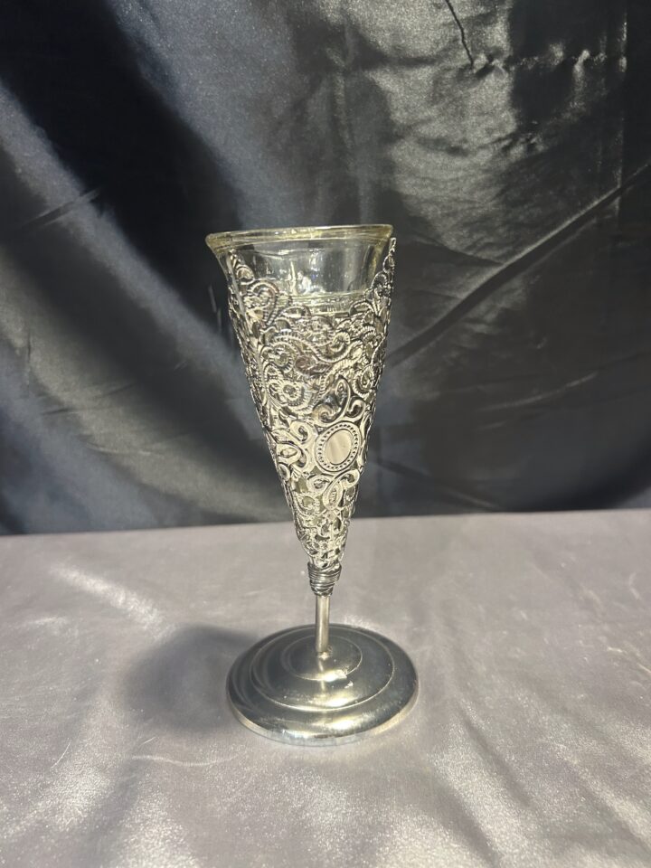 Zdobiony Kielich z Ażurowym Metalem i Grubym Szkłem – Może Służyć jako Świecznik