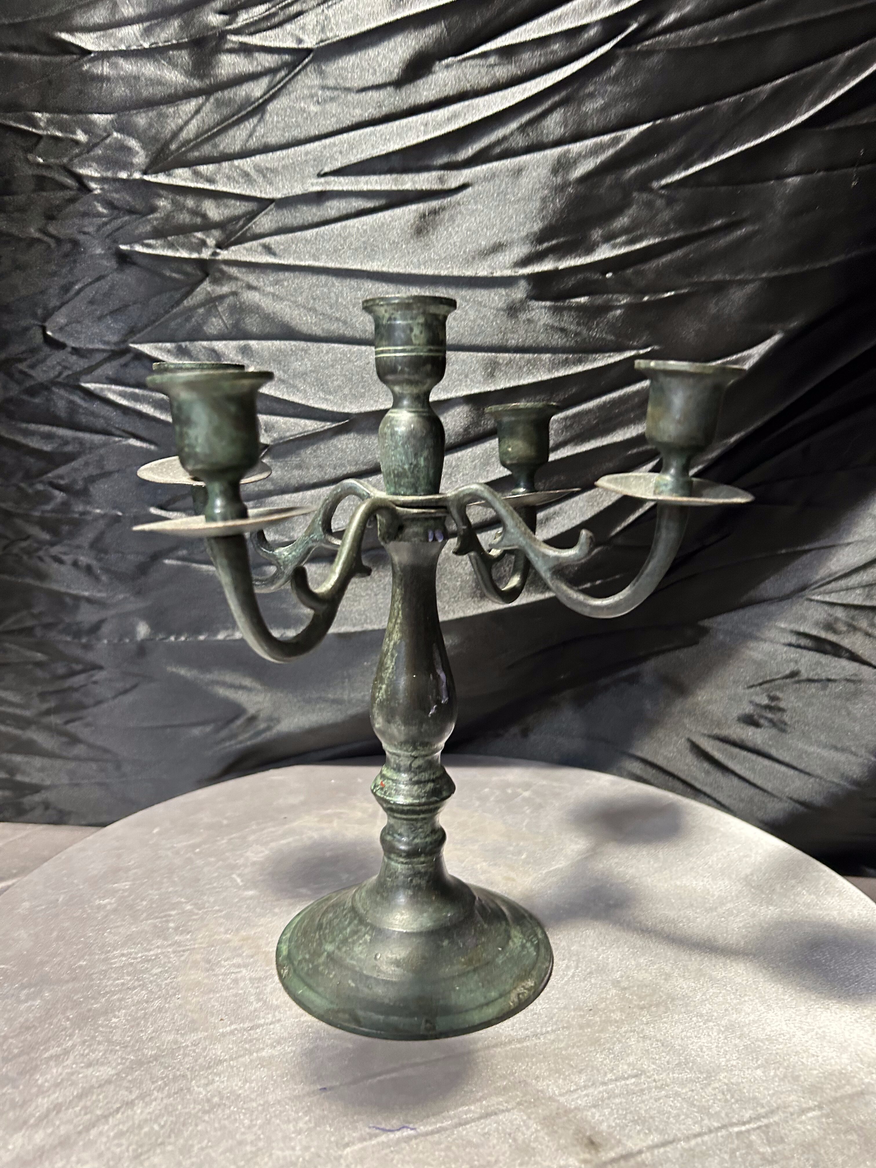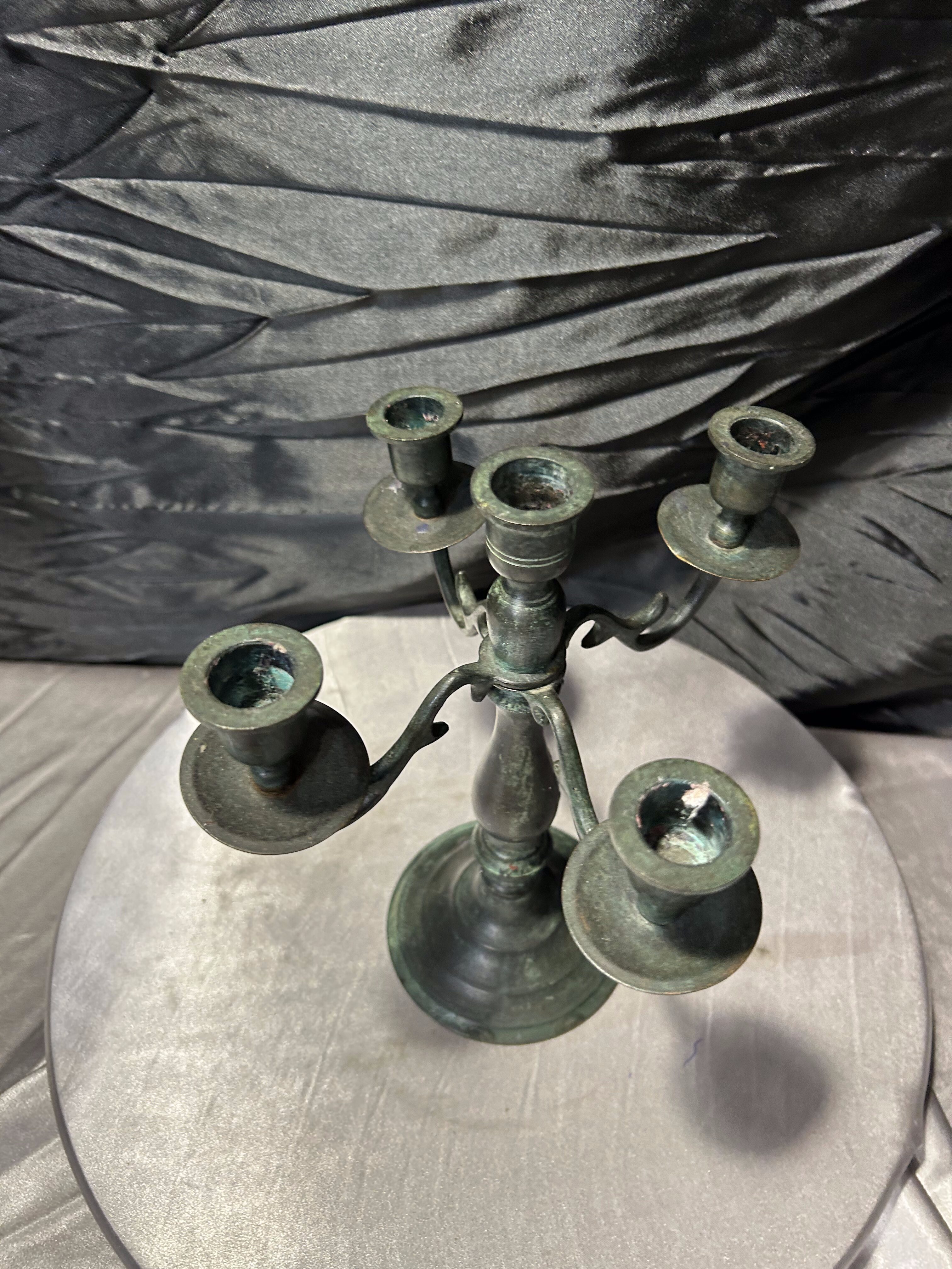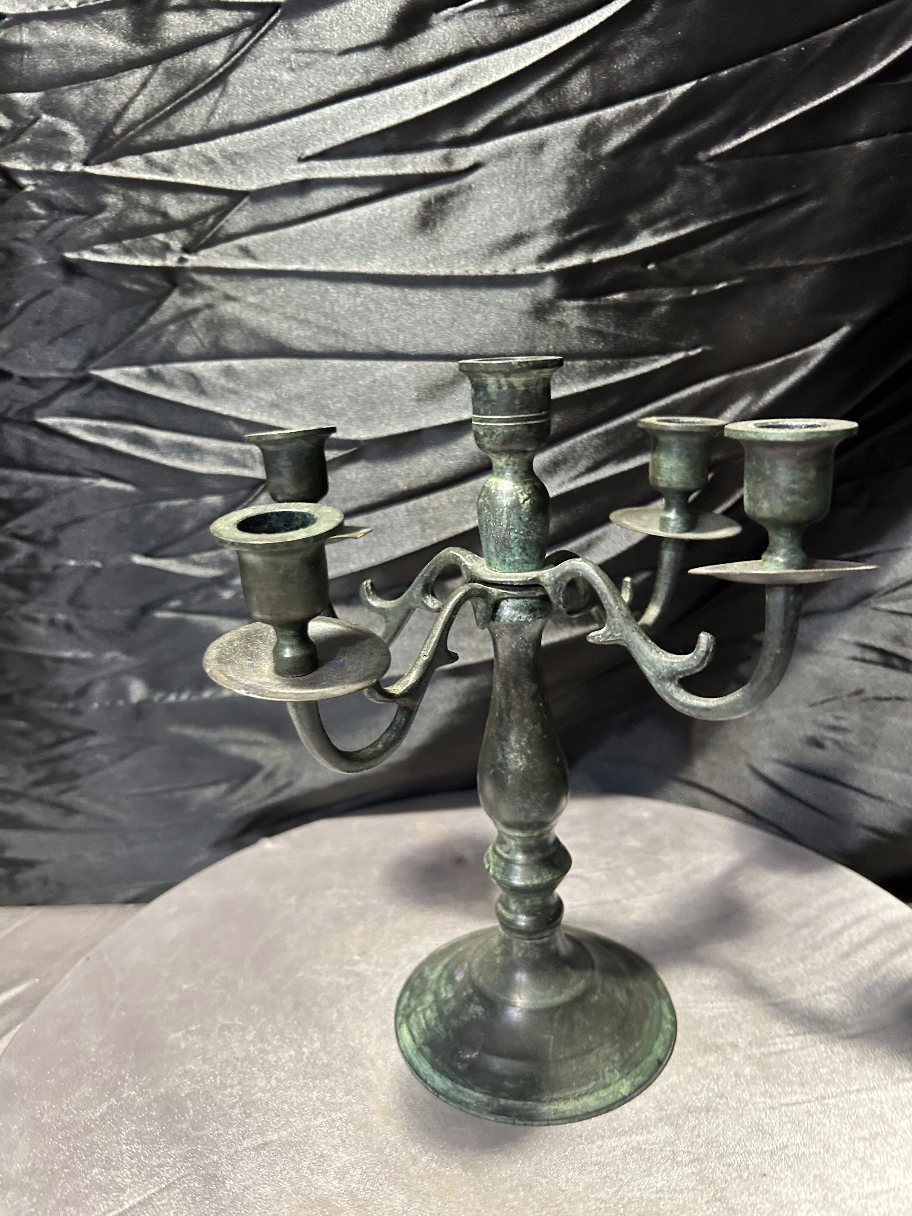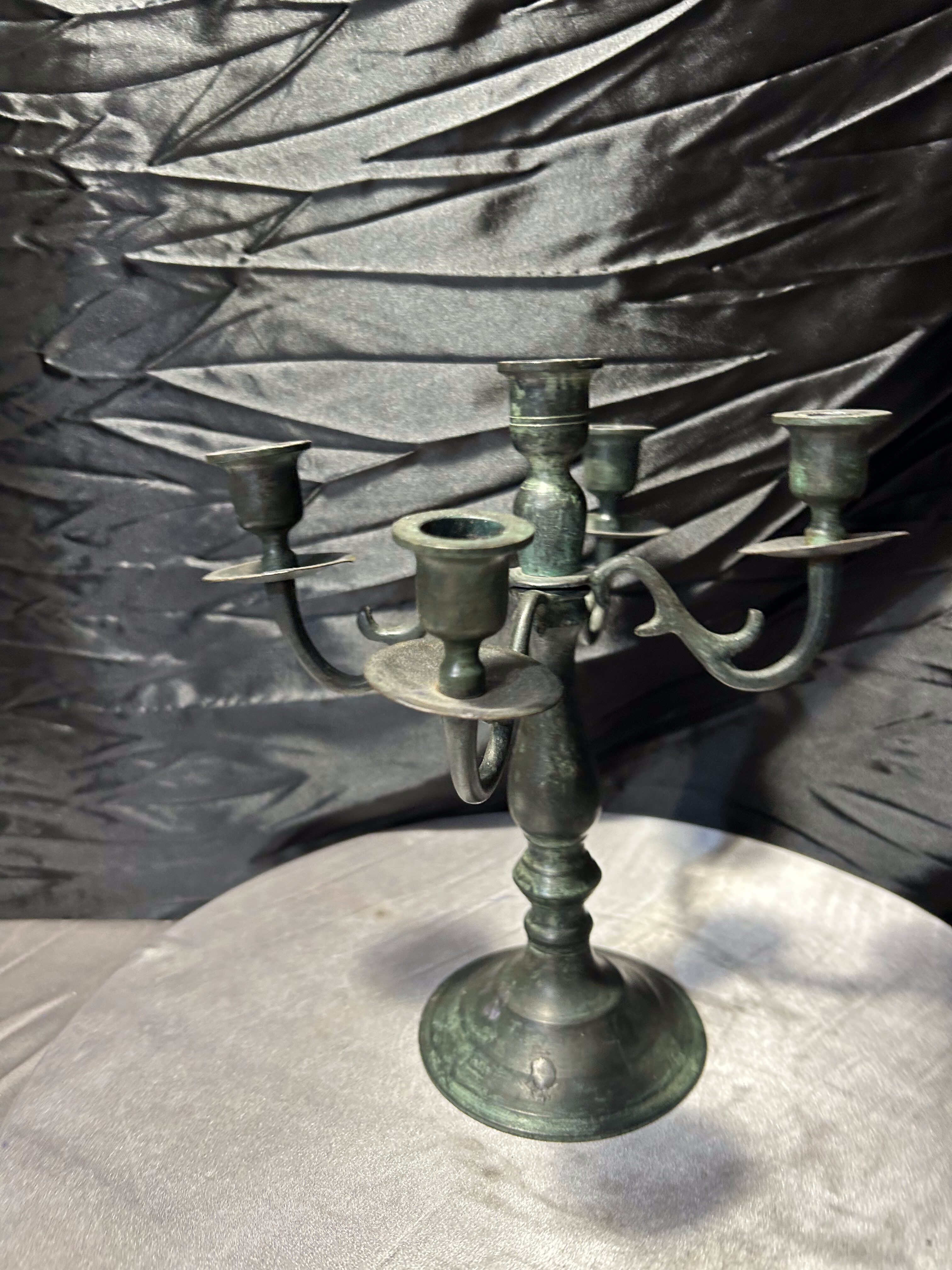 - Świecznik metalowy na 5 świec – patynowany kandelabr vintage
