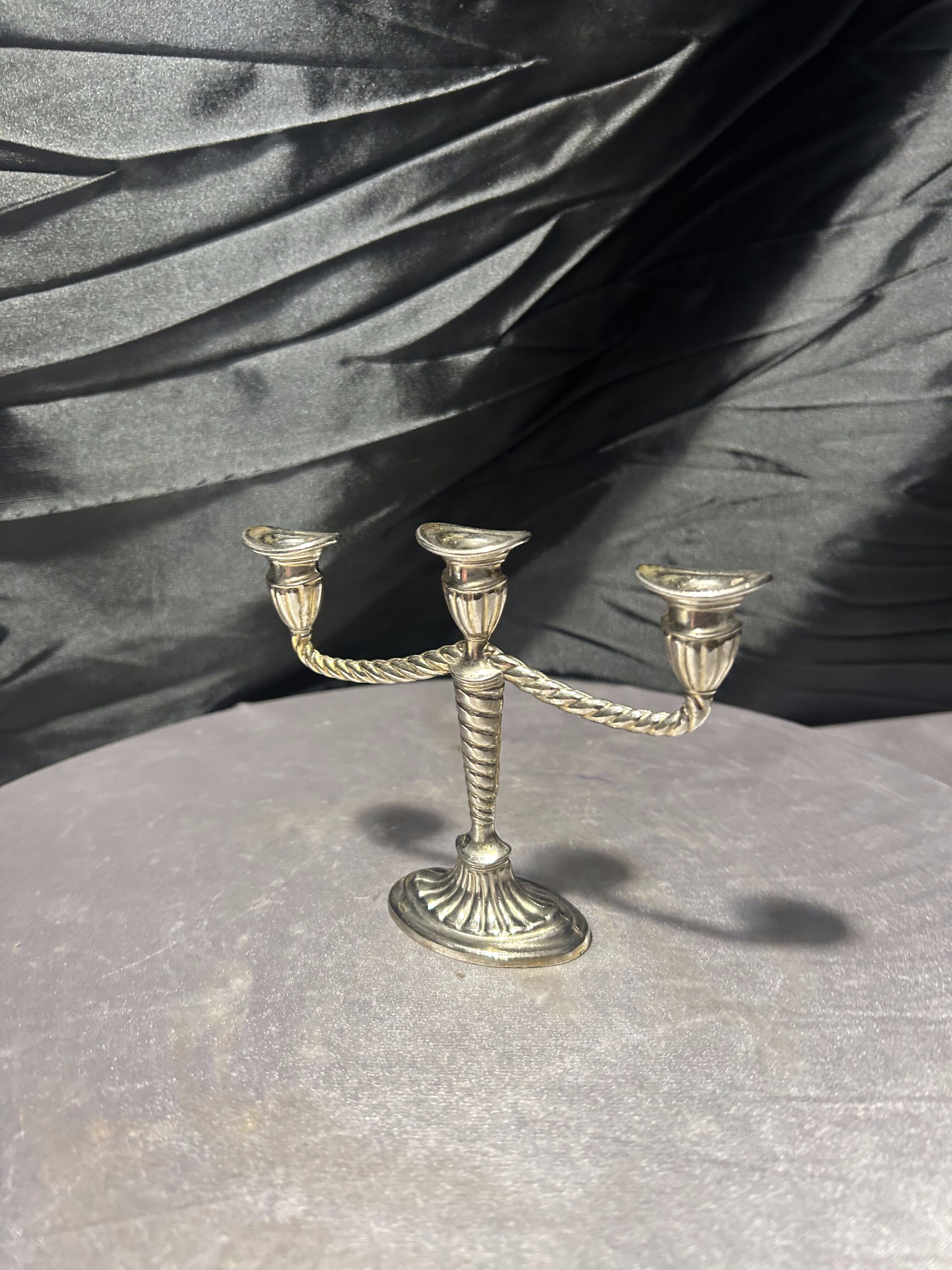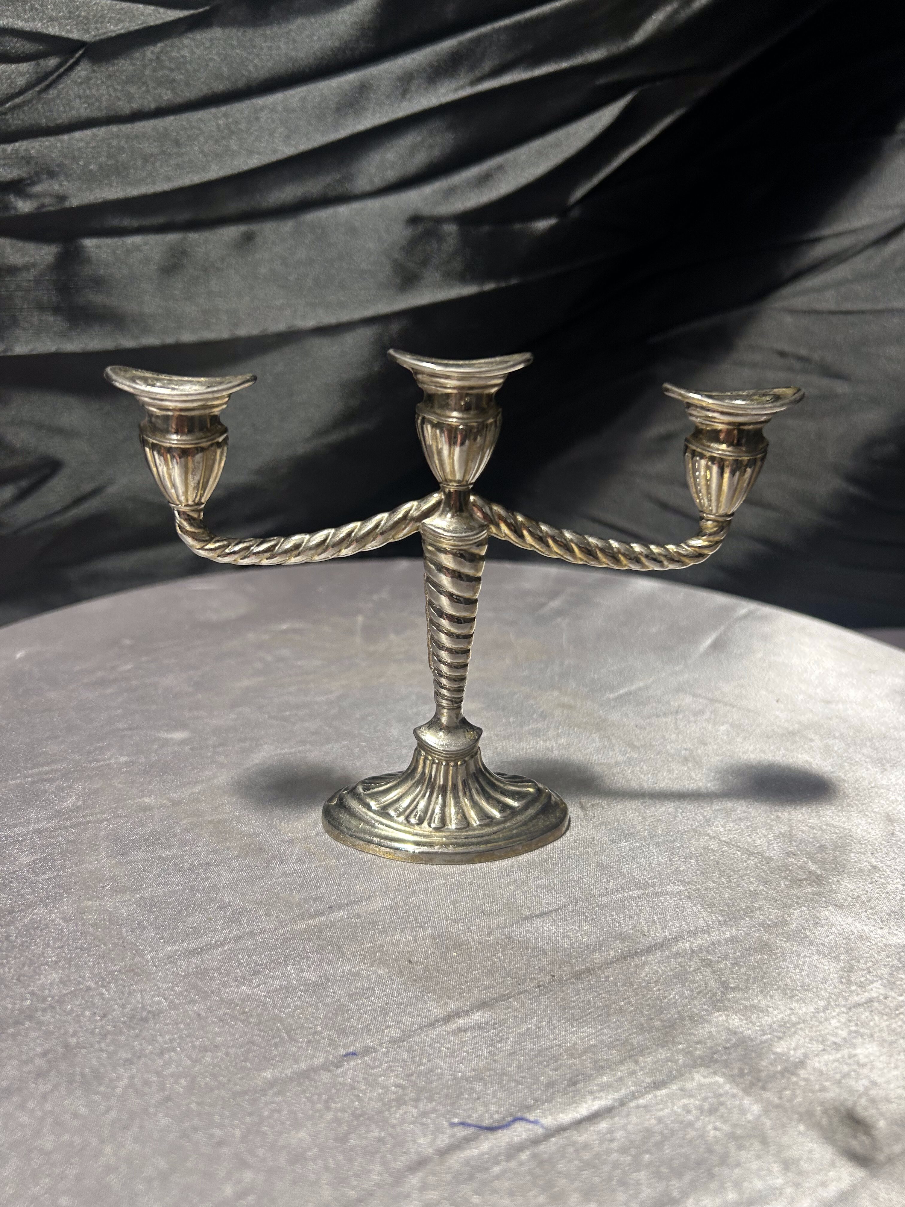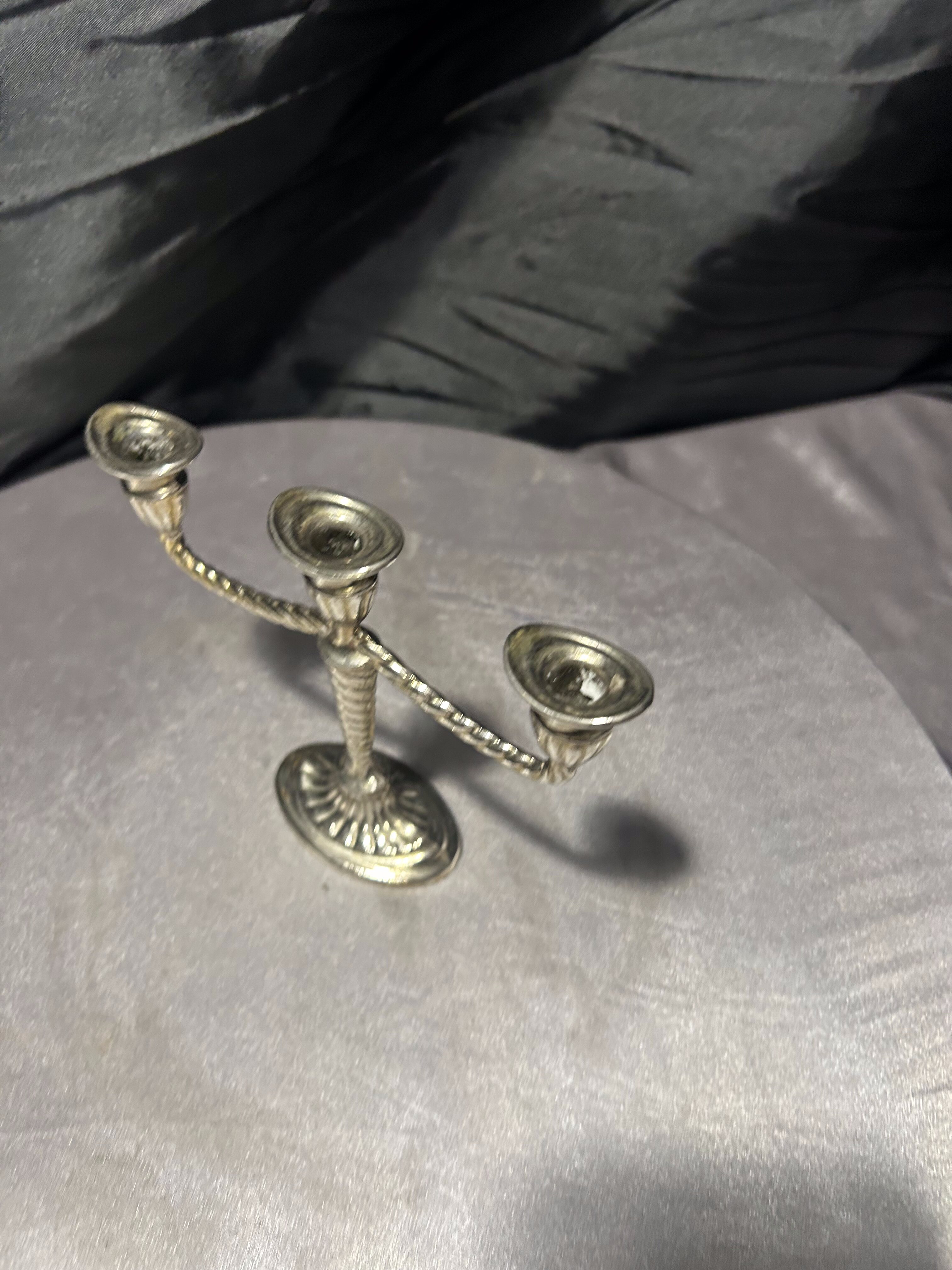- Świecznik na trzy świece – srebrny kolor – Made in England – styl klasyczny