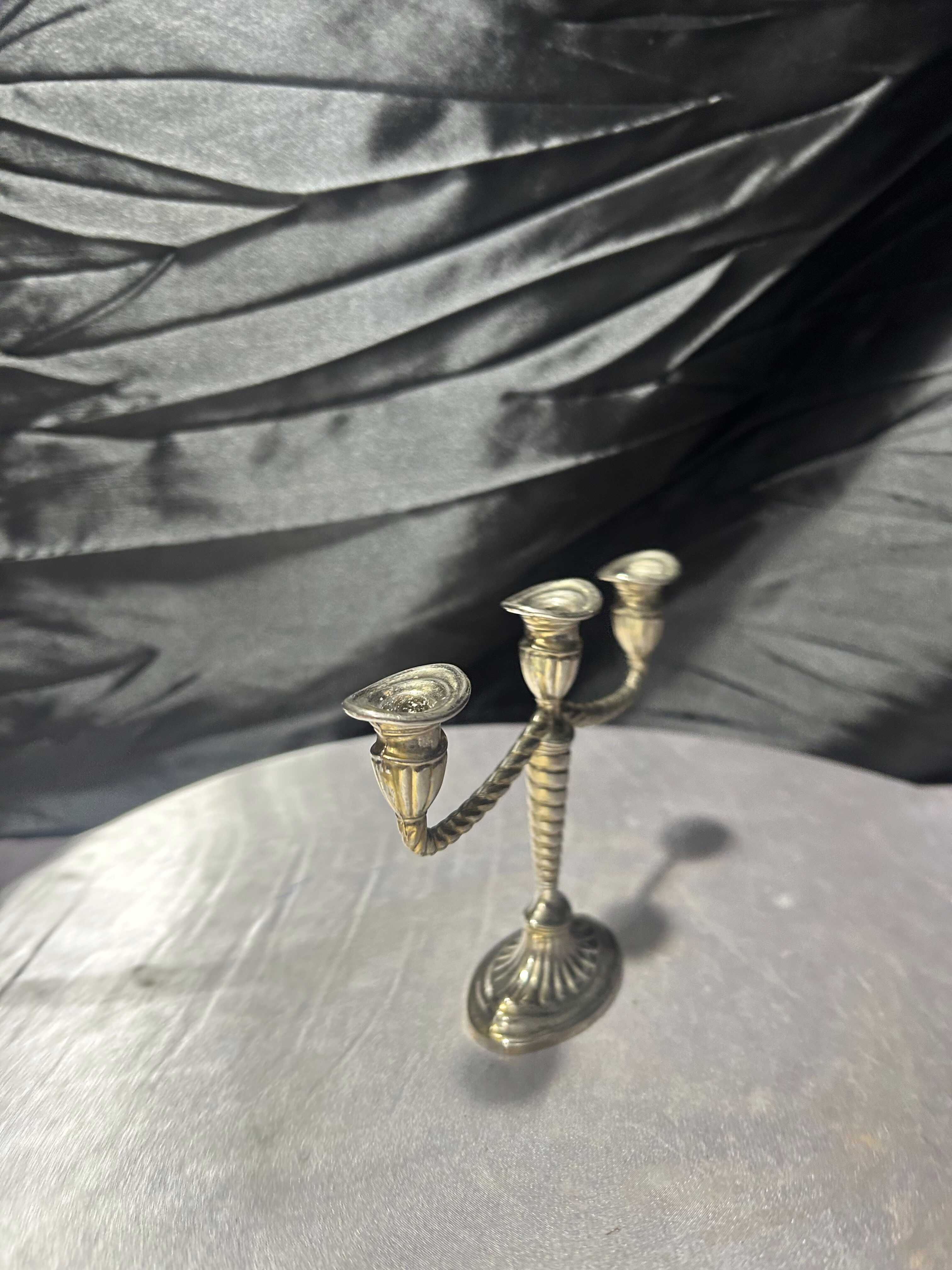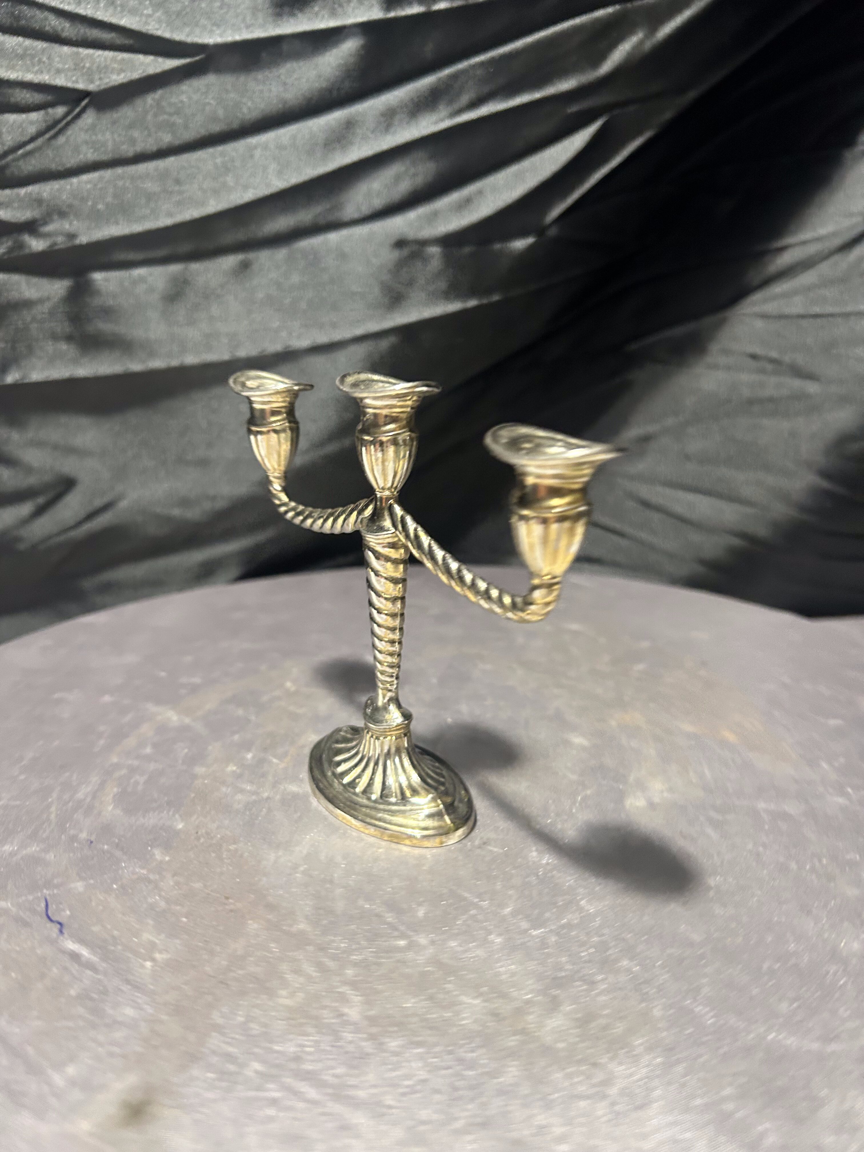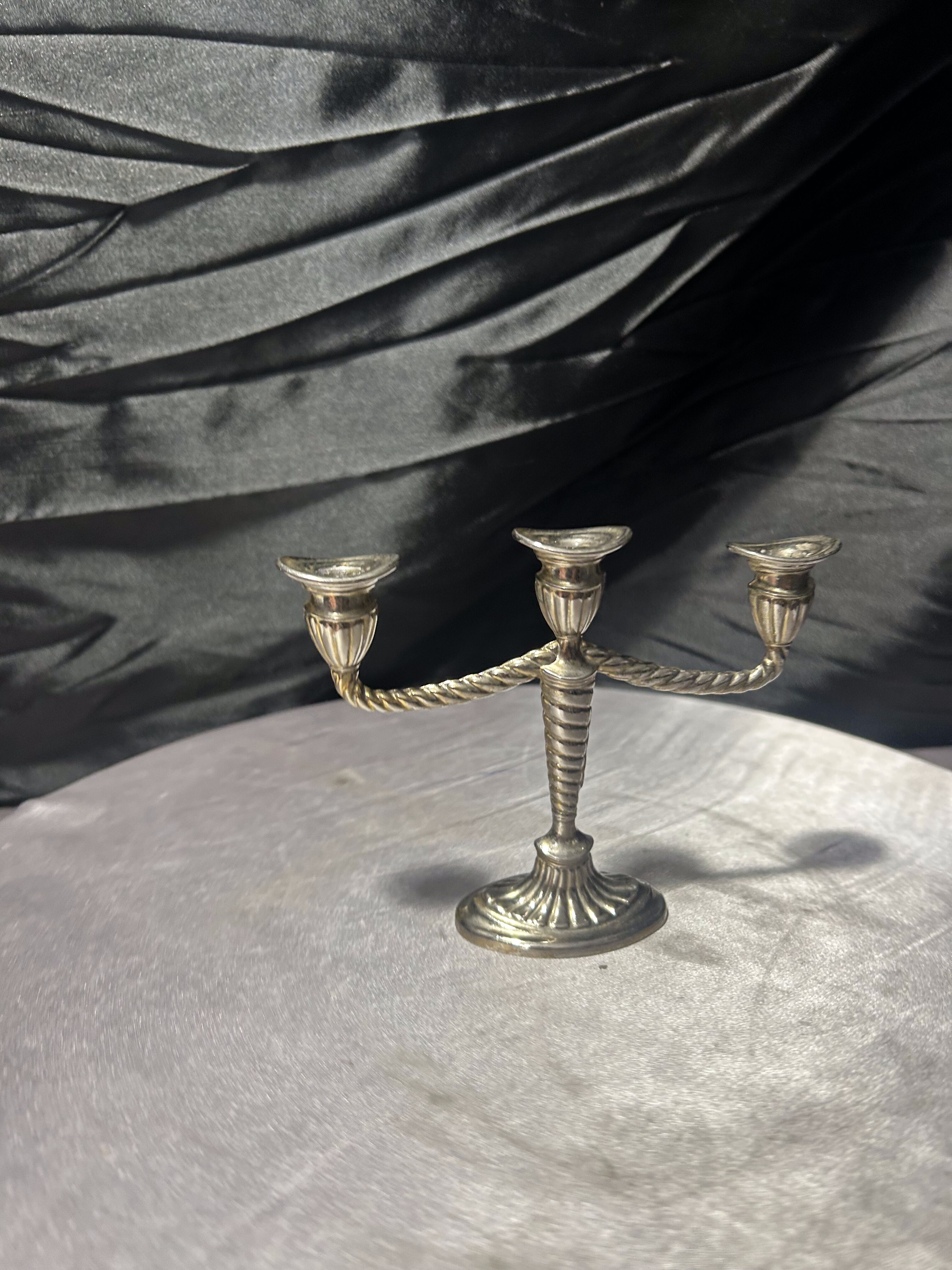 - Świecznik na trzy świece – srebrny kolor – Made in England – styl klasyczny
