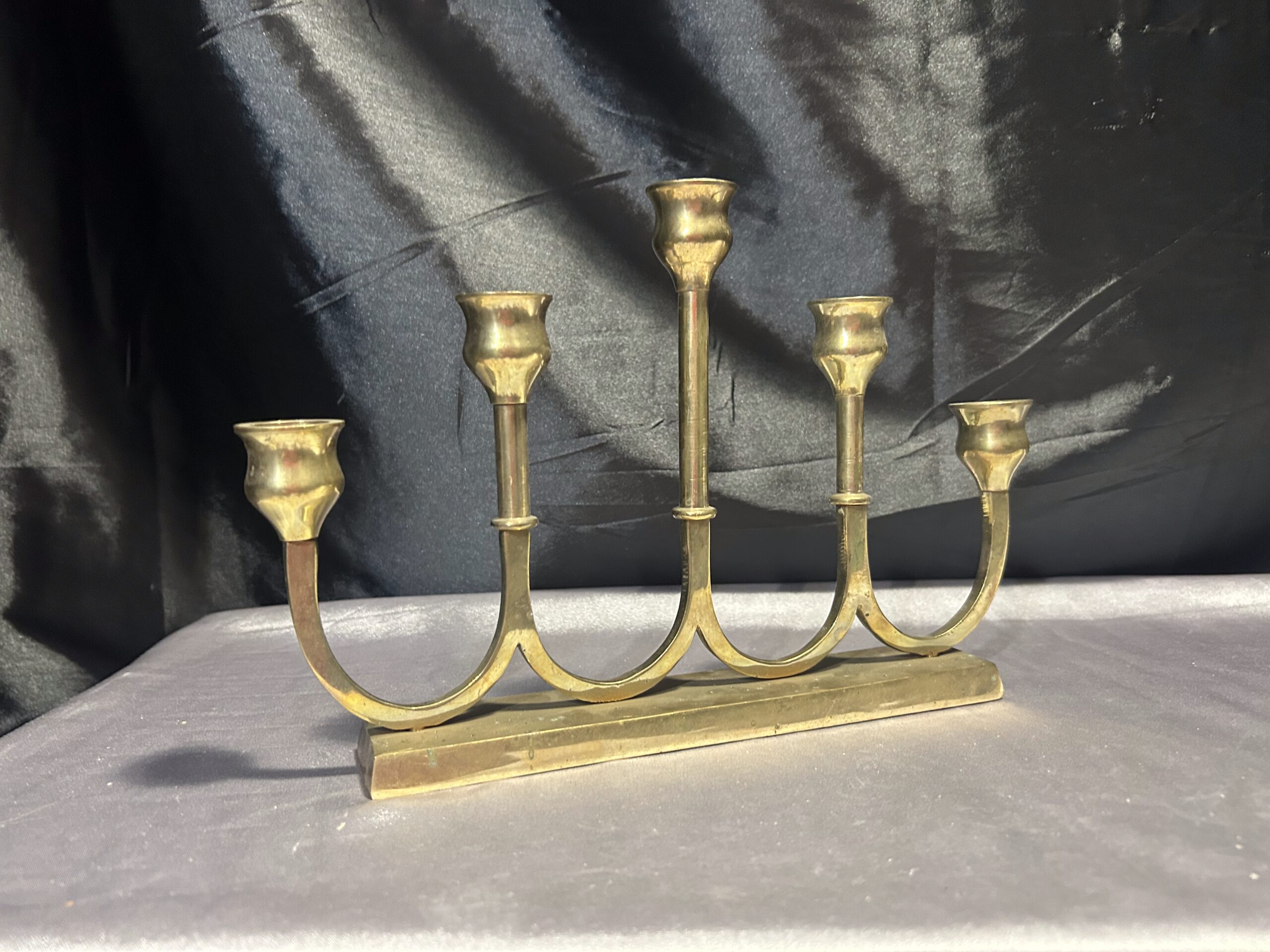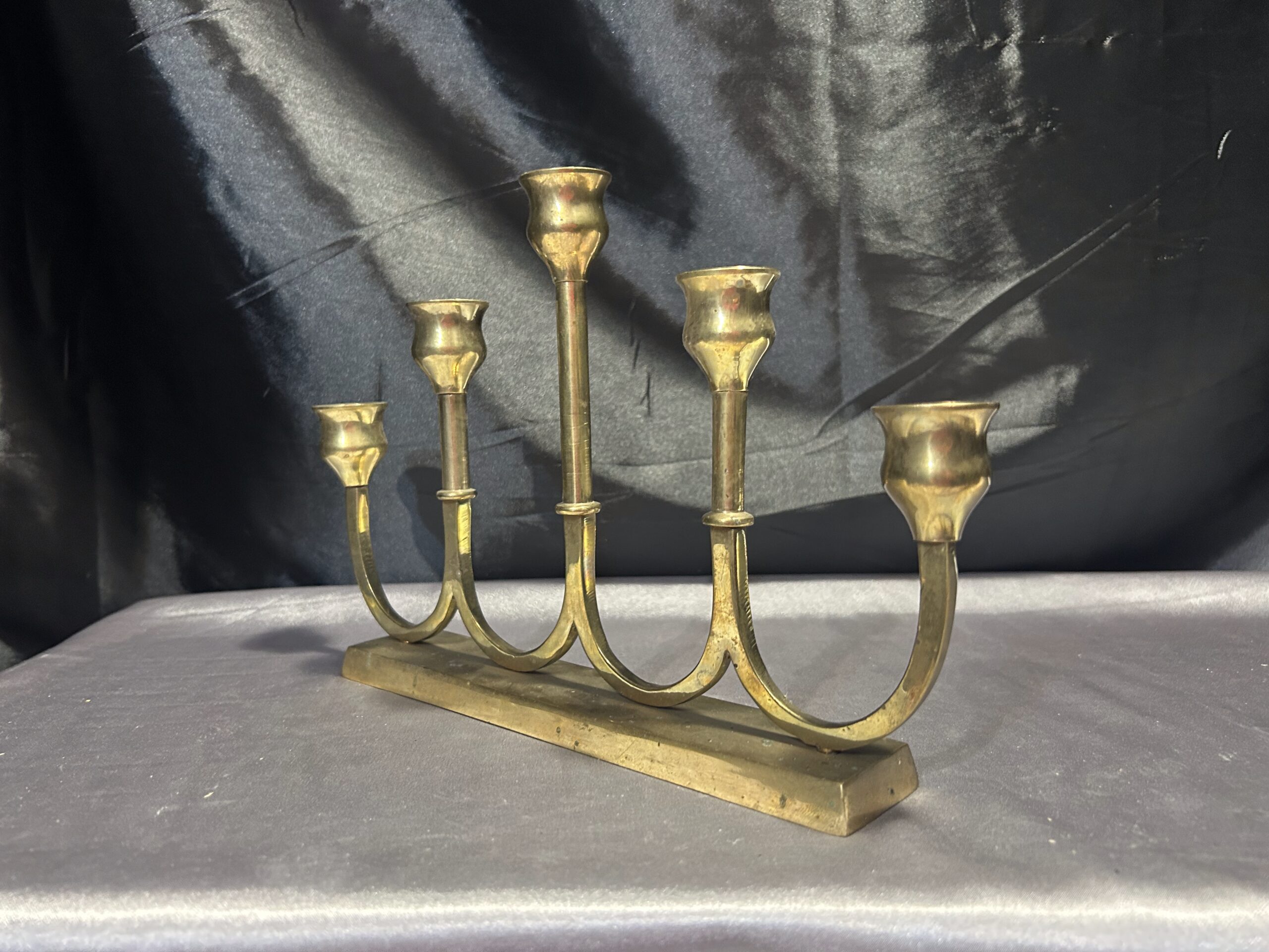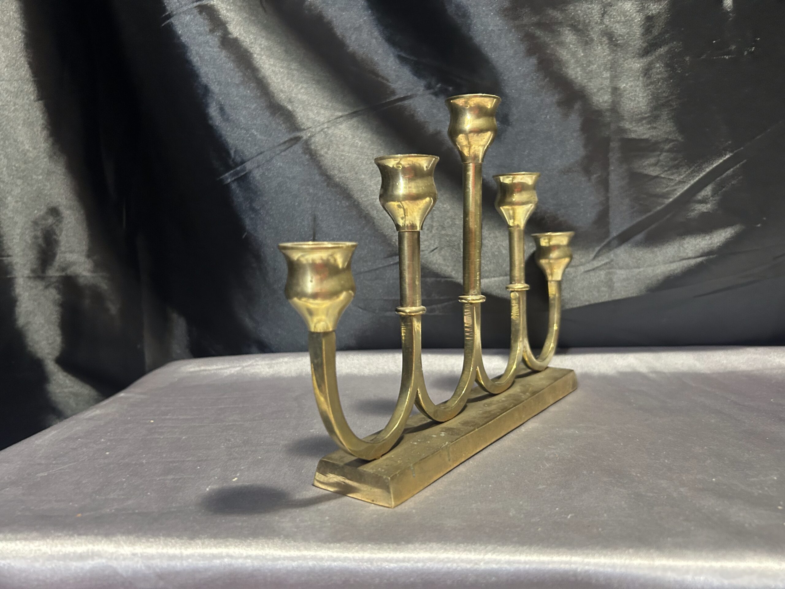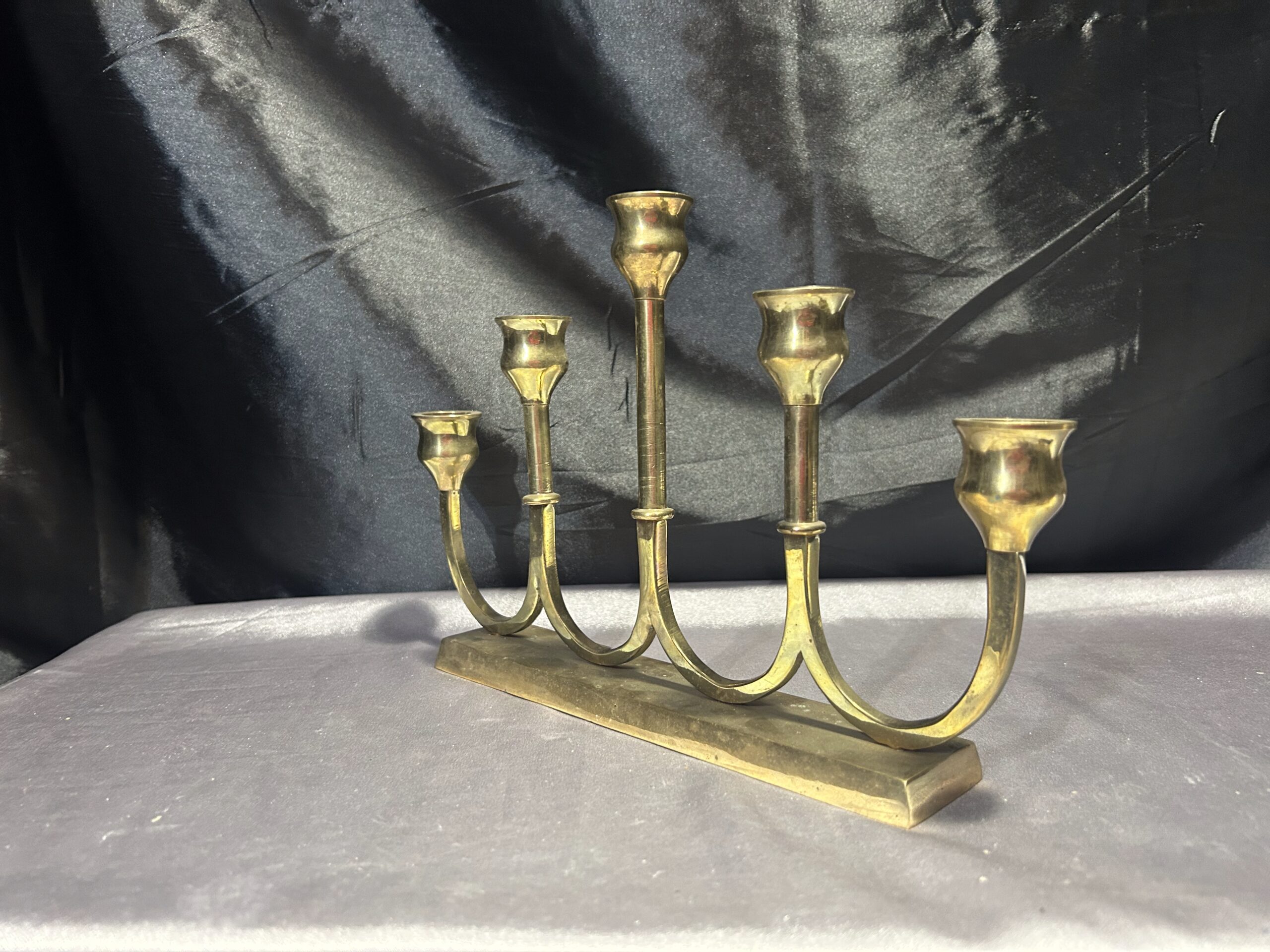 Świecznik Pięcioramienny z Mosiądzu – Elegancki, Podłużny