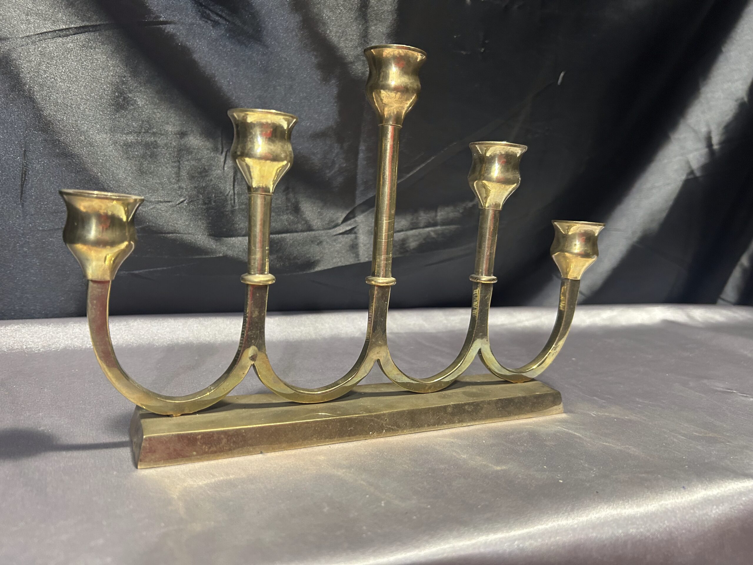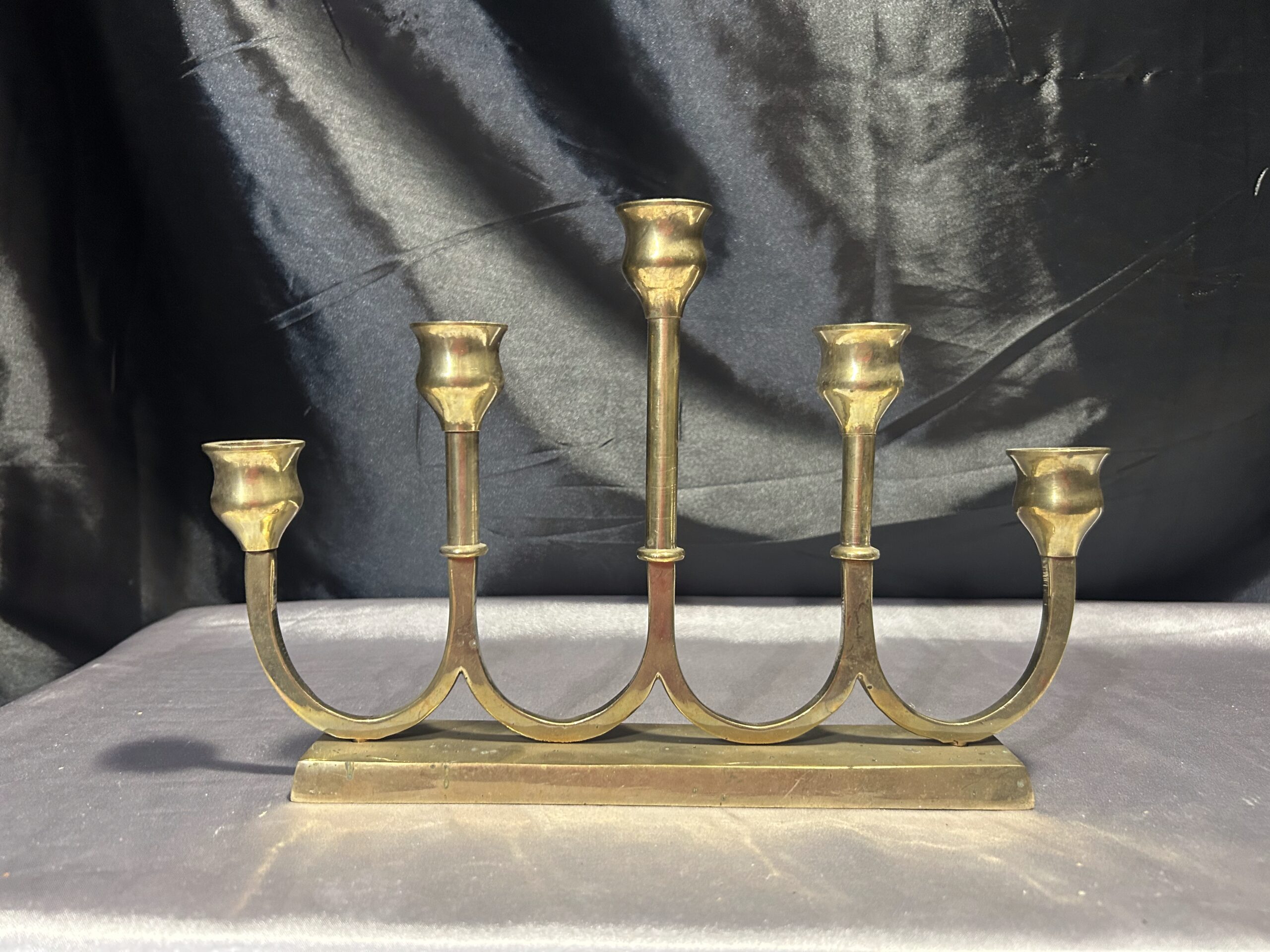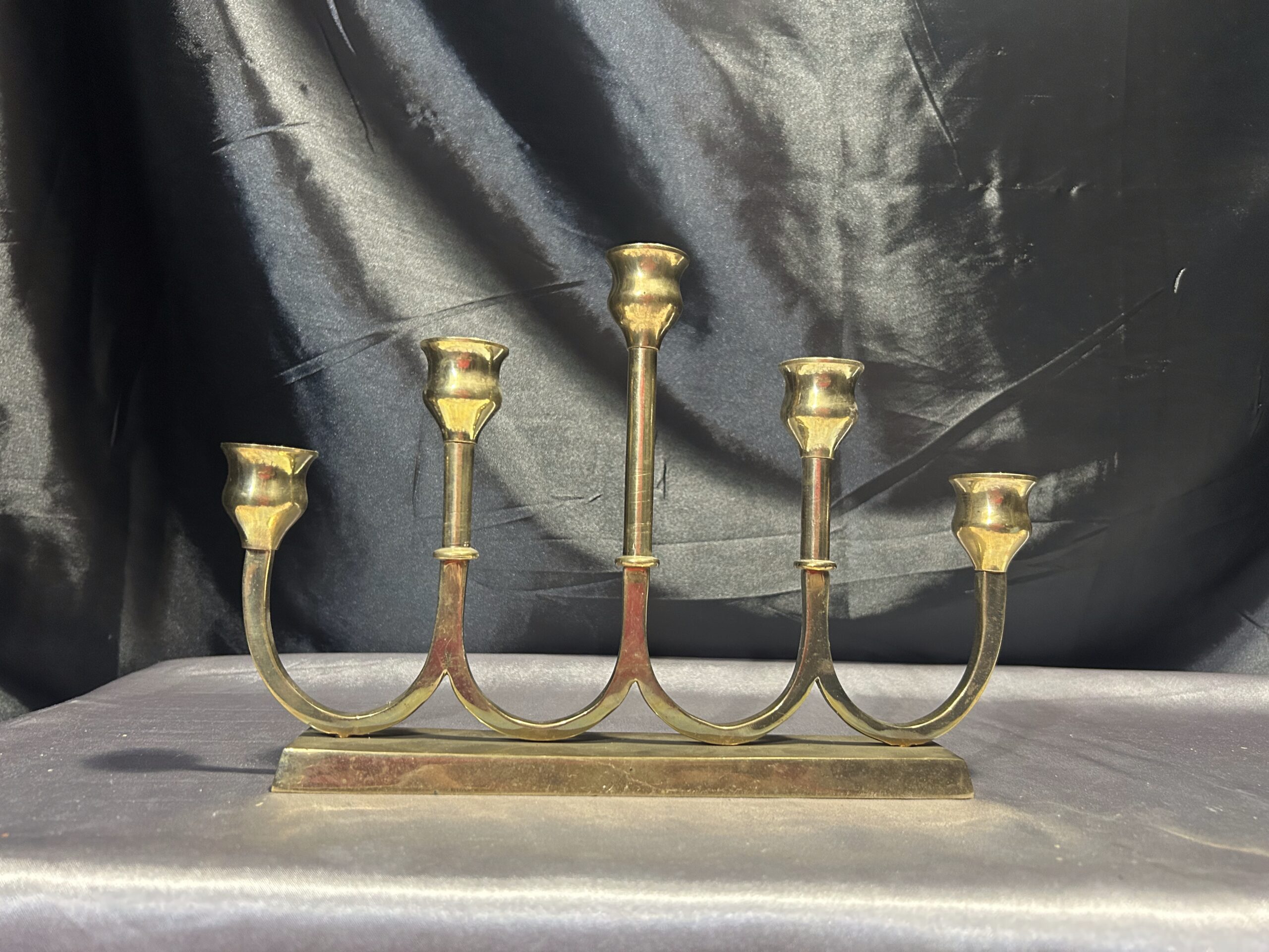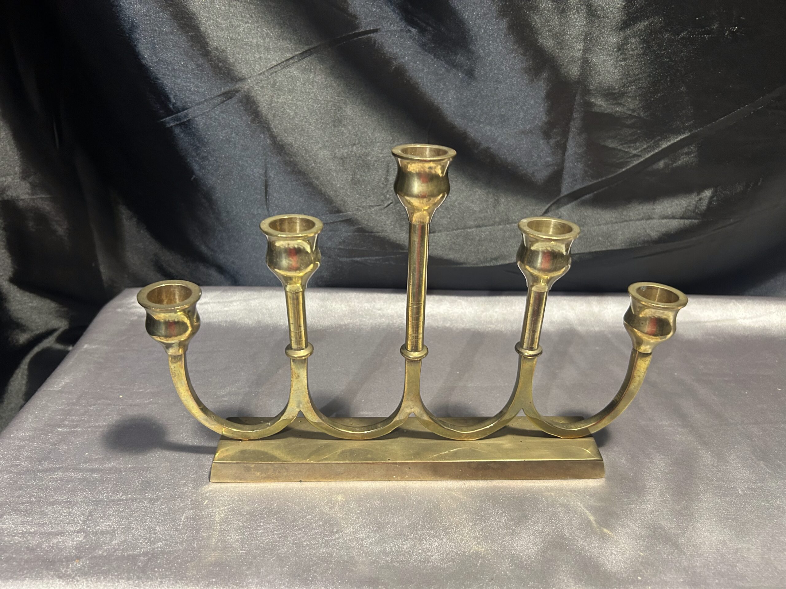Świecznik Pięcioramienny z Mosiądzu – Elegancki, Podłużny