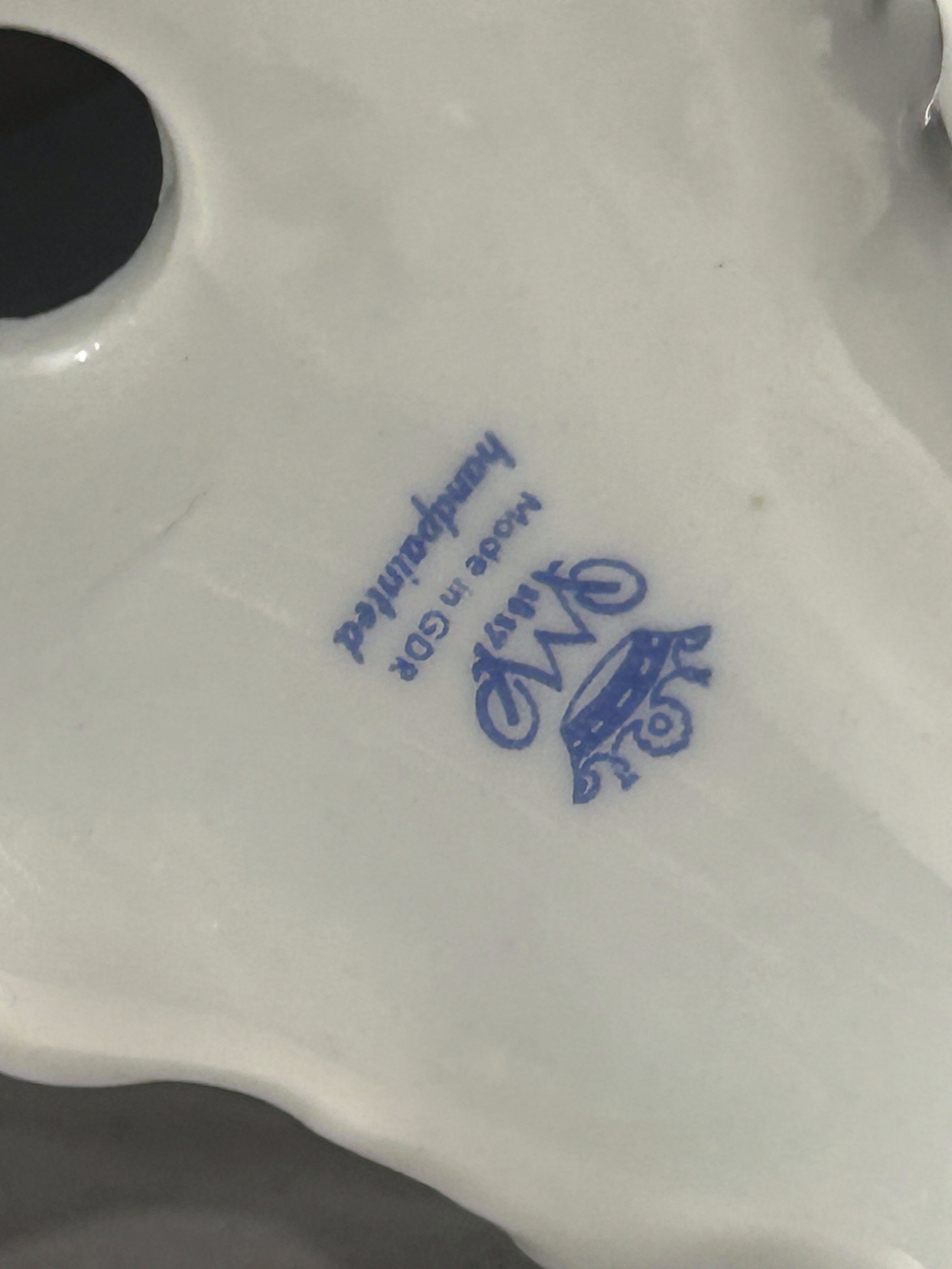 Egzemplarz sygnowany od spodu – oznaczenie producenta potwierdza europejskie, niemieckie pochodzenie wyrobu oraz jego kolekcjonerski charakter. Starannie wykonane reliefy i dekoracyjne ramiona nadają całości wyjątkowej lekkości i elegancji.