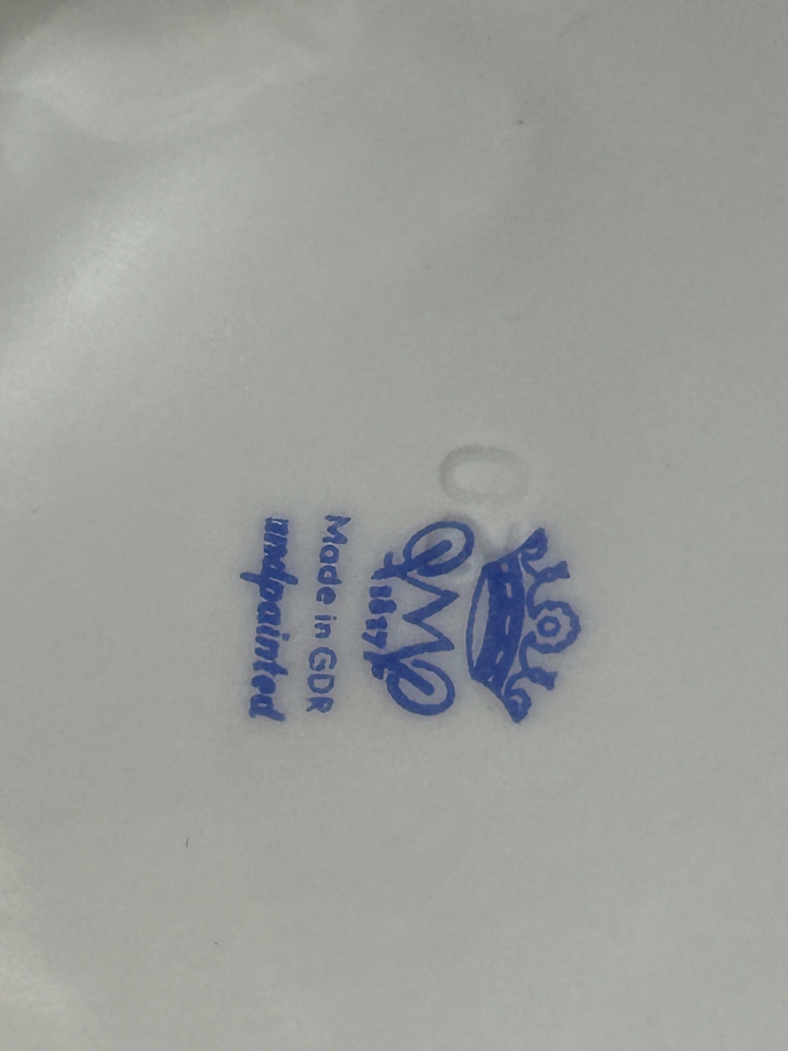 Przedstawiam elegancki świecznik porcelanowy na dwie świece, wykonany w byłej Niemieckiej Republice Demokratycznej, sygnowany charakterystyczną koroną oraz oznaczeniem “Made in GDR”. Sygnatura ta była stosowana w fabrykach porcelany Lichte / Wallendorf / Volkstedt (VEB Unterweißbach) w okresie 1950–1990, kiedy zakłady te działały jako przedsiębiorstwa państwowe.