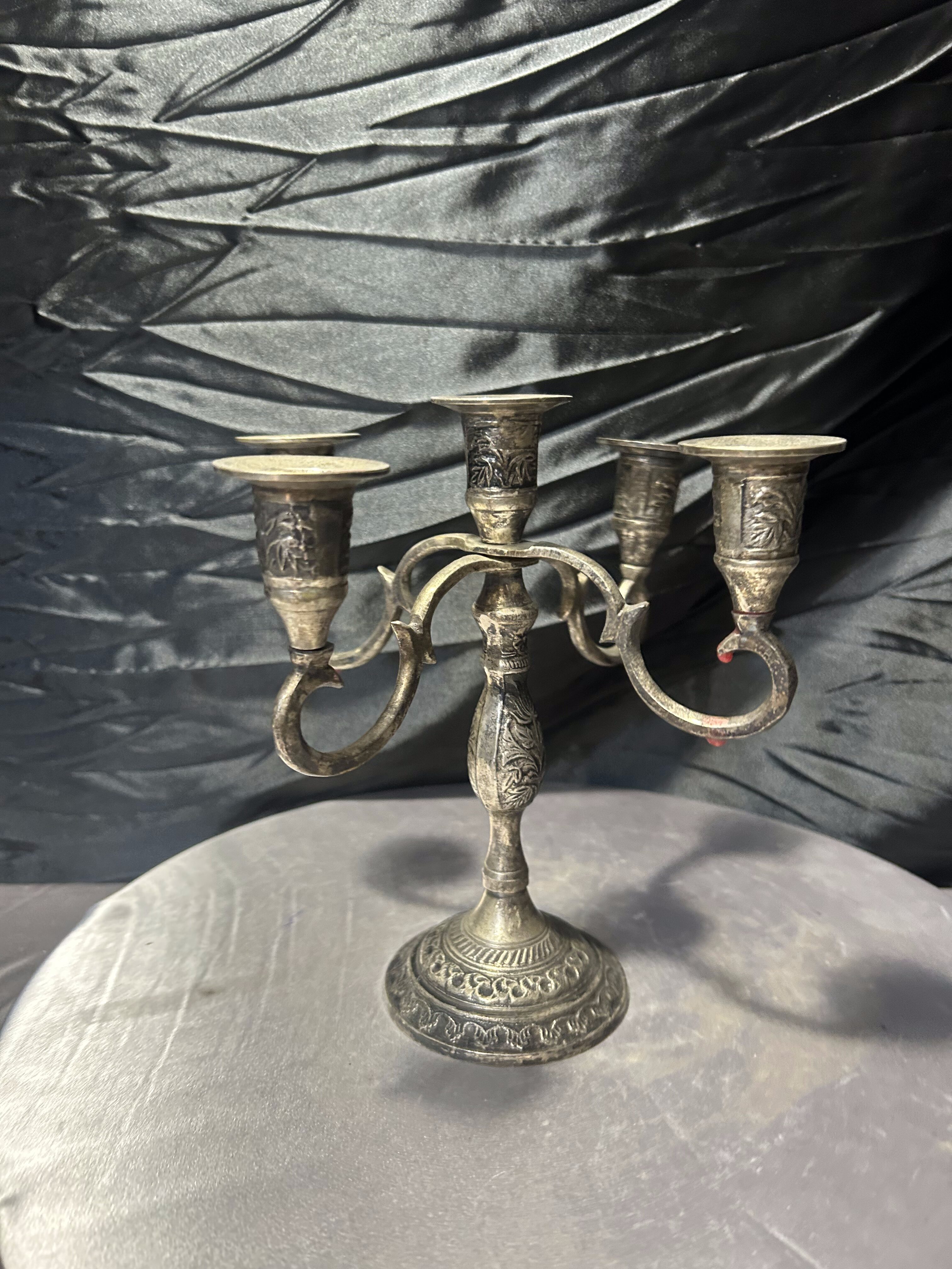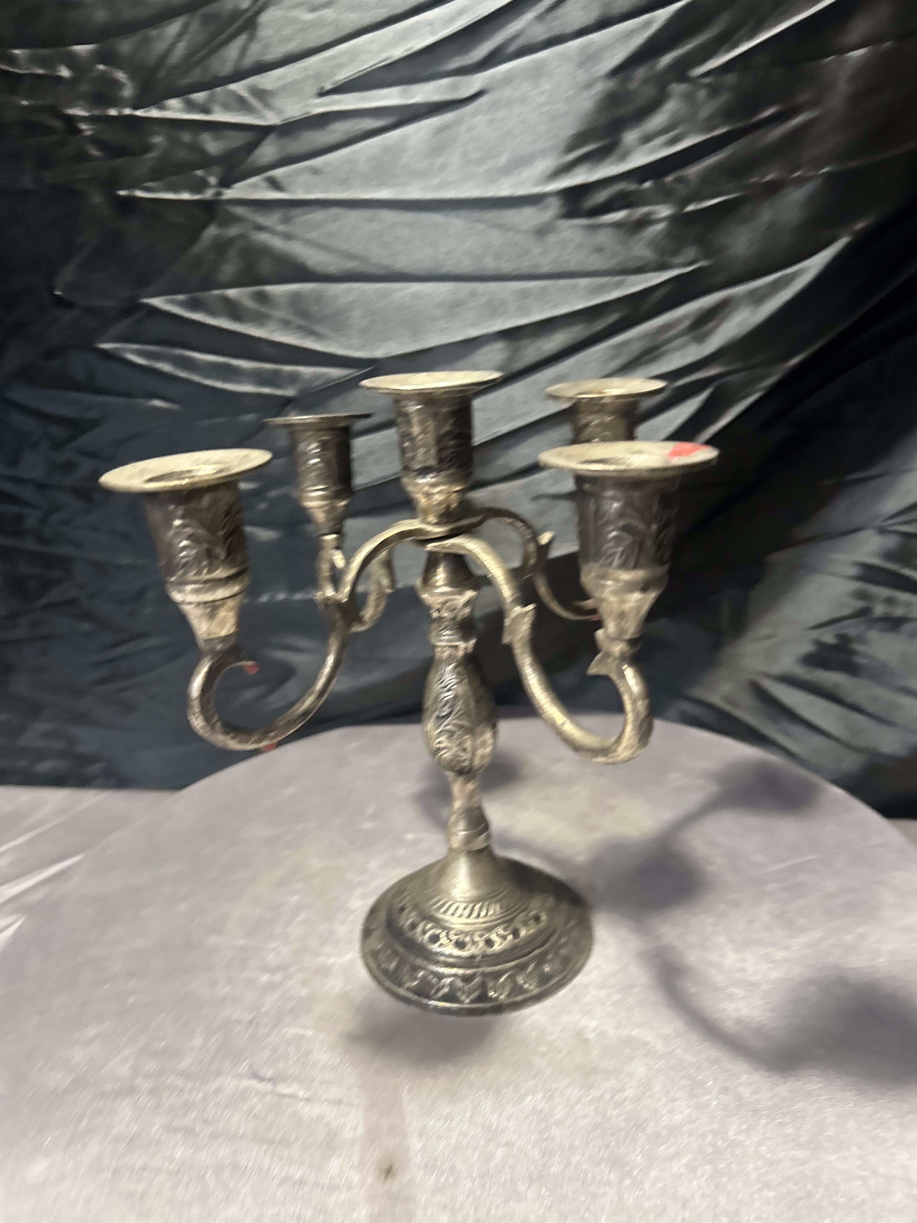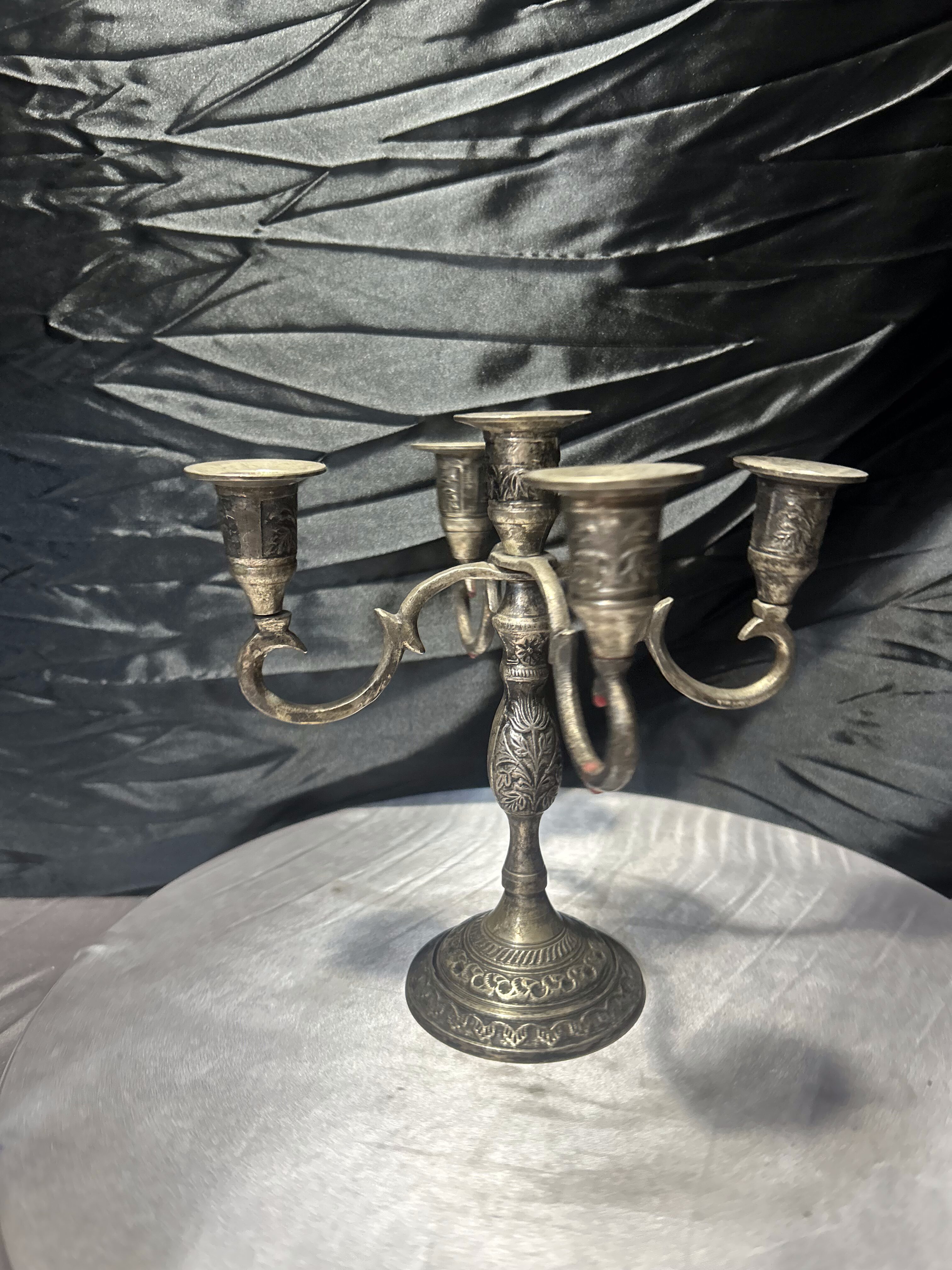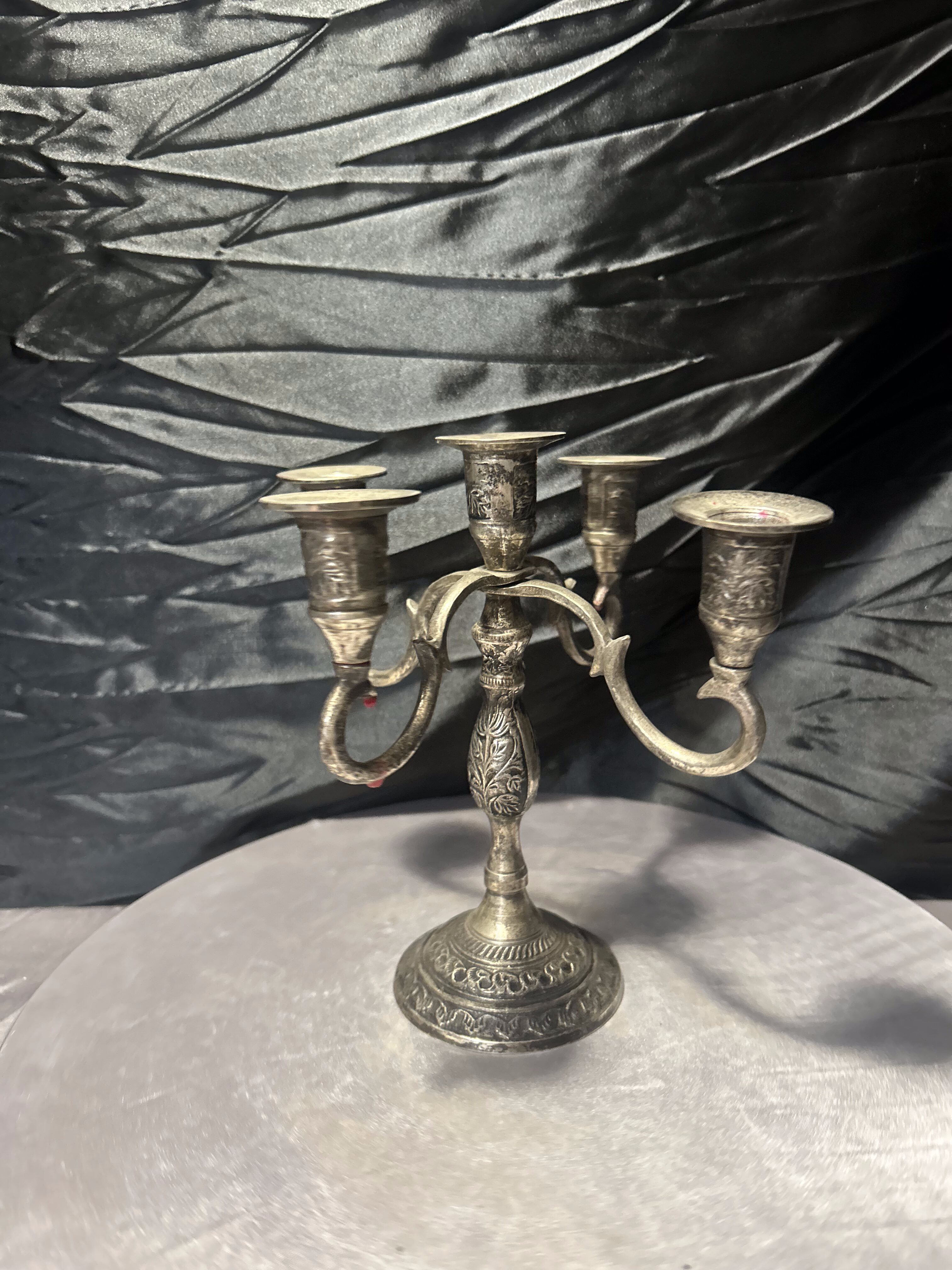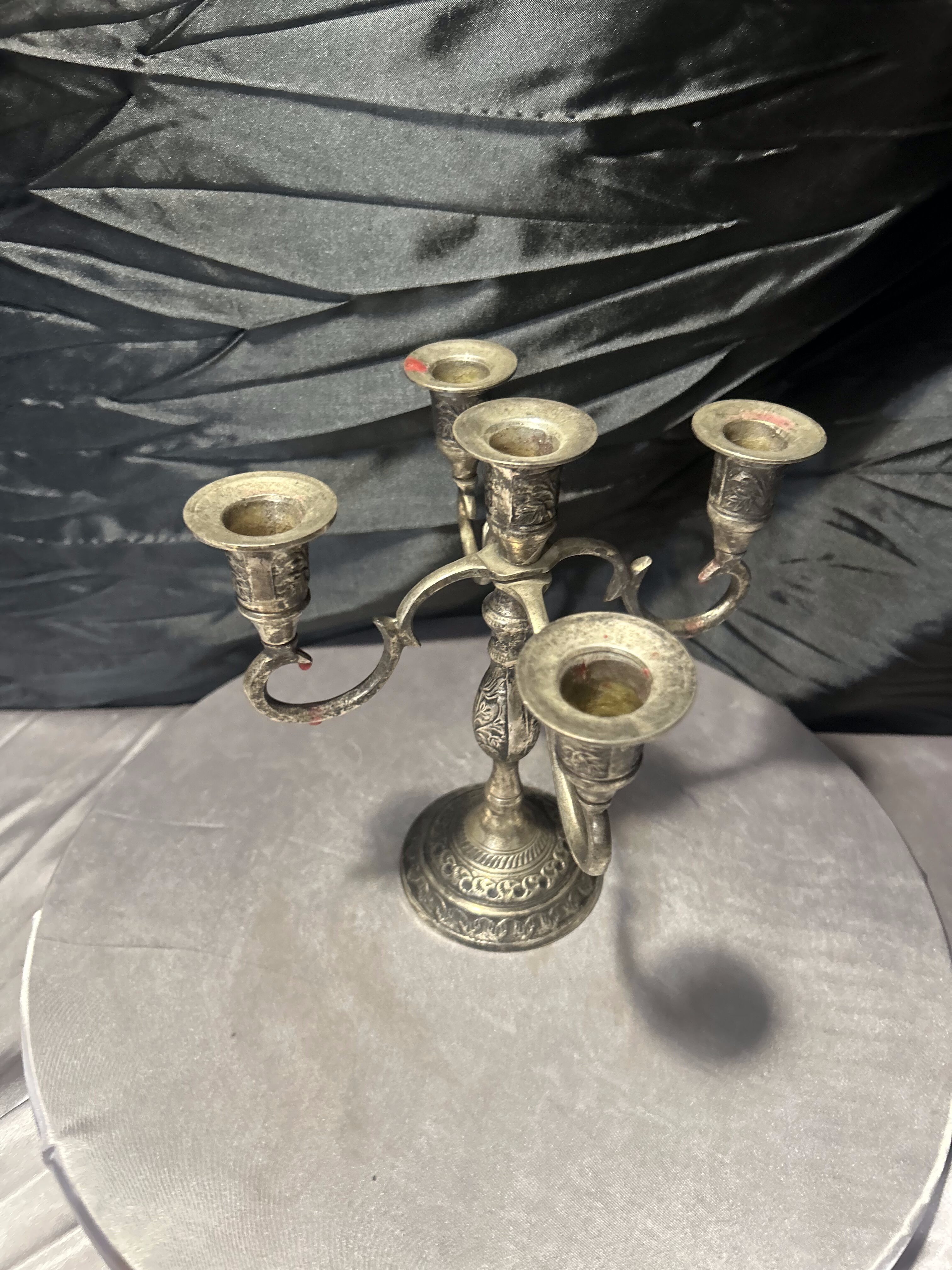 - Świecznik posrebrzany na 5 świec – zdobiony kandelabr