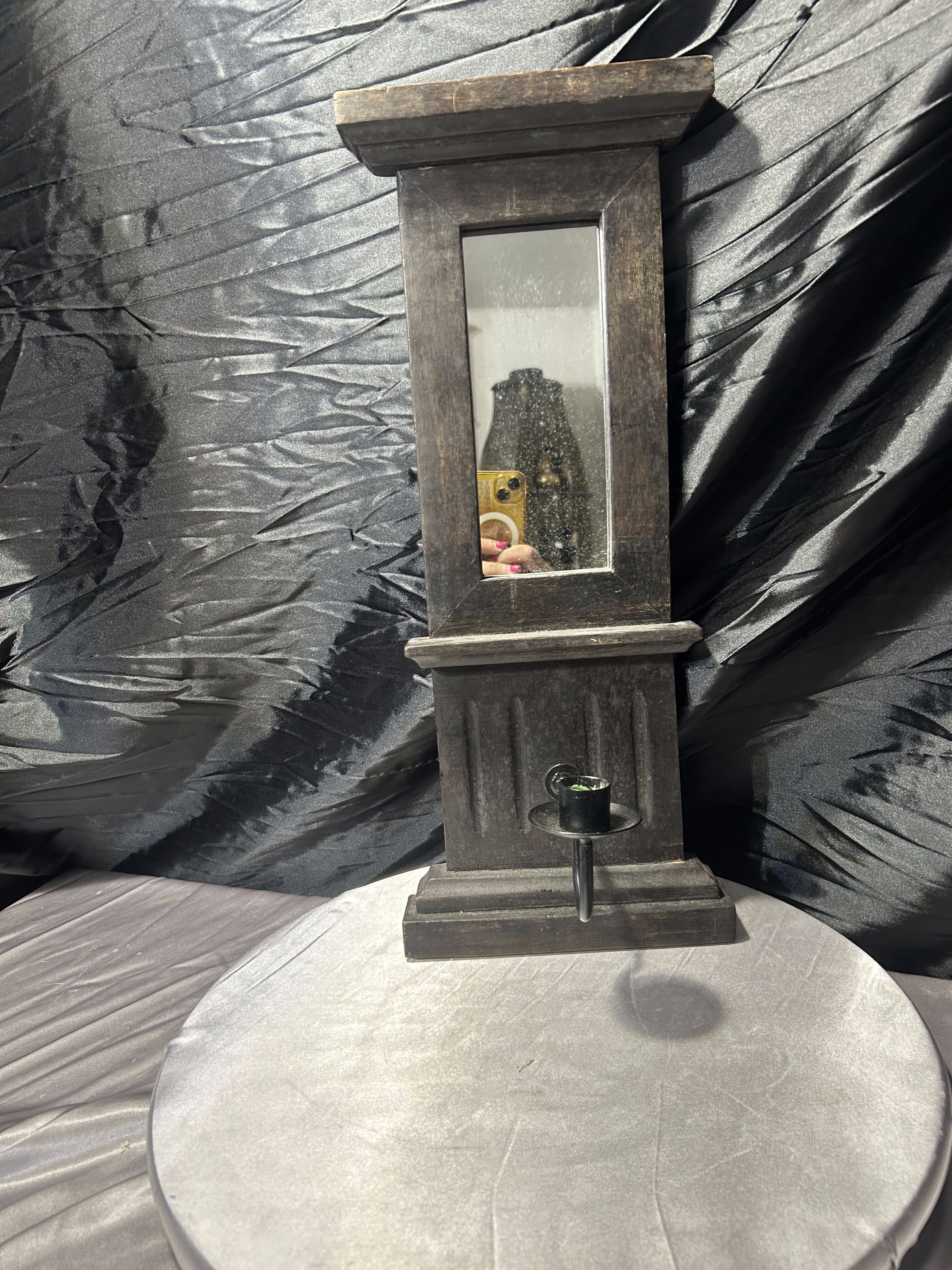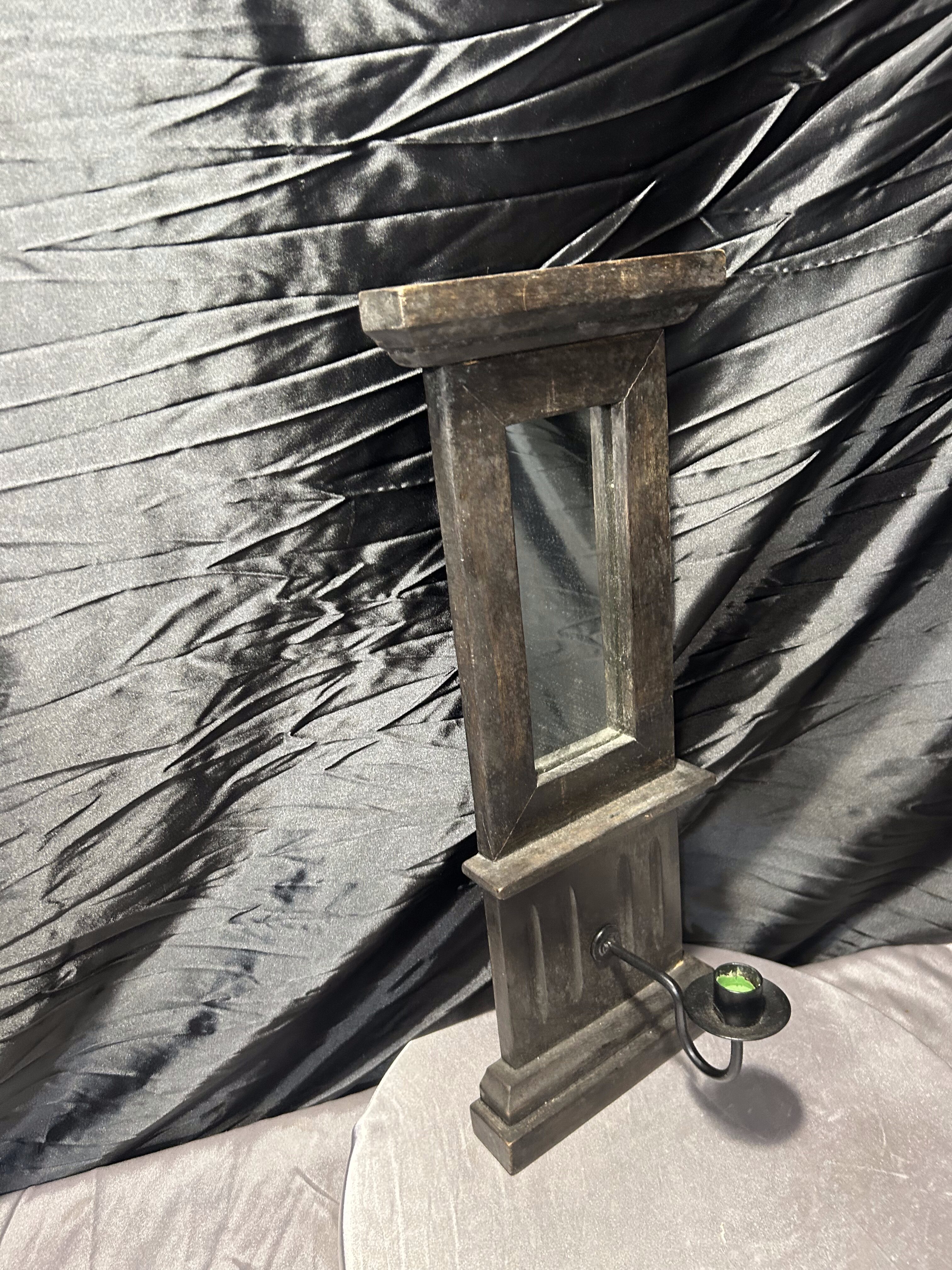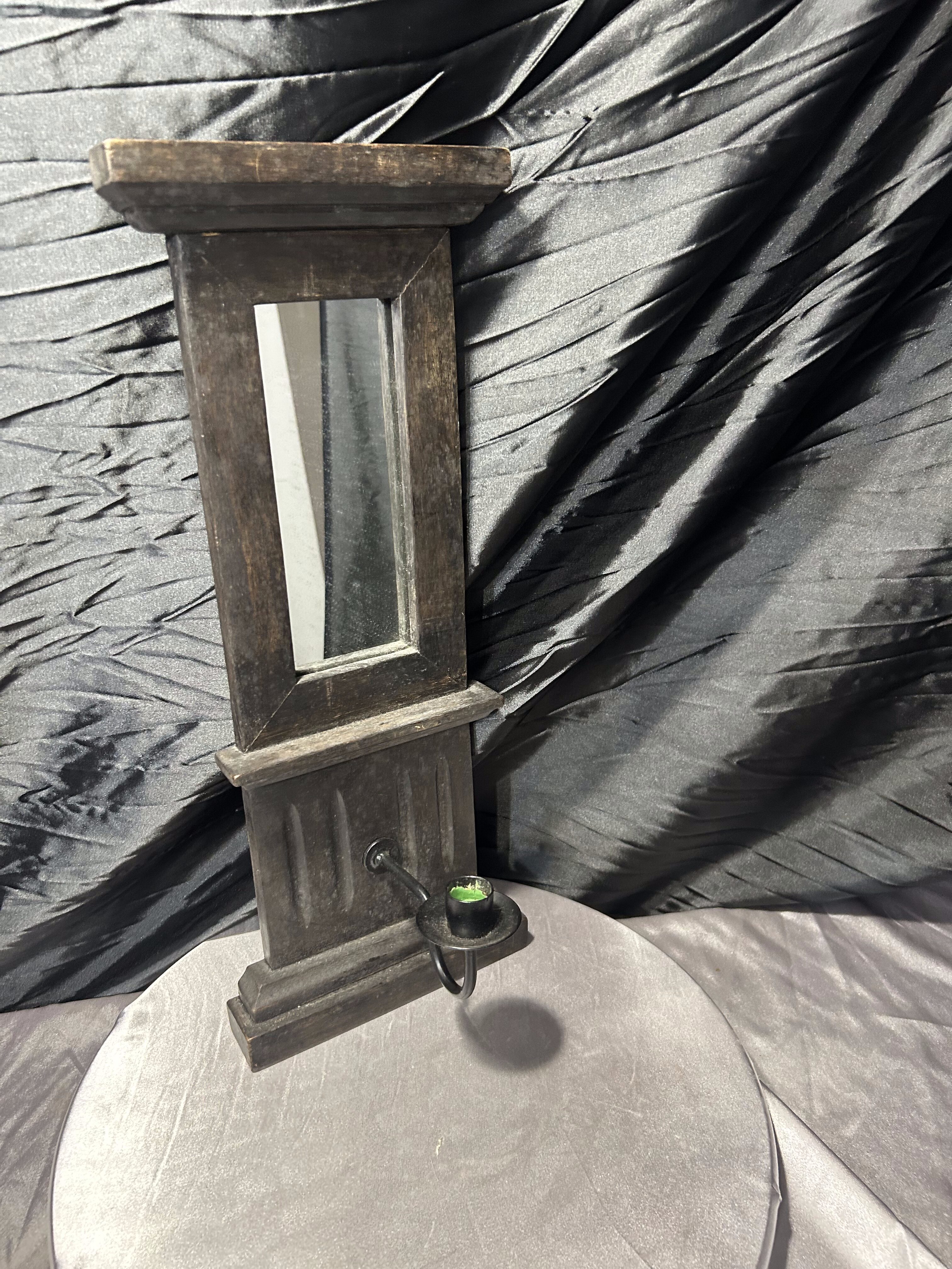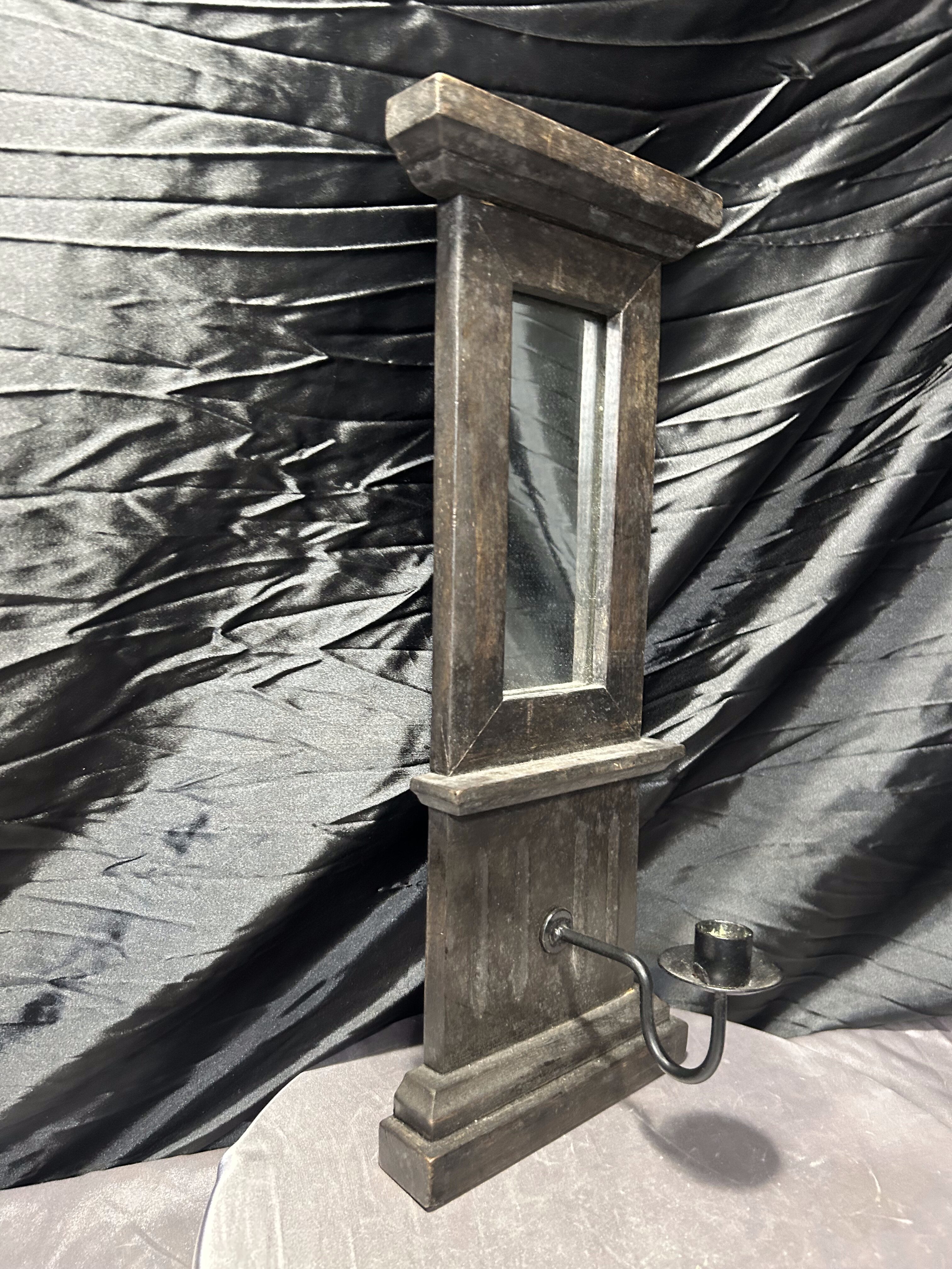 Świecznik ścienny w drewnianej ramie z lusterkiem