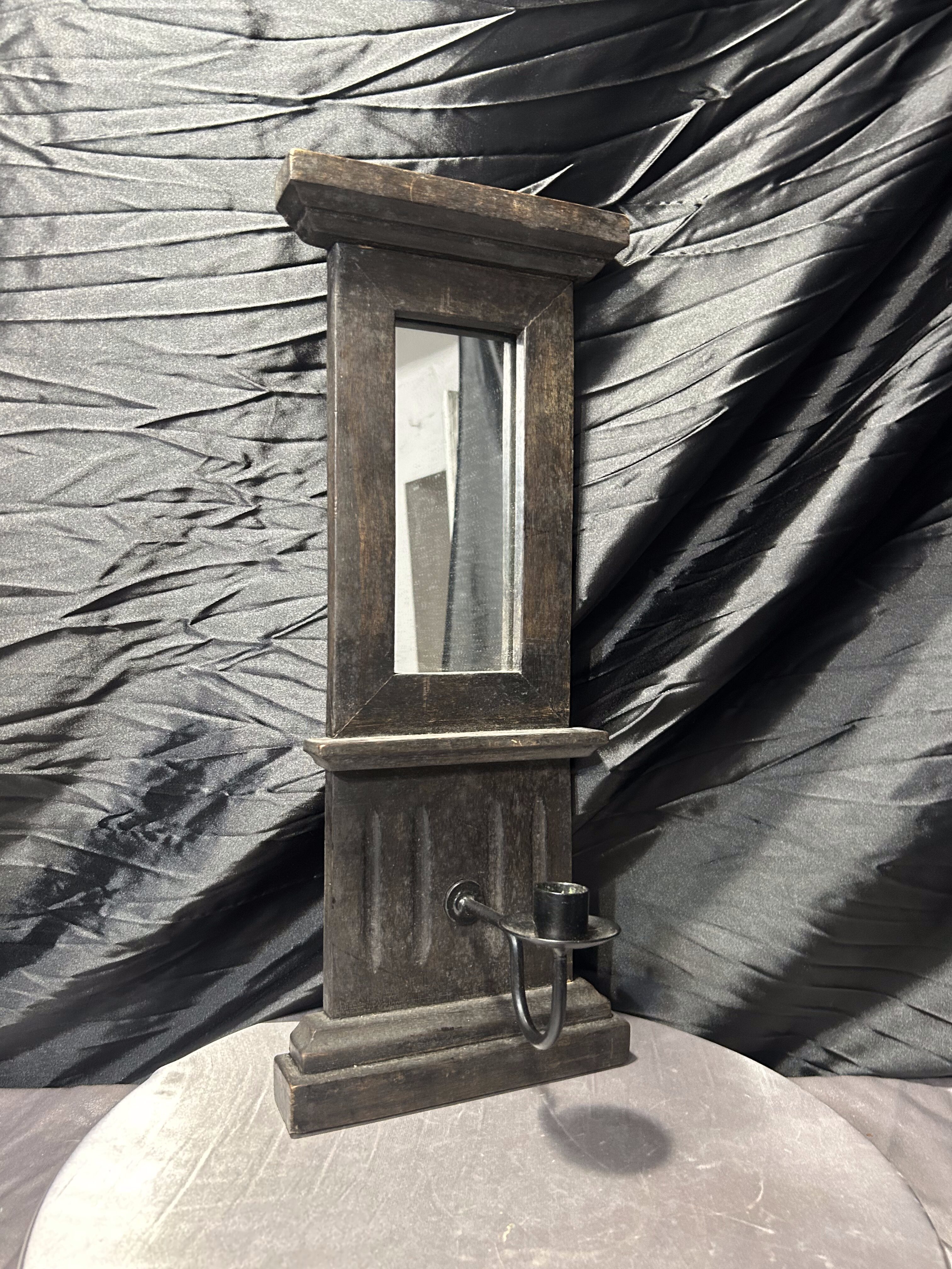 - Świecznik ścienny w drewnianej ramie z lusterkiem