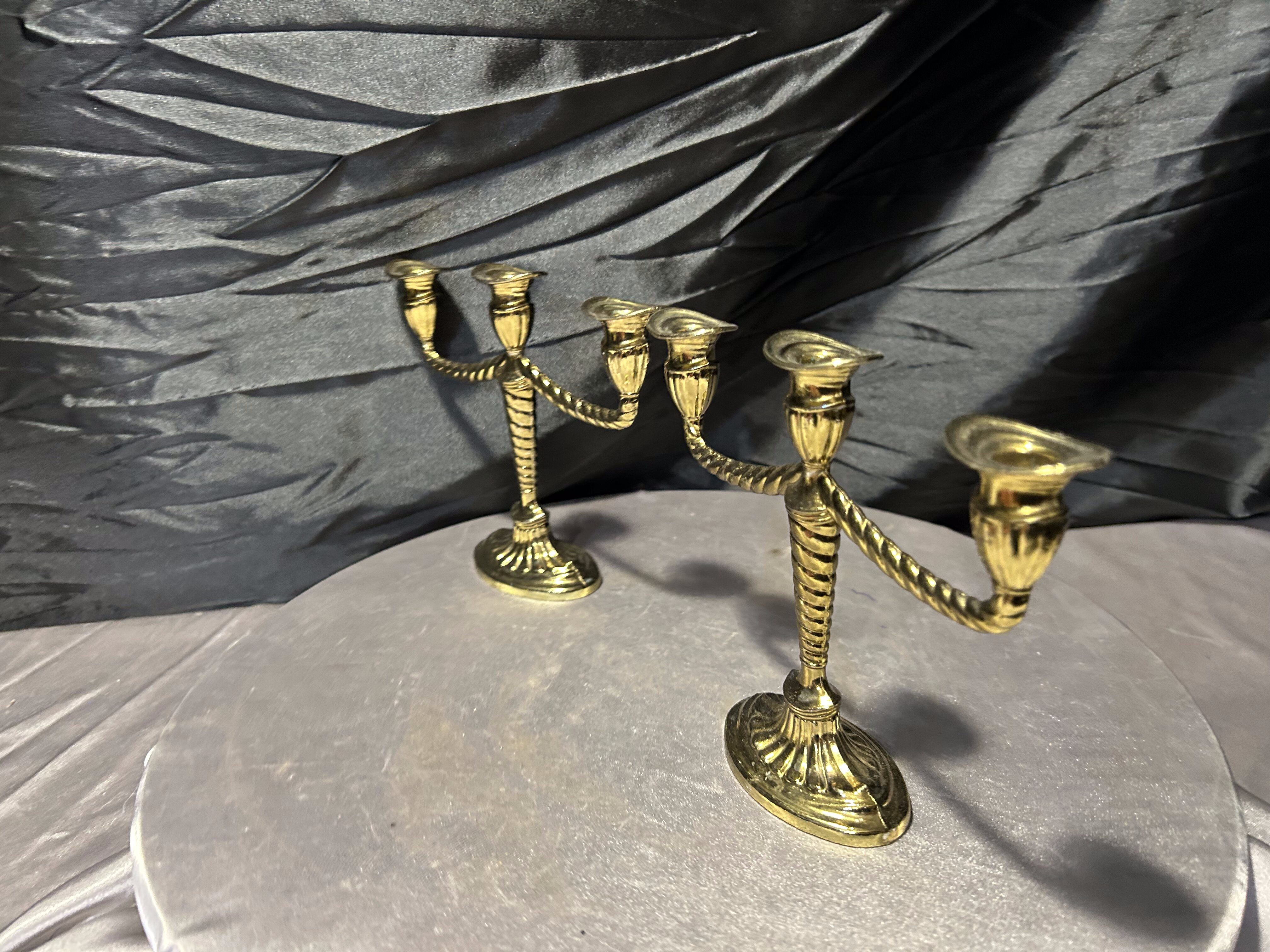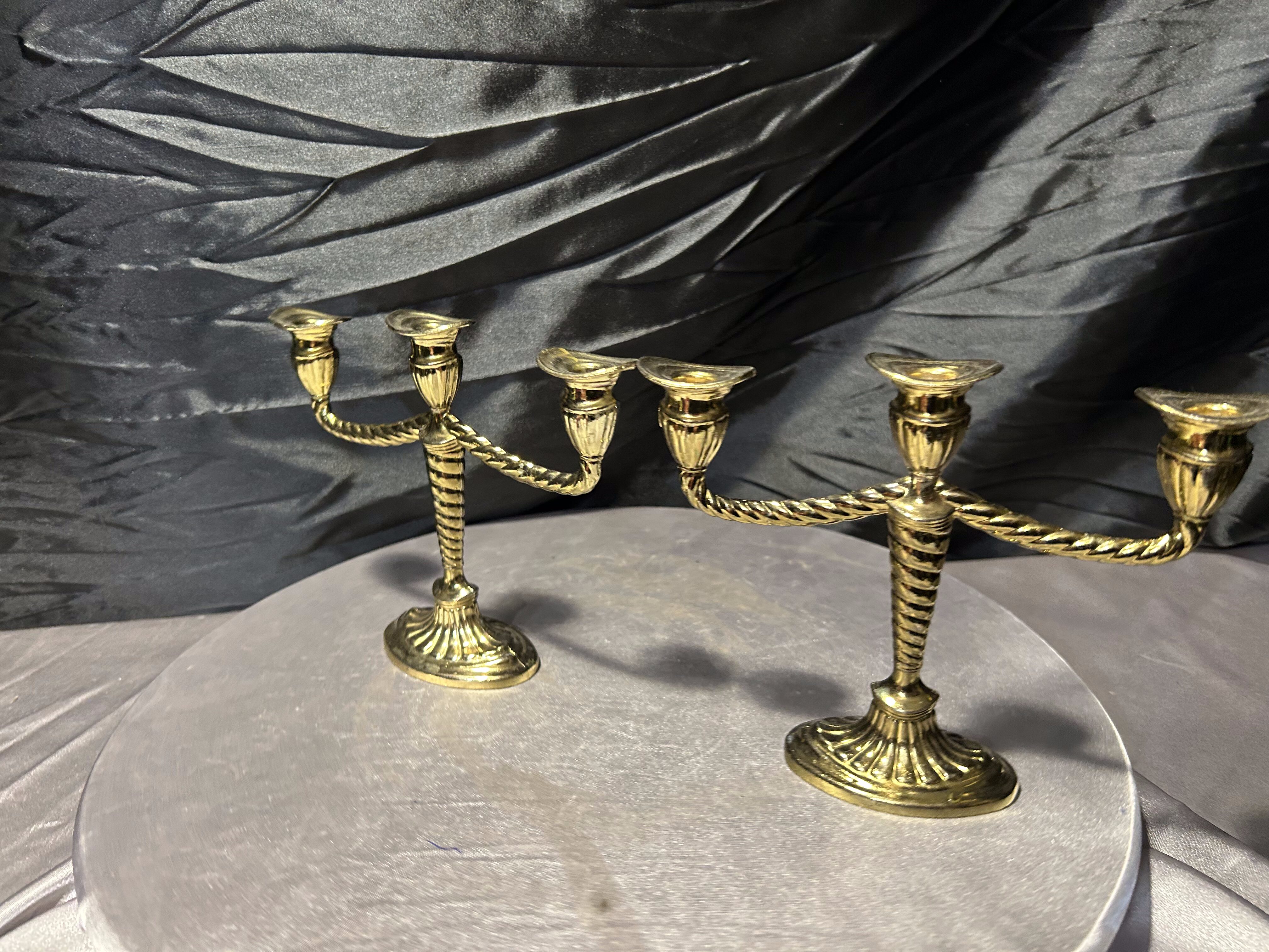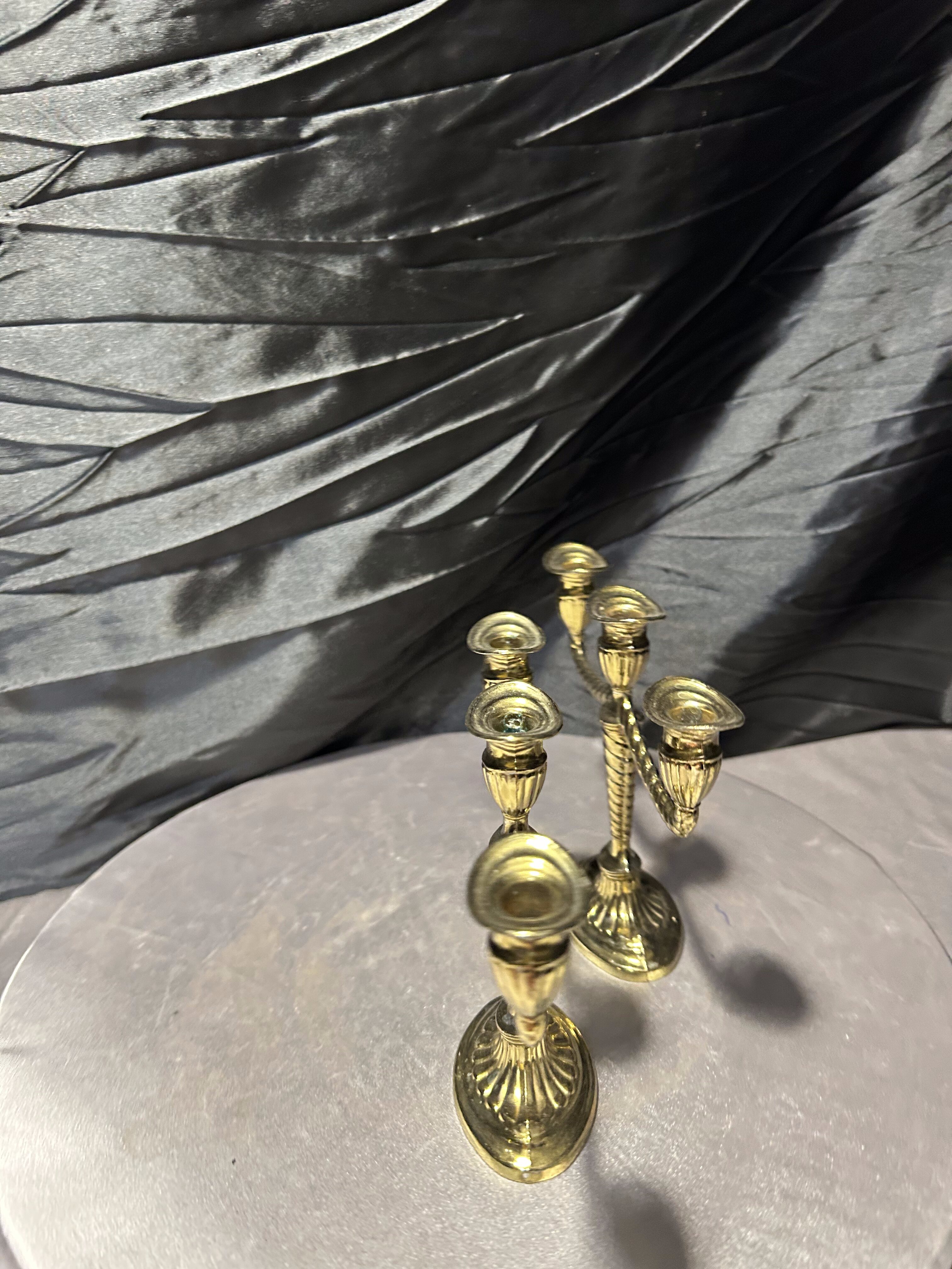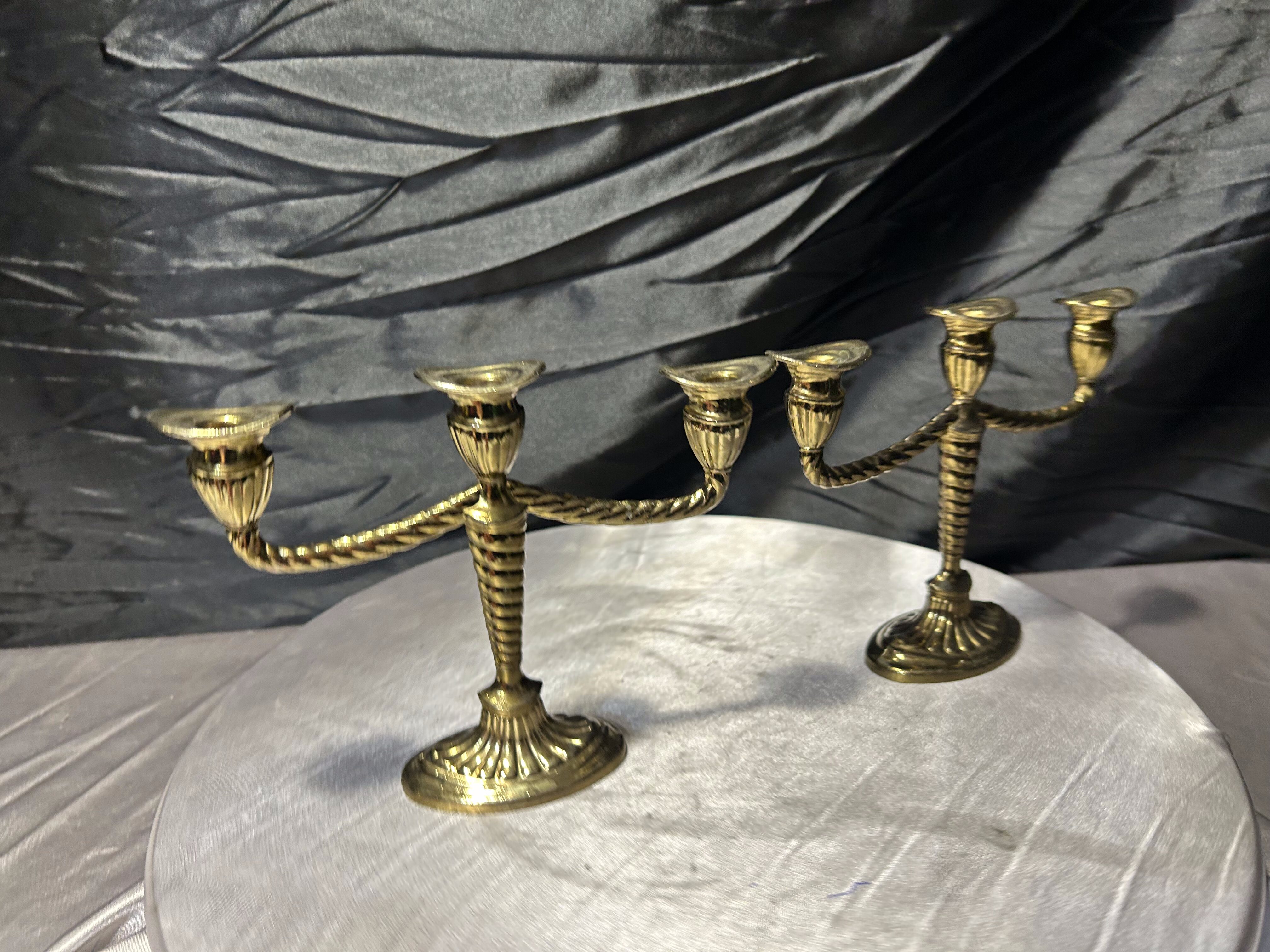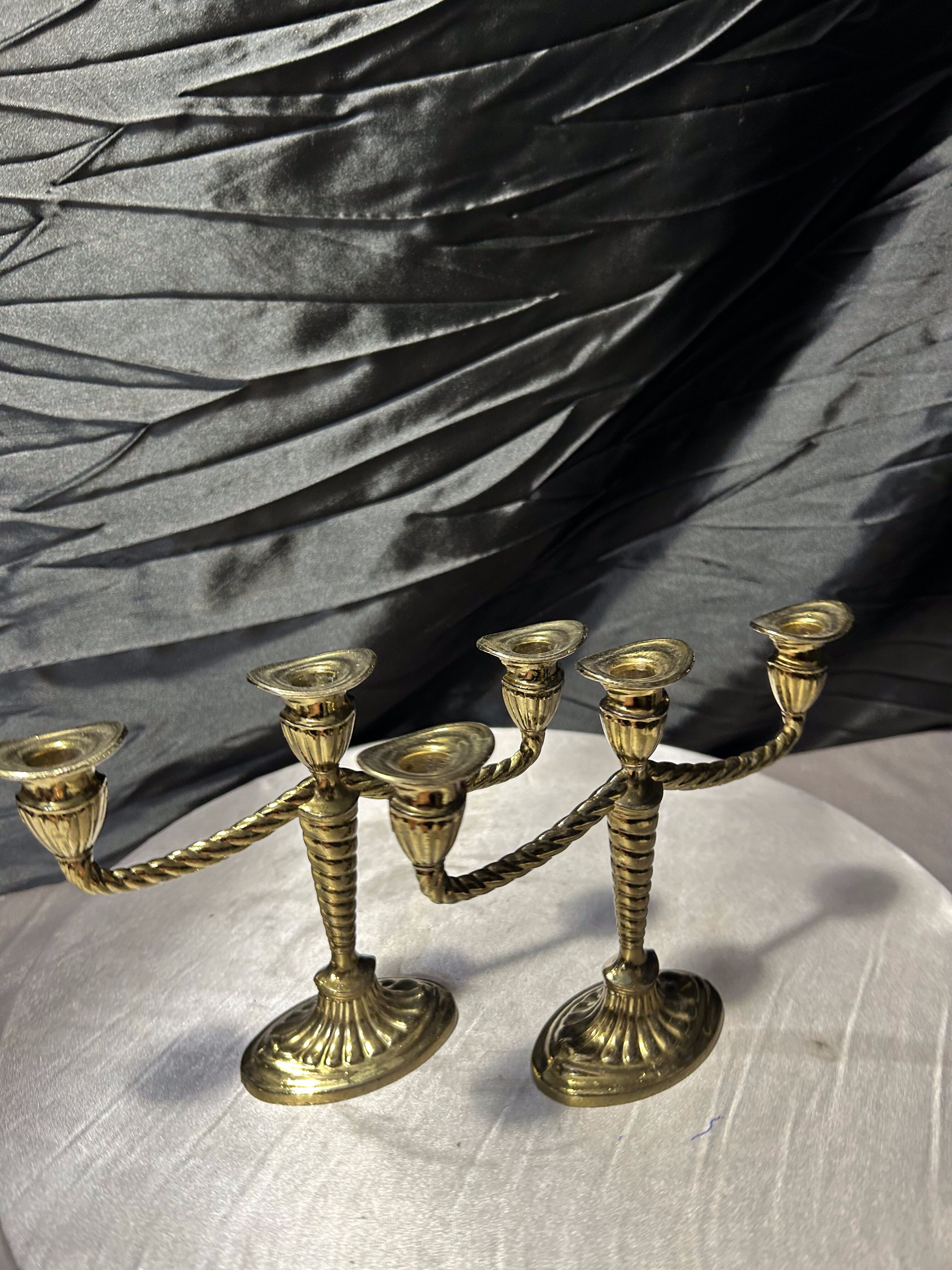 - Świeczniki mosiężne – komplet 2 sztuki – kandelabry na 3 świece