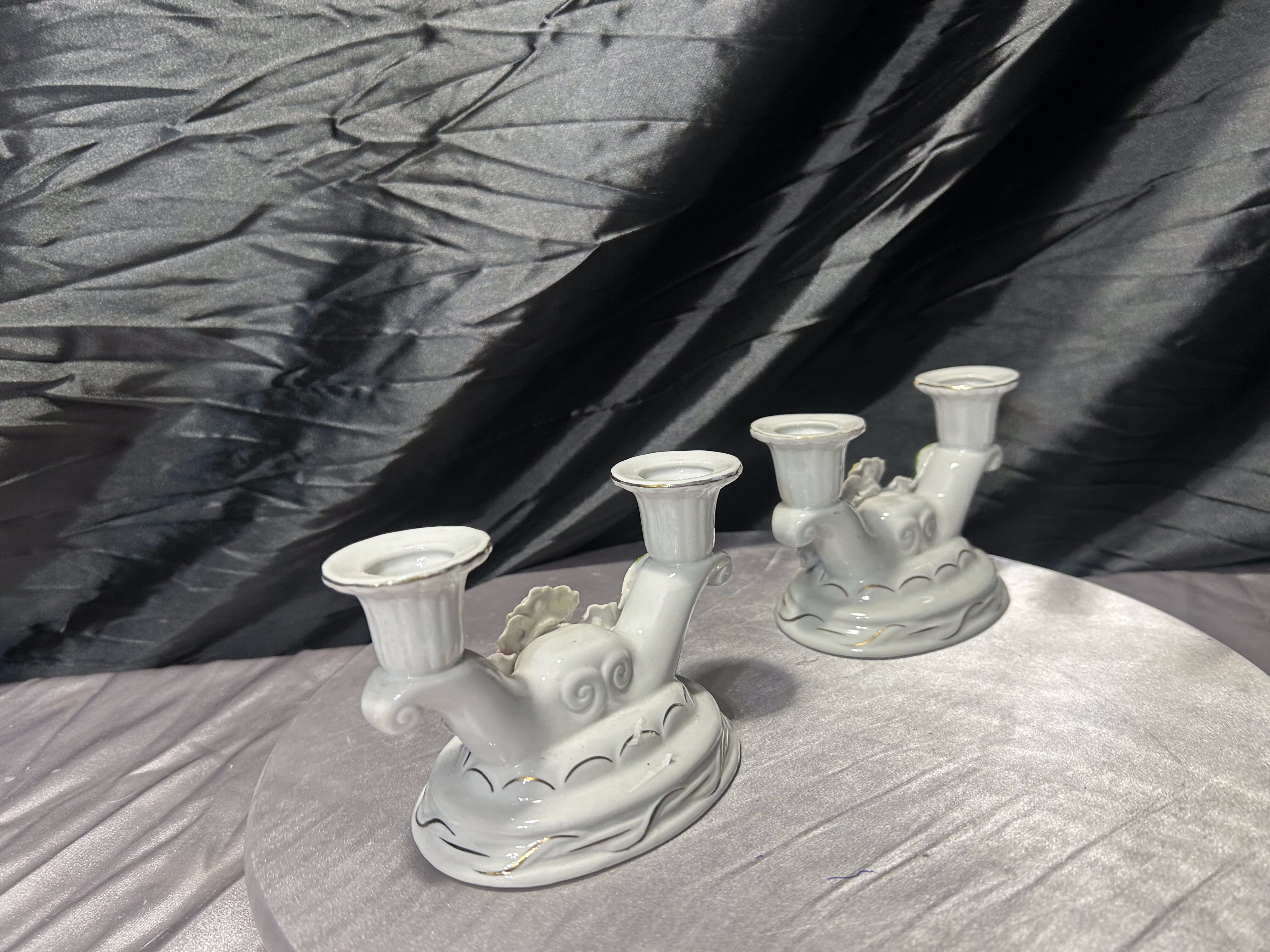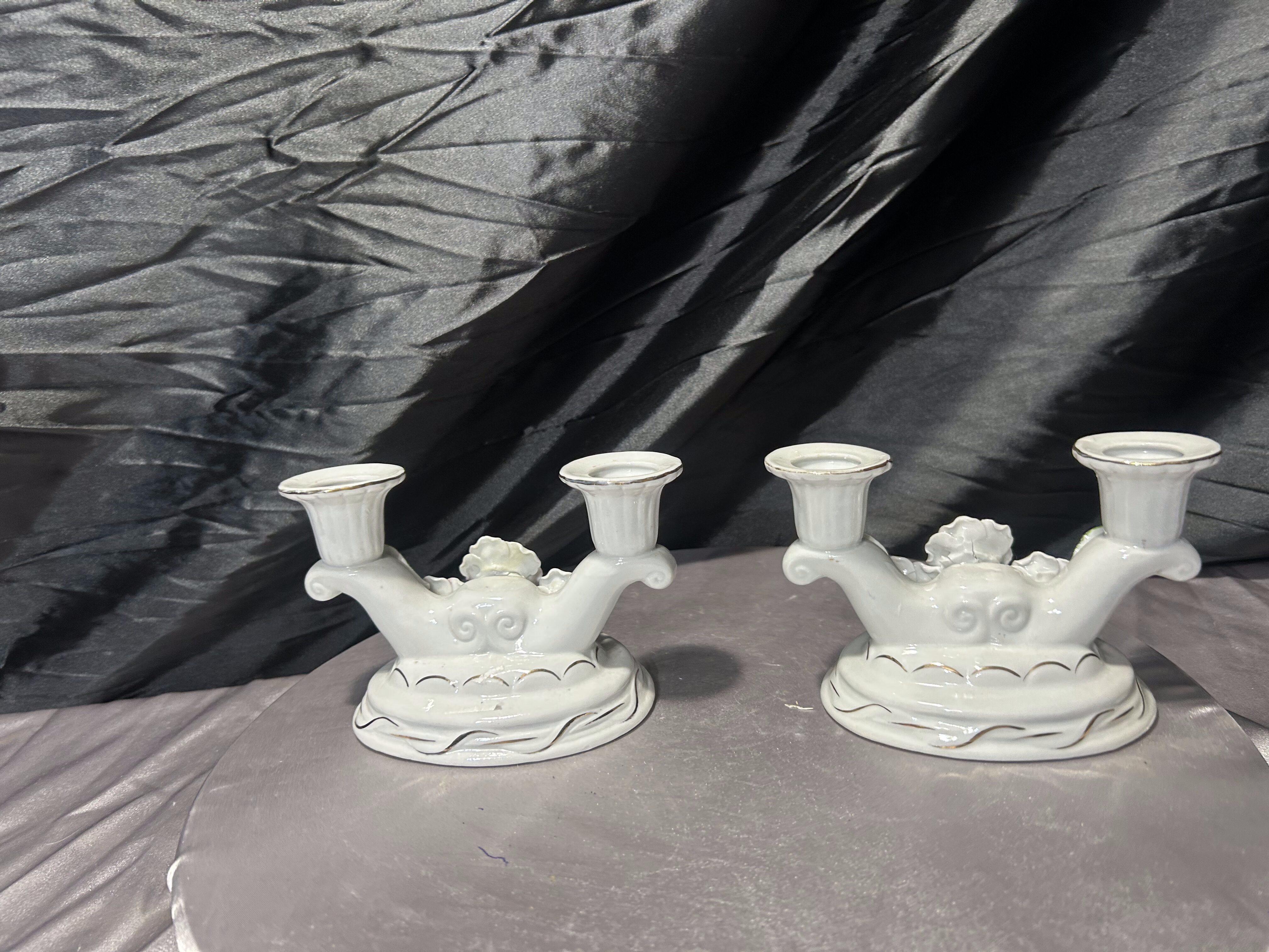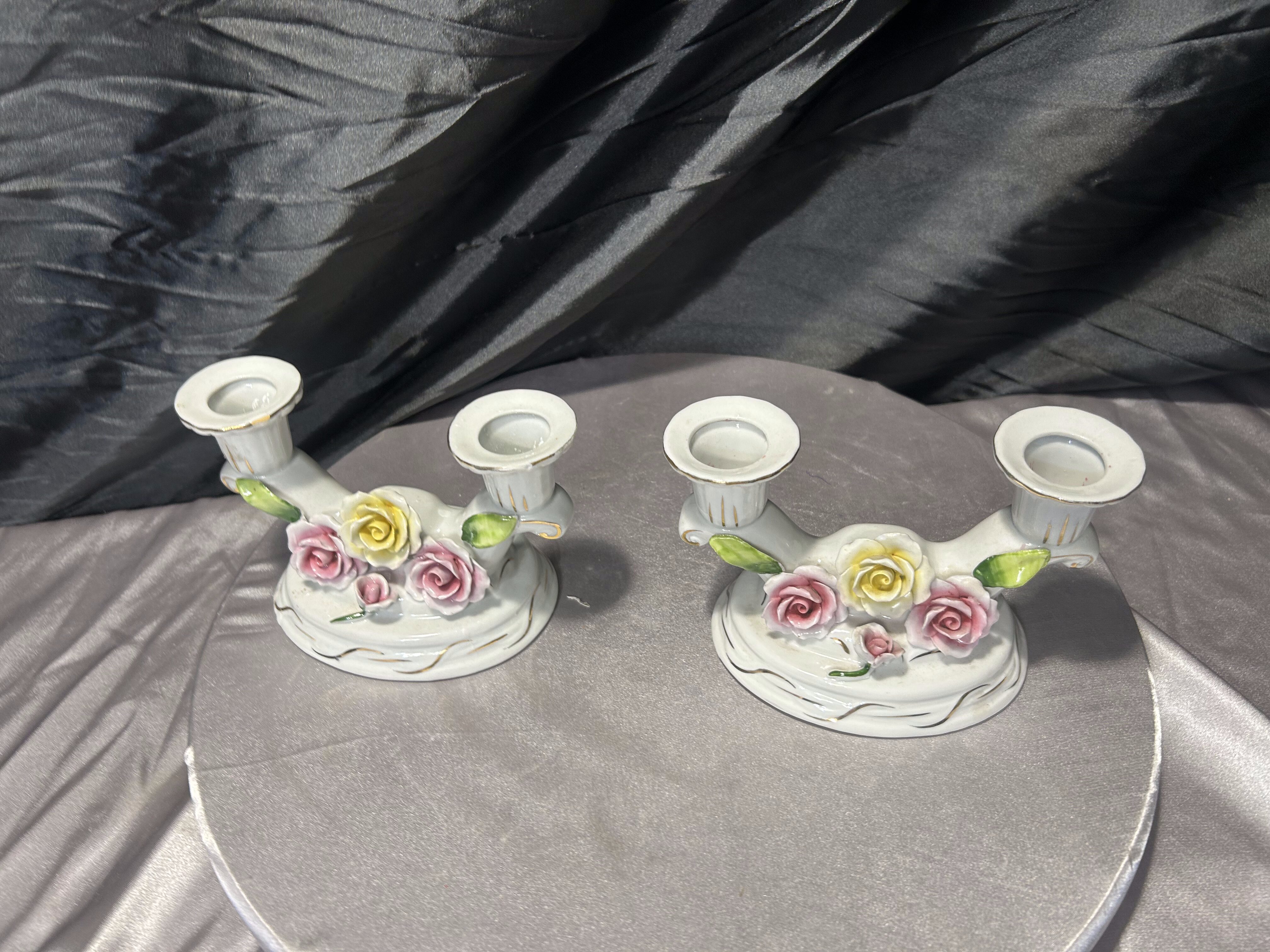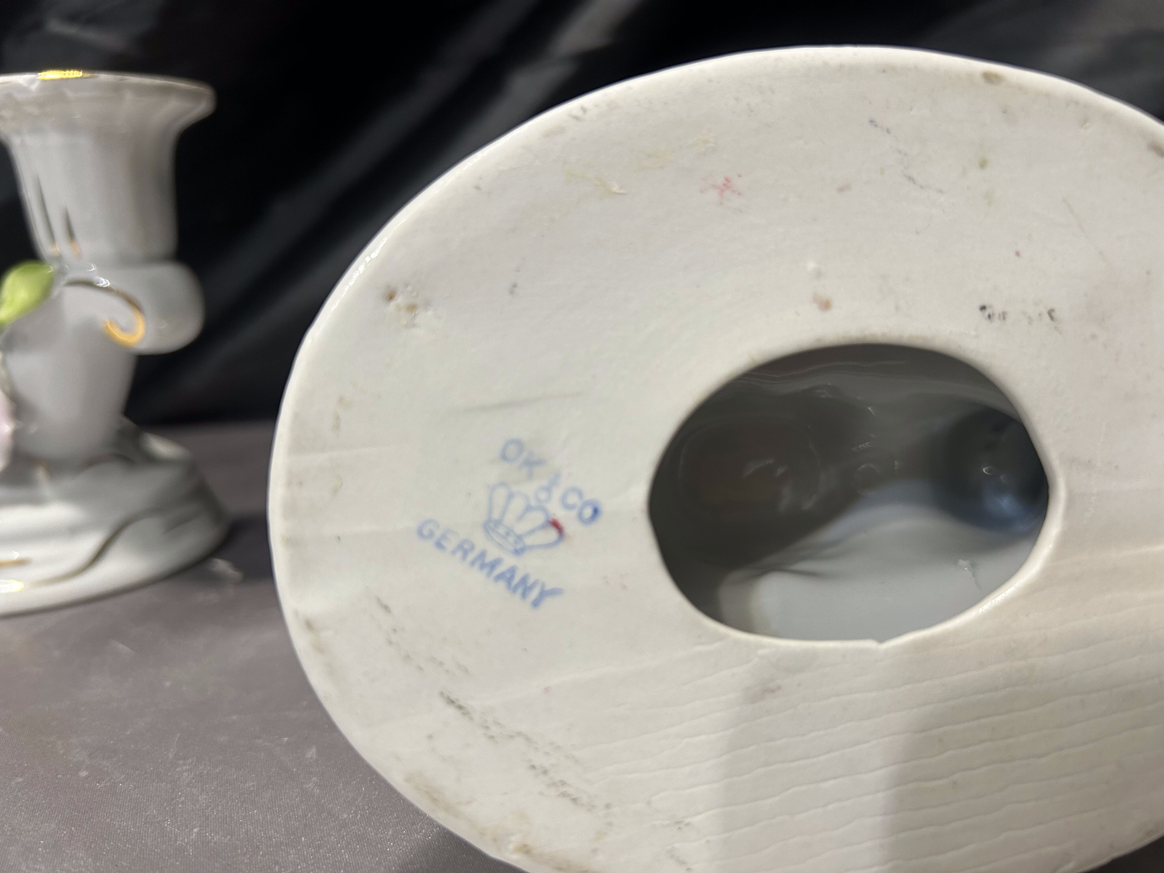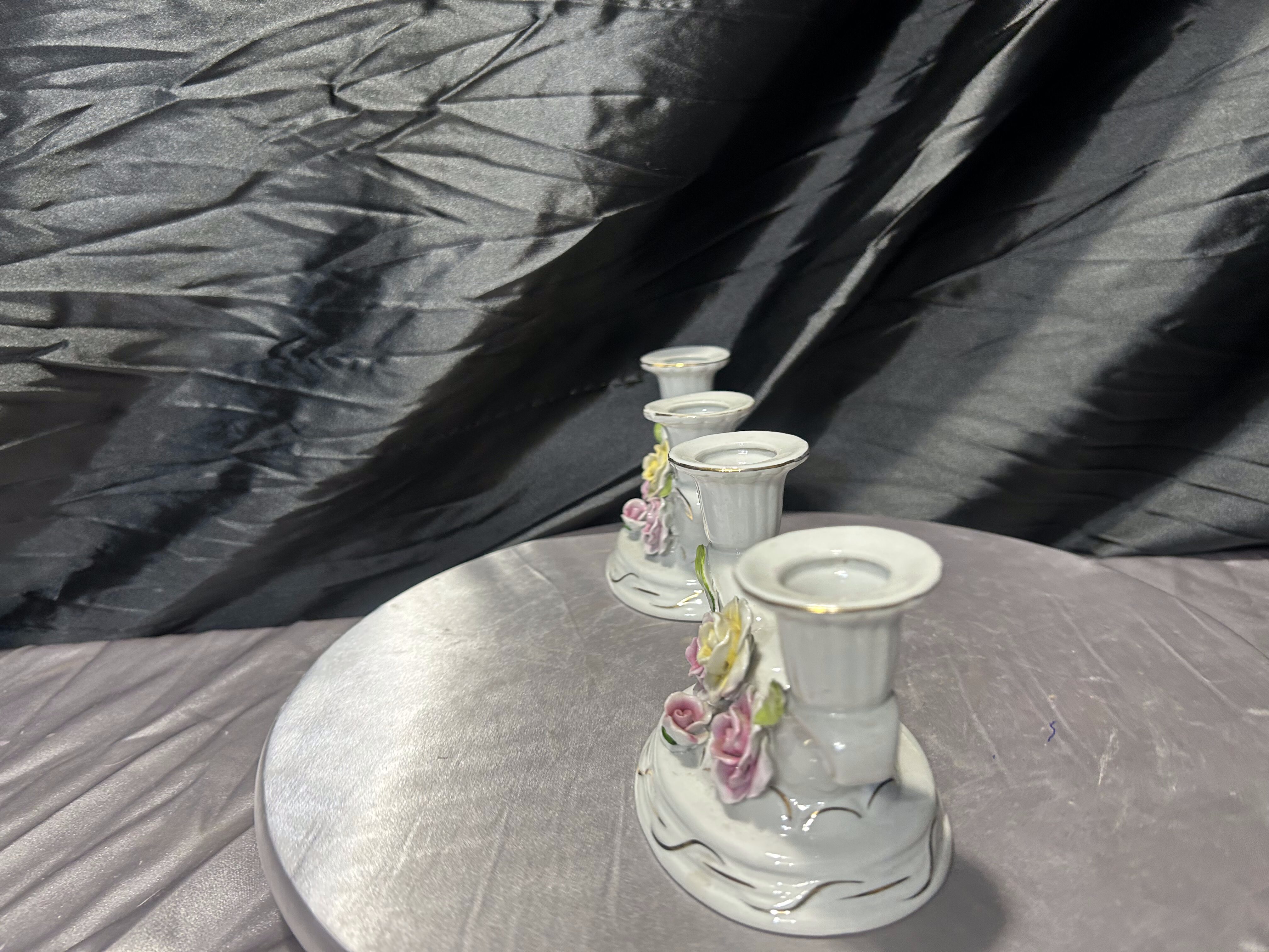 - Świeczniki porcelanowe – Germany OK & Co – komplet dwóch, dekor kwiatowy