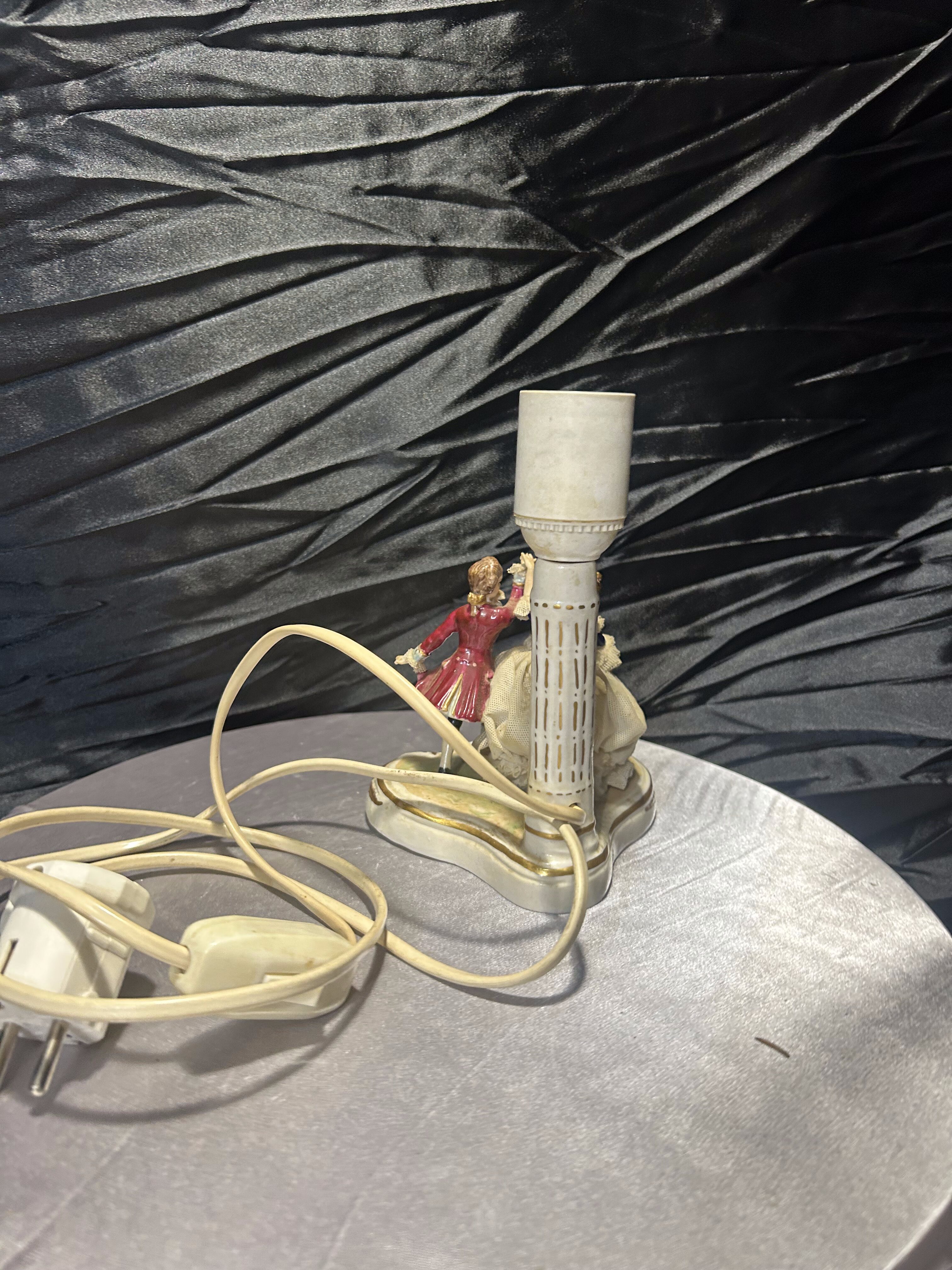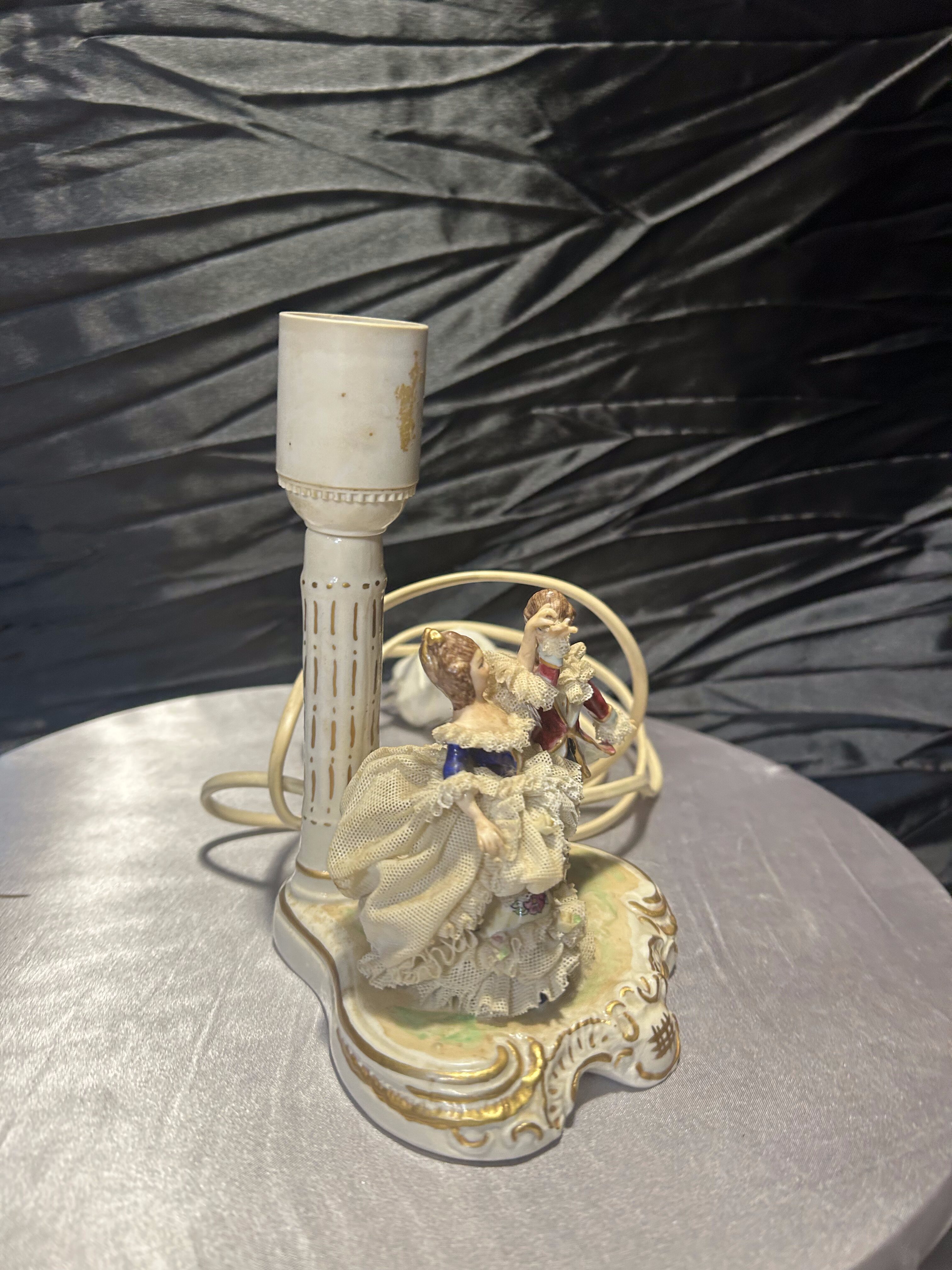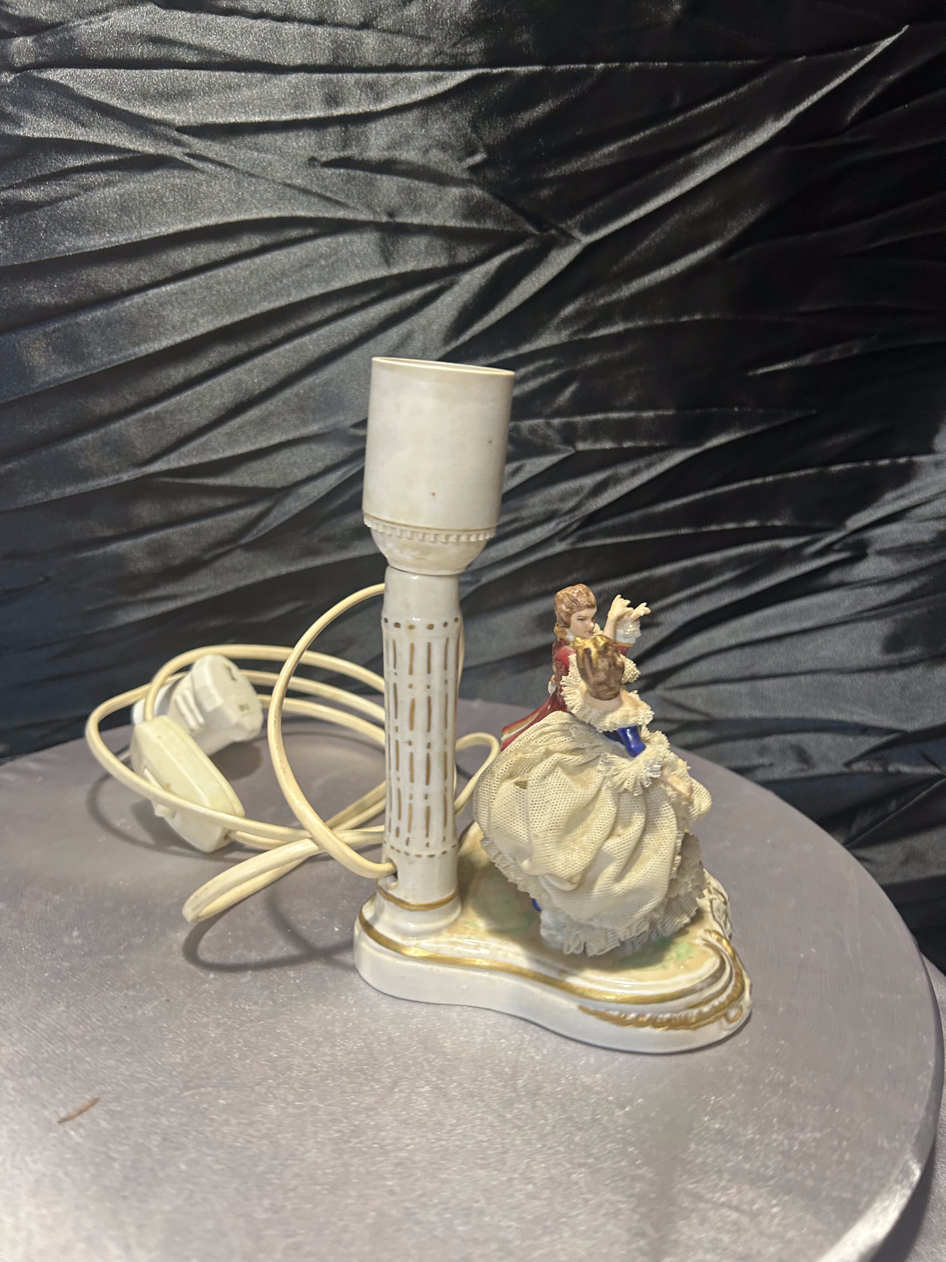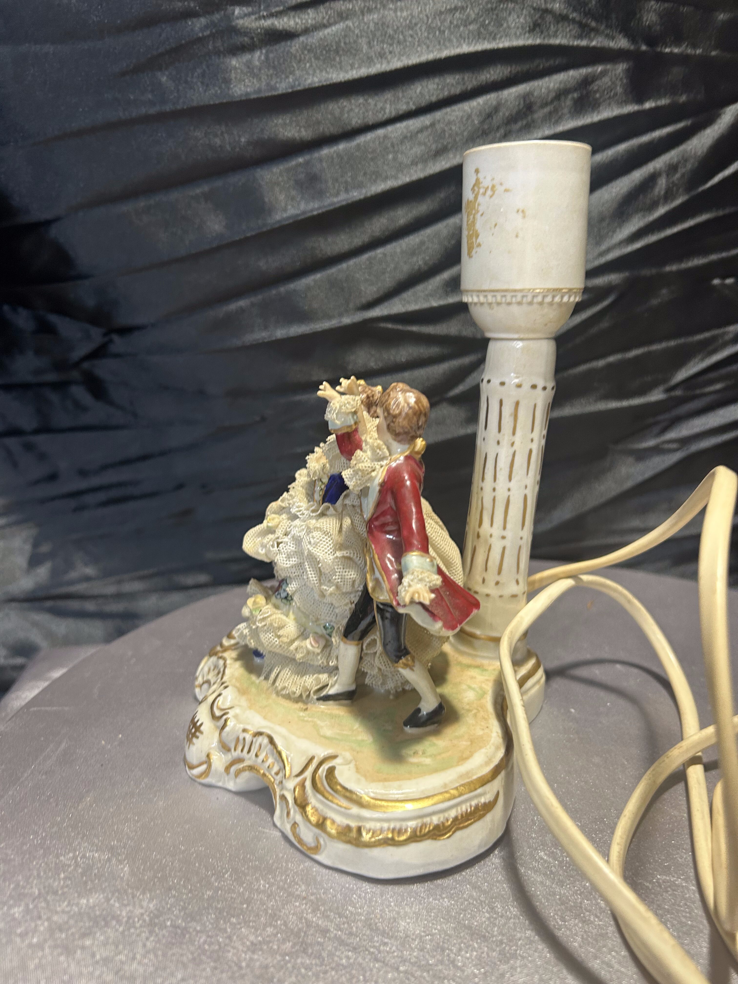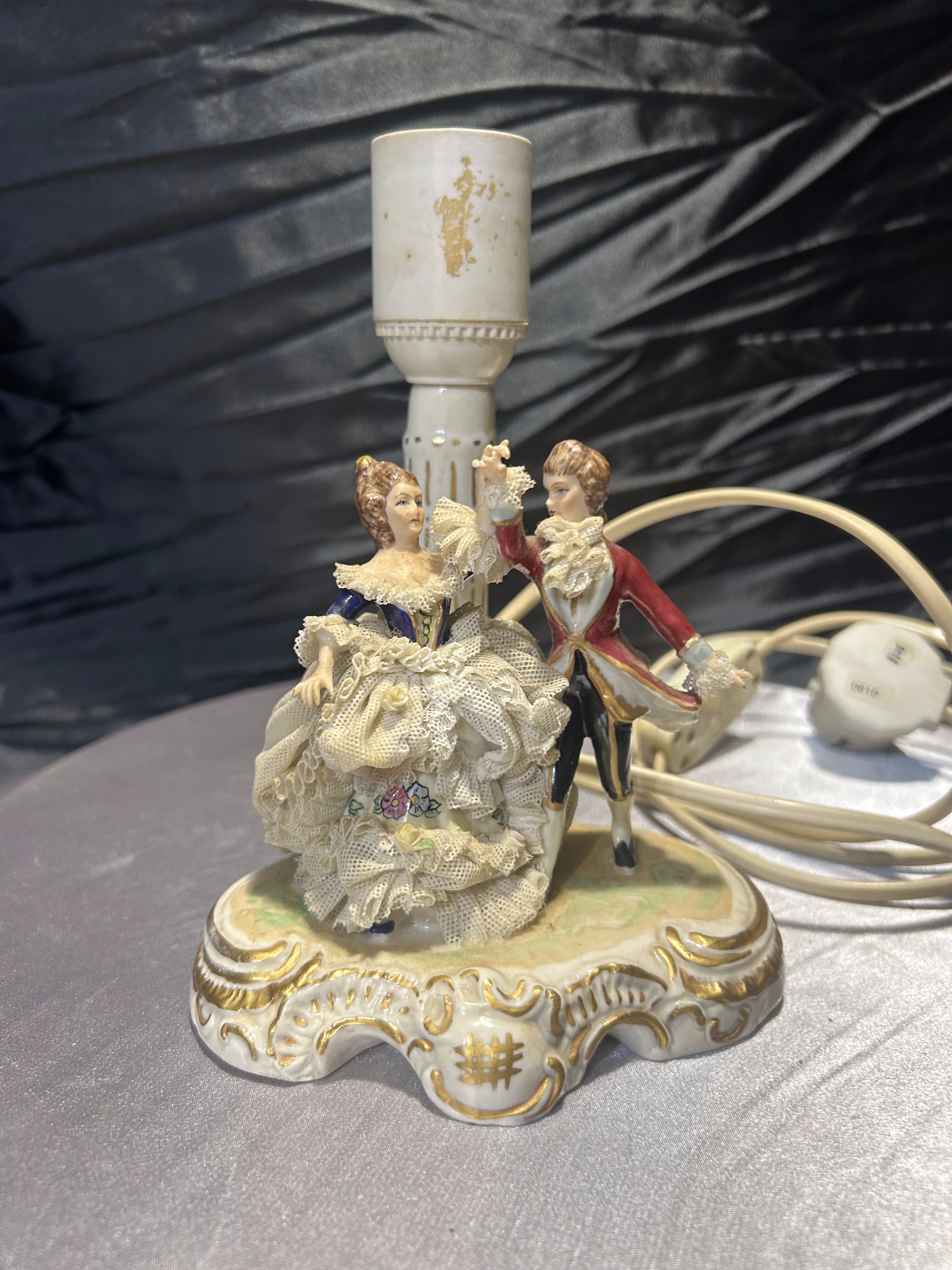 - Sygnowana lampa porcelanowa z tańczącą parą – unikatowa dekoracja – Dresden styl