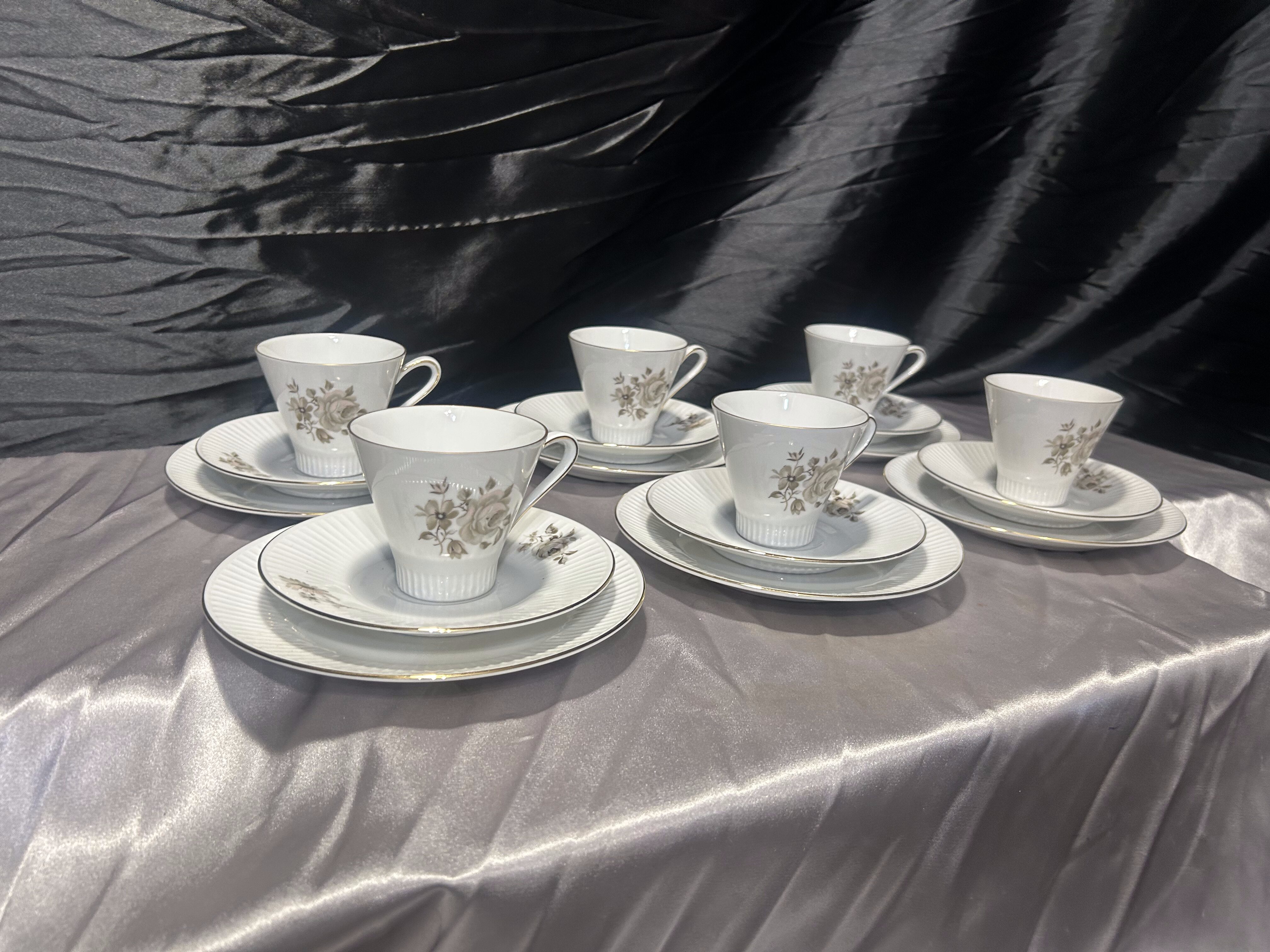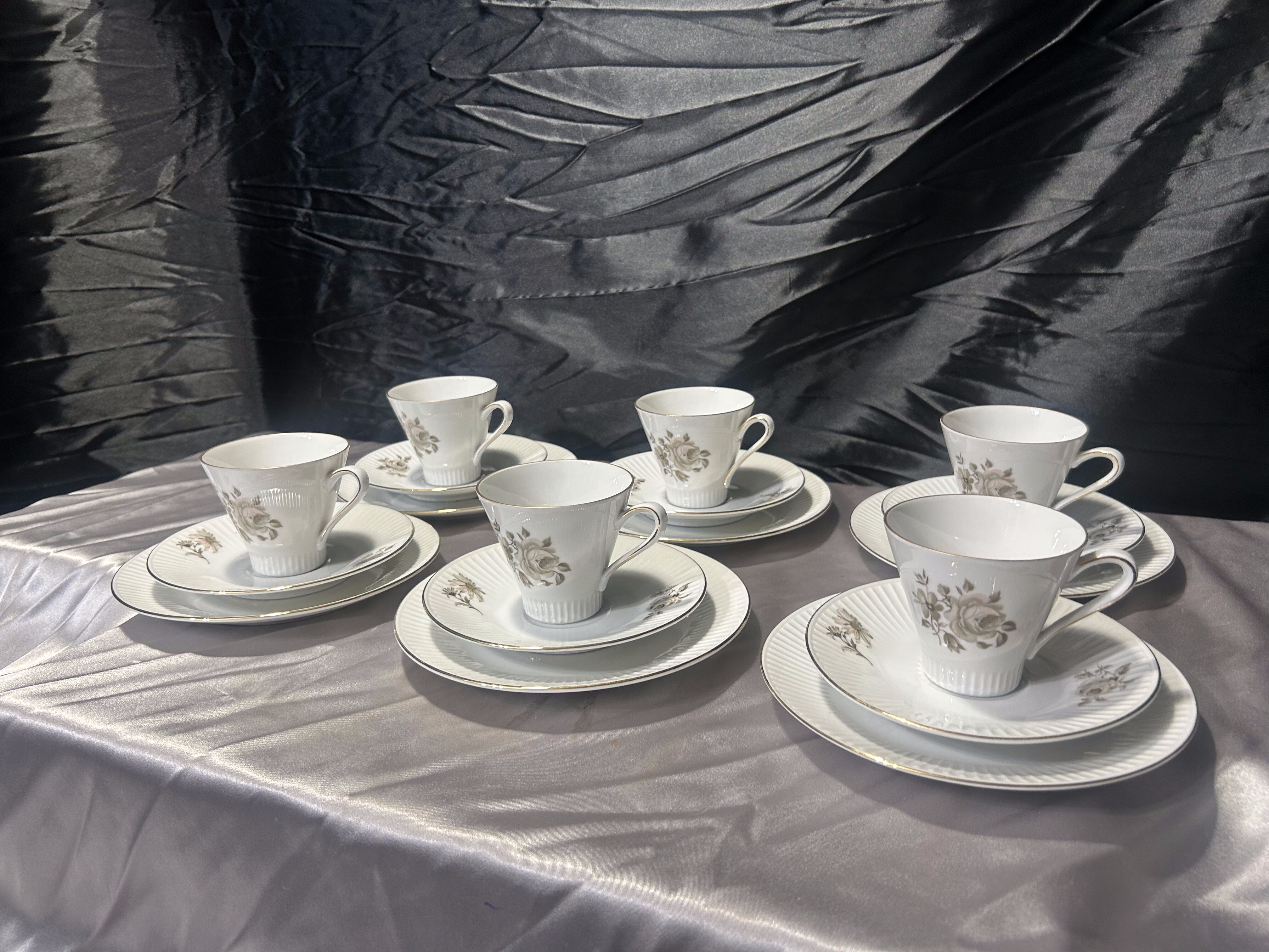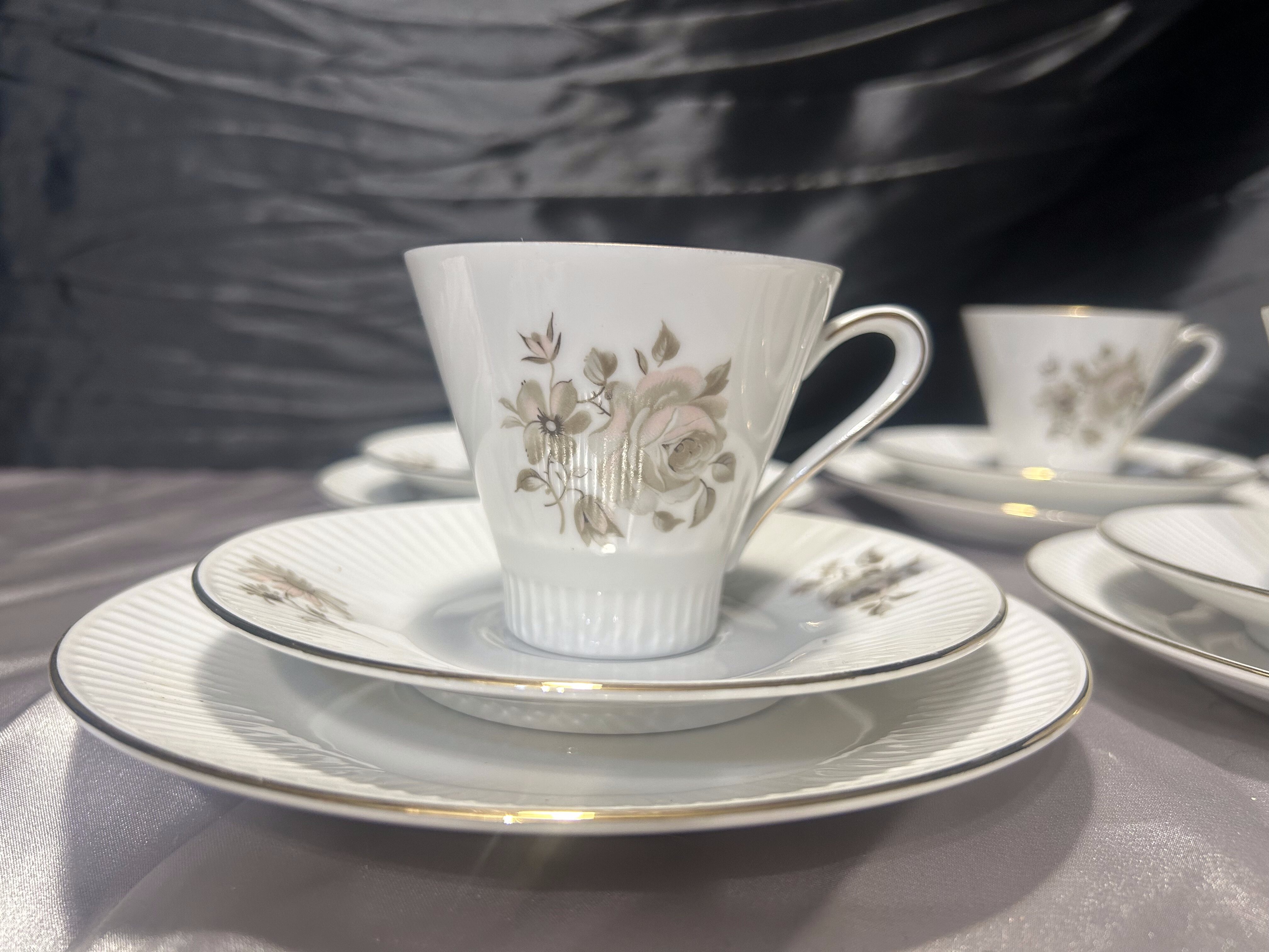 - Sześć filiżanek trio Bavaria Eschenbach – porcelana niemiecka – klasyczna elegancja