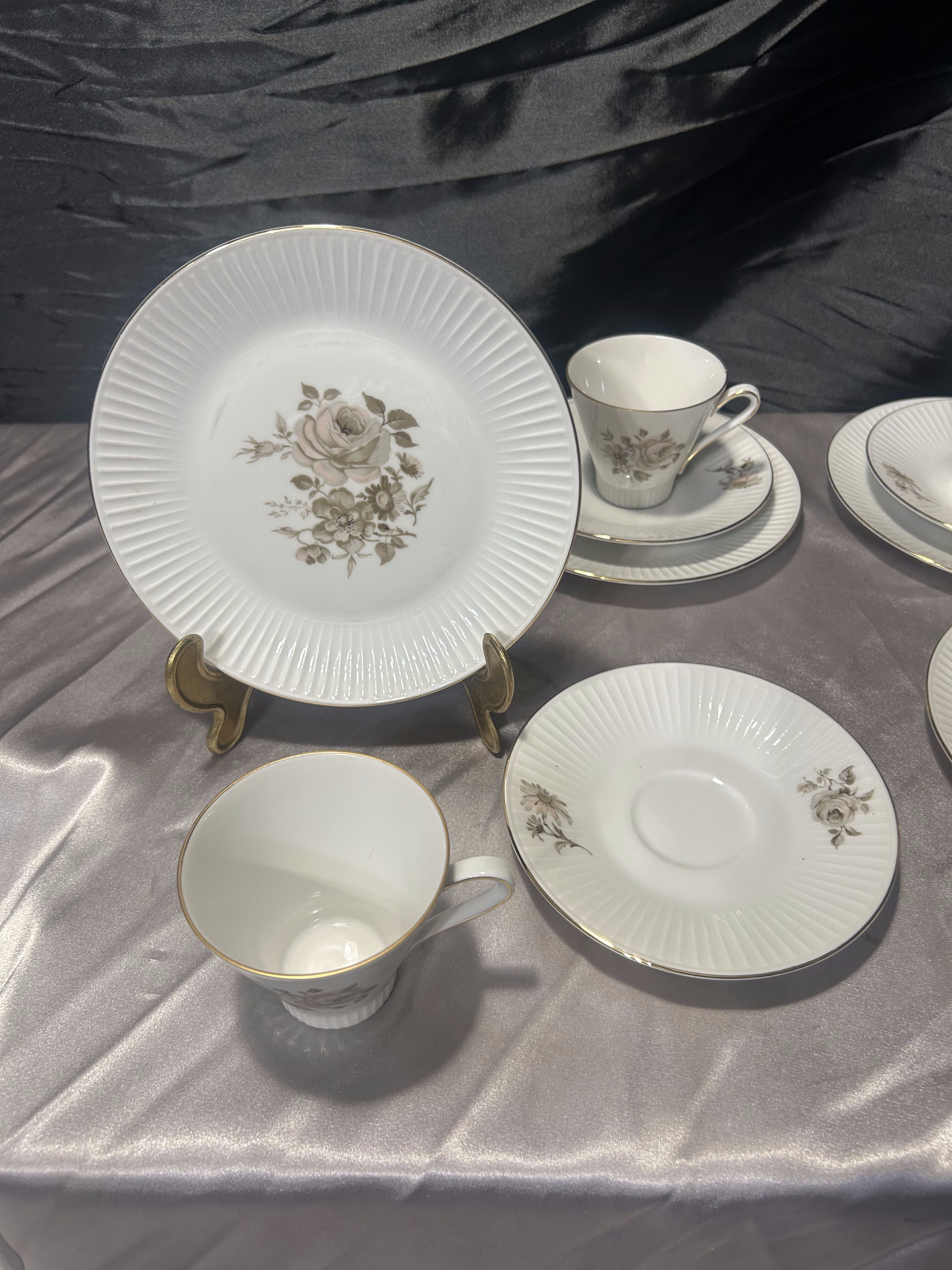 Elegancki komplet sześciu filiżanek typu trio, wykonanych z wysokiej jakości porcelany niemieckiej, sygnowanych Eschenbach Bavaria. Subtelna forma, delikatna dekoracja kwiatowa oraz złocone detale nadają całości ponadczasowy, klasyczny charakter. Zestaw idealnie sprawdzi się do serwowania kawy lub herbaty, zarówno na co dzień, jak i podczas spotkań w bardziej eleganckim gronie.
