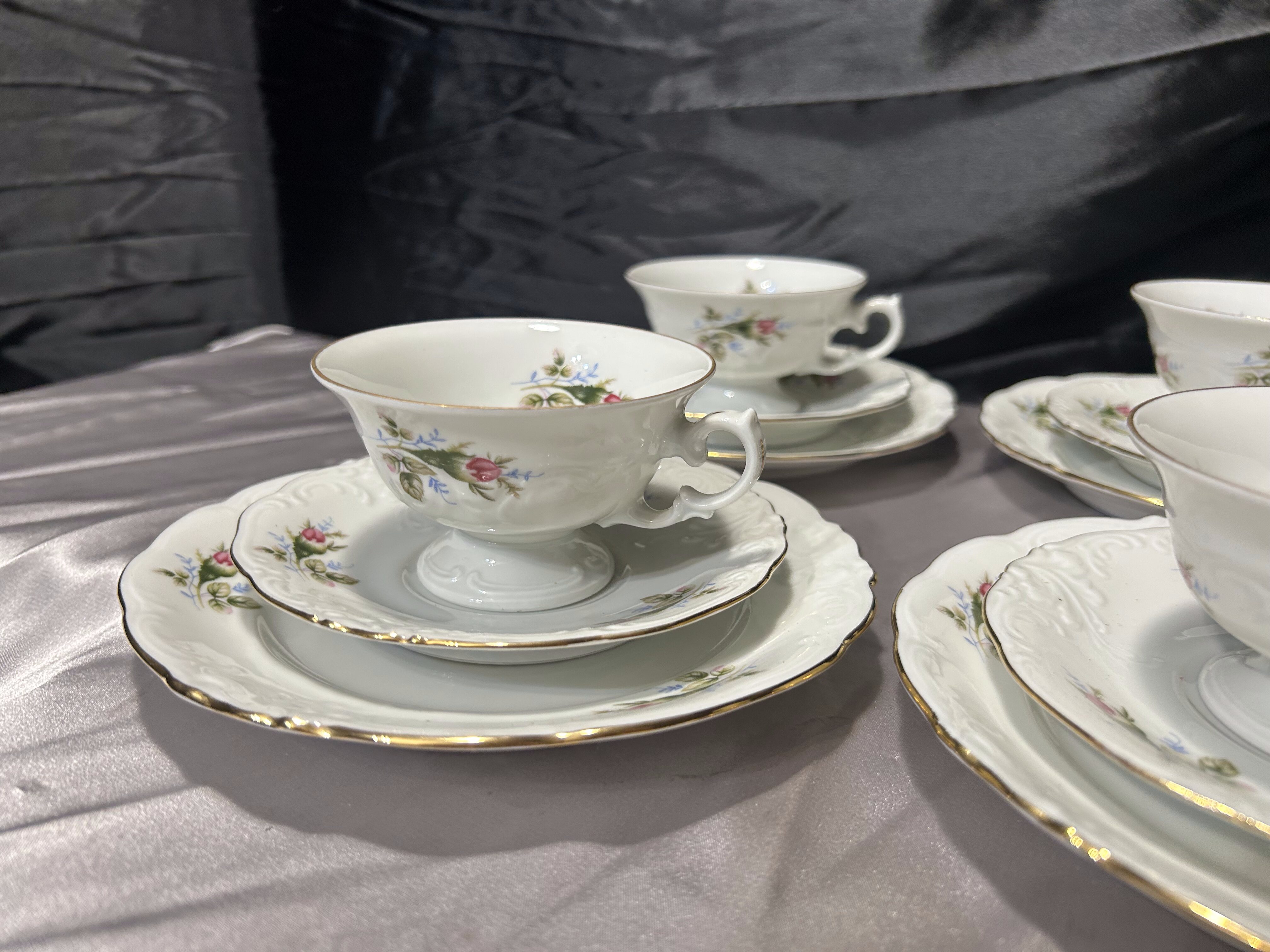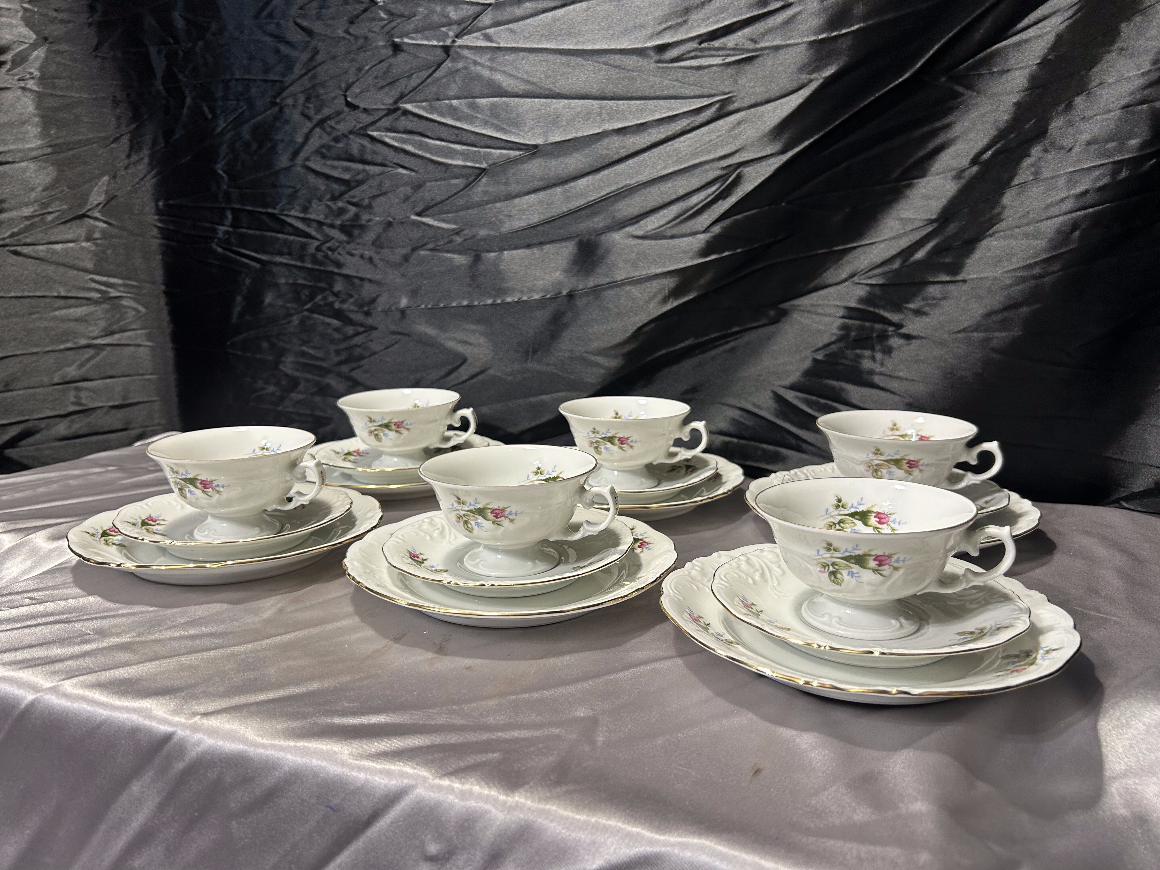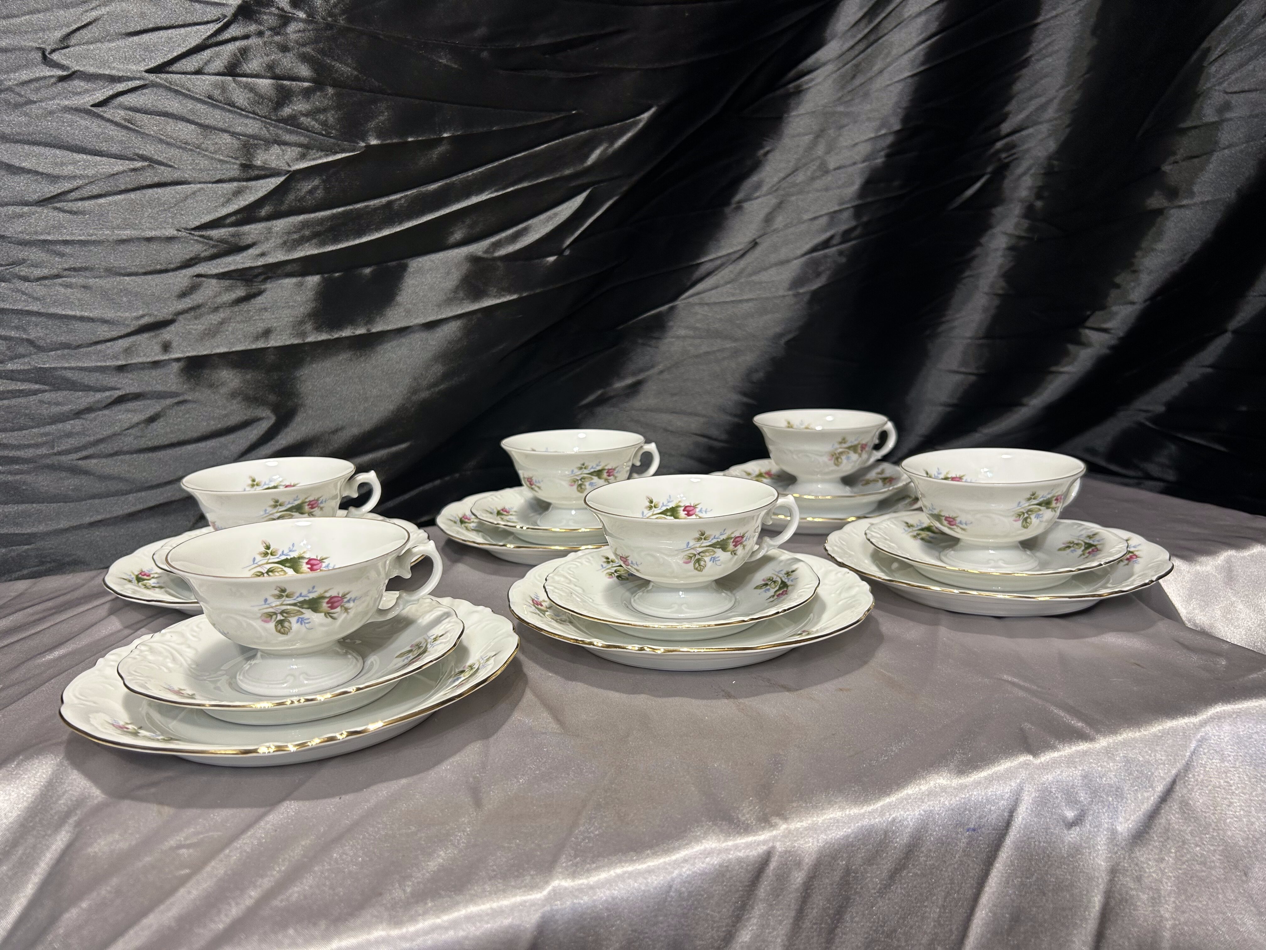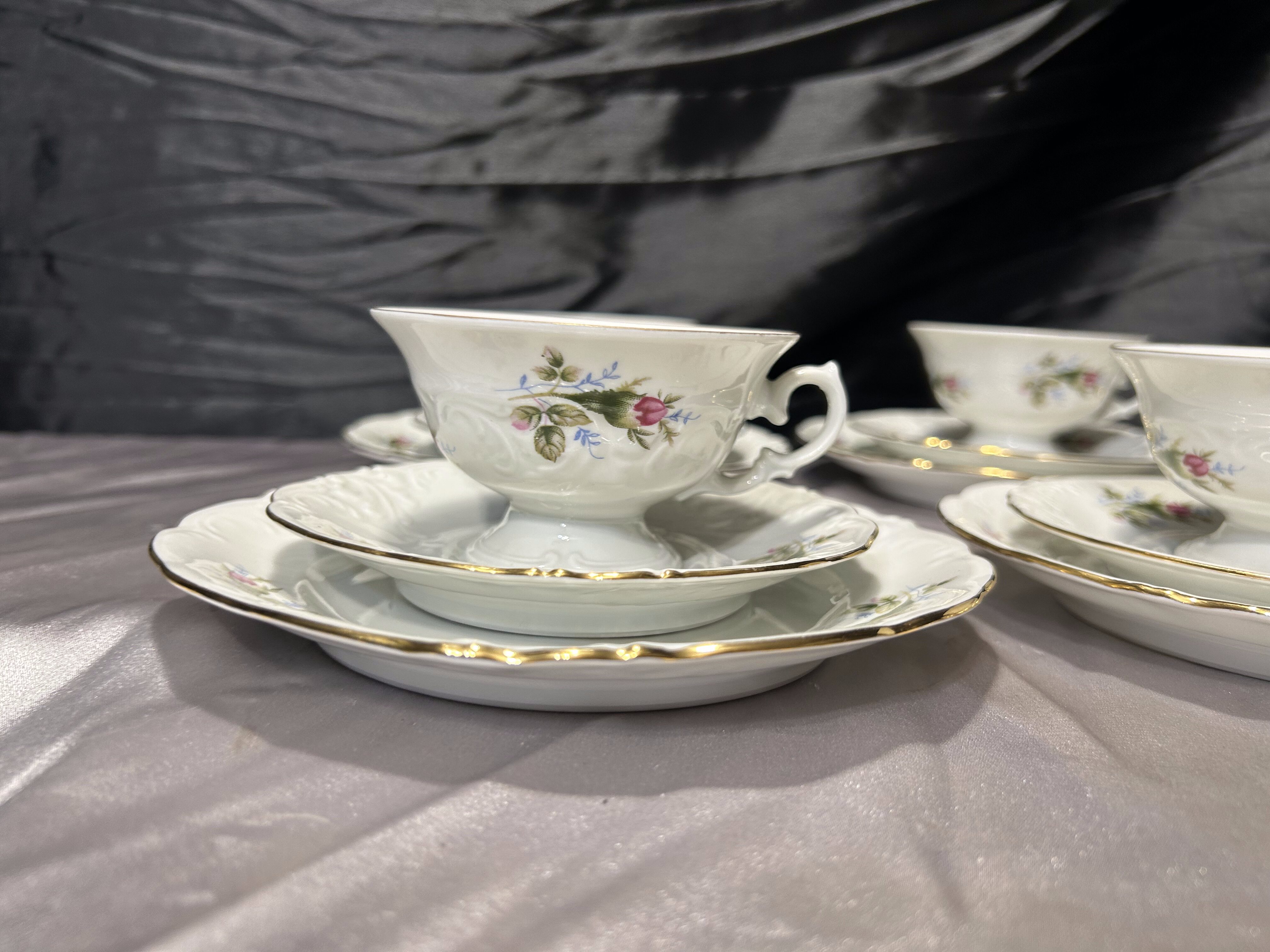 - Sześć filiżanek Trio Wałbrzych – Polska porcelana – klasyczny kwiatowy wzór
