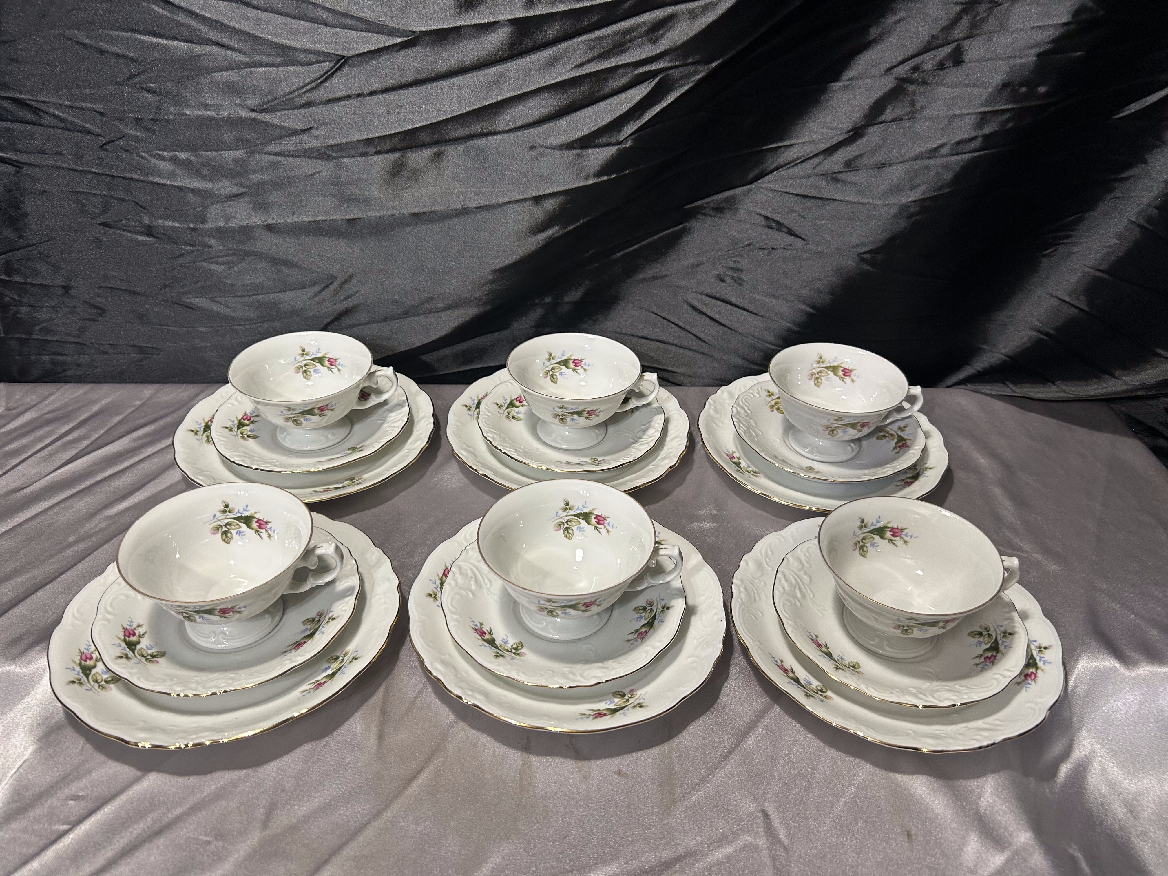 Sześć filiżanek Trio Wałbrzych – Polska porcelana – klasyczny kwiatowy wzór