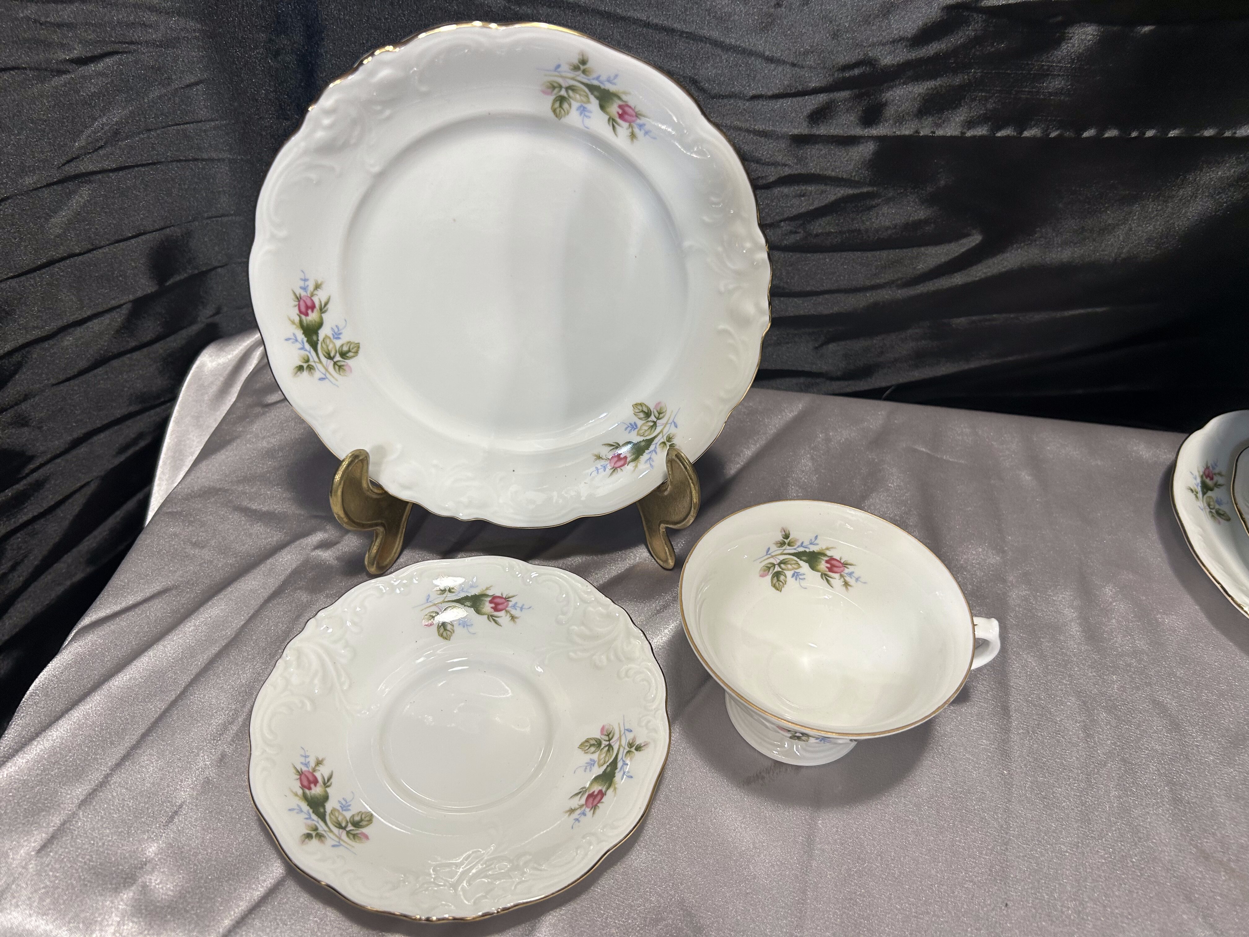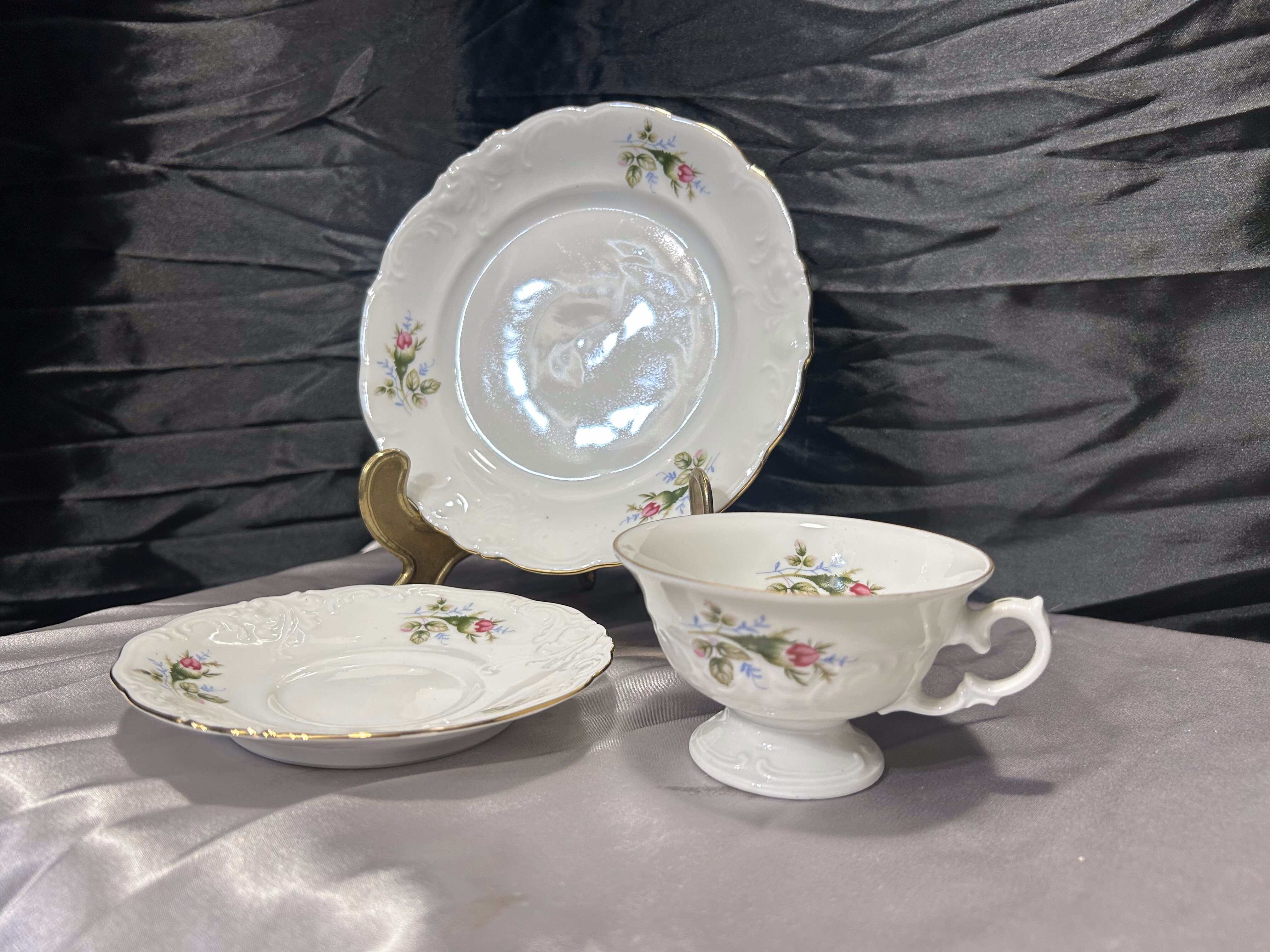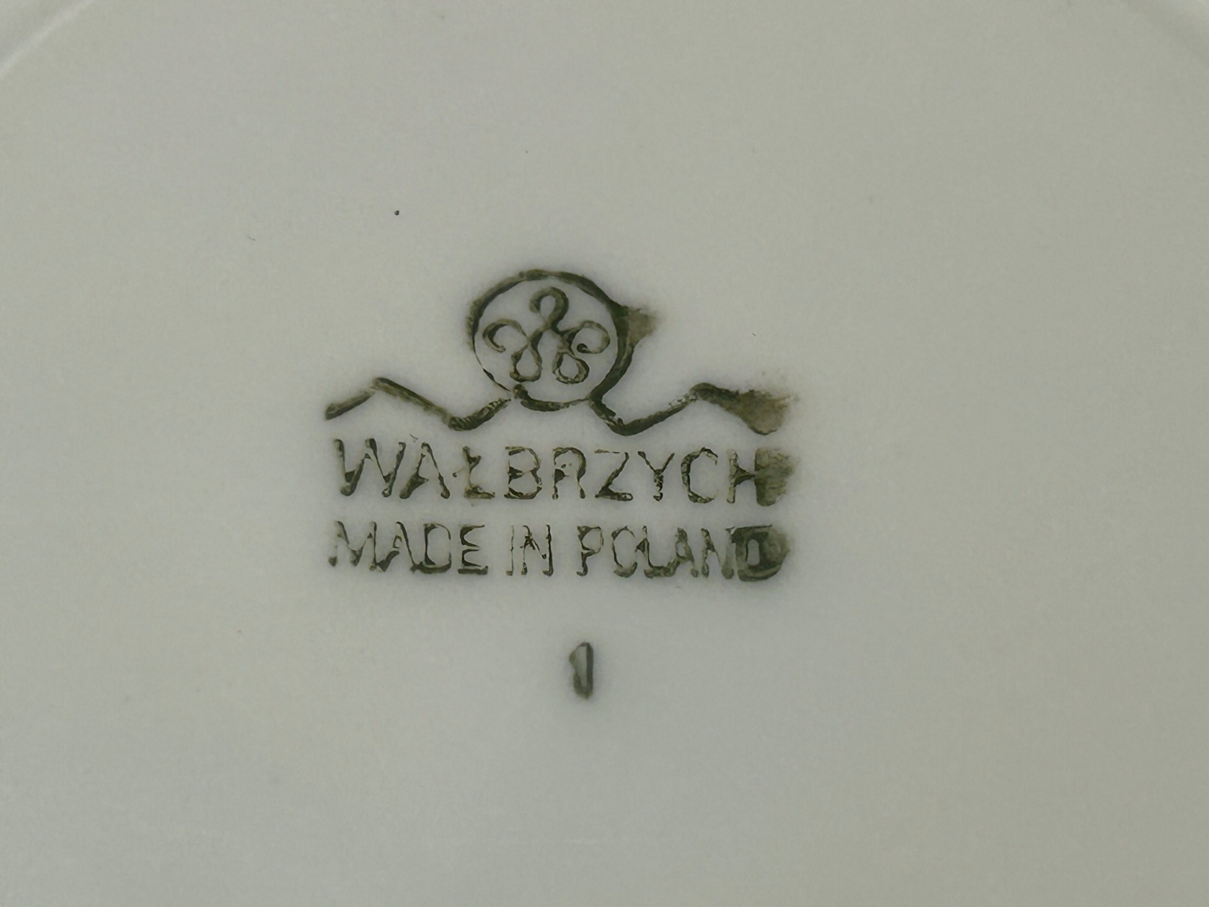 Elegancki zestaw sześciu filiżanek typu Trio pochodzących z polskiej manufaktury Wałbrzych. Klasyczna forma, delikatna dekoracja kwiatowa oraz subtelne złocenia sprawiają, że komplet doskonale wpisuje się w estetykę tradycyjnych i eleganckich wnętrz.