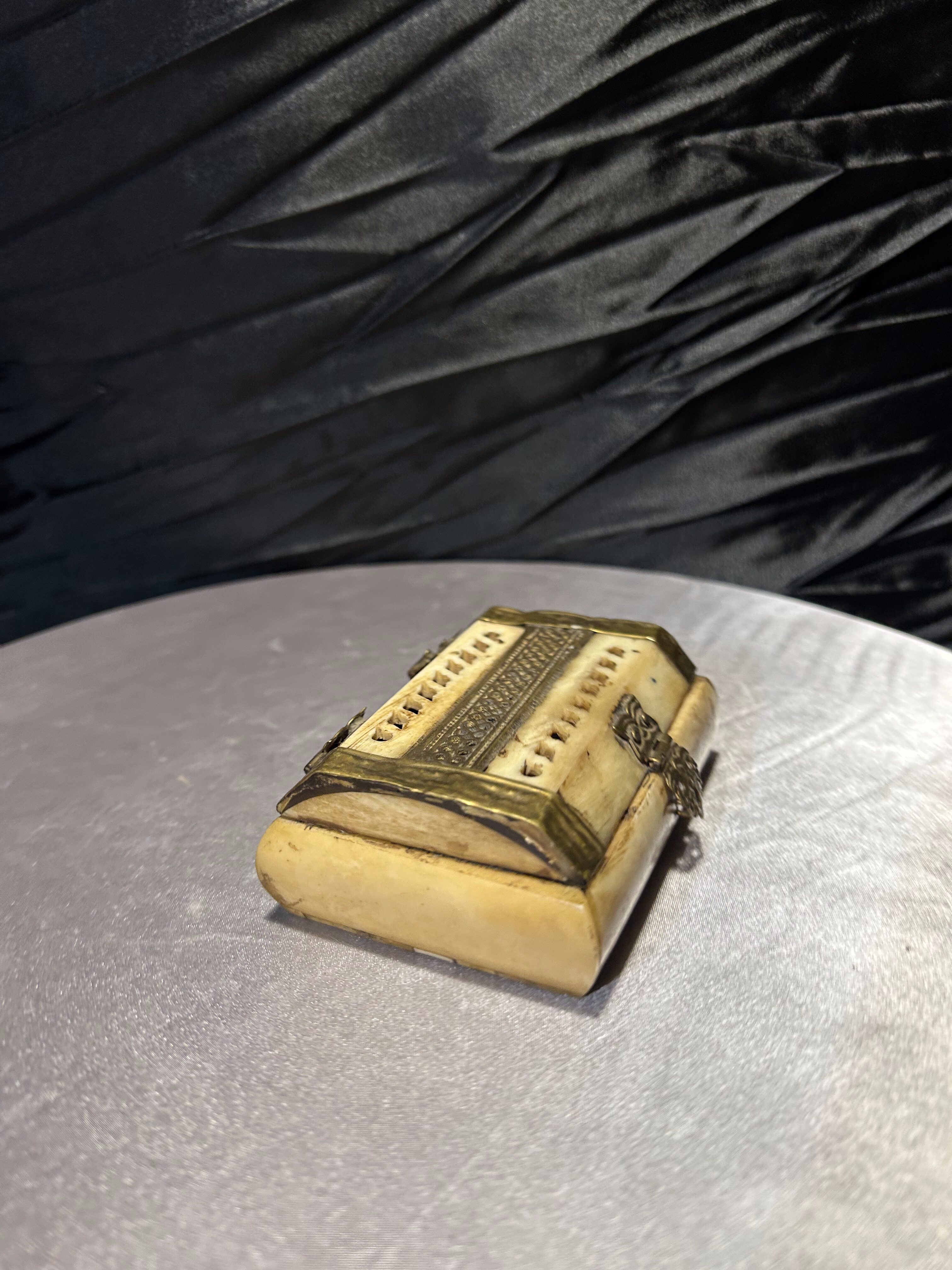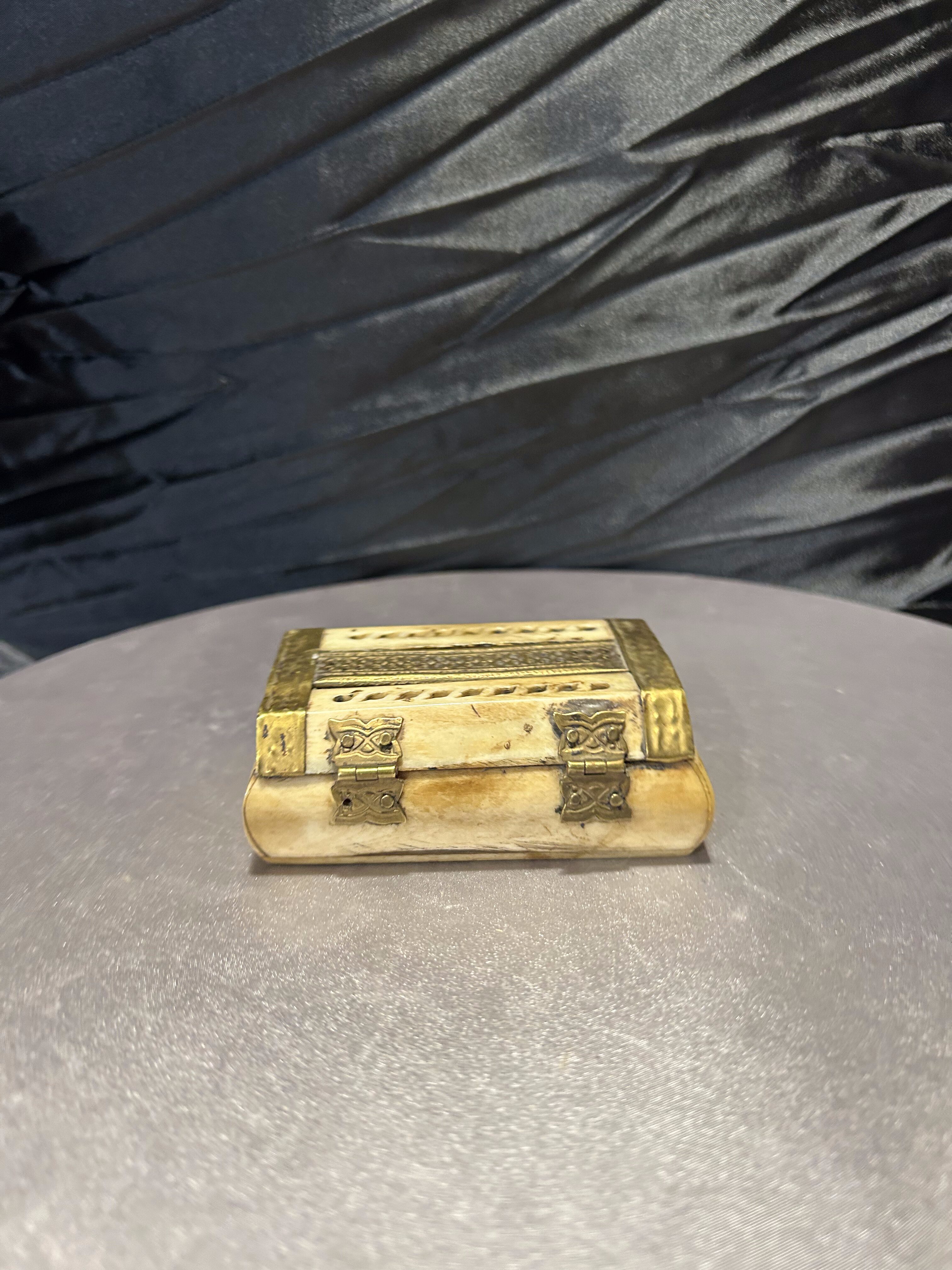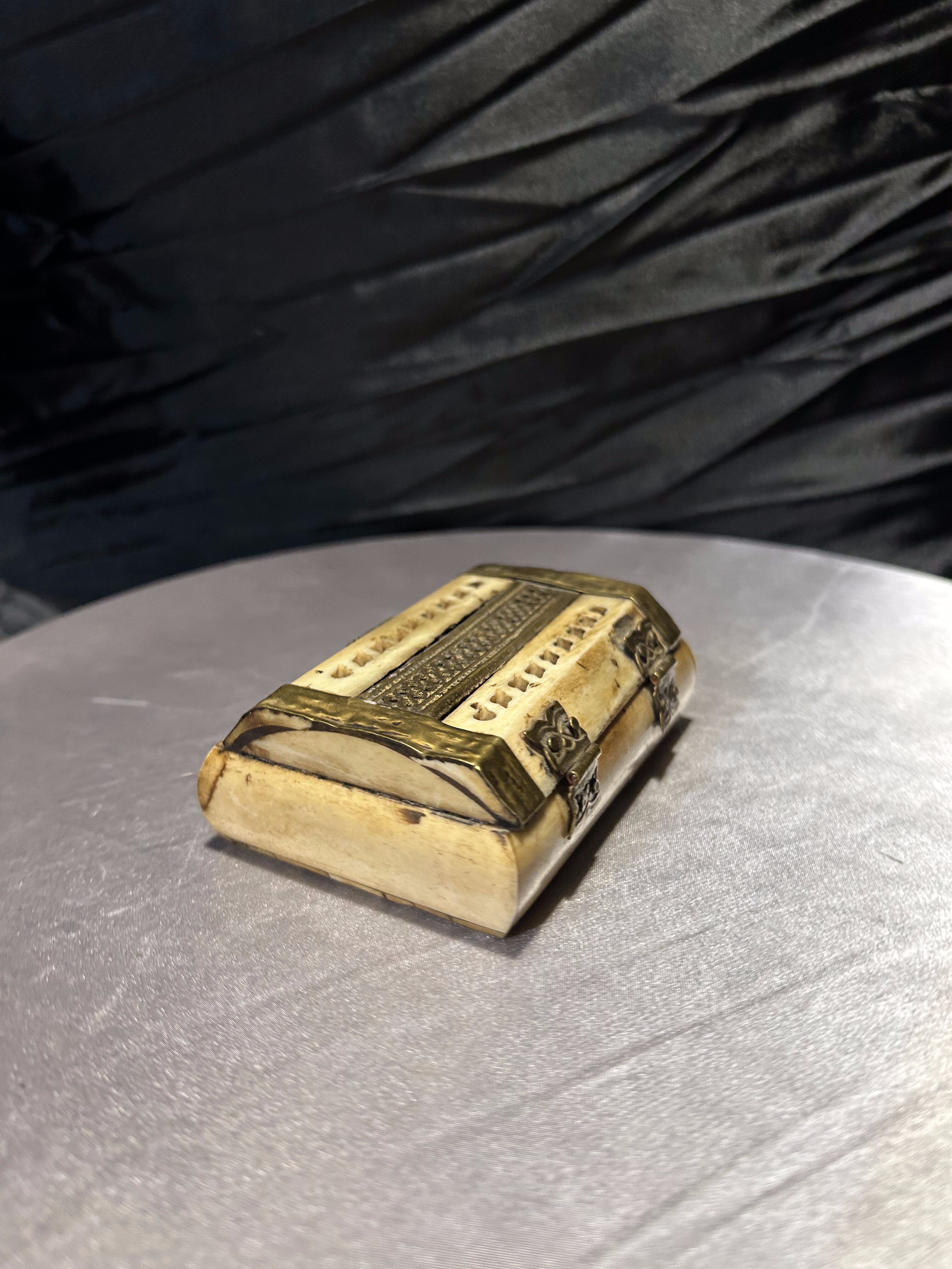 Szkatułka z kości i mosiądzu – ażurowa – ręczne wykonanie