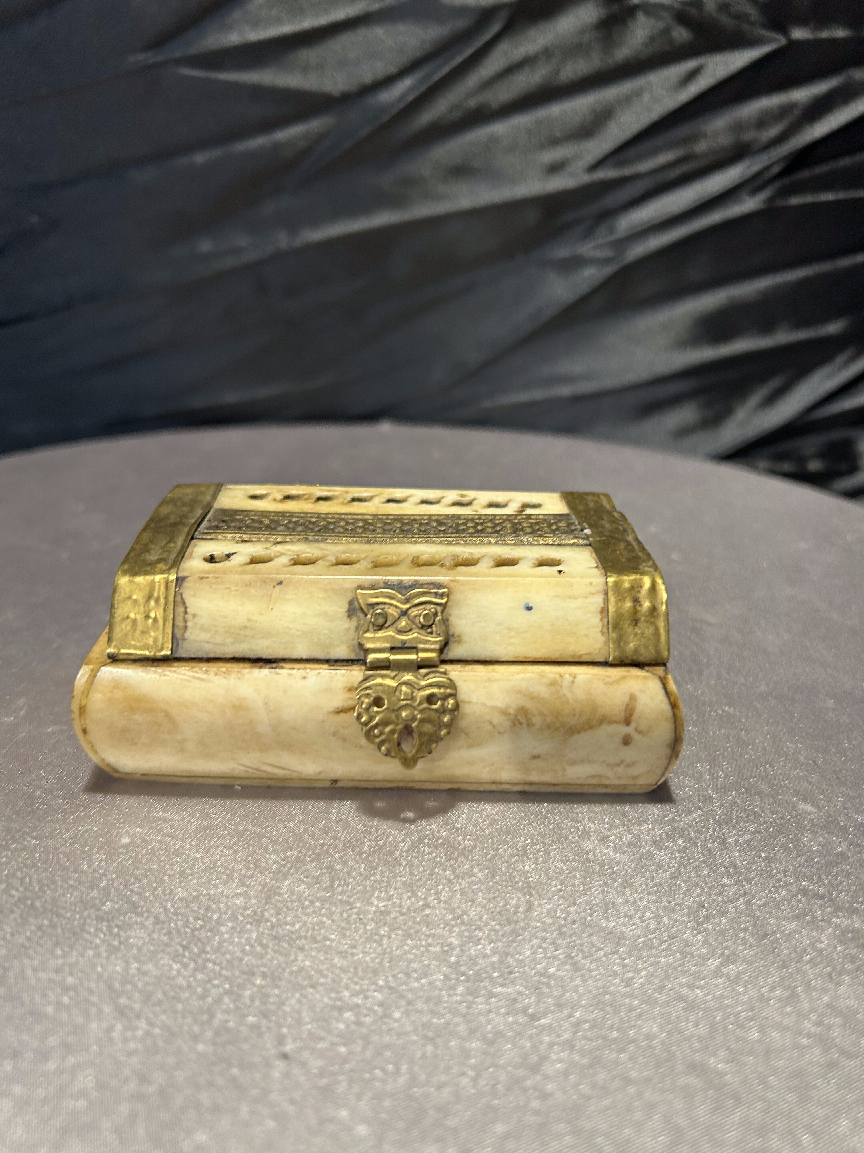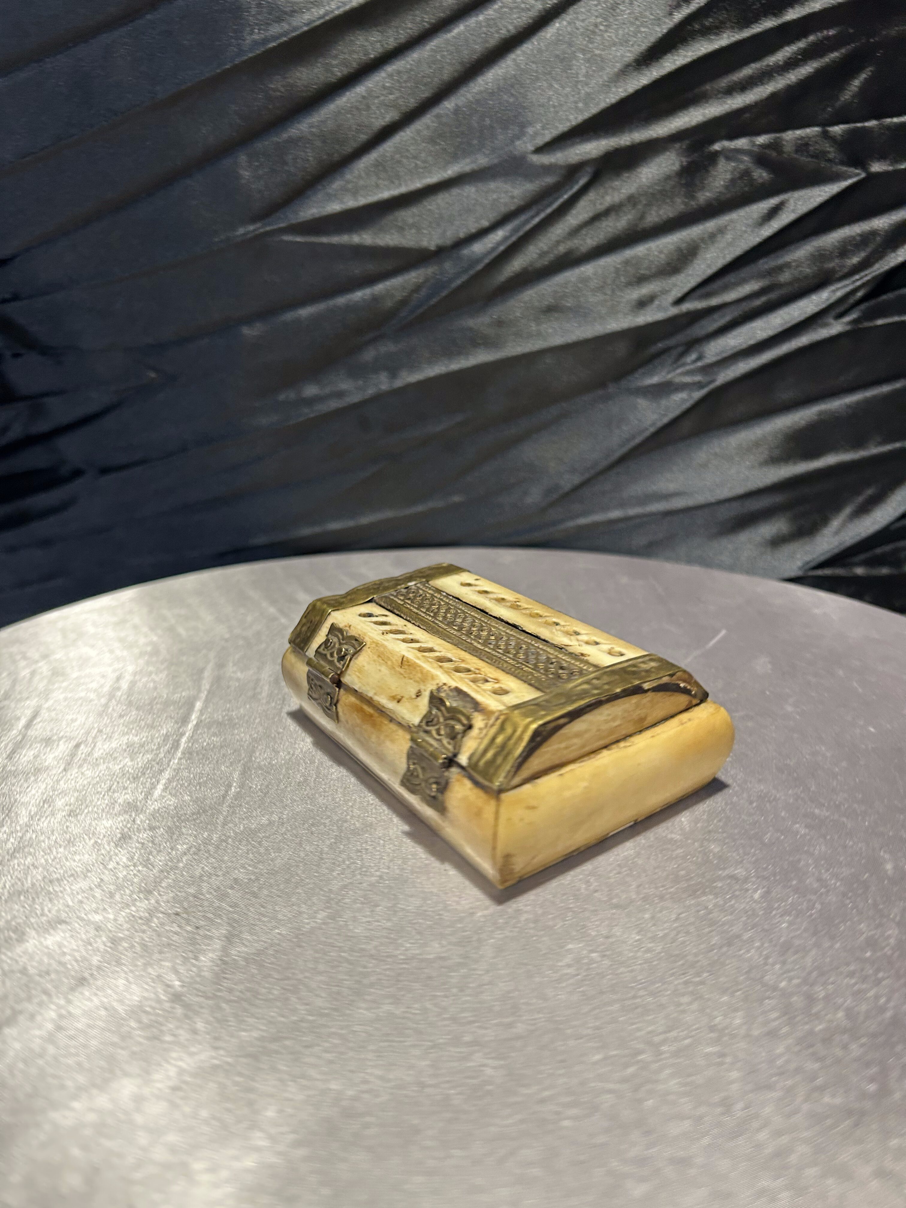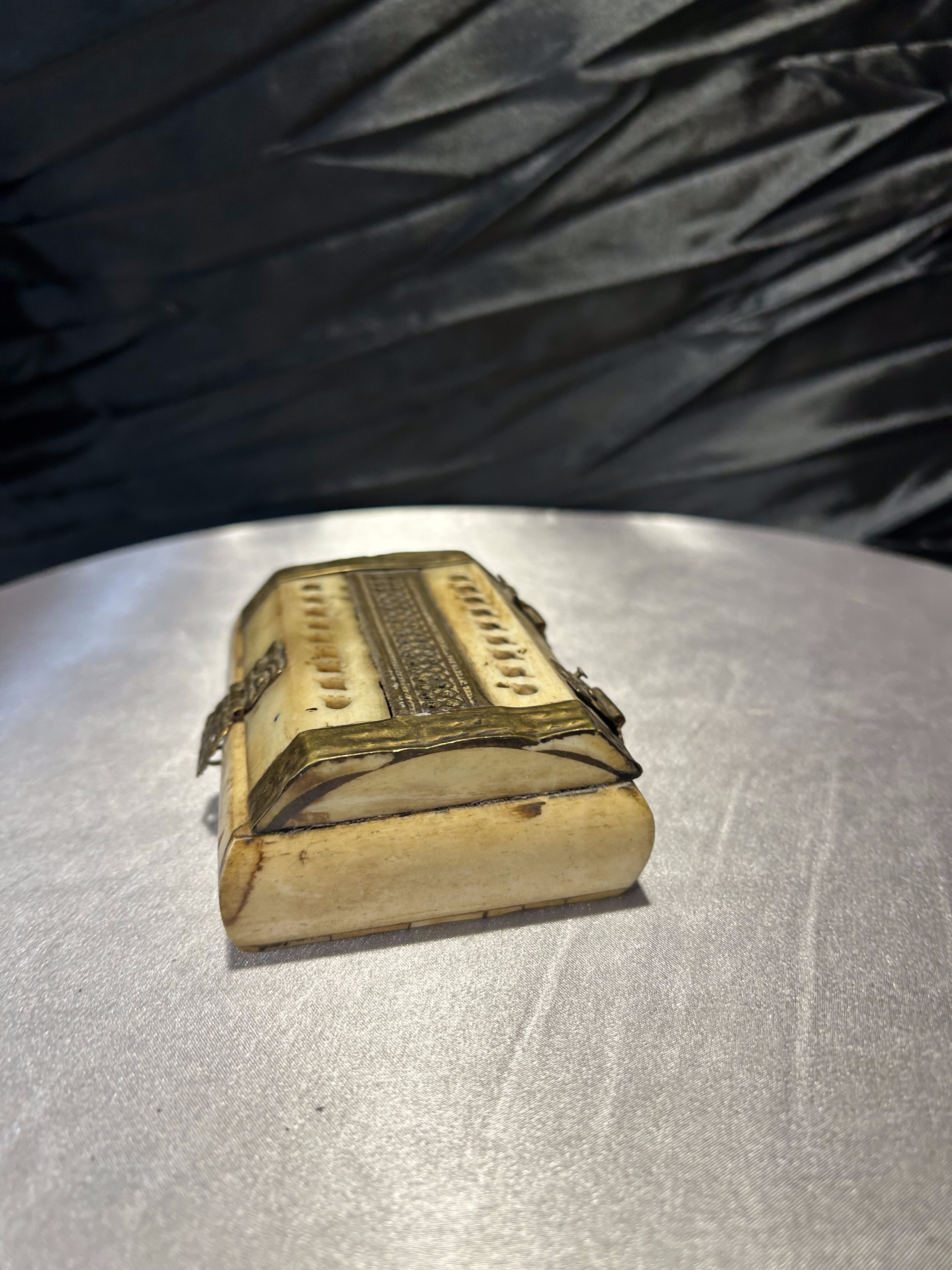 Szkatułka z kości i mosiądzu – ażurowa – ręczne wykonanie