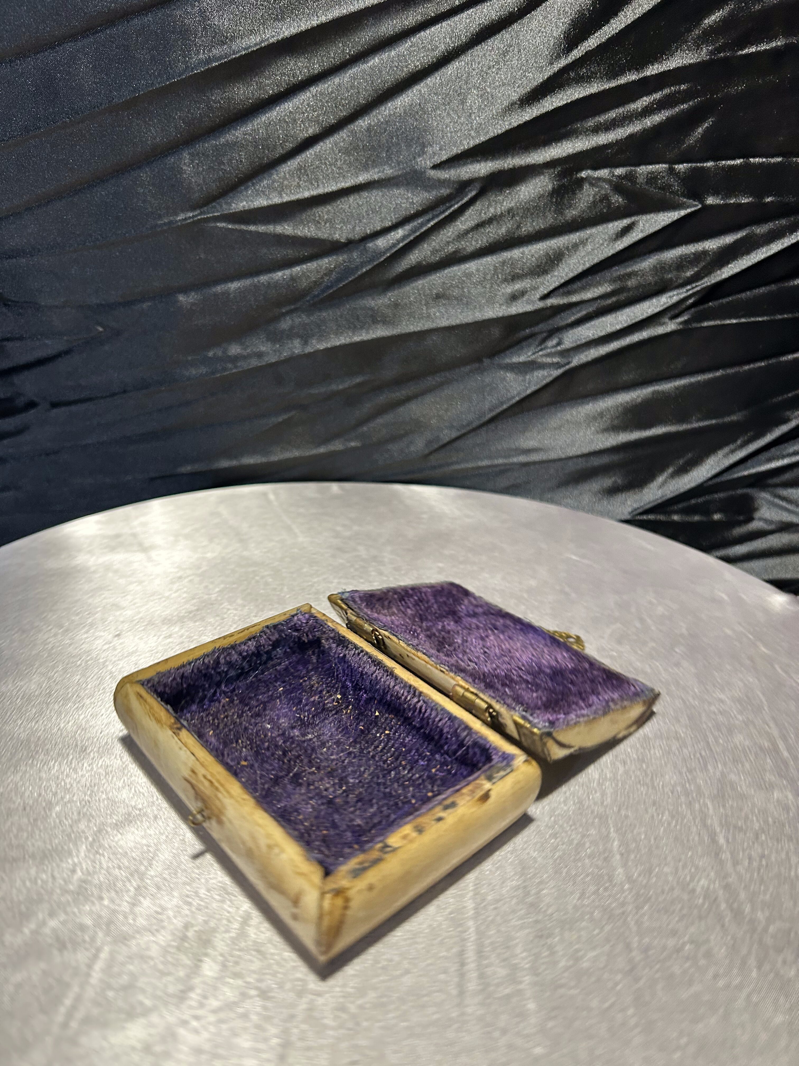 Wyjątkowa, ażurowa szkatułka wykonana z naturalnej kości oraz zdobiona elementami z mosiądzu. Delikatne, misternie wycięte detale nadają jej szlachetnego charakteru, a subtelne złoceń dodają elegancji. Wnętrze wyłożone jest fioletowym materiałem, co podkreśla jej antyczny urok i sprawia, że doskonale nadaje się do przechowywania biżuterii, drobnych pamiątek czy innych cennych przedmiotów. Idealna propozycja zarówno dla kolekcjonera, jak i miłośnika oryginalnych dodatków z duszą.
