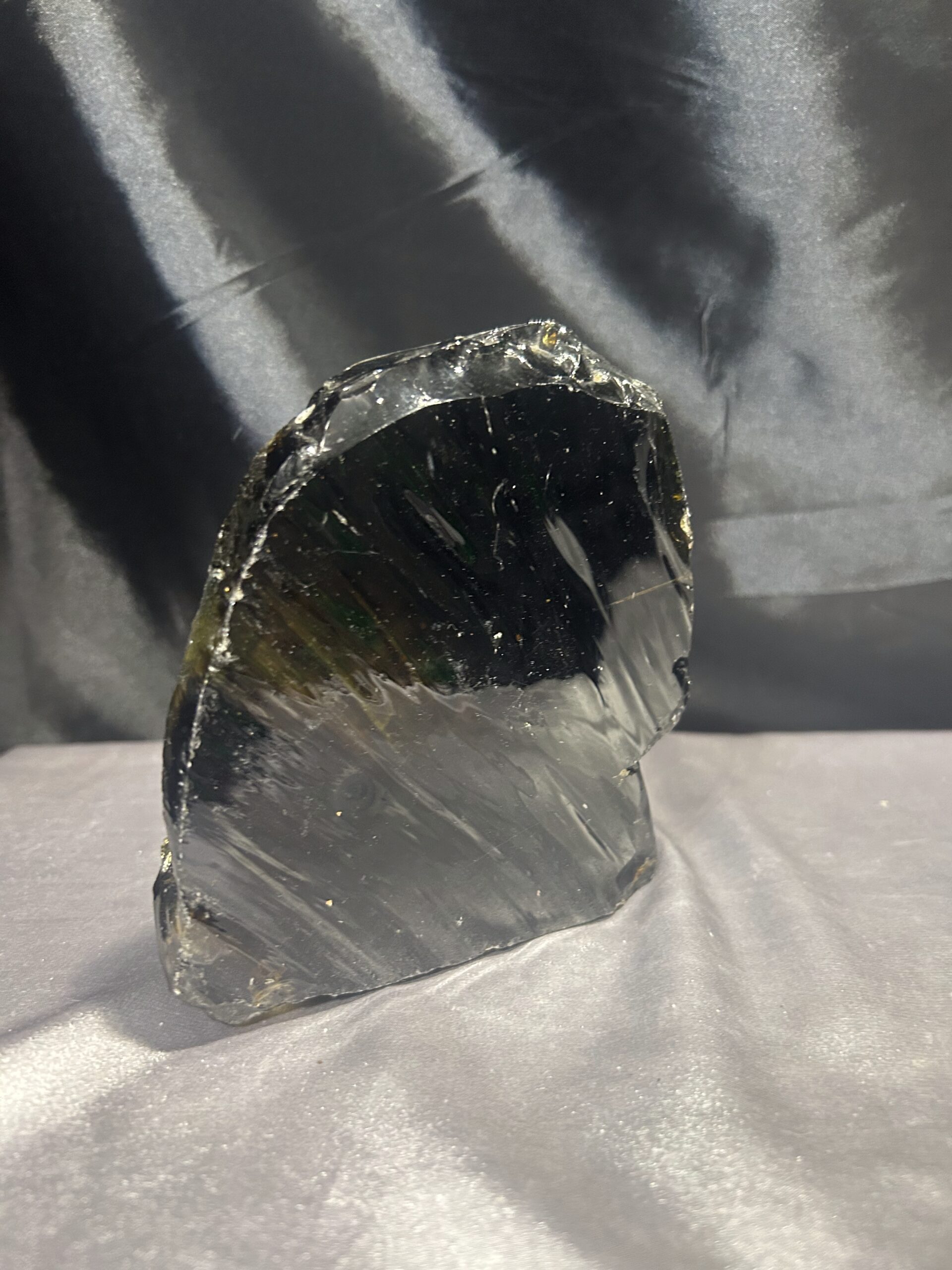 Unikalna bryła szkła to stylowy dodatek do biura, gabinetu czy salonu. Pełni funkcję ciężkiego przycisku do papieru, ale jej artystyczna forma sprawia, że świetnie sprawdzi się również jako element dekoracyjny. To doskonały wybór dla miłośników eleganckich i nietuzinkowych ozdób.