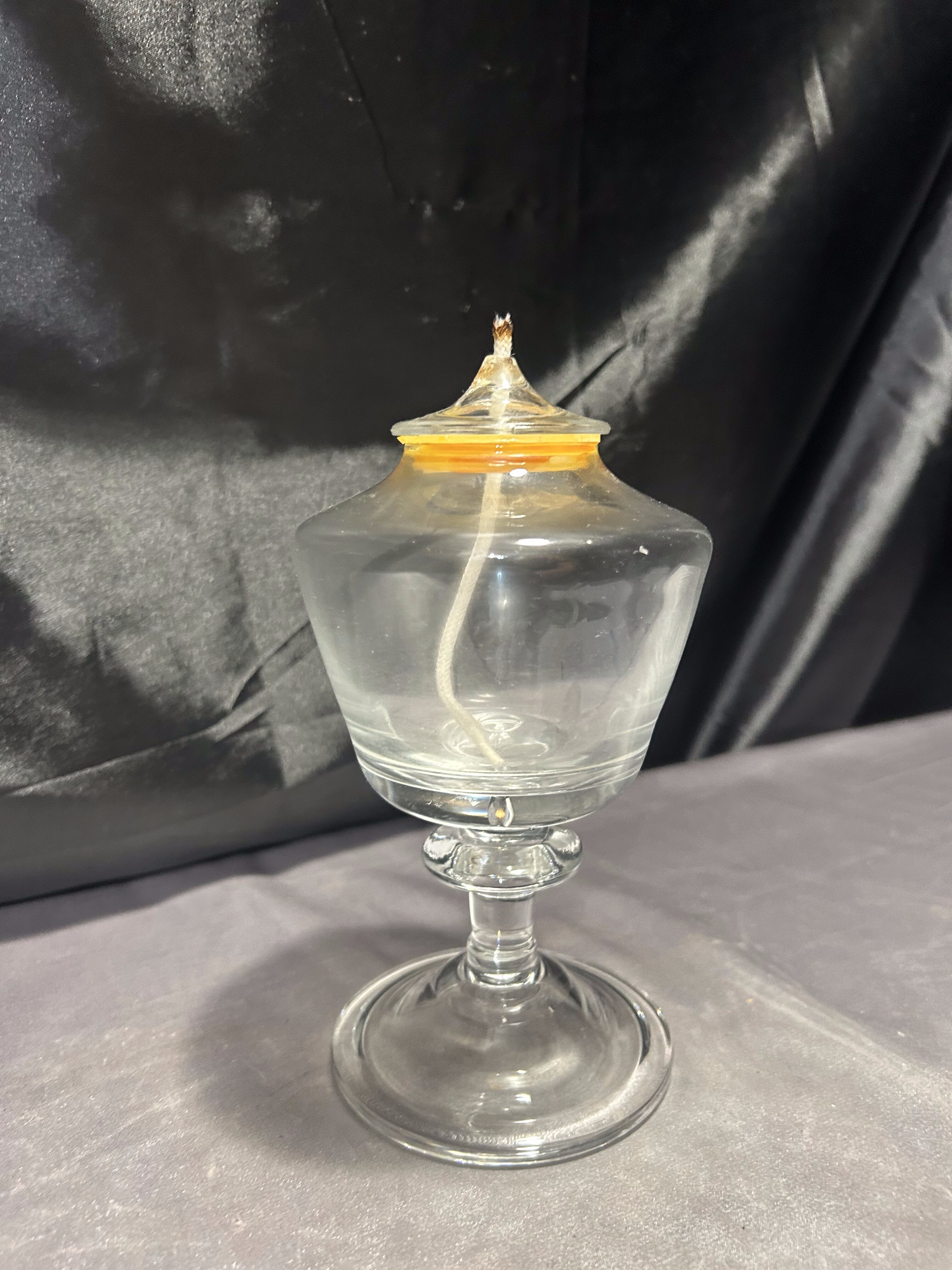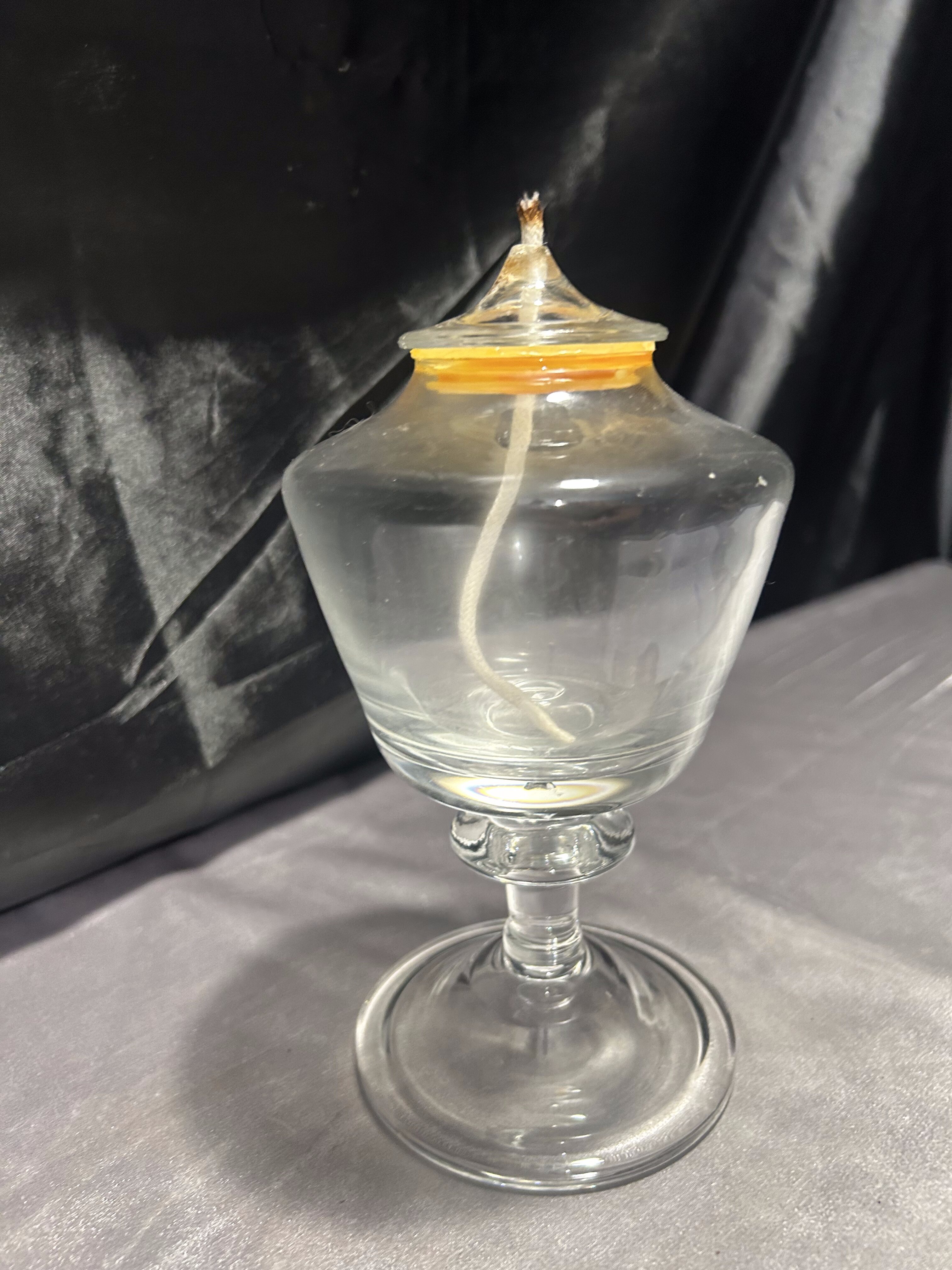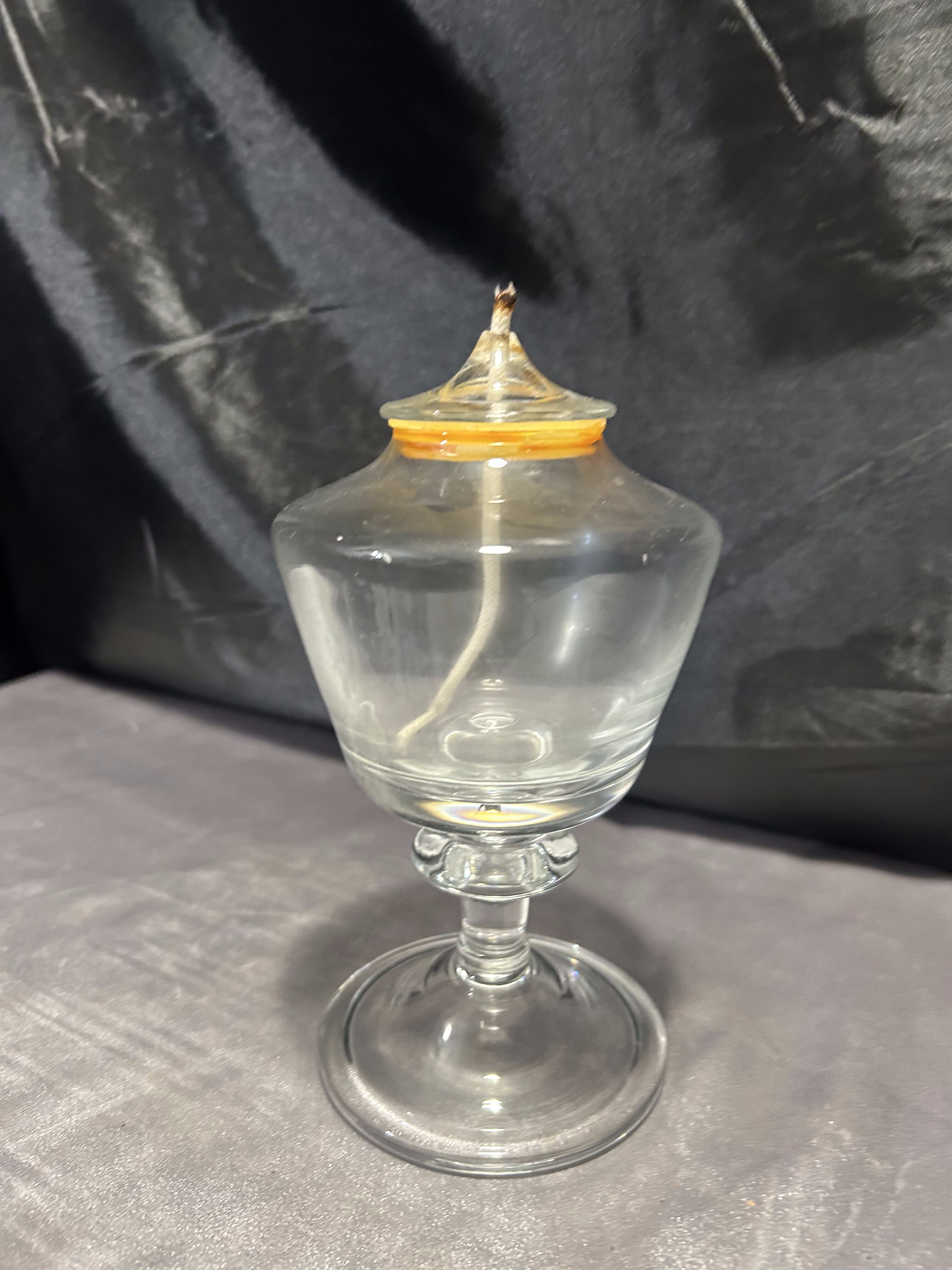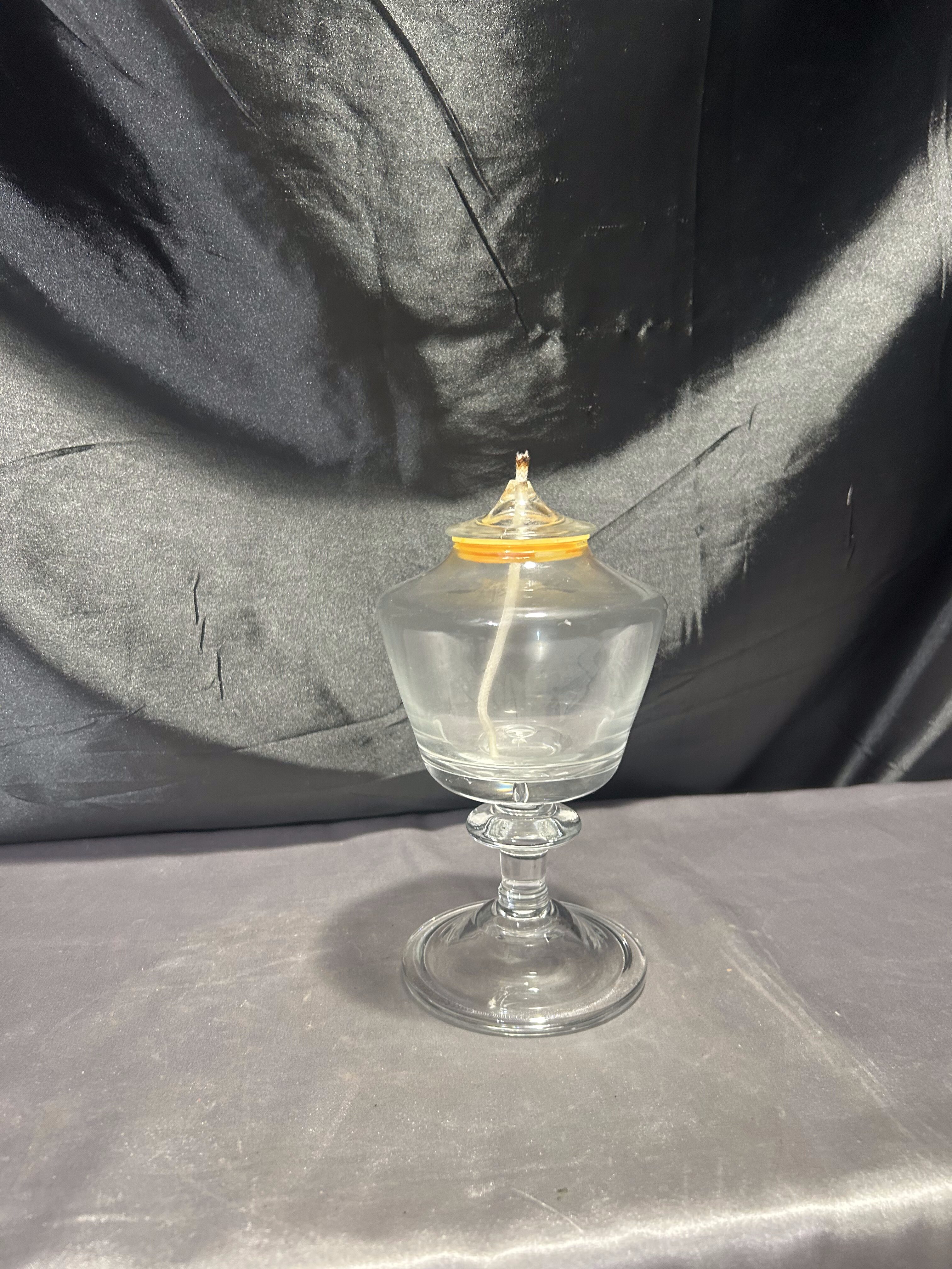 - Szklana lampa naftowa – przeźroczysta – kielichowa forma na nodze