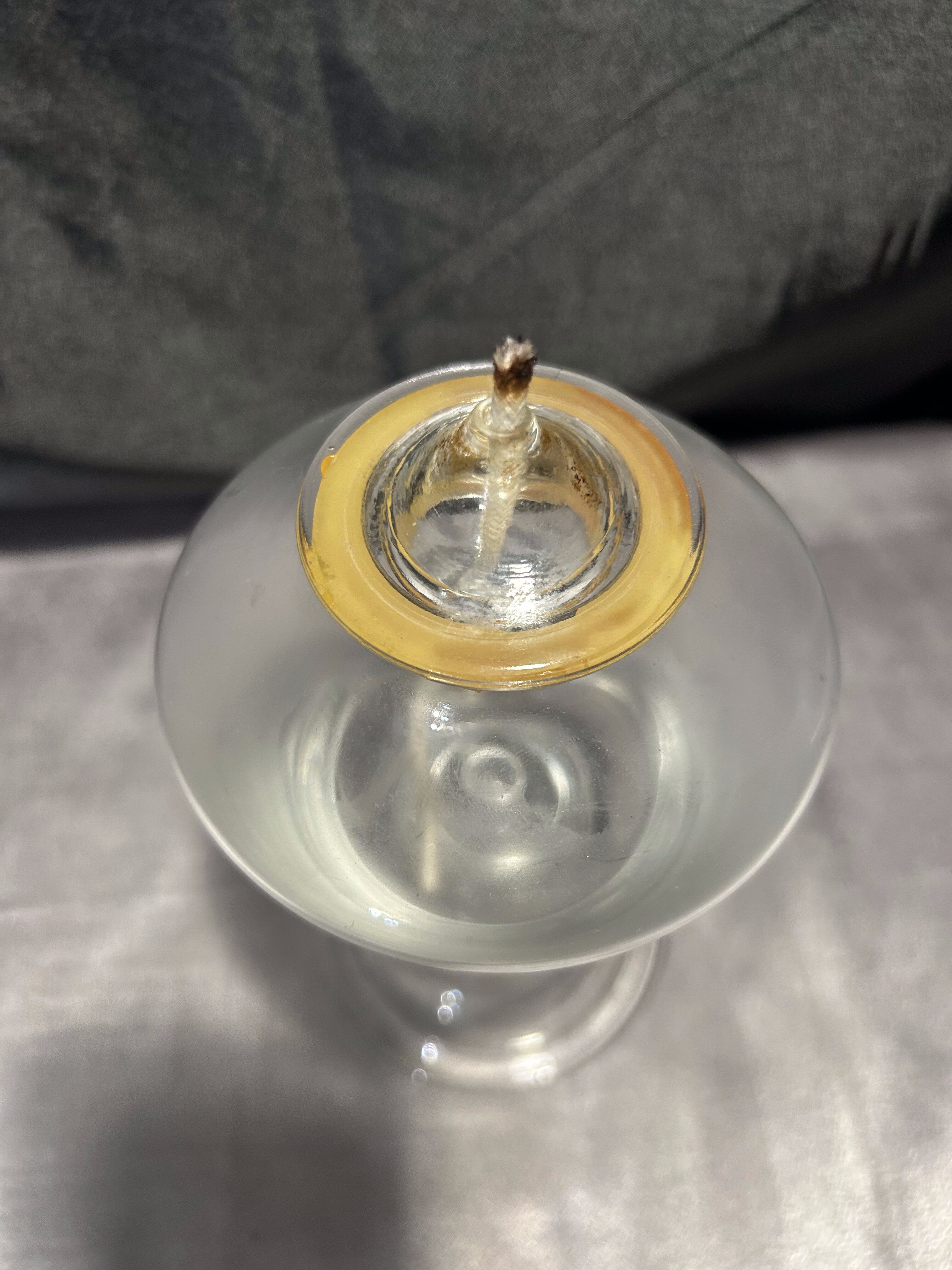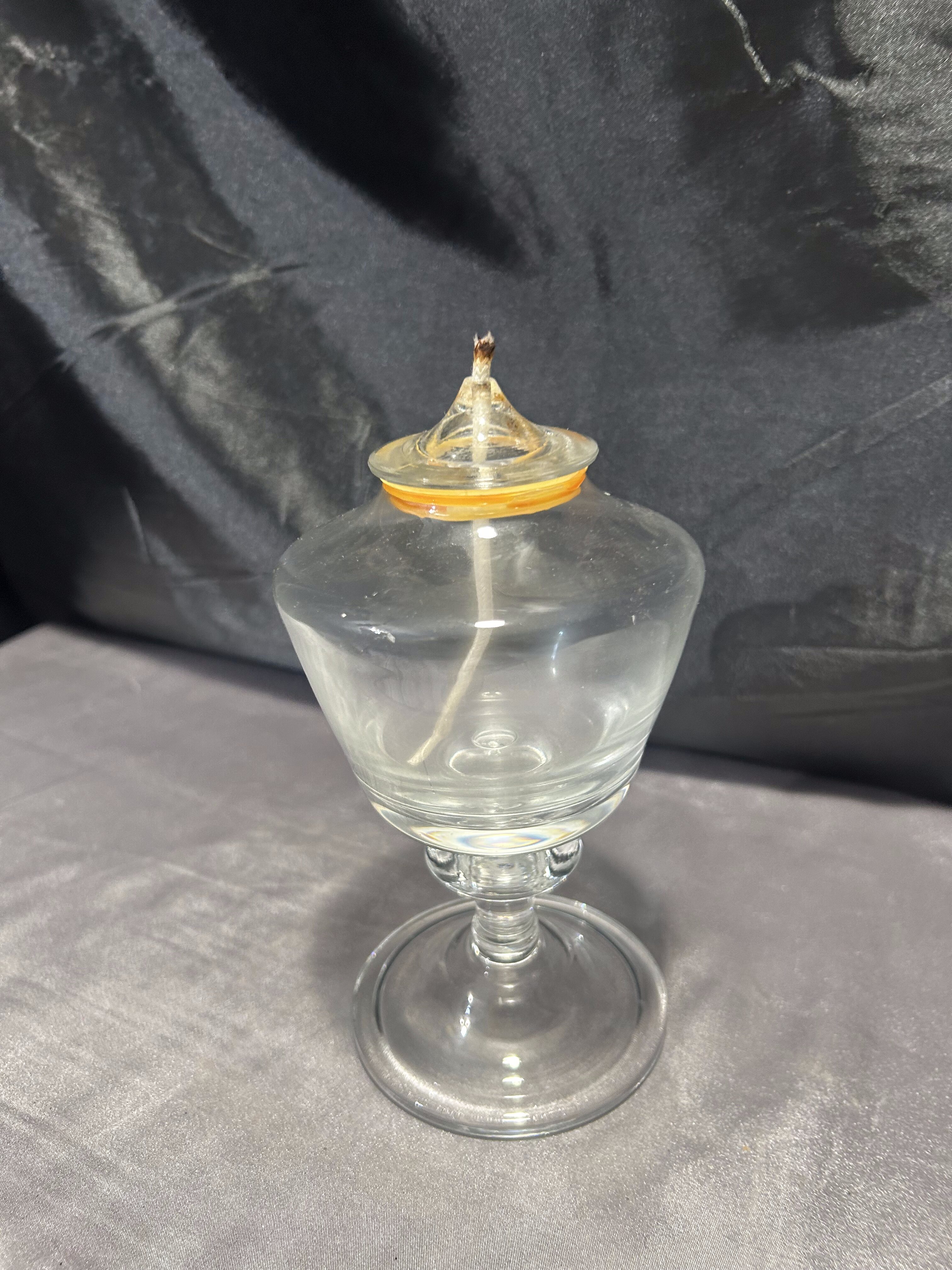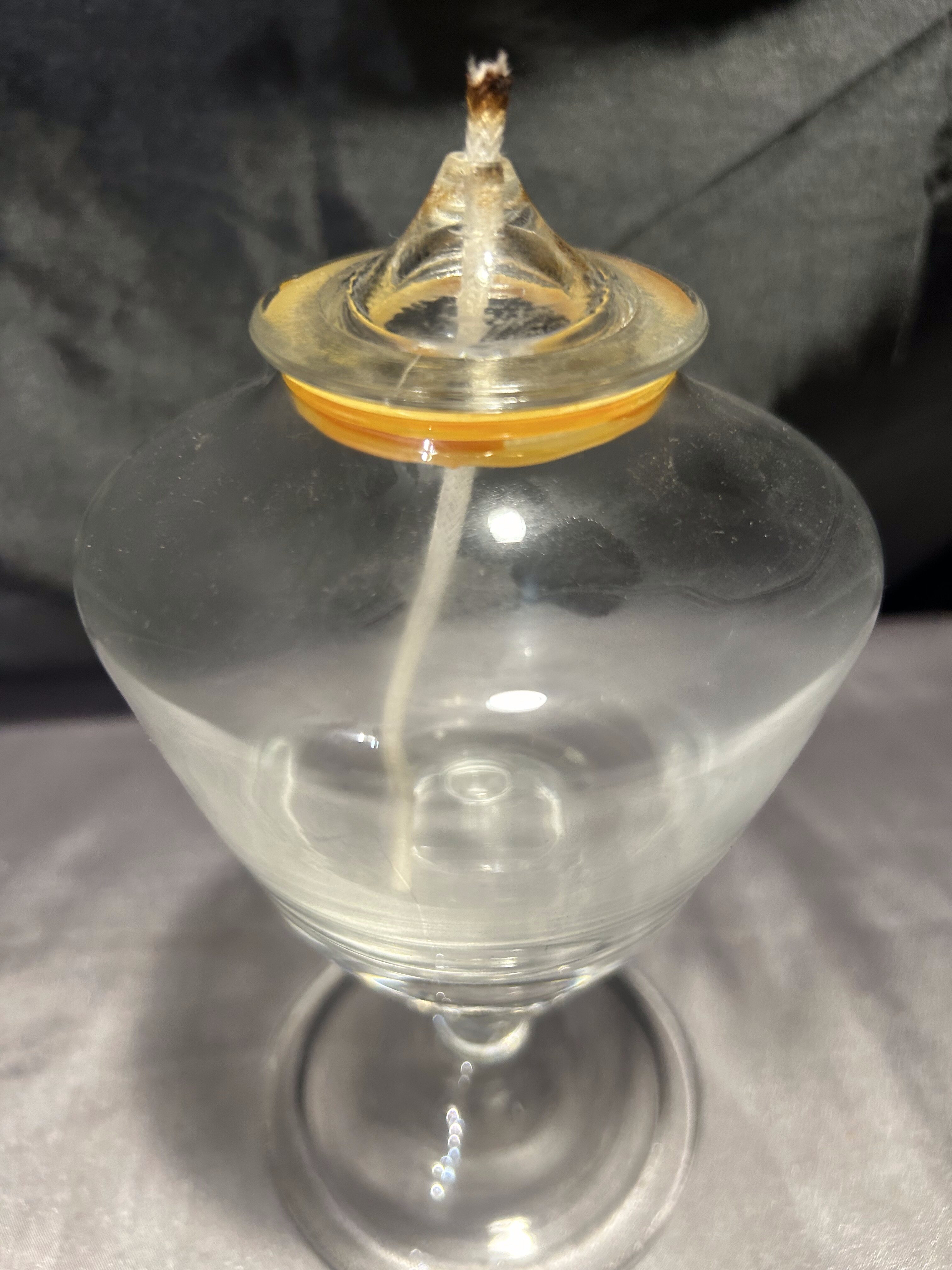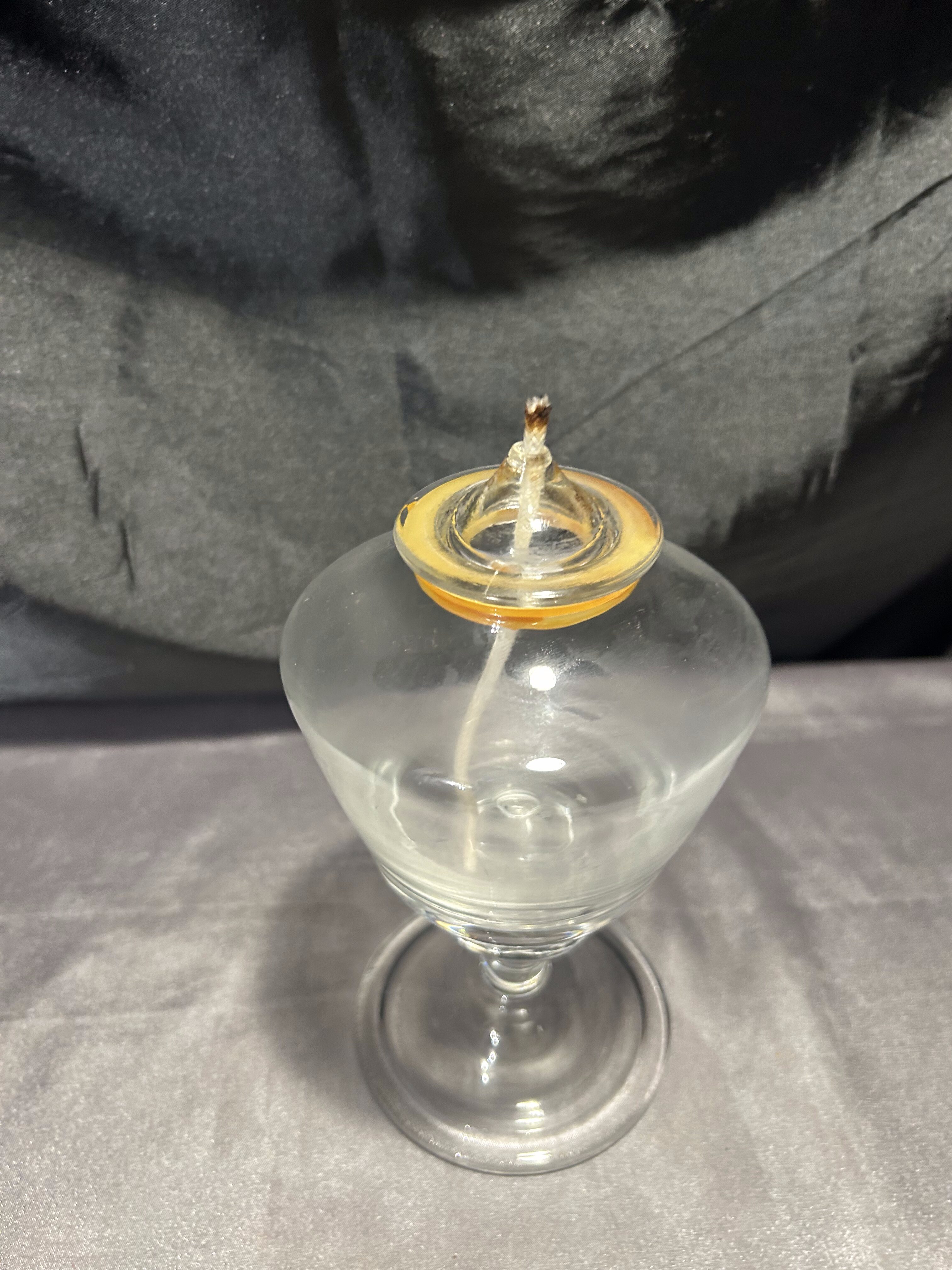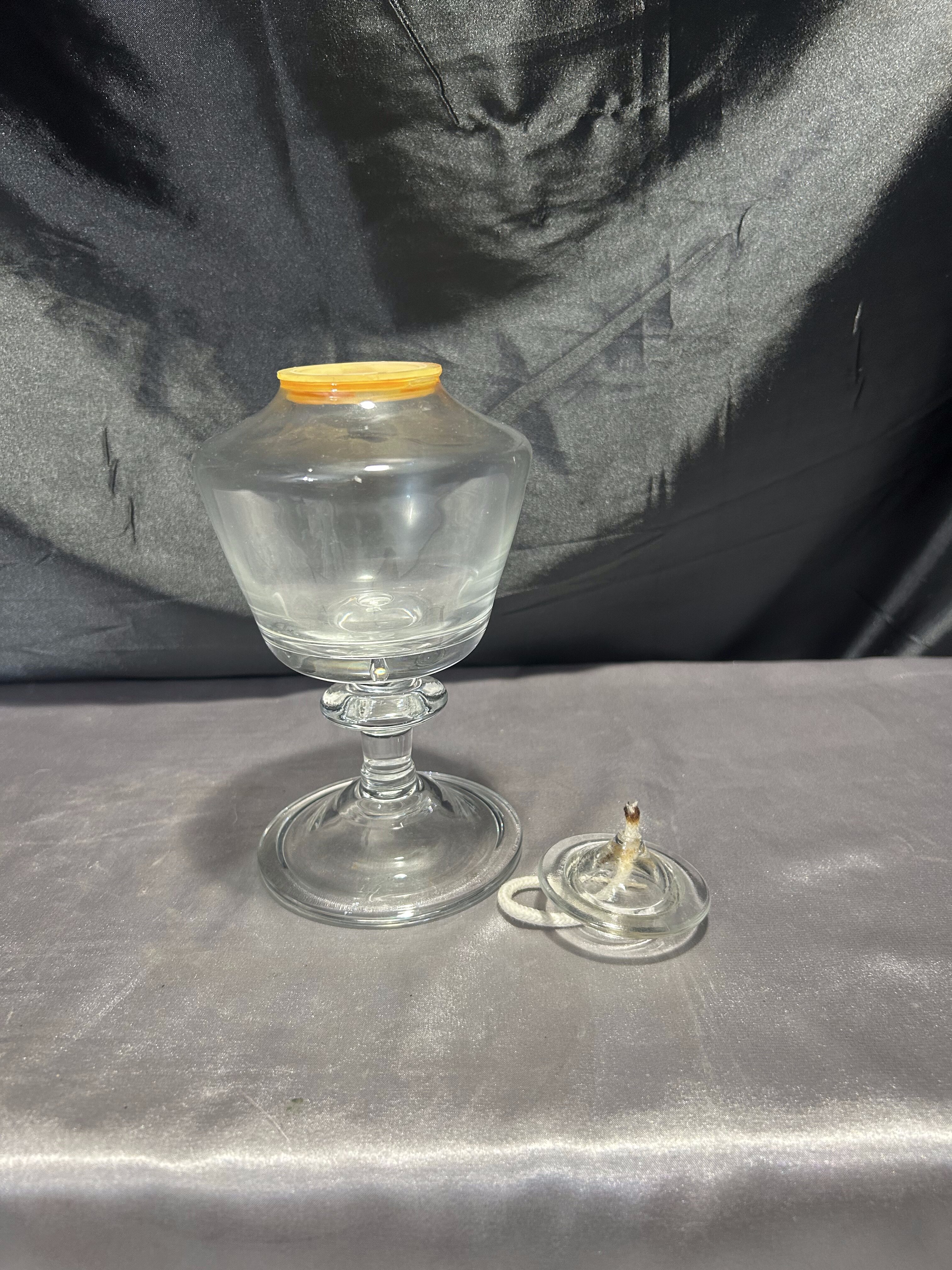 - Szklana lampa naftowa – przeźroczysta – kielichowa forma na nodze