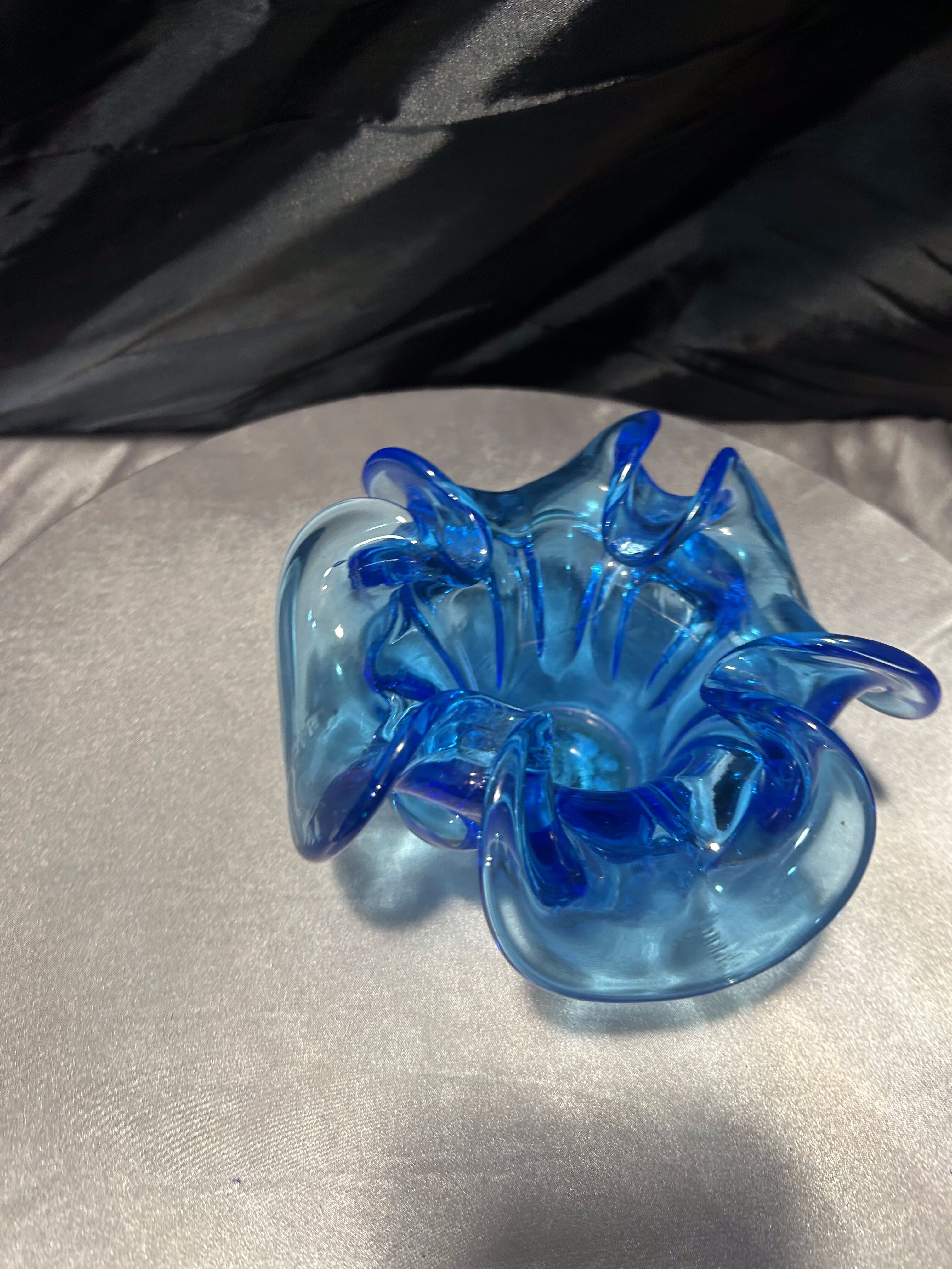 - Szklana misa artystyczna – intensywny odcień niebieskiego – unikatowa forma