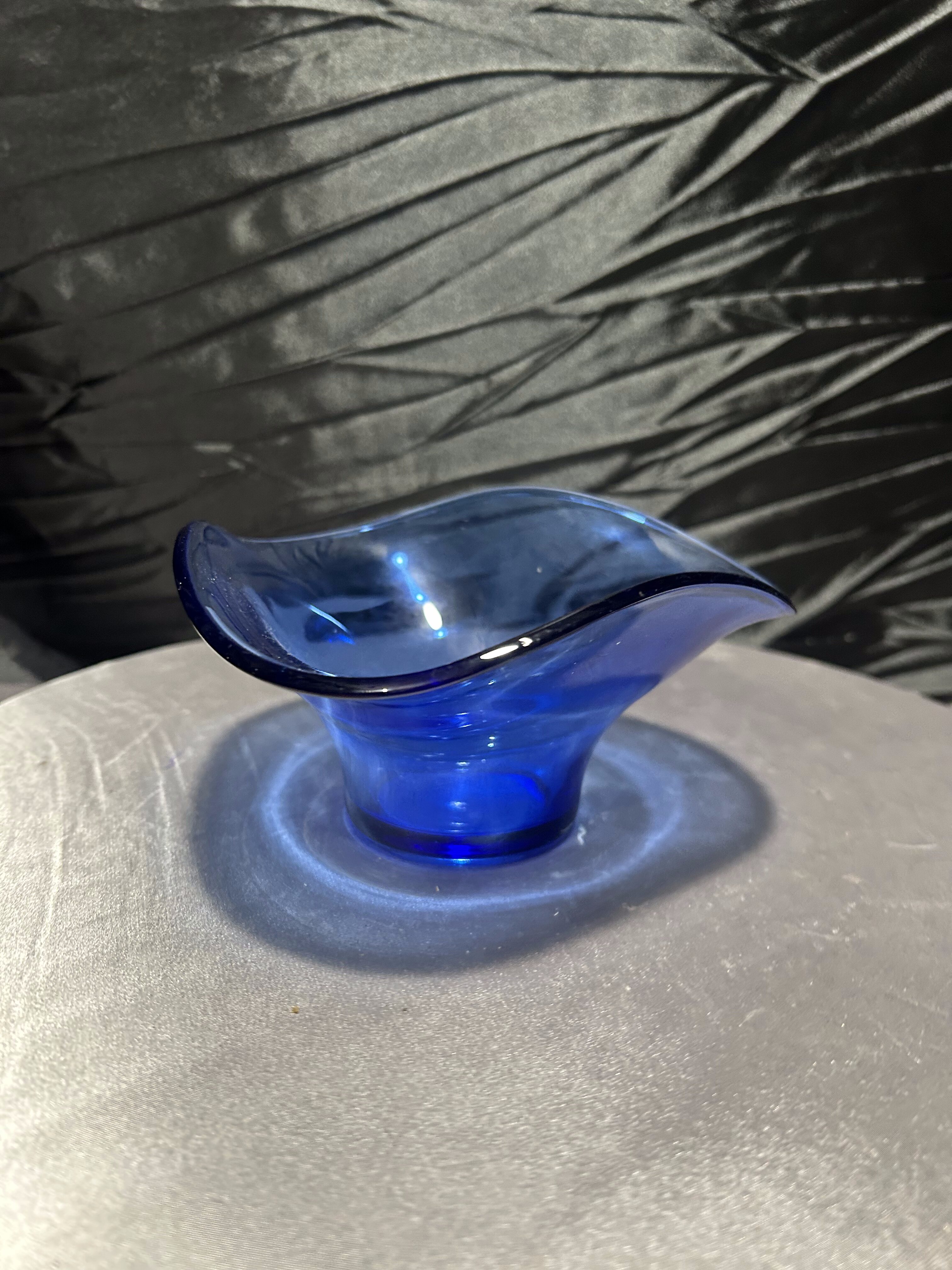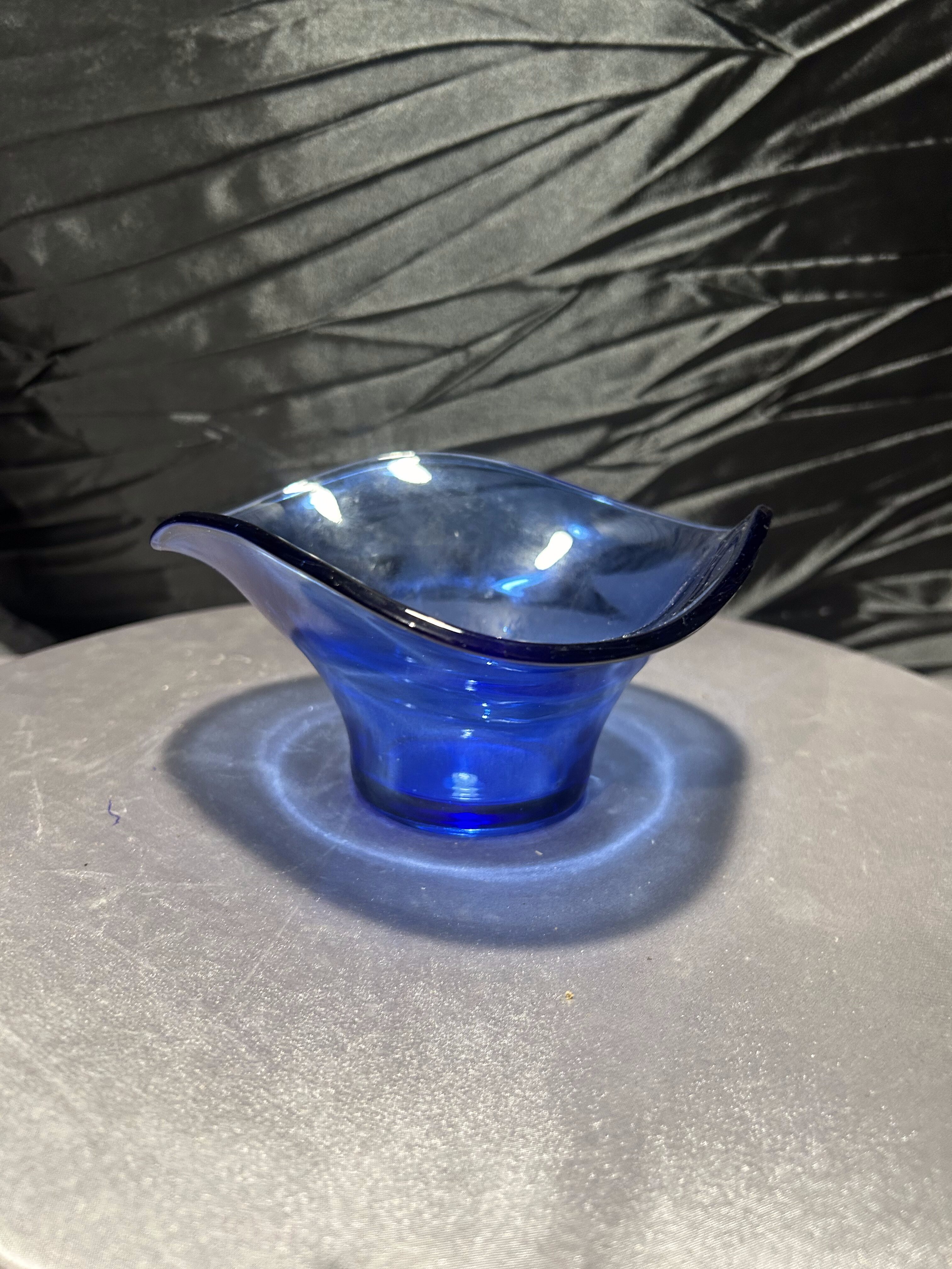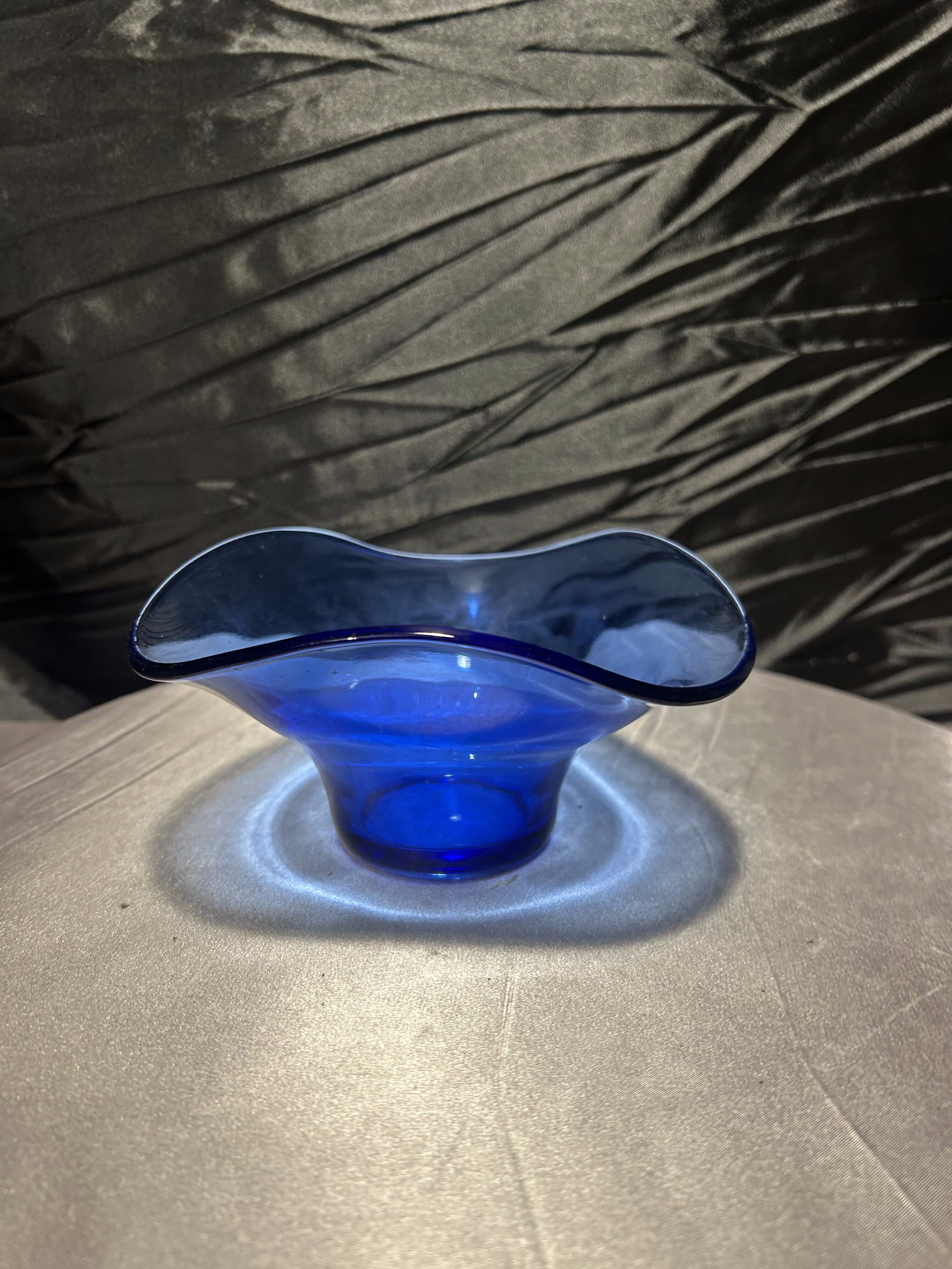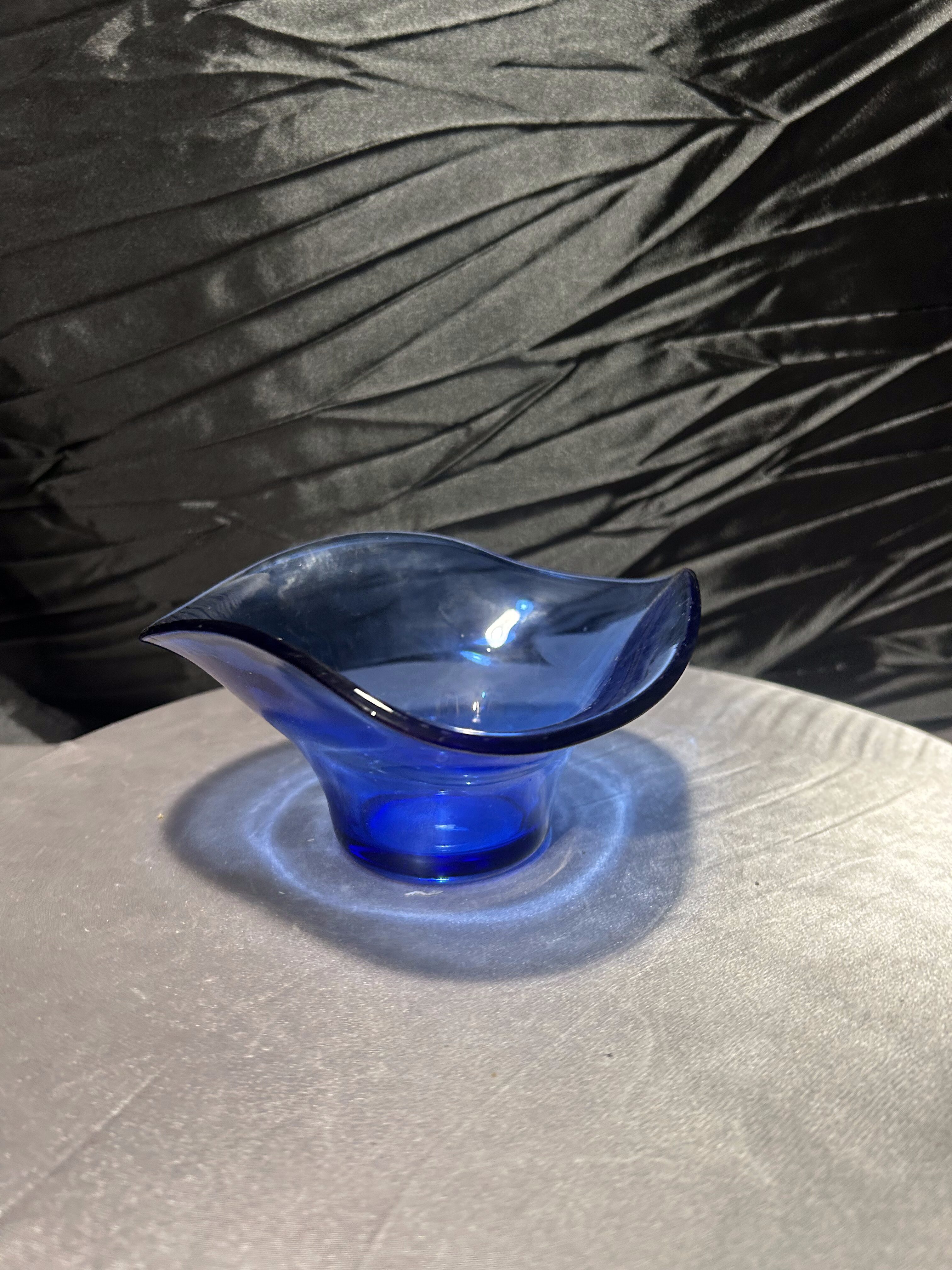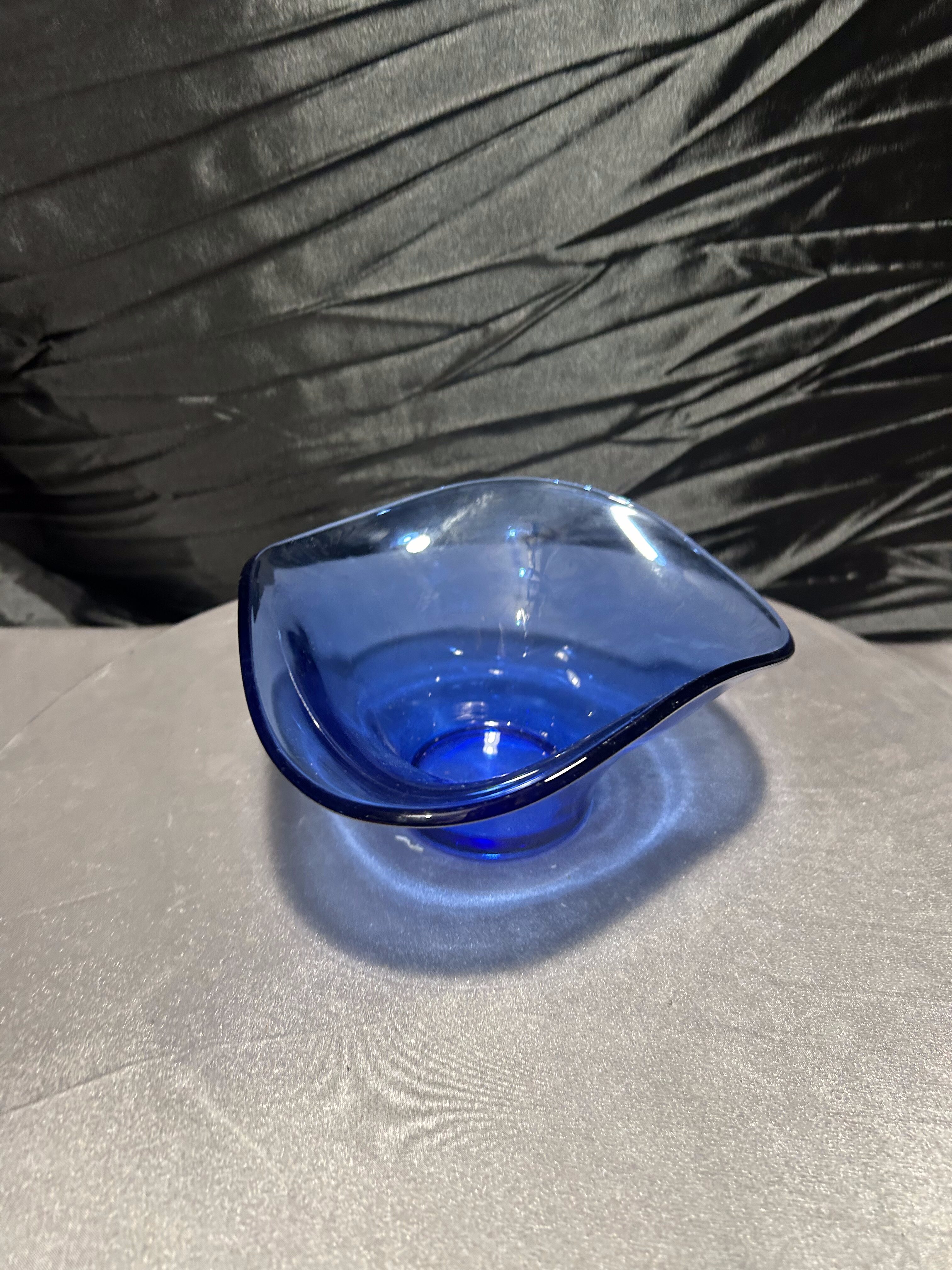 - Szklana misa artystyczna, szkło dekoracyjne, kobalt