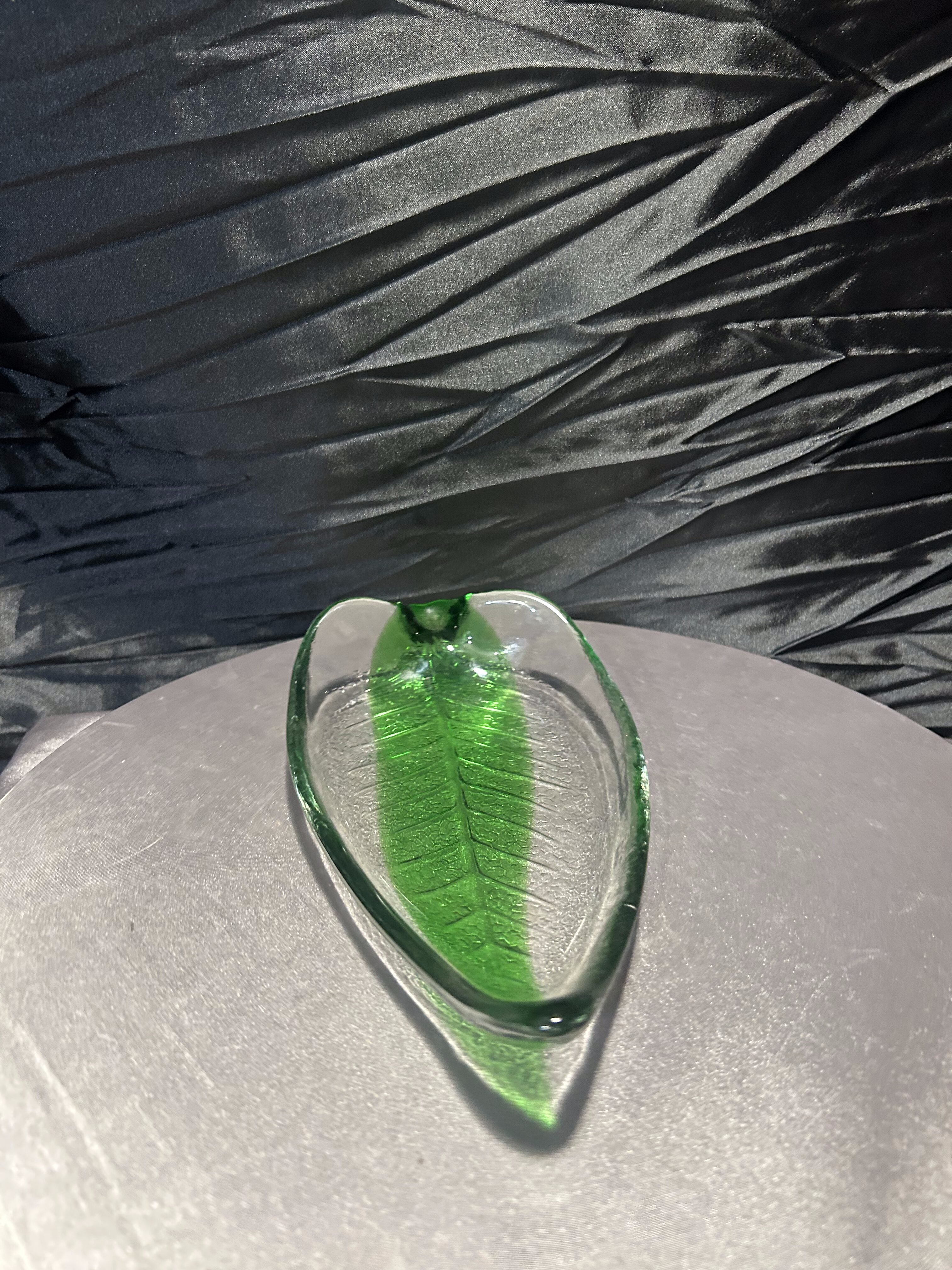 - Szklana misa w kształcie liścia z zielonym akcentem