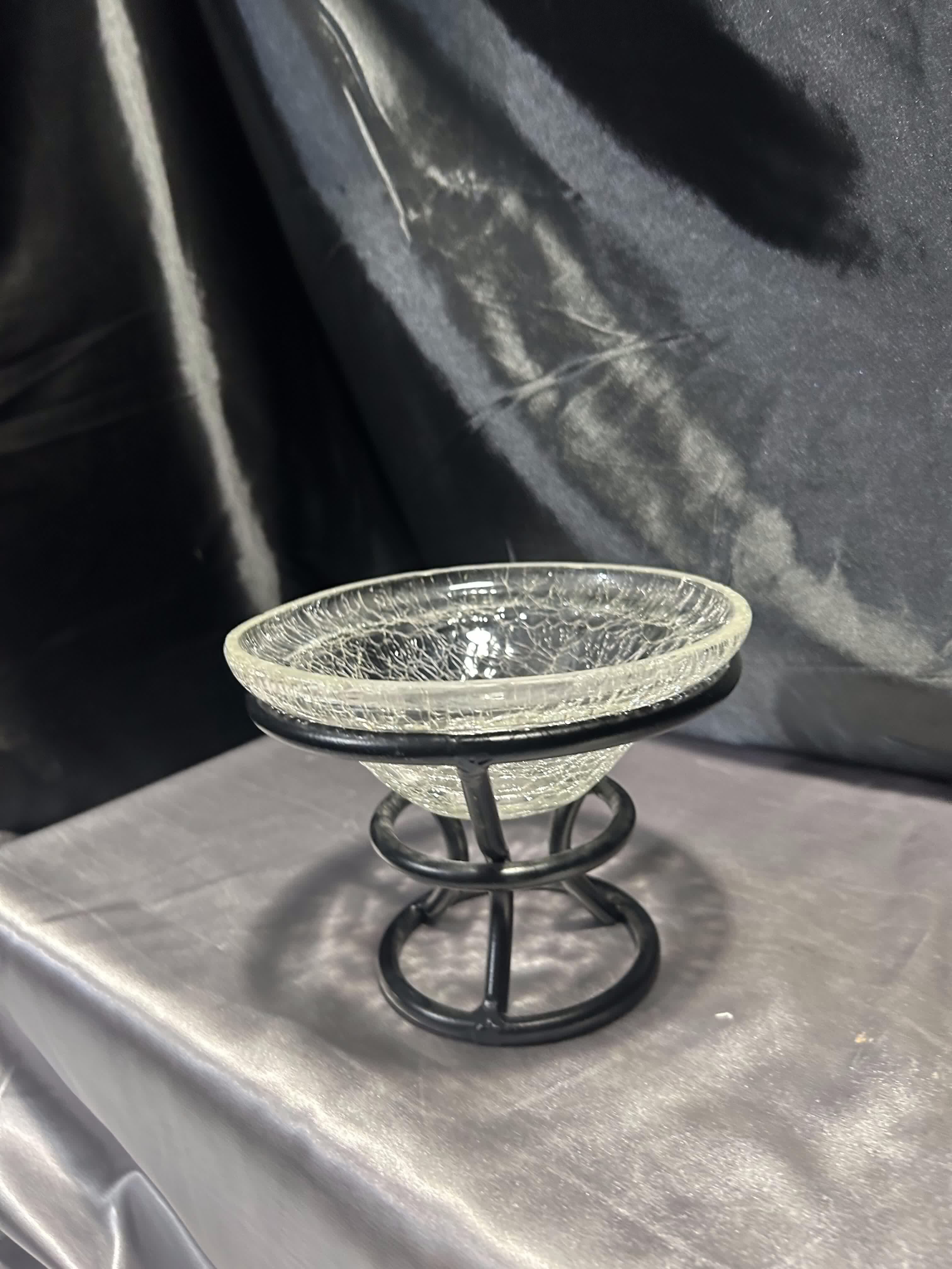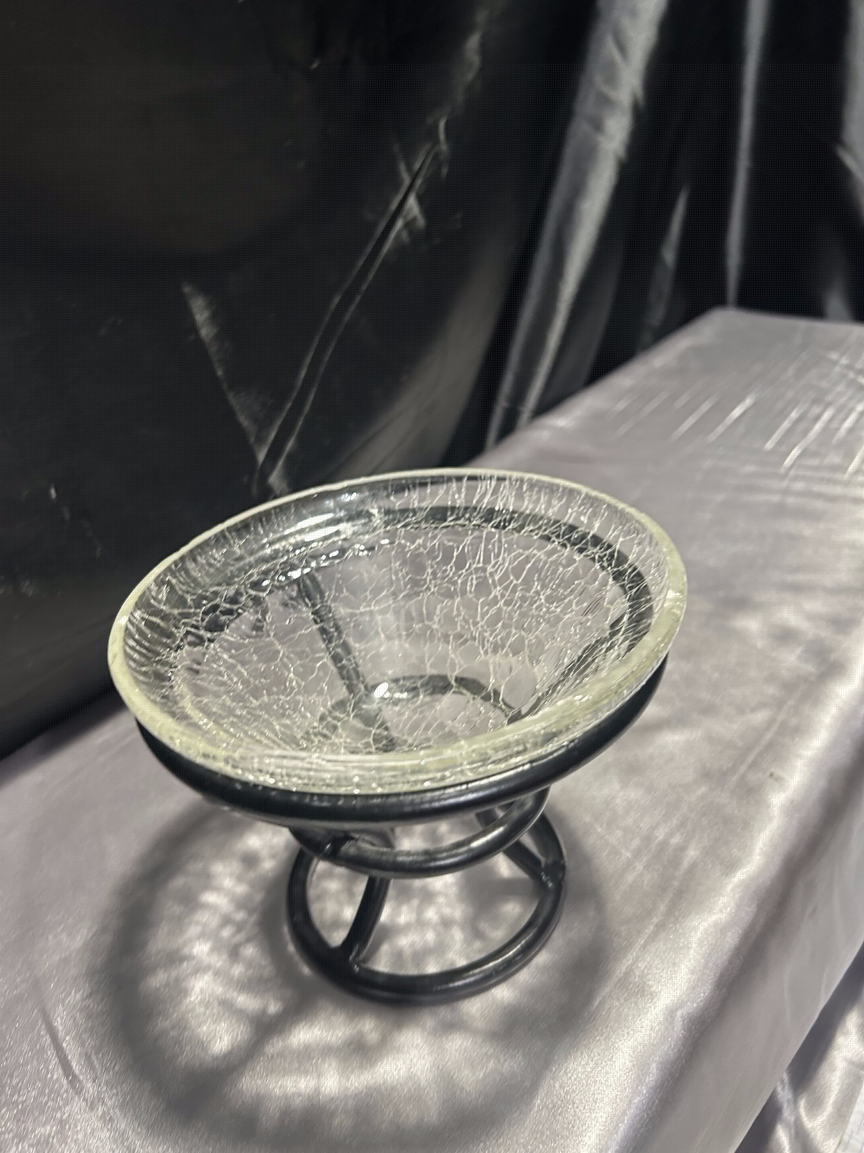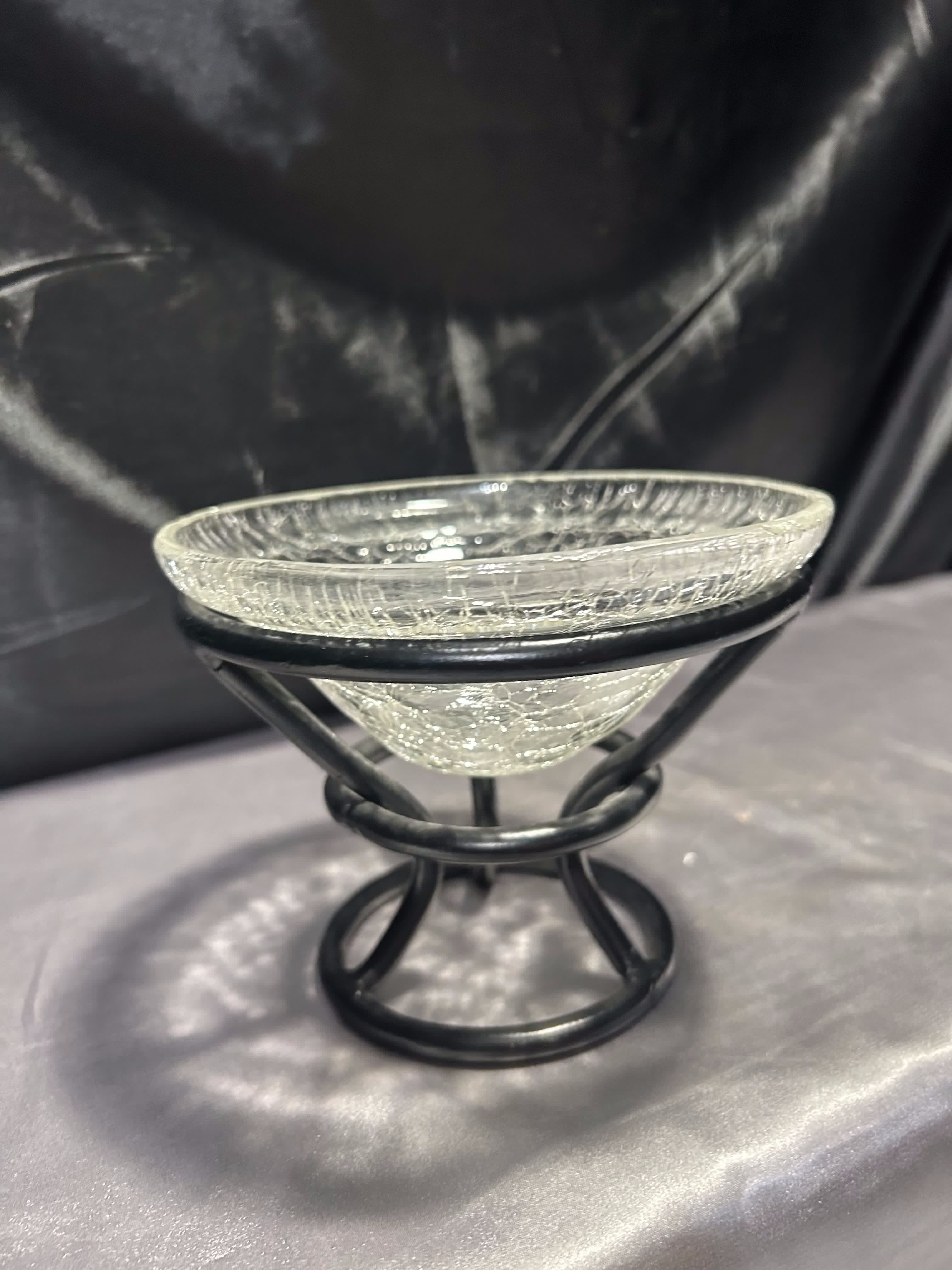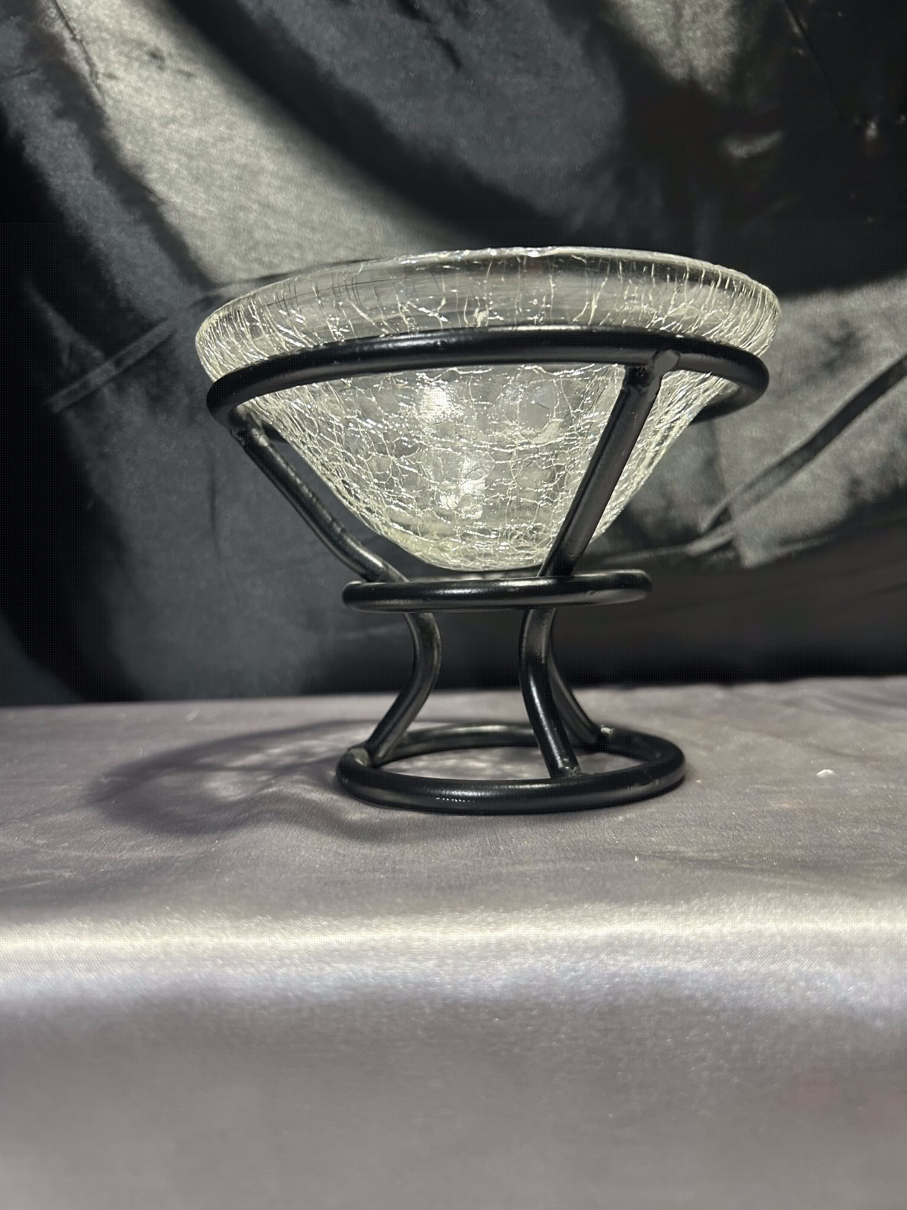 - Szklana misa w metalowym stelażu – efekt popękanego szkła