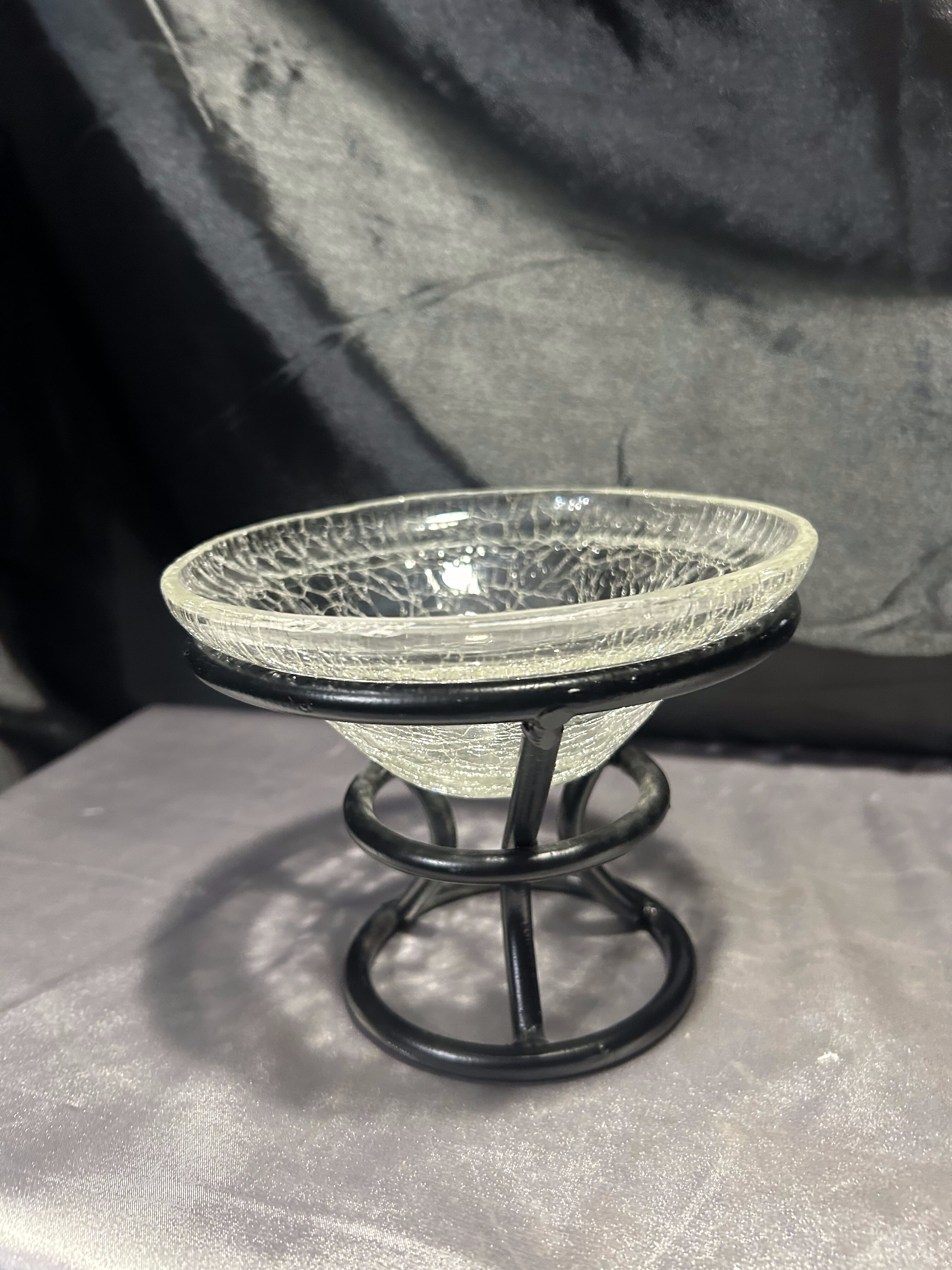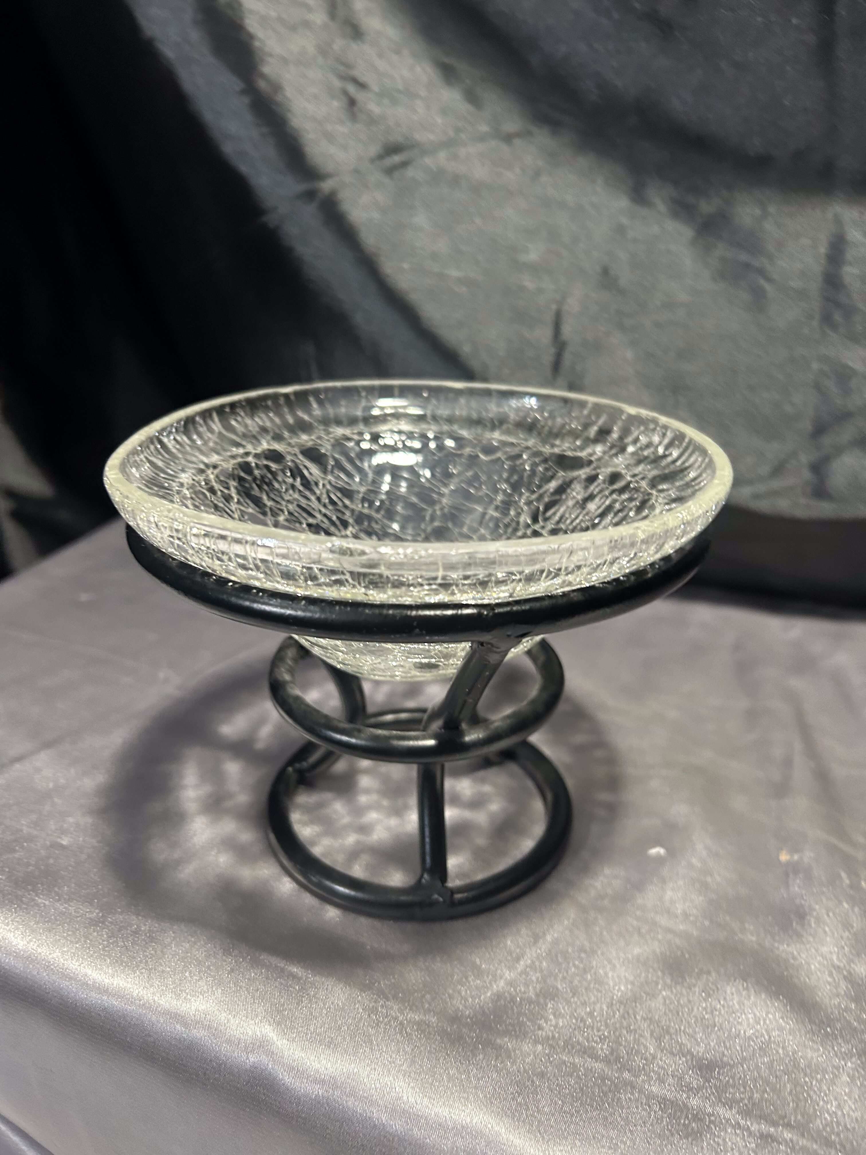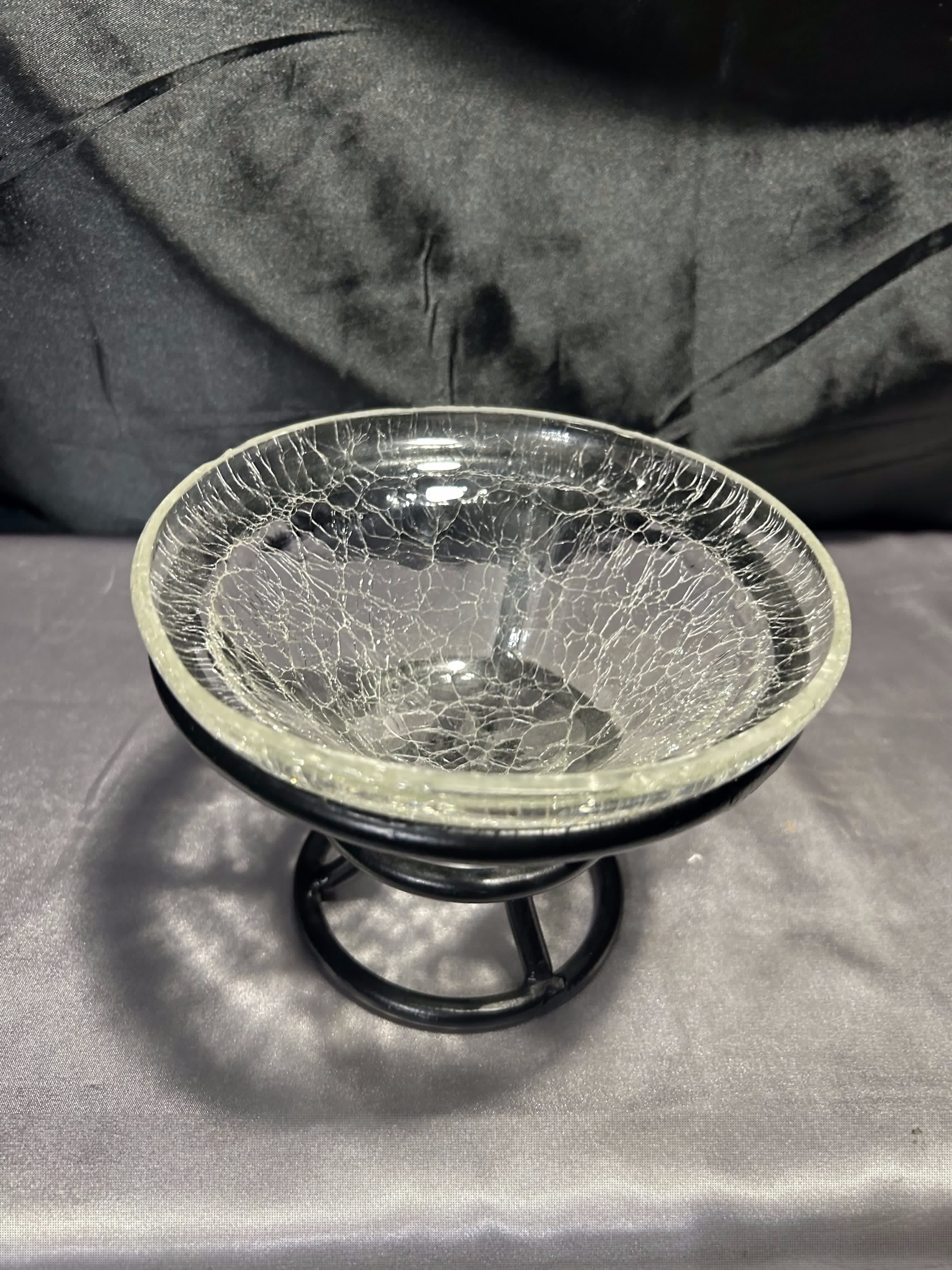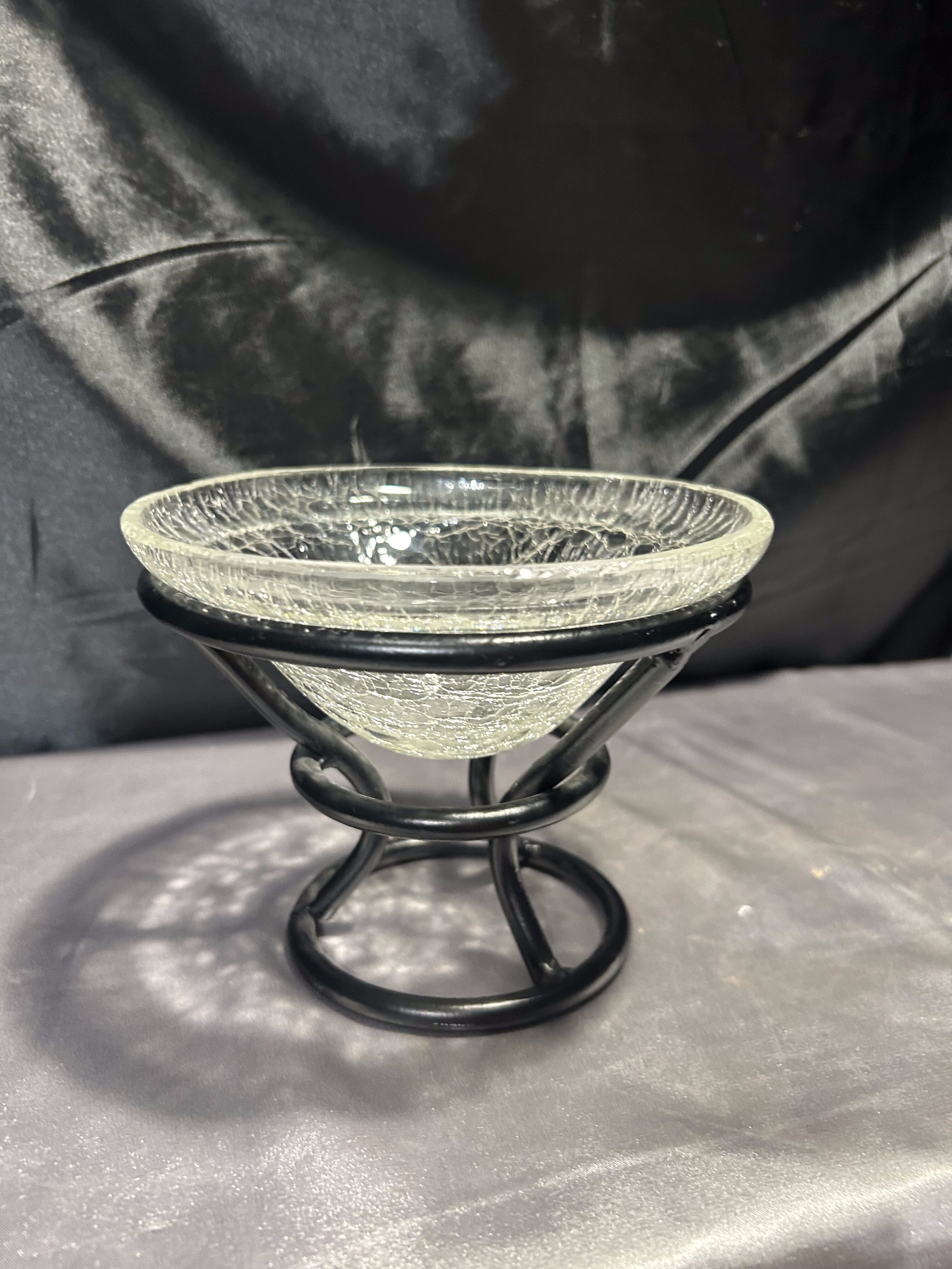 - Szklana misa w metalowym stelażu – efekt popękanego szkła