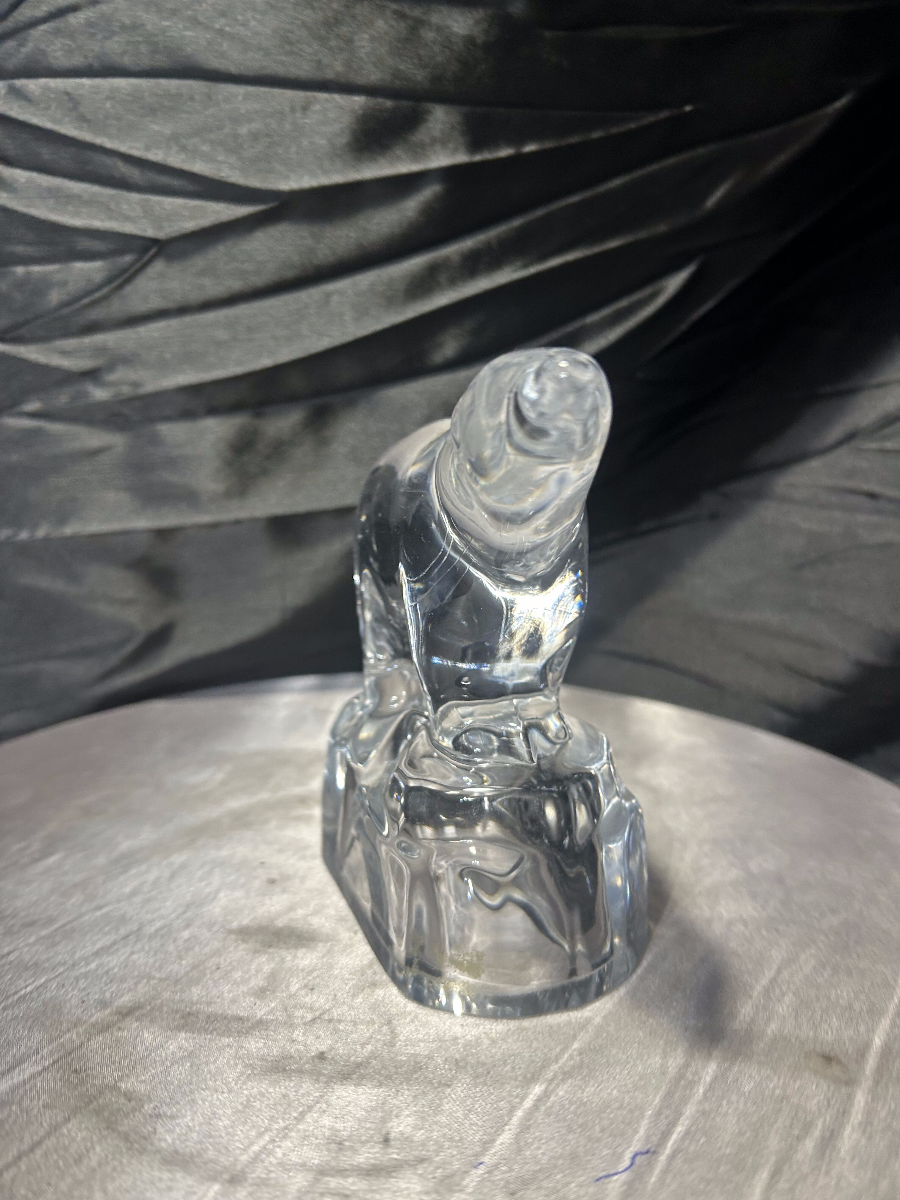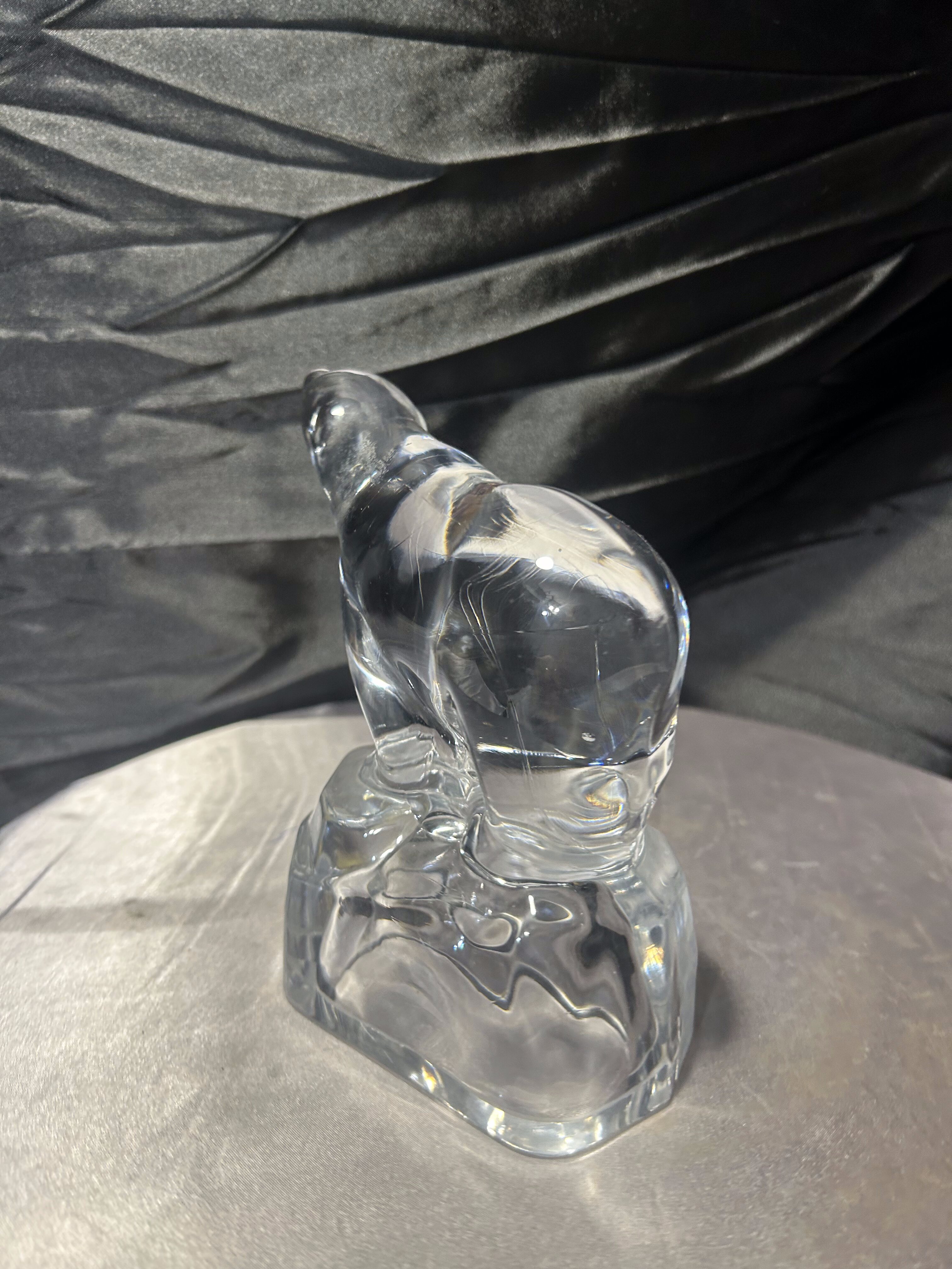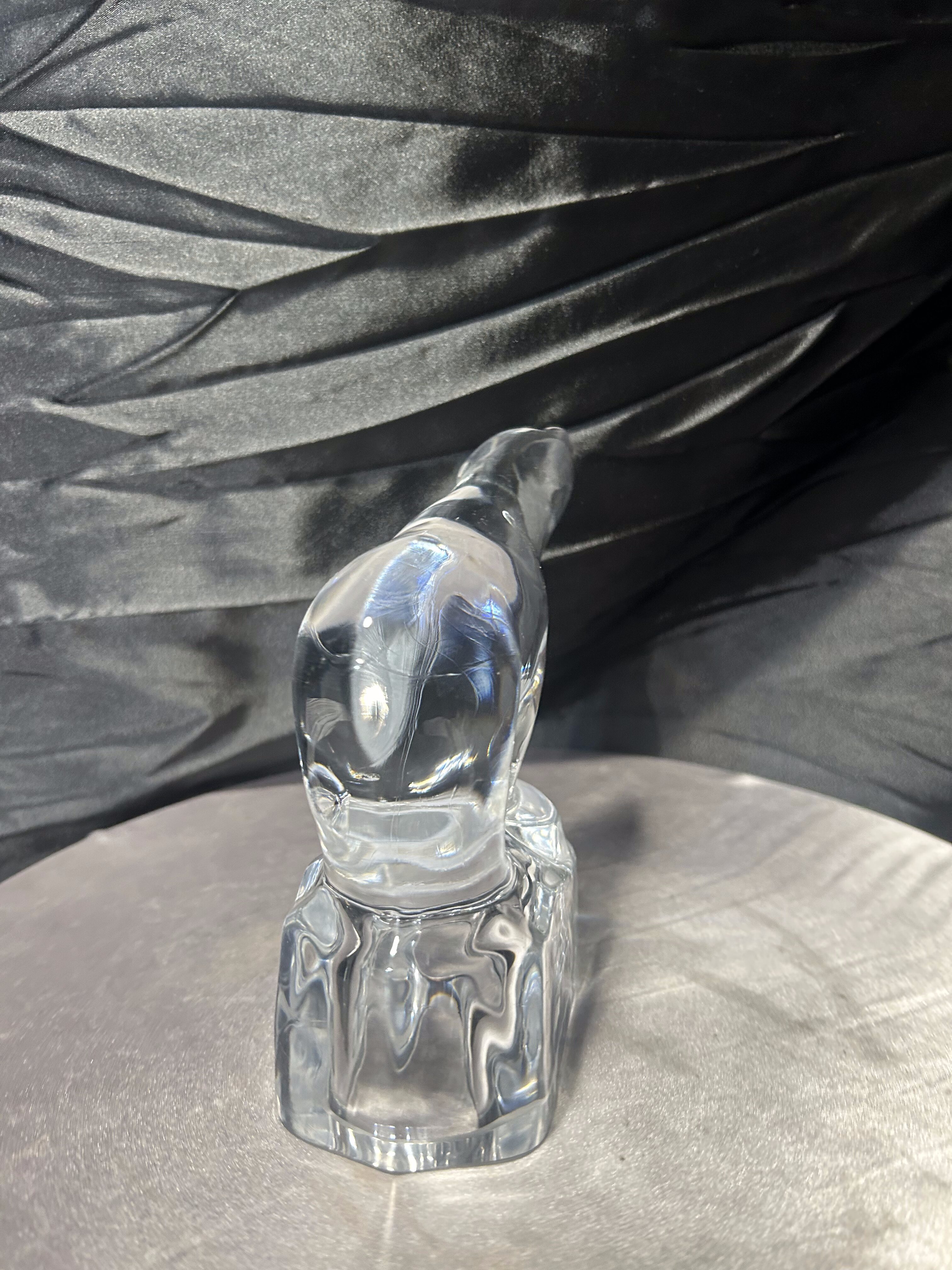 Przejrzyste szkło pięknie odbija światło, podkreślając kształty rzeźby oraz detale sylwetki zwierzęcia. Minimalistyczna forma i czysta linia szkła sprawiają, że figurka prezentuje się elegancko i ponadczasowo.