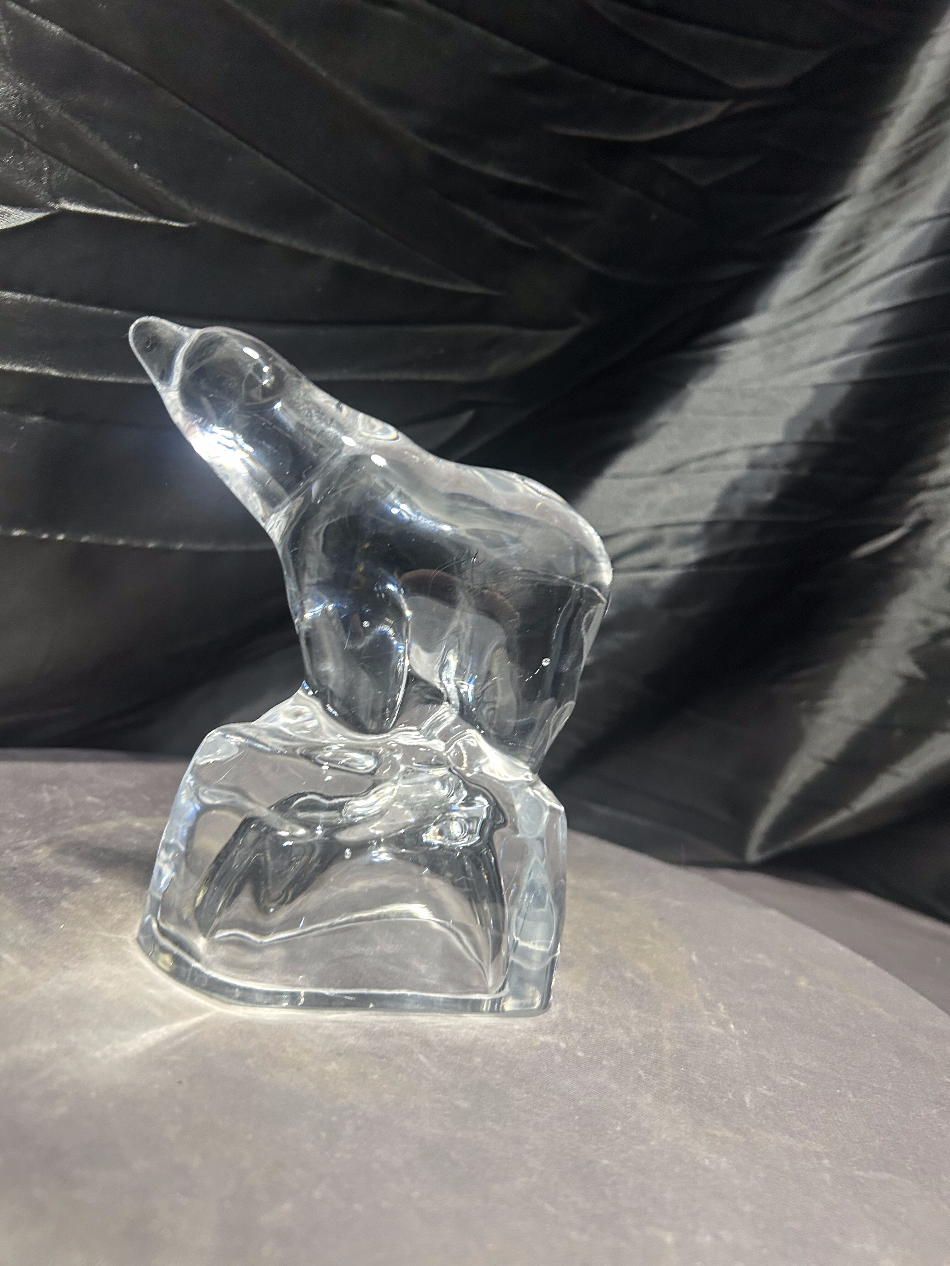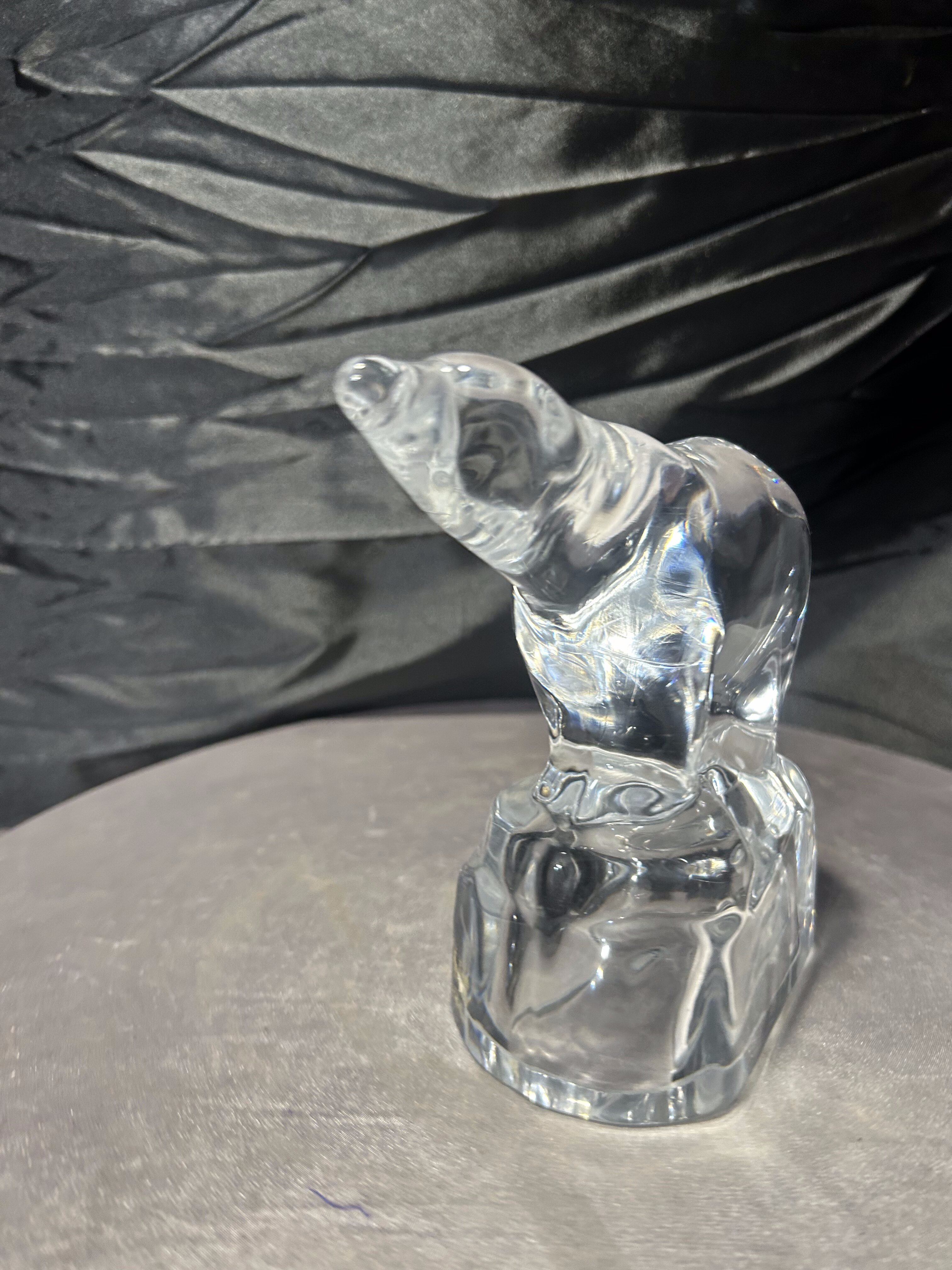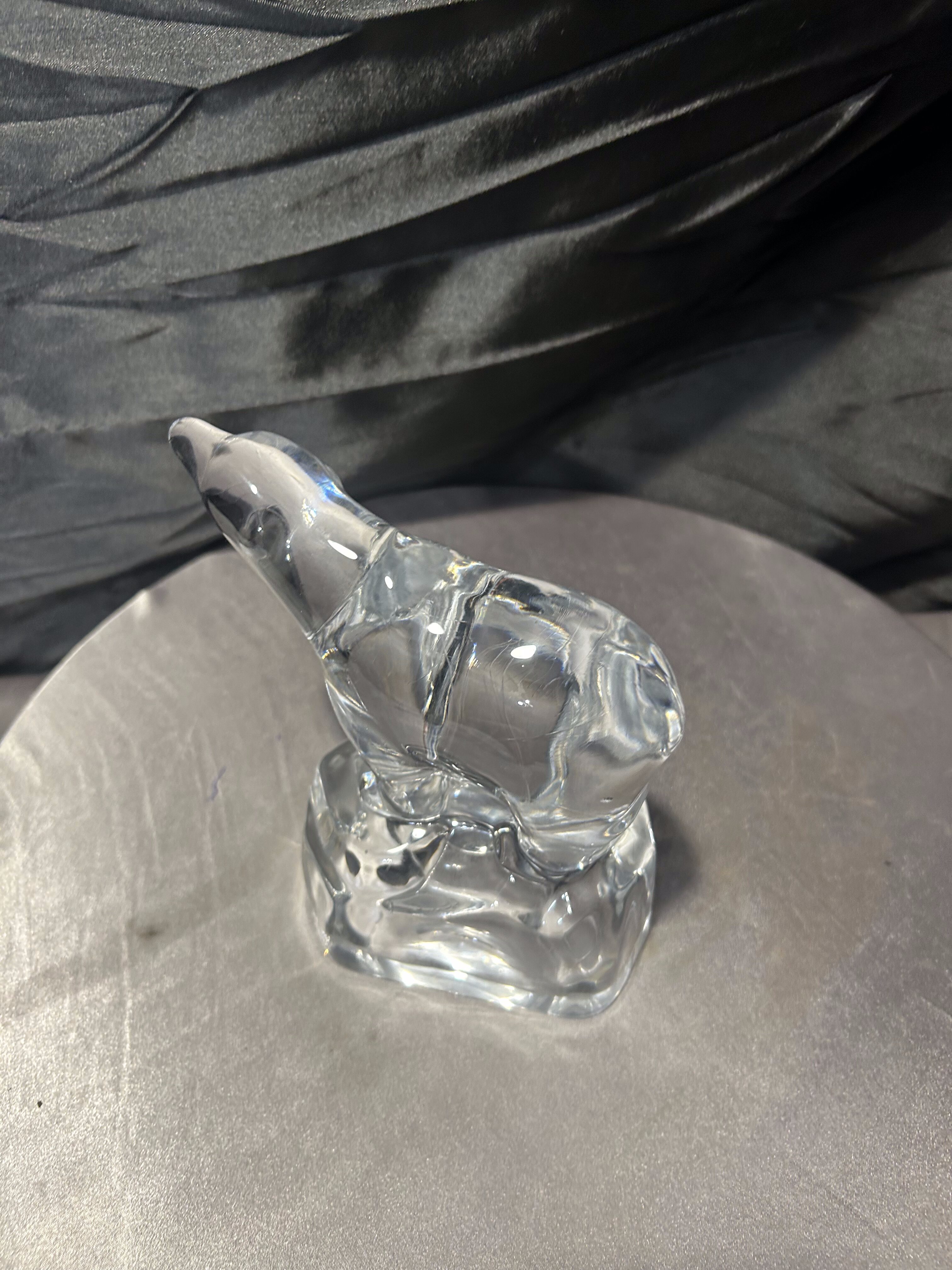 Przejrzyste szkło pięknie odbija światło, podkreślając kształty rzeźby oraz detale sylwetki zwierzęcia. Minimalistyczna forma i czysta linia szkła sprawiają, że figurka prezentuje się elegancko i ponadczasowo.