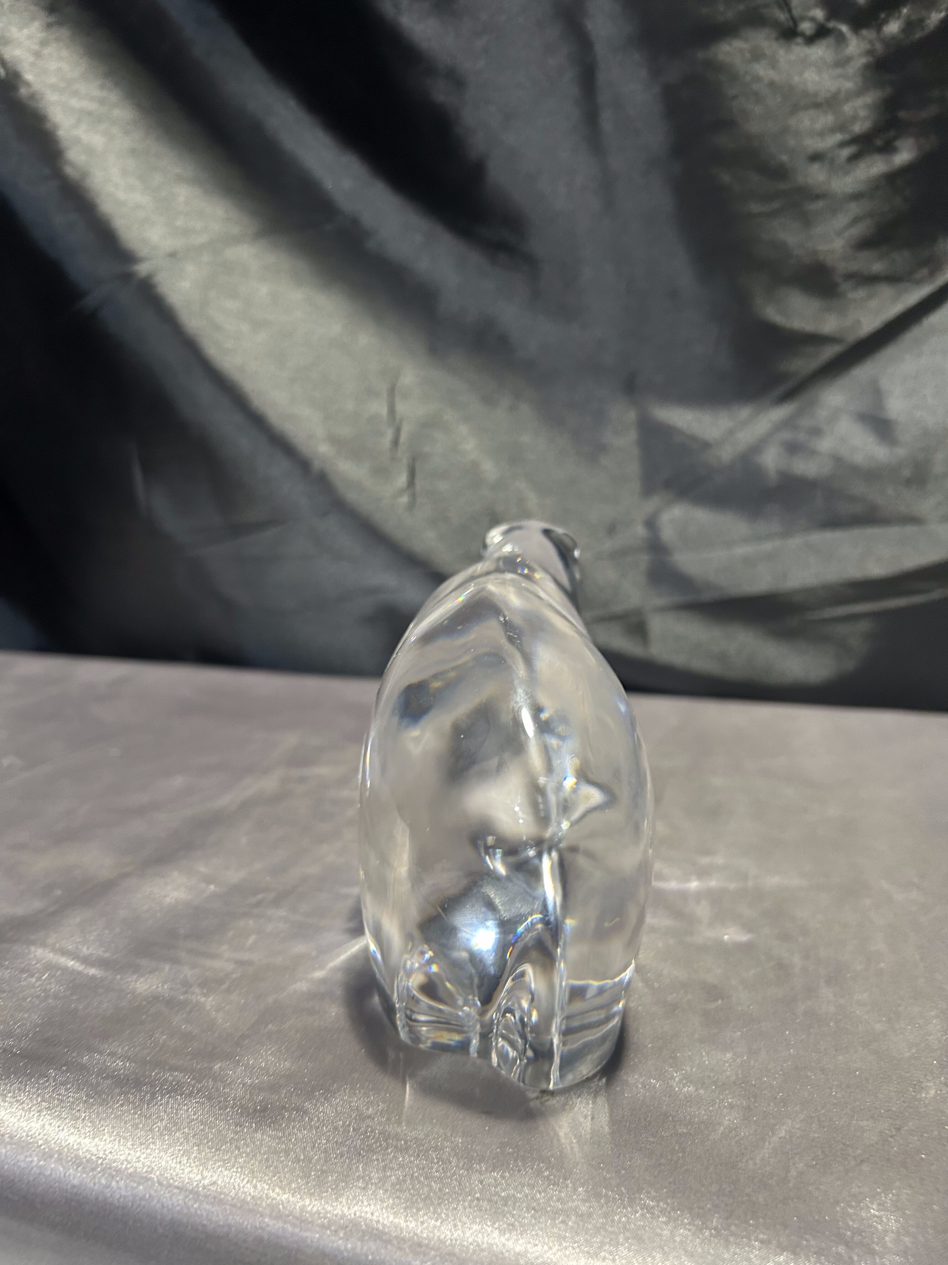Elegancka figurka niedźwiedzia wykonana ze szkła artystycznego o całkowicie przeźroczystej formie. Prosty, lecz wyrazisty kształt oddaje siłę i spokój zwierzęcia, a gładka powierzchnia pięknie odbija światło, nadając całości wyjątkowego charakteru.
