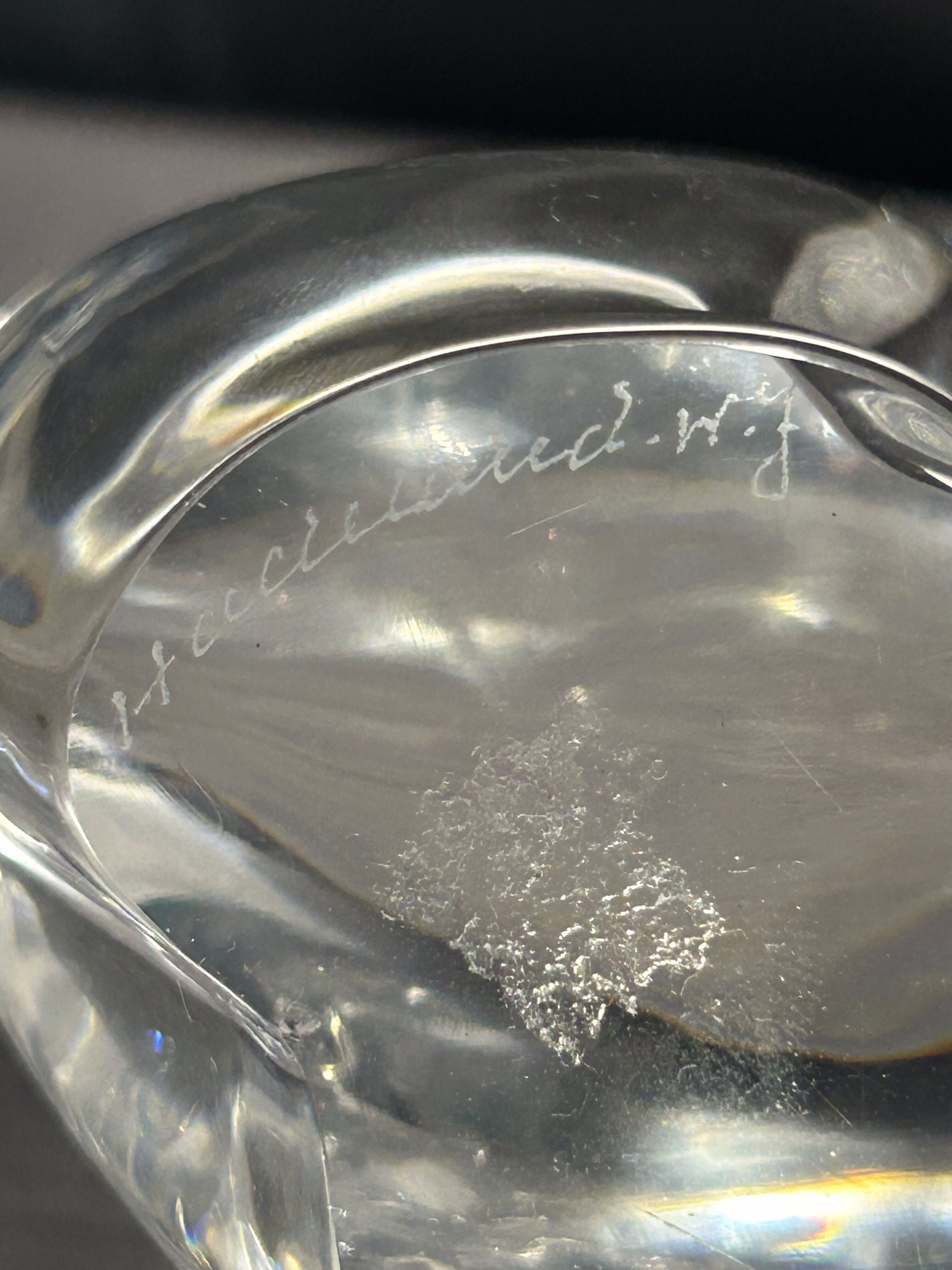Figurka sygnowana HADELAND.W.J., co świadczy o jej pochodzeniu z renomowanej norweskiej huty szkła Hadeland Glassverk – jednej z najstarszych i najbardziej cenionych hut szkła w Europie Północnej, działającej nieprzerwanie od 1762 roku. Prace z tej huty cenione są za wysoką jakość, tradycyjne rzemiosło i unikalny styl.