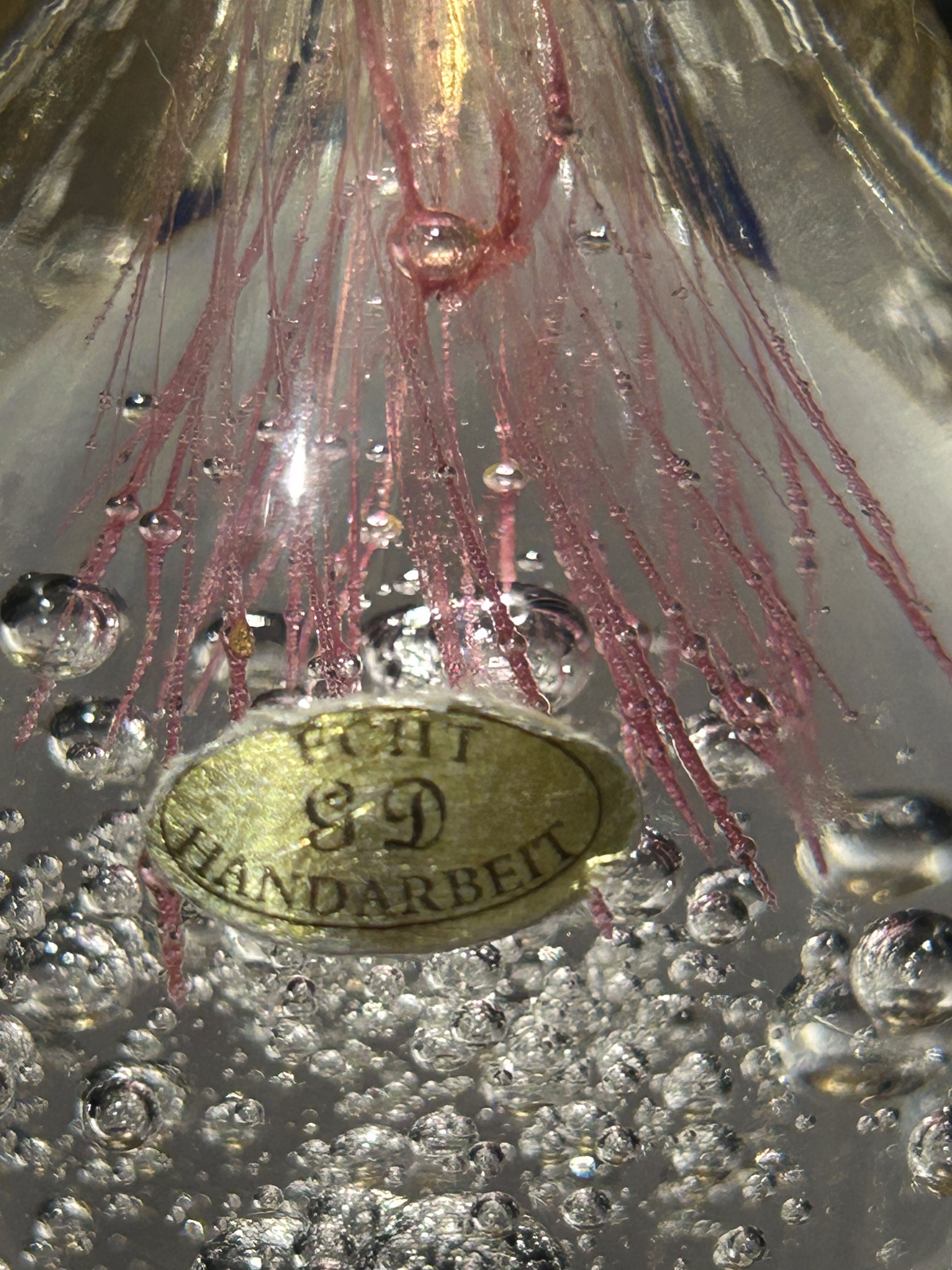 Szklany przycisk do papieru – Echt Handarbeit G&D – ręczne szkło artystyczne