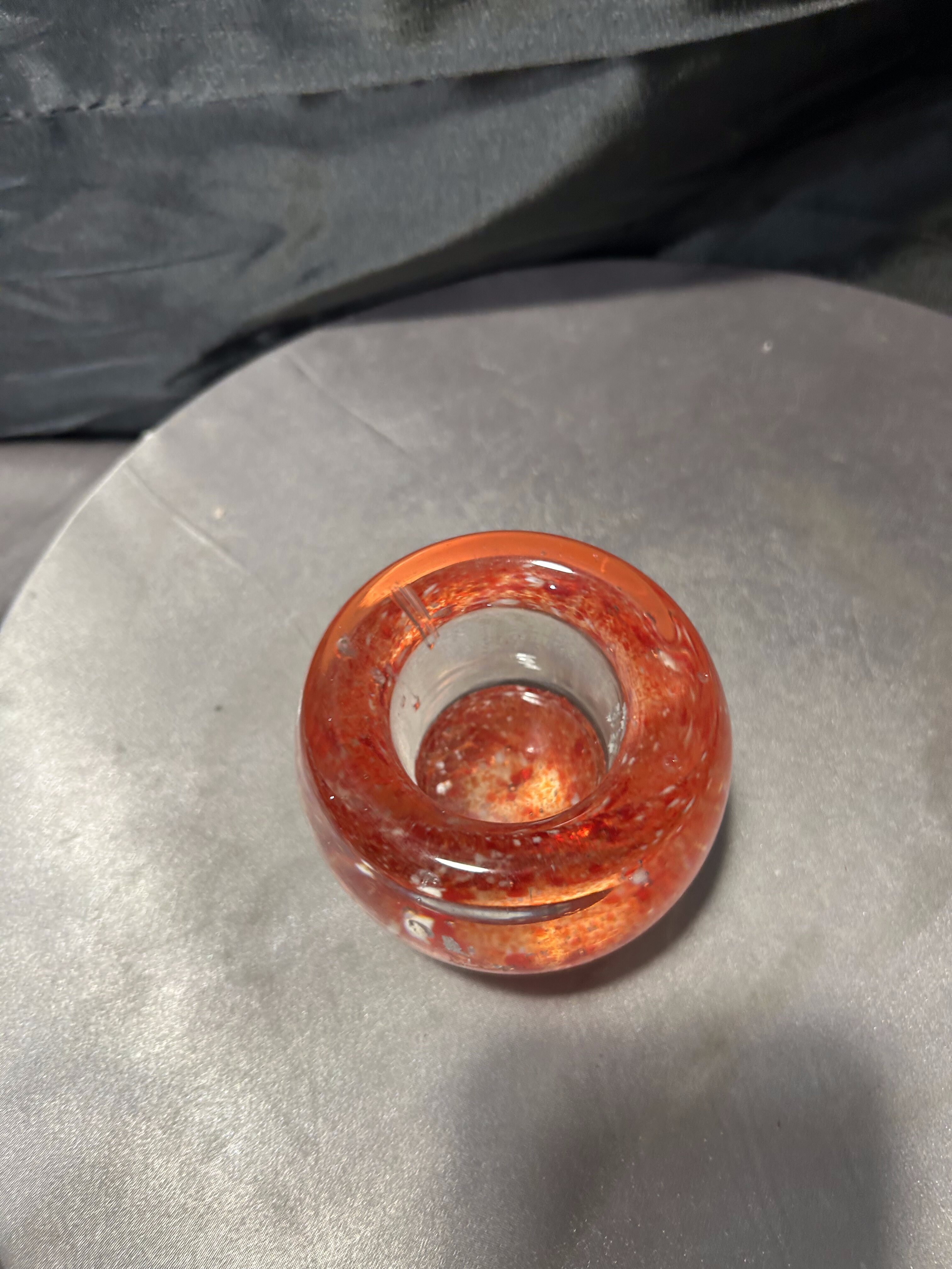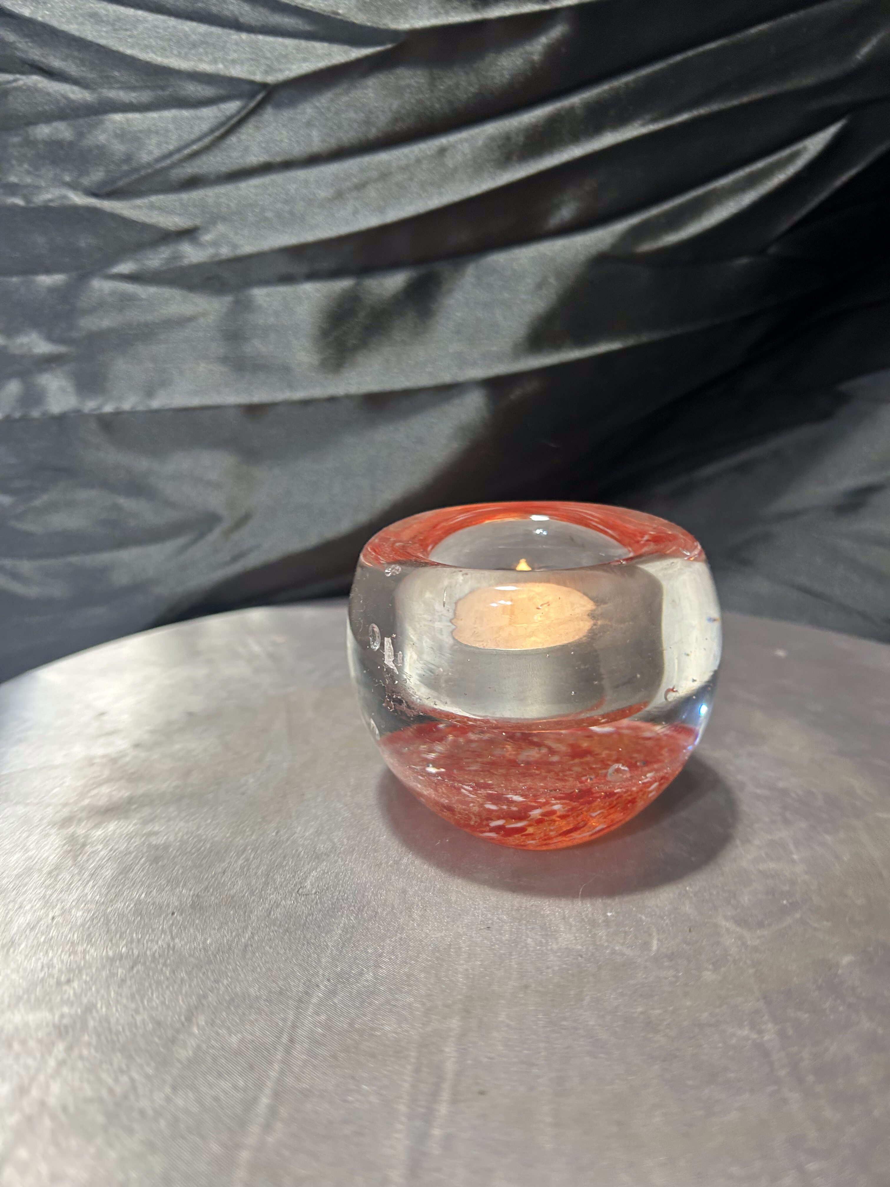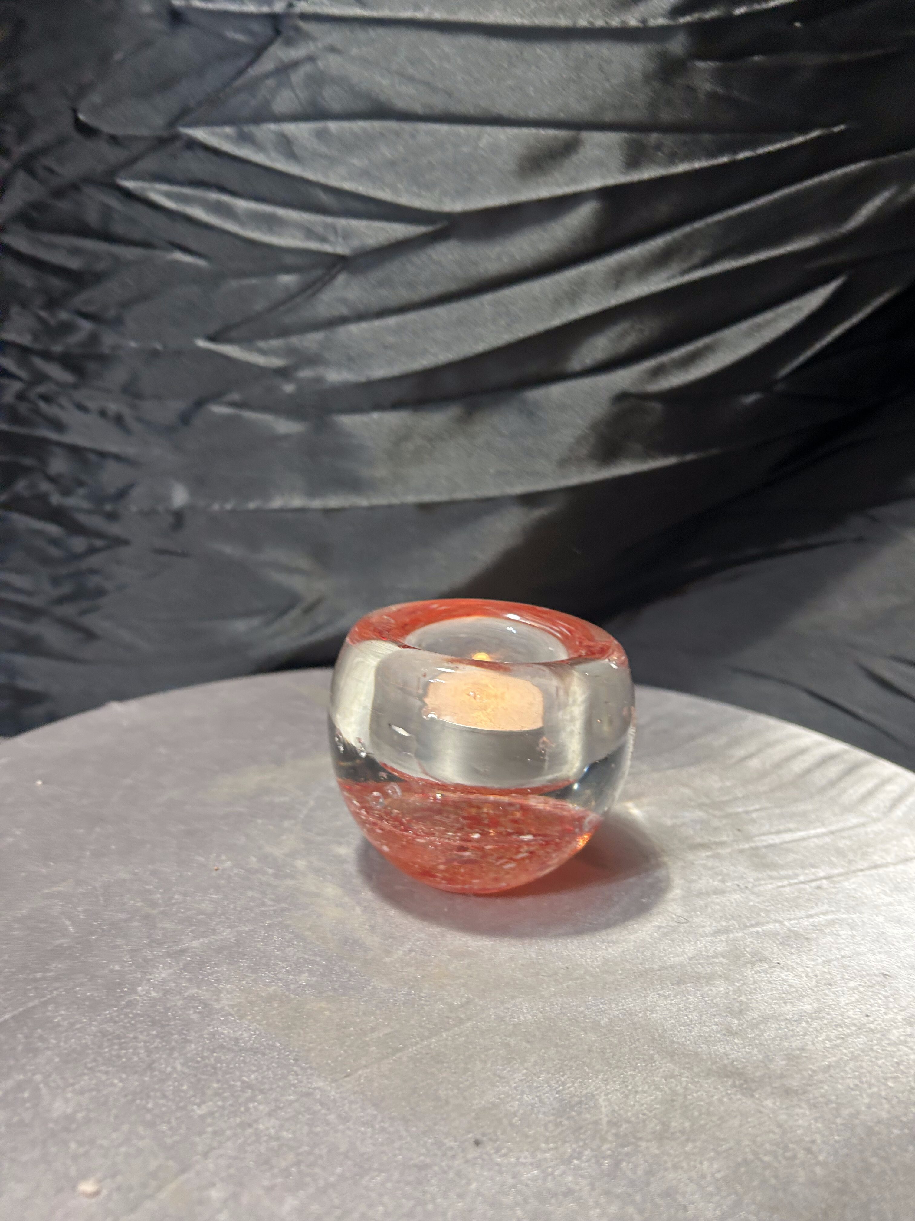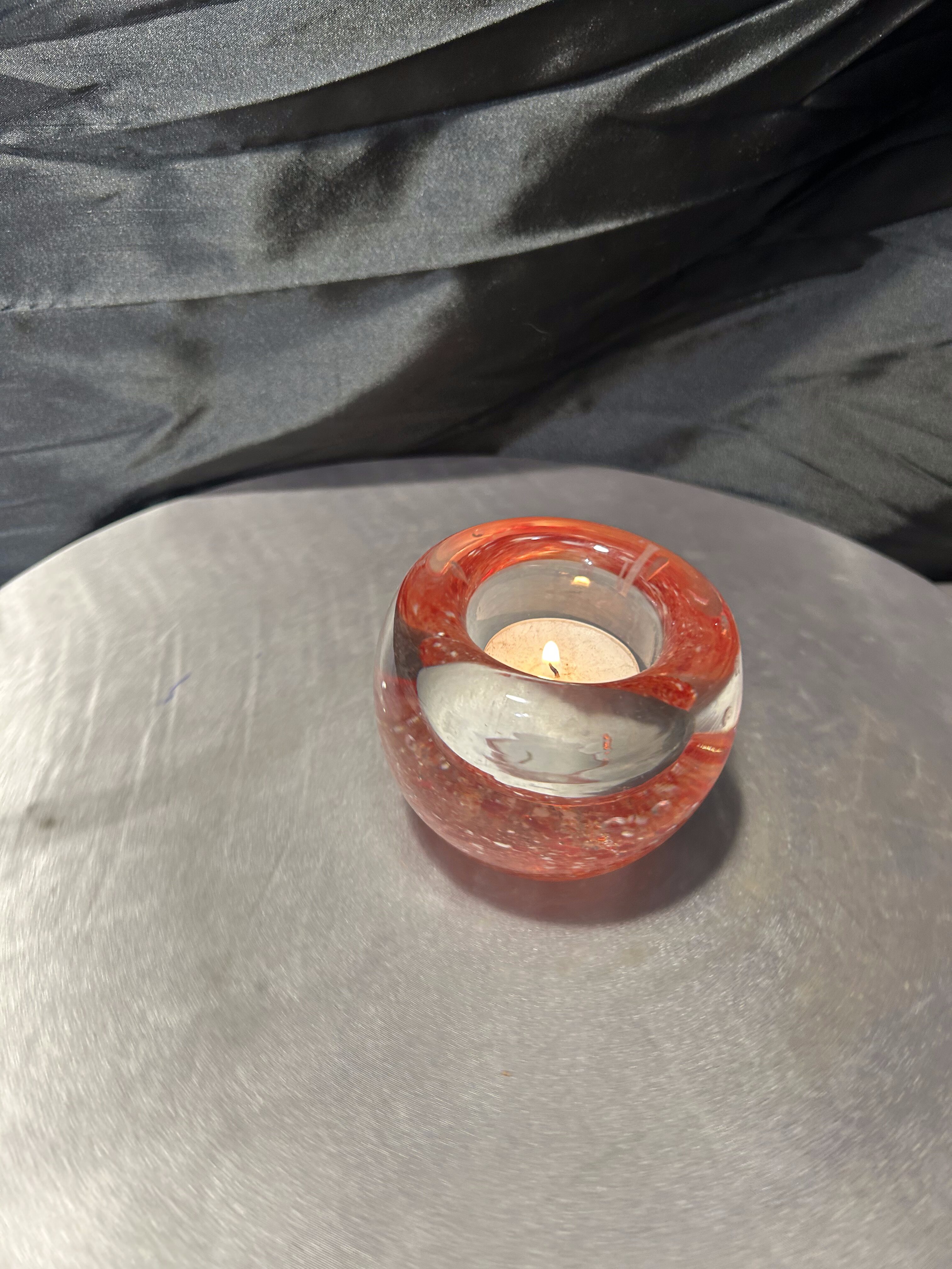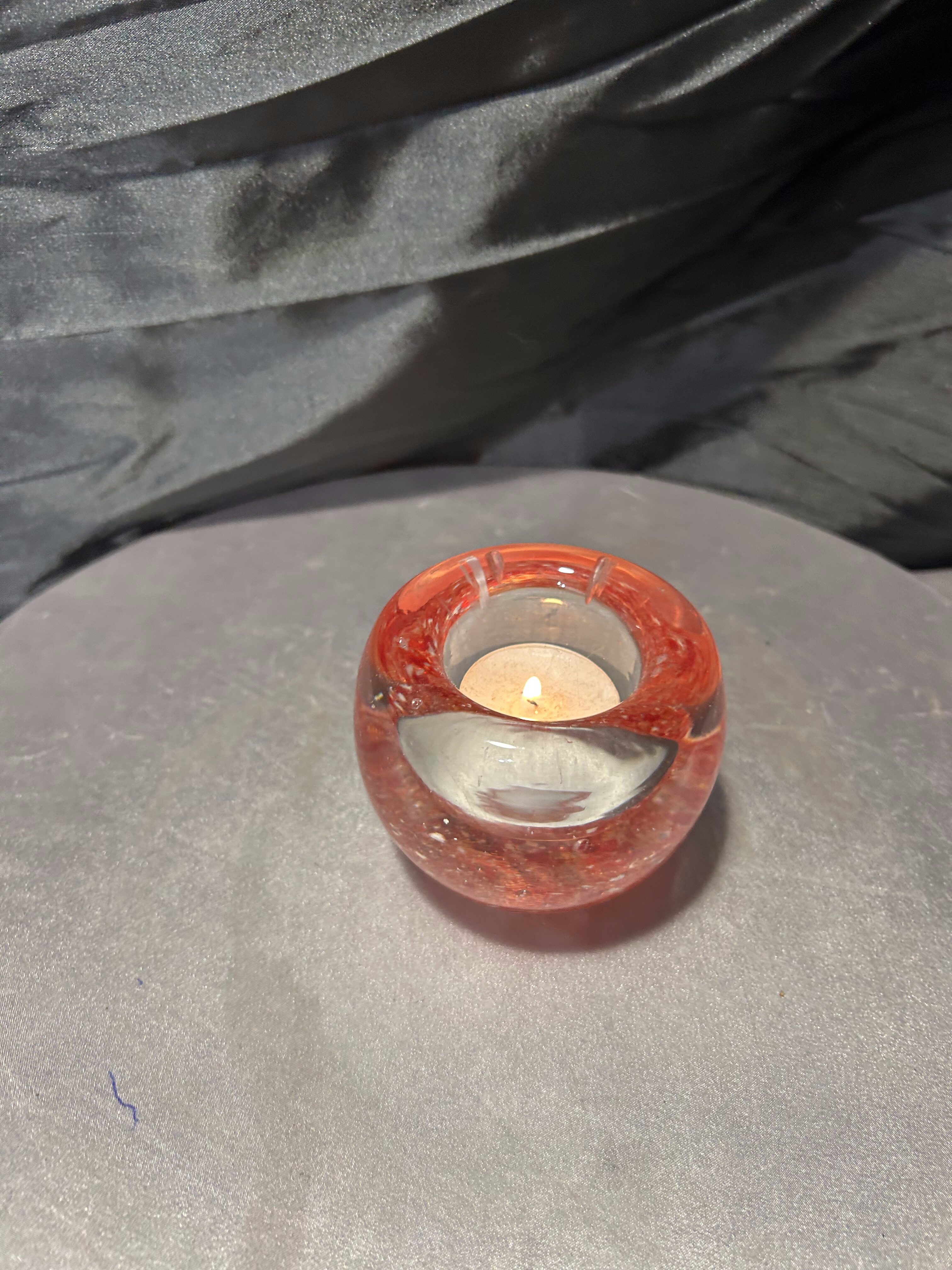 - Szklany świecznik kula – świecznik na tealight w pomarańczowym odcieniu