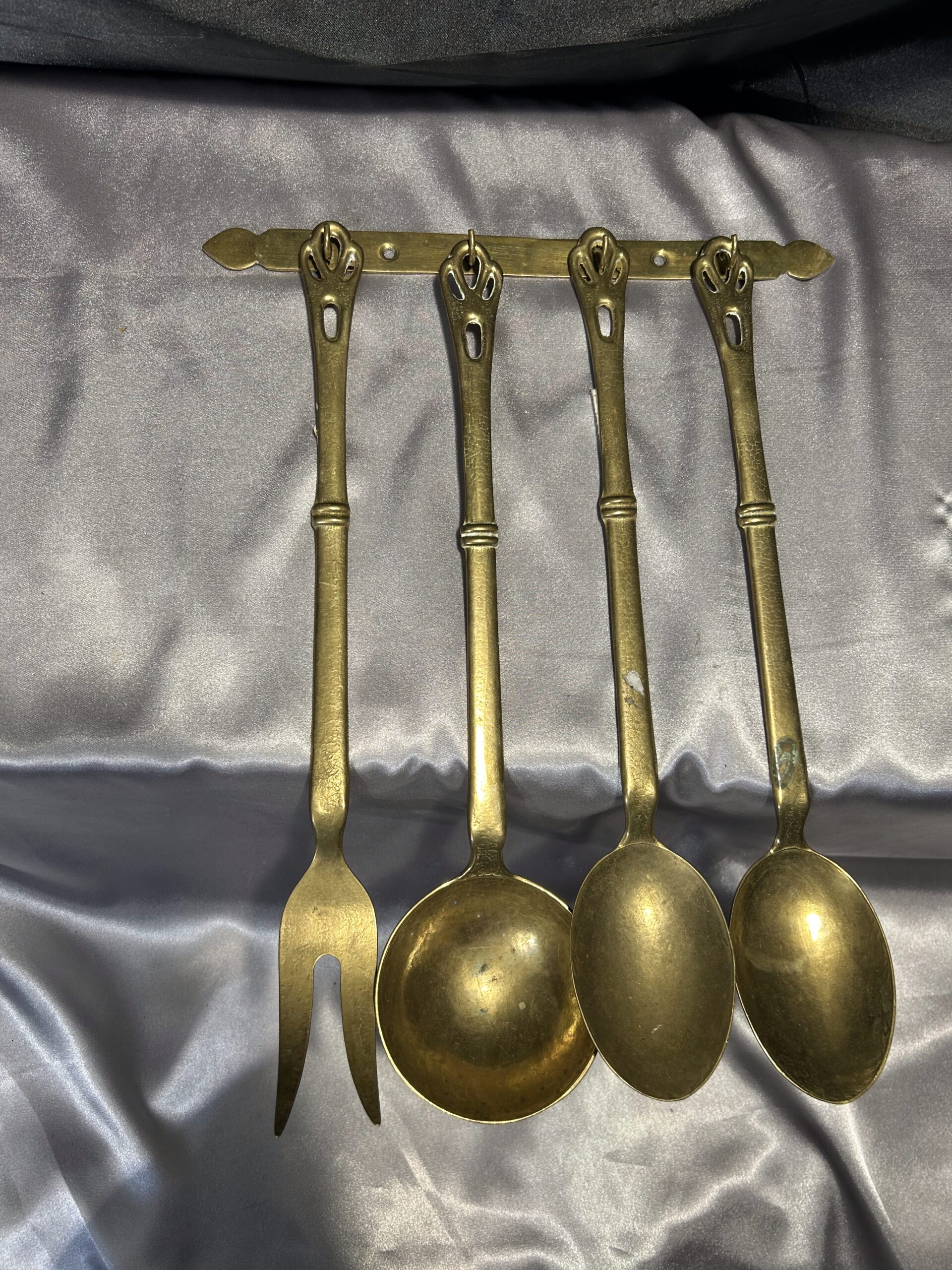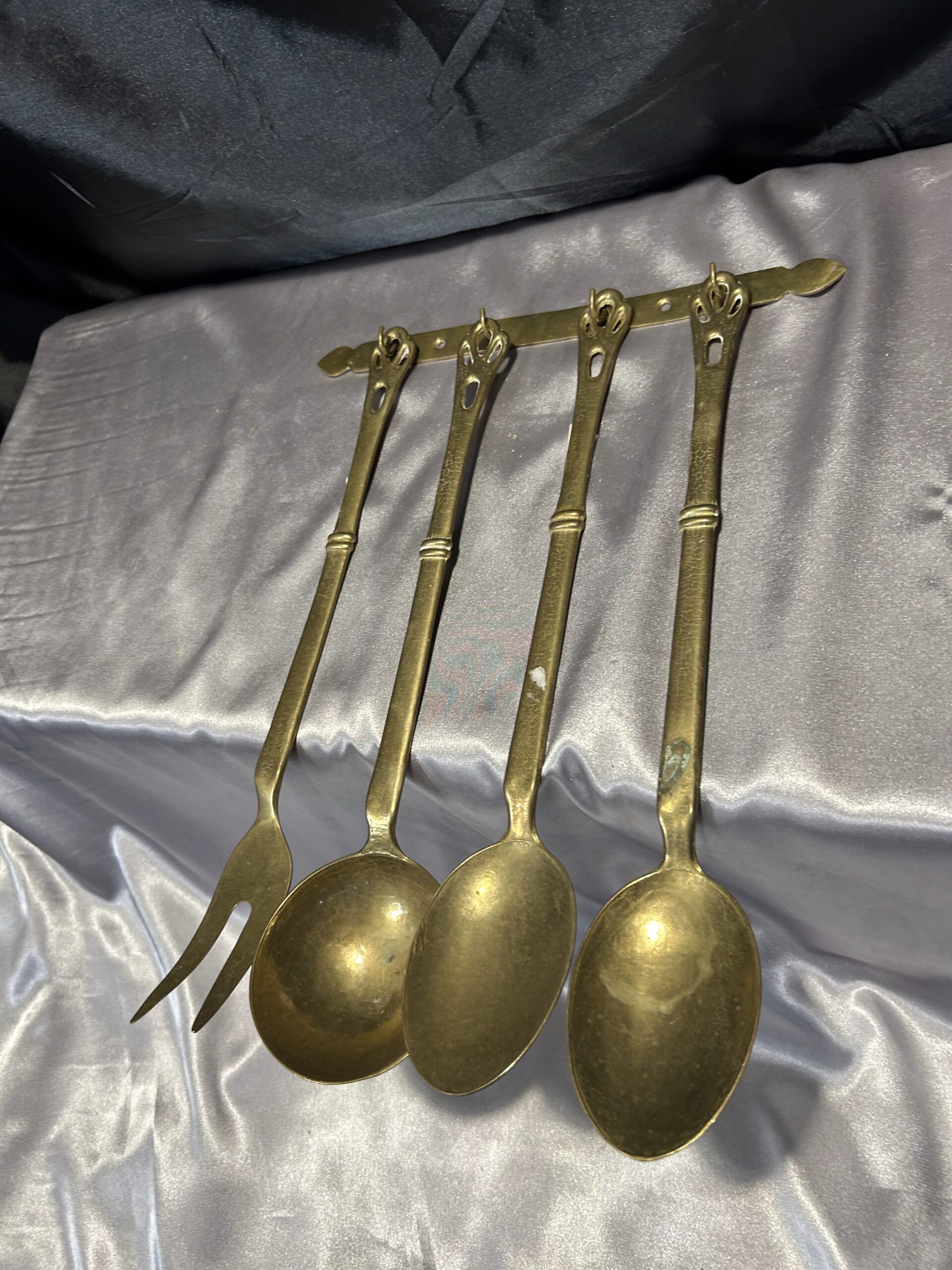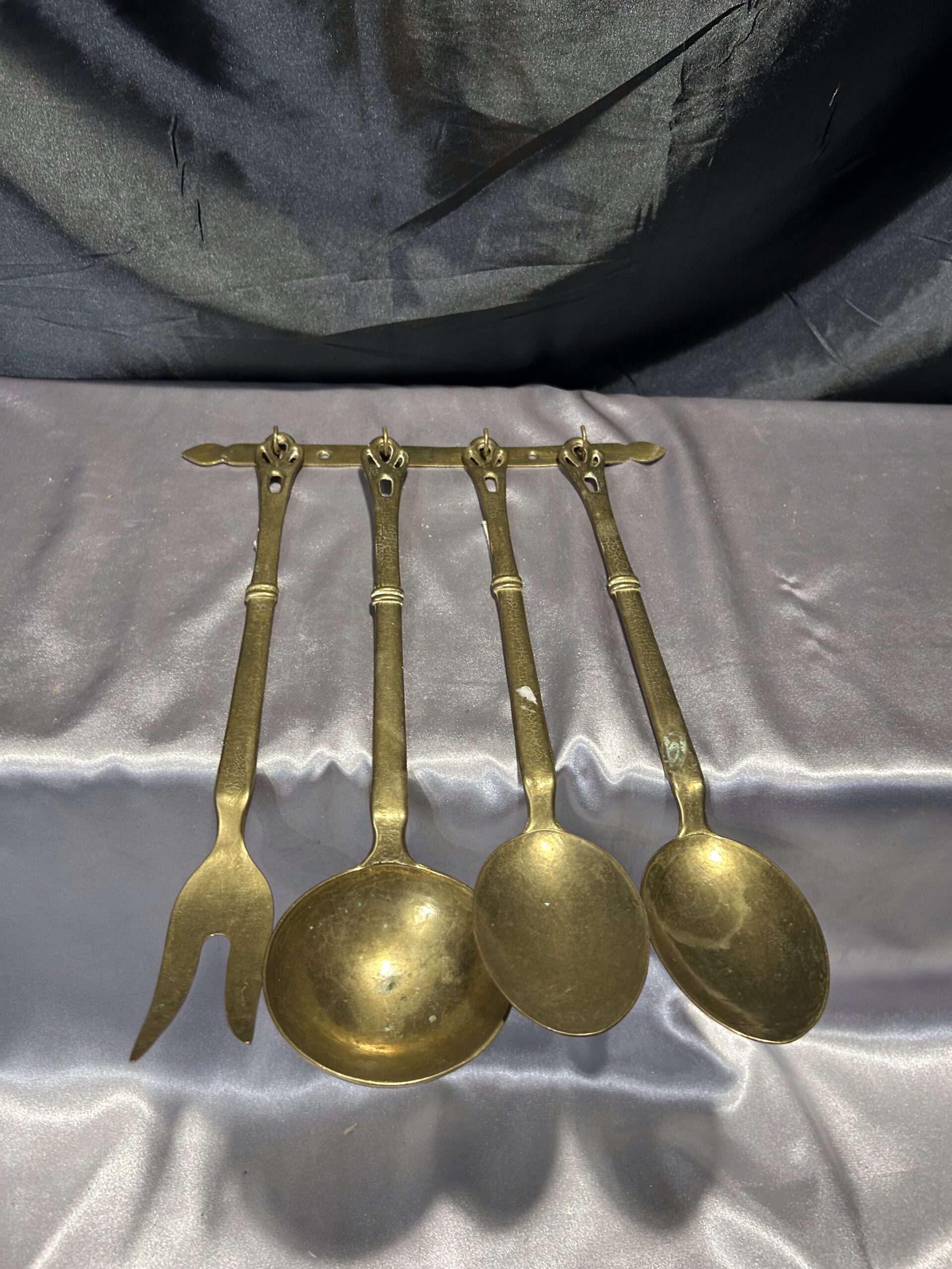 Sztućce z Mosiądzu – Zestaw do Zawieszenia na Ścianie ze Specjalnym haczykiem