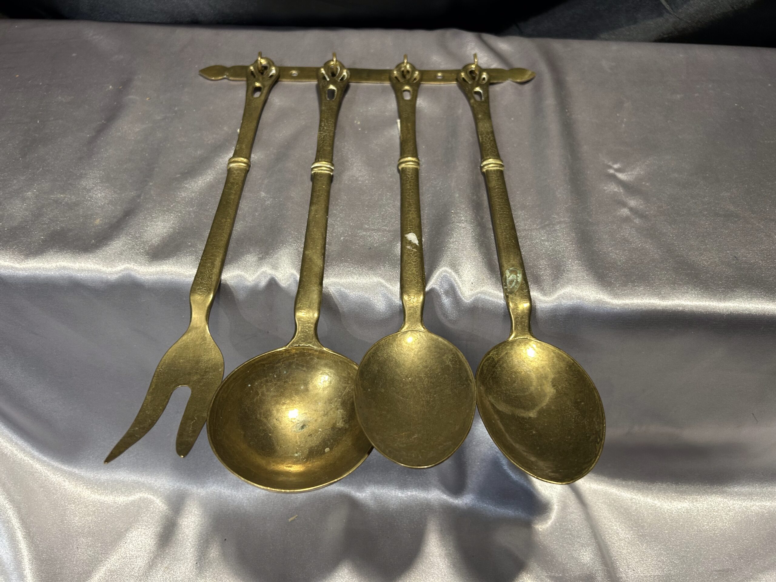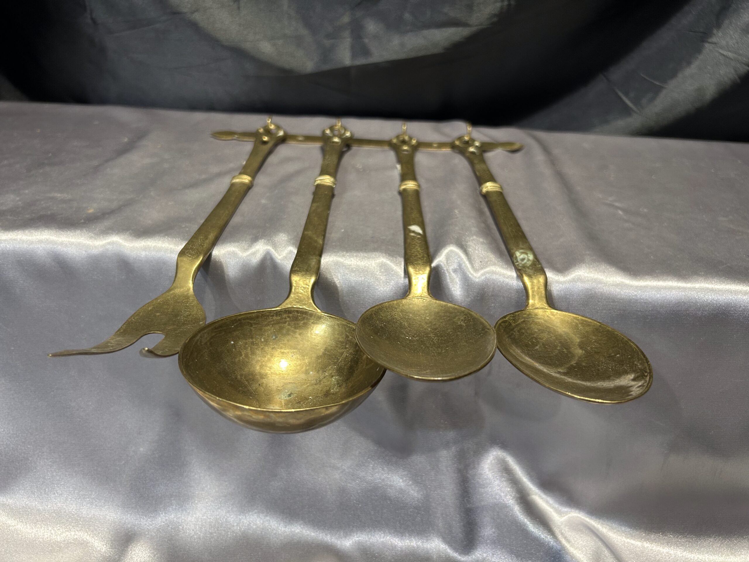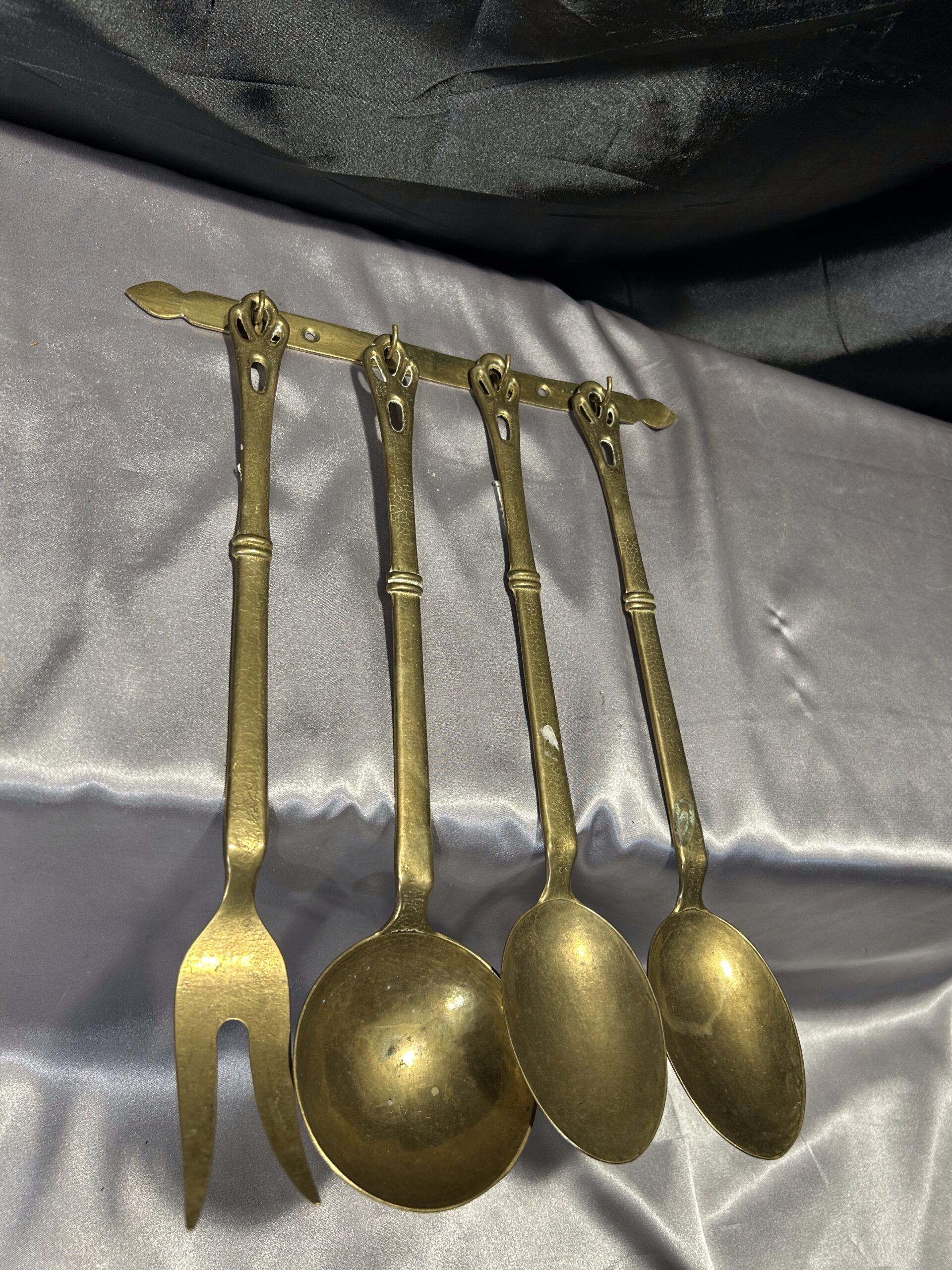 Sztućce z Mosiądzu – Zestaw do Zawieszenia na Ścianie ze Specjalnym haczykiem