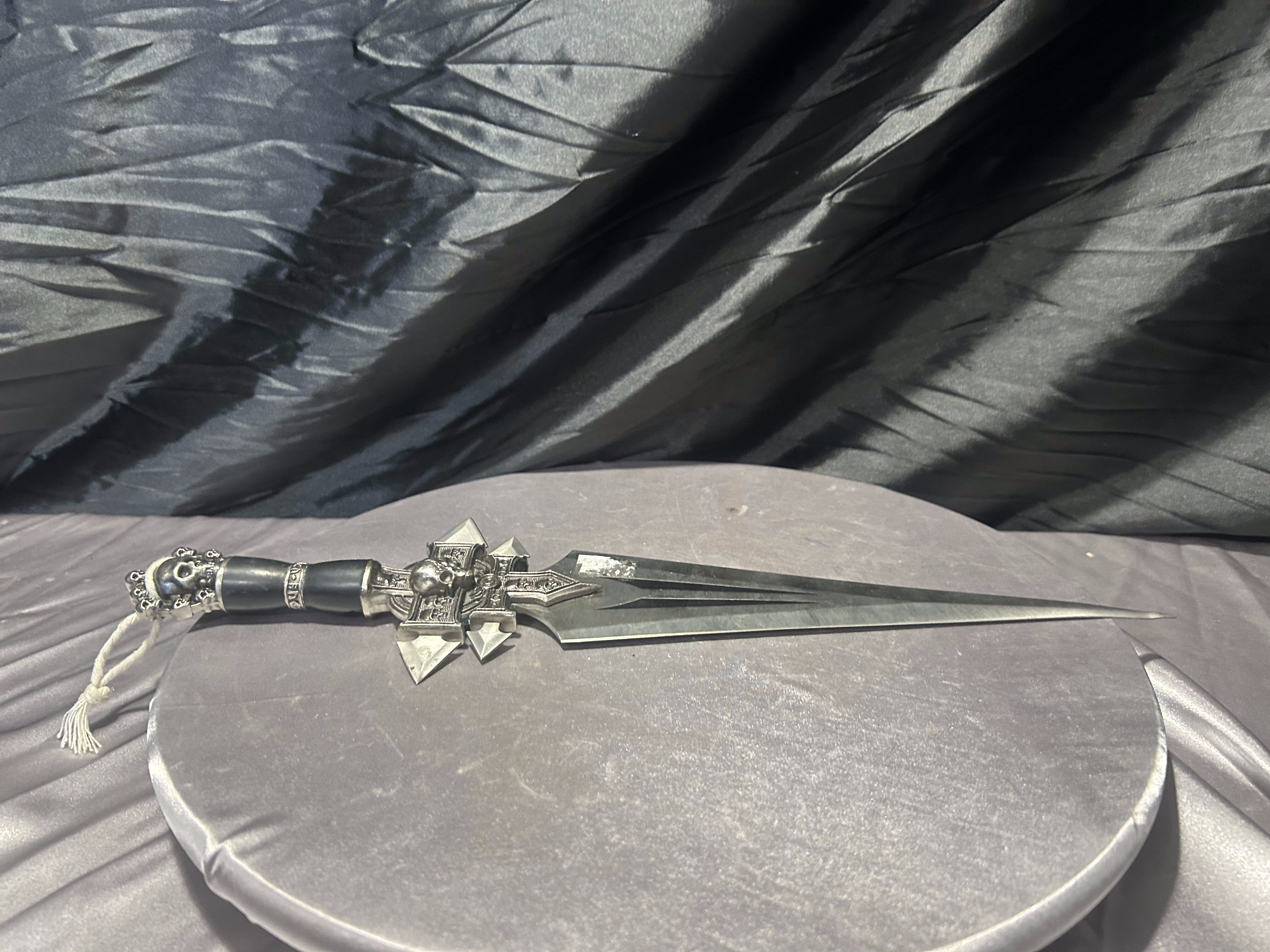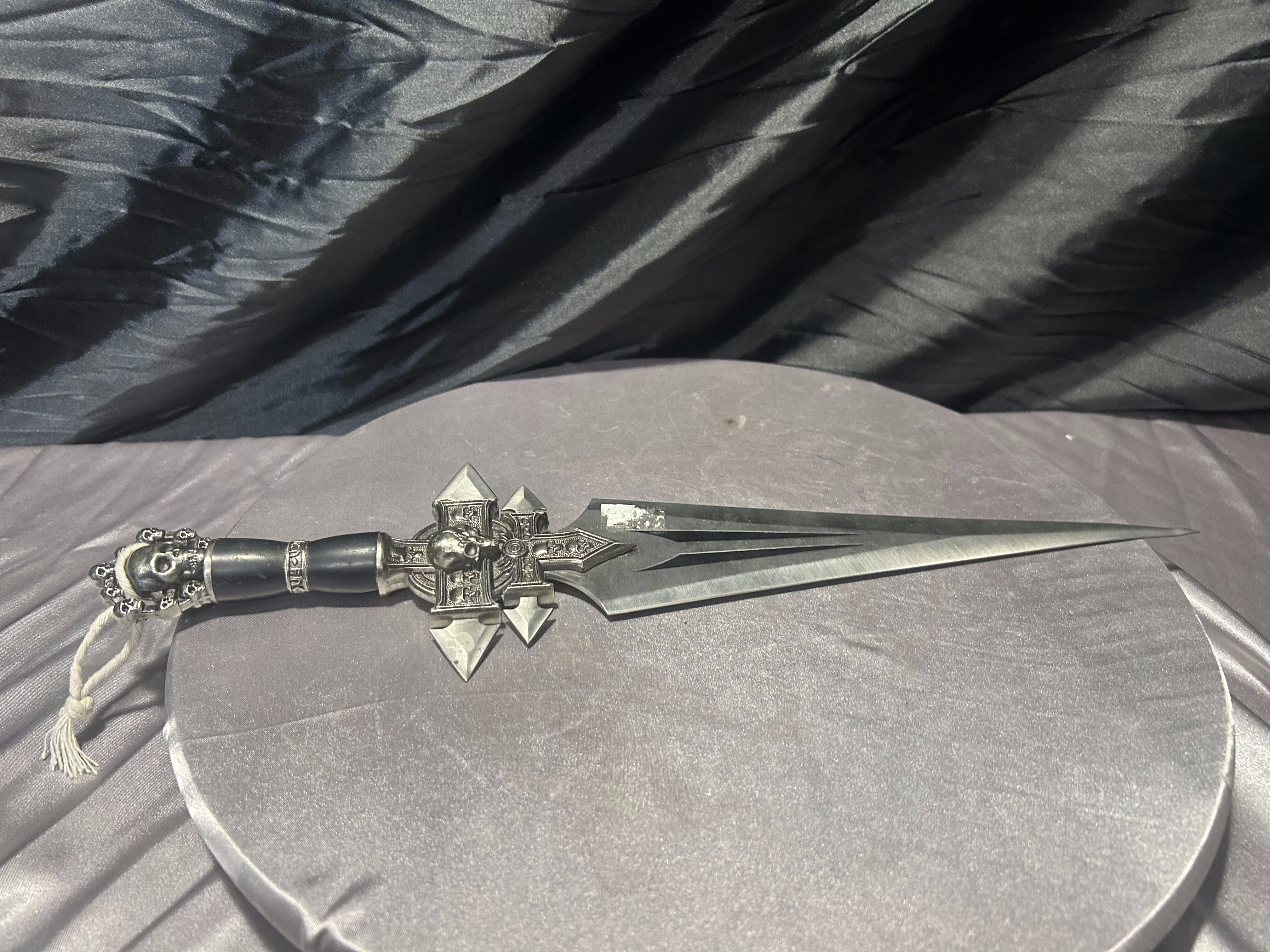 Sztylet wyróżnia się dopracowaną formą i mocnym, wyrazistym motywem dekoracyjnym, dzięki czemu stanowi atrakcyjny element kolekcji lub nietuzinkową ozdobę wnętrza. Idealny dla osób ceniących gotycki klimat oraz oryginalne przedmioty z charakterem.