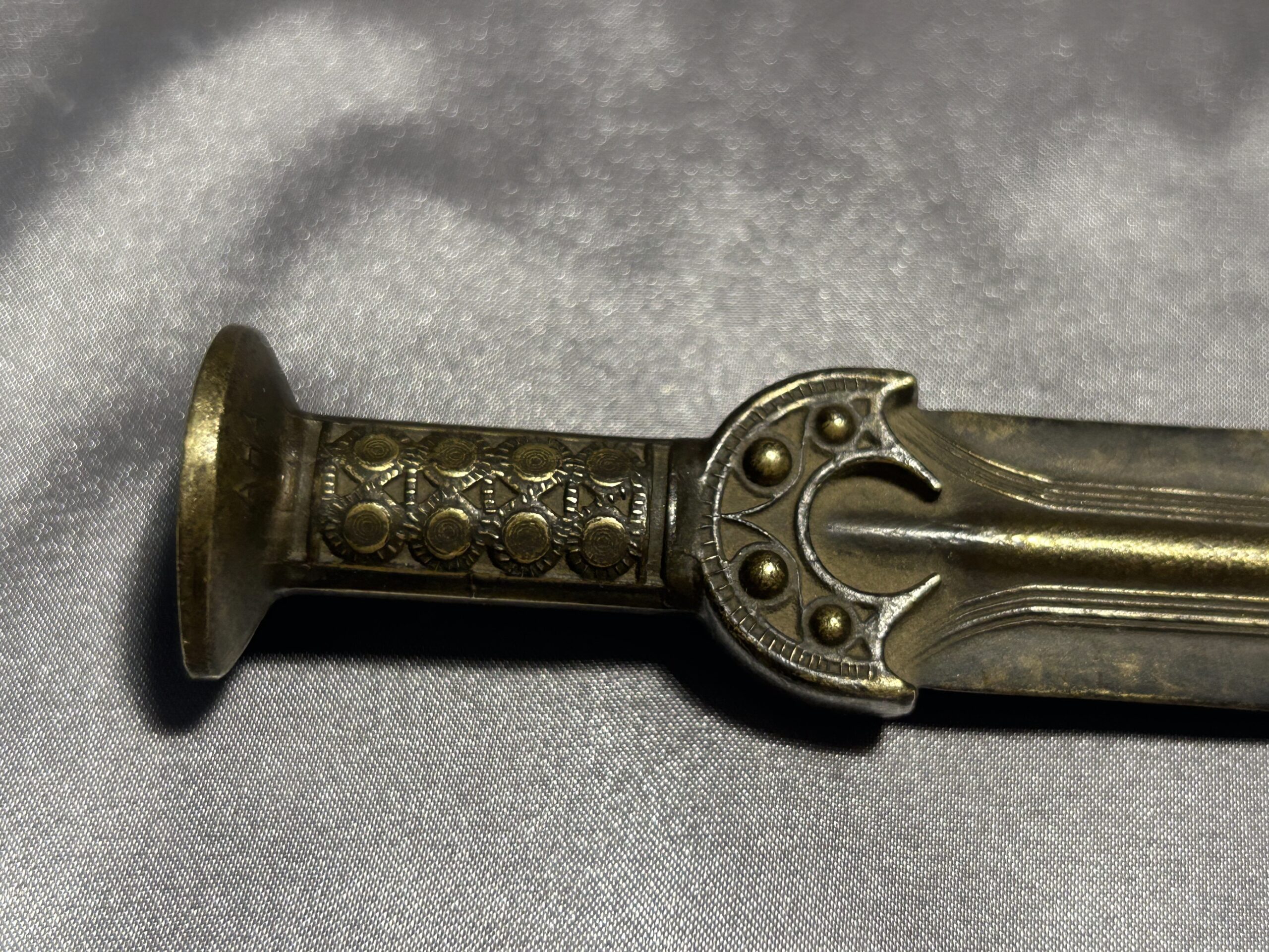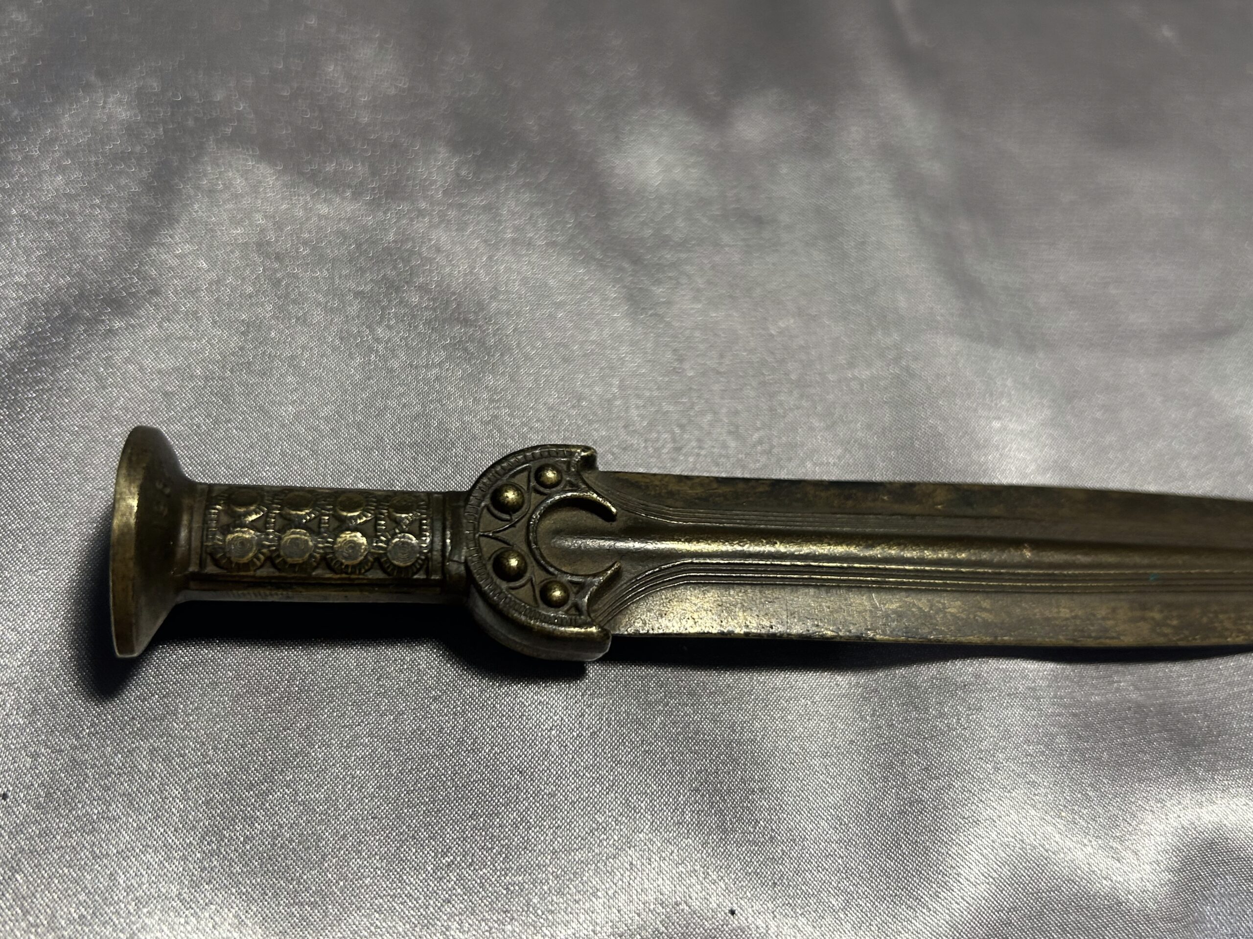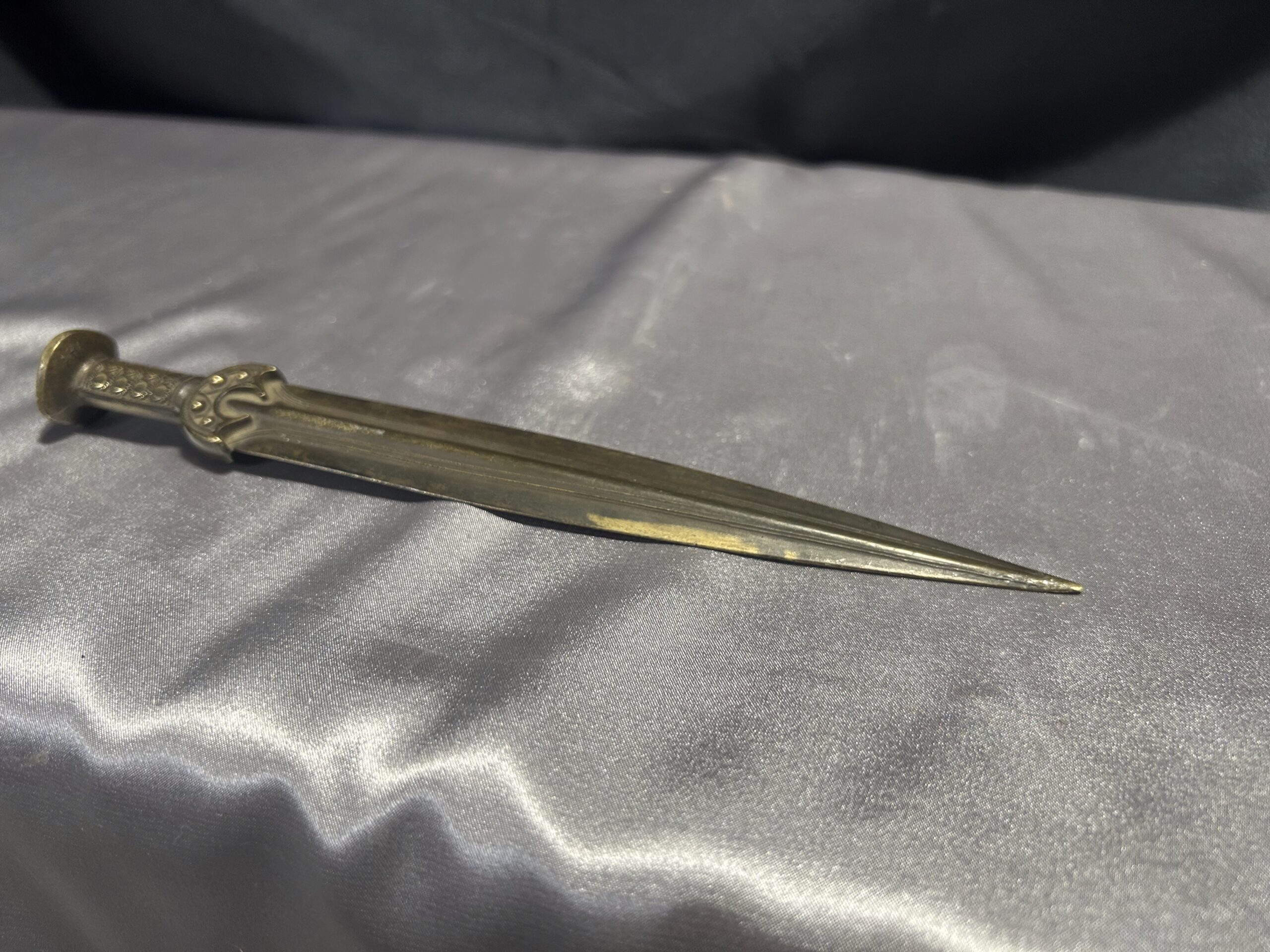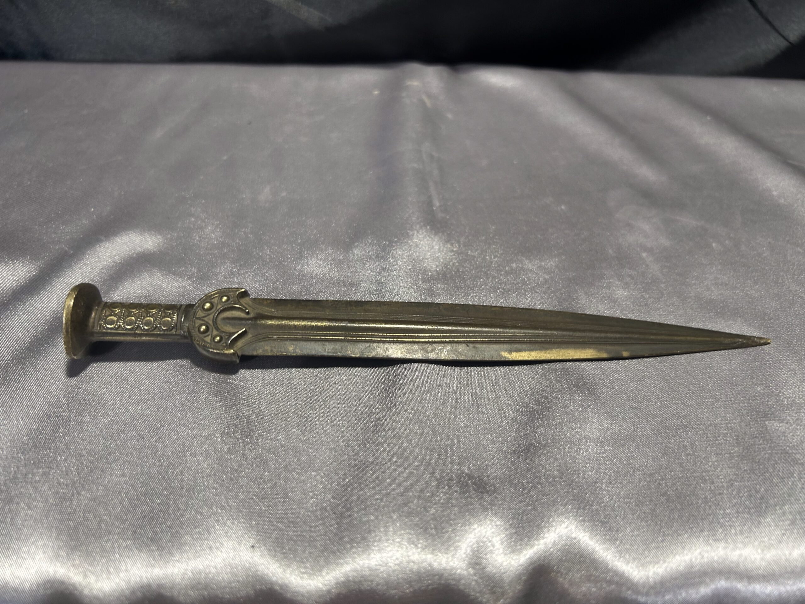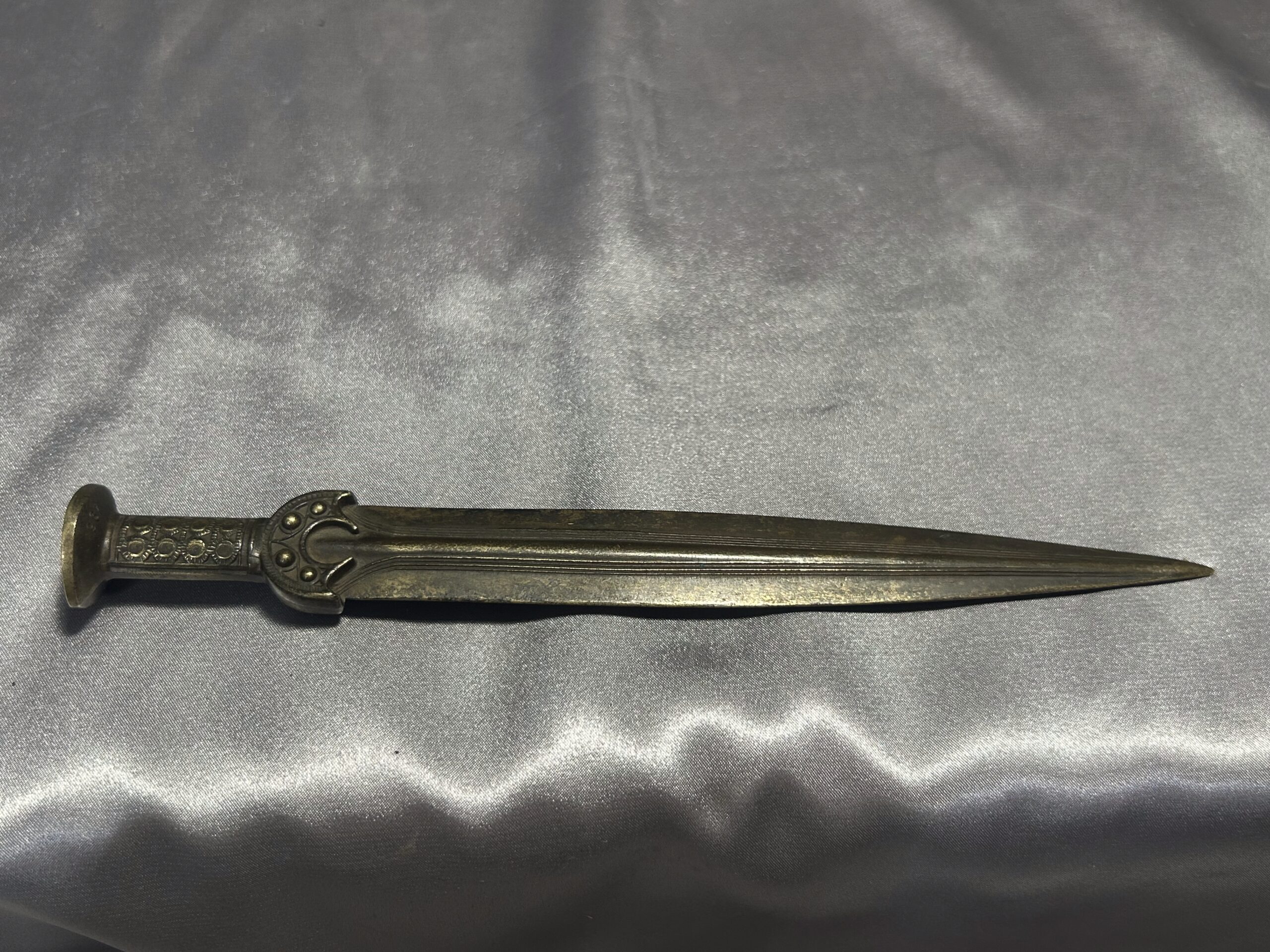 Elegancki sztylet o zdobionej rękojeści, idealny dla miłośników białej broni oraz kolekcjonerów. Dzięki swojej wyjątkowej estetyce i precyzyjnemu wykonaniu, sztylet ten stanowi doskonałe połączenie funkcjonalności i dekoracyjności.