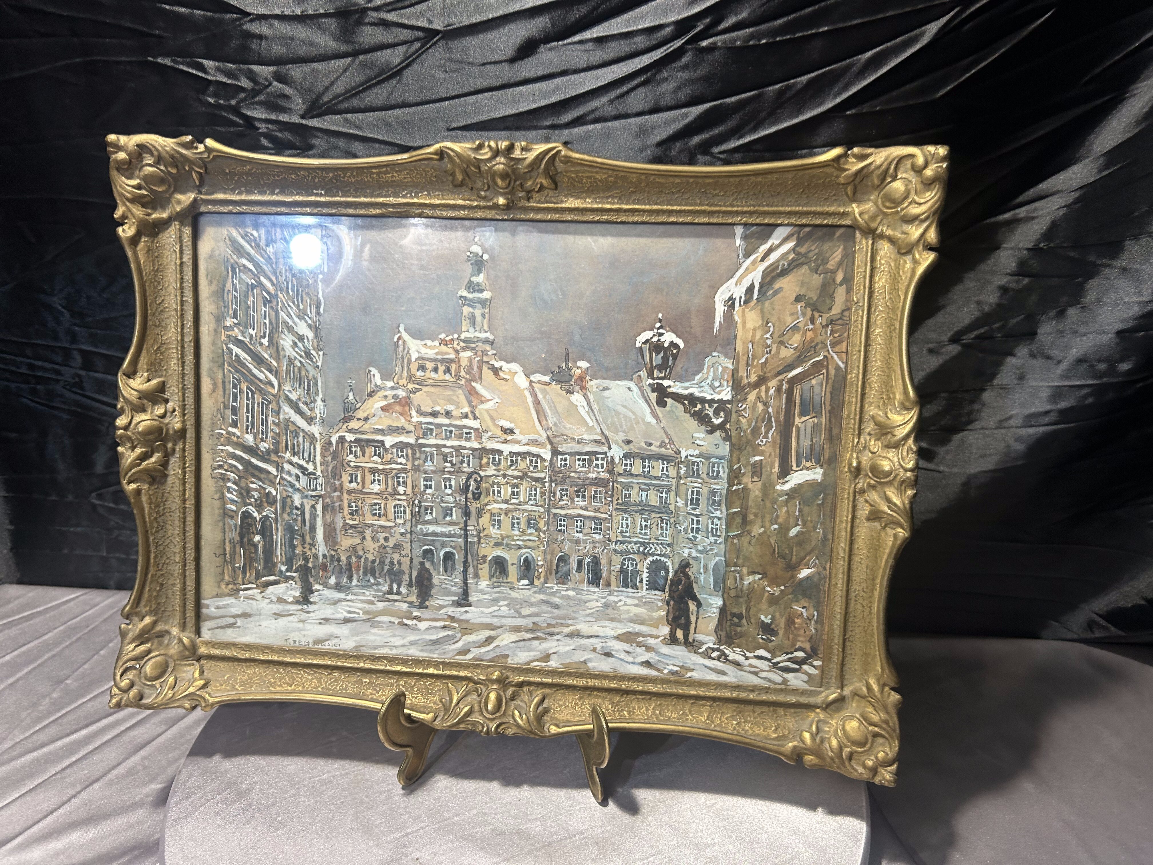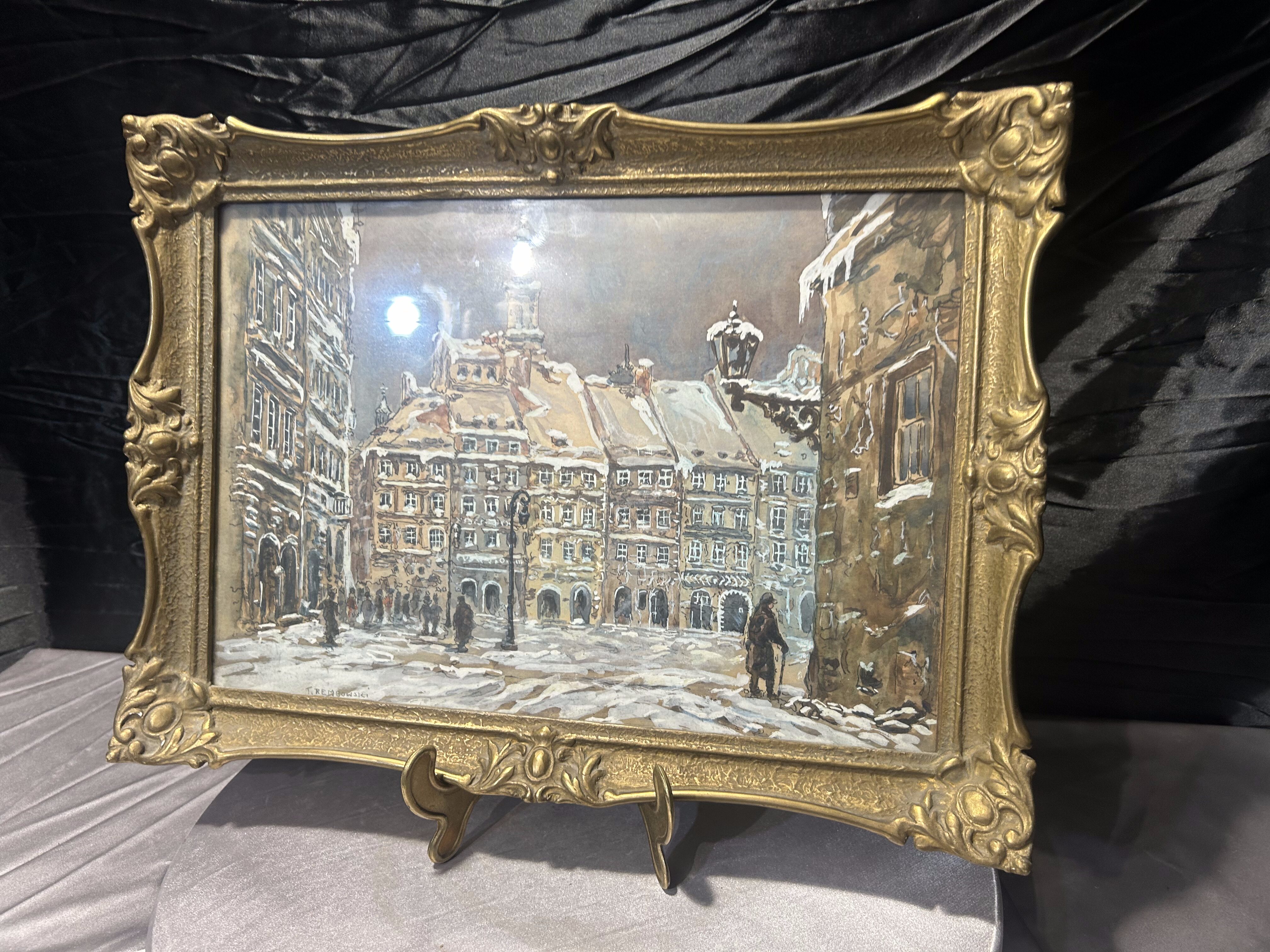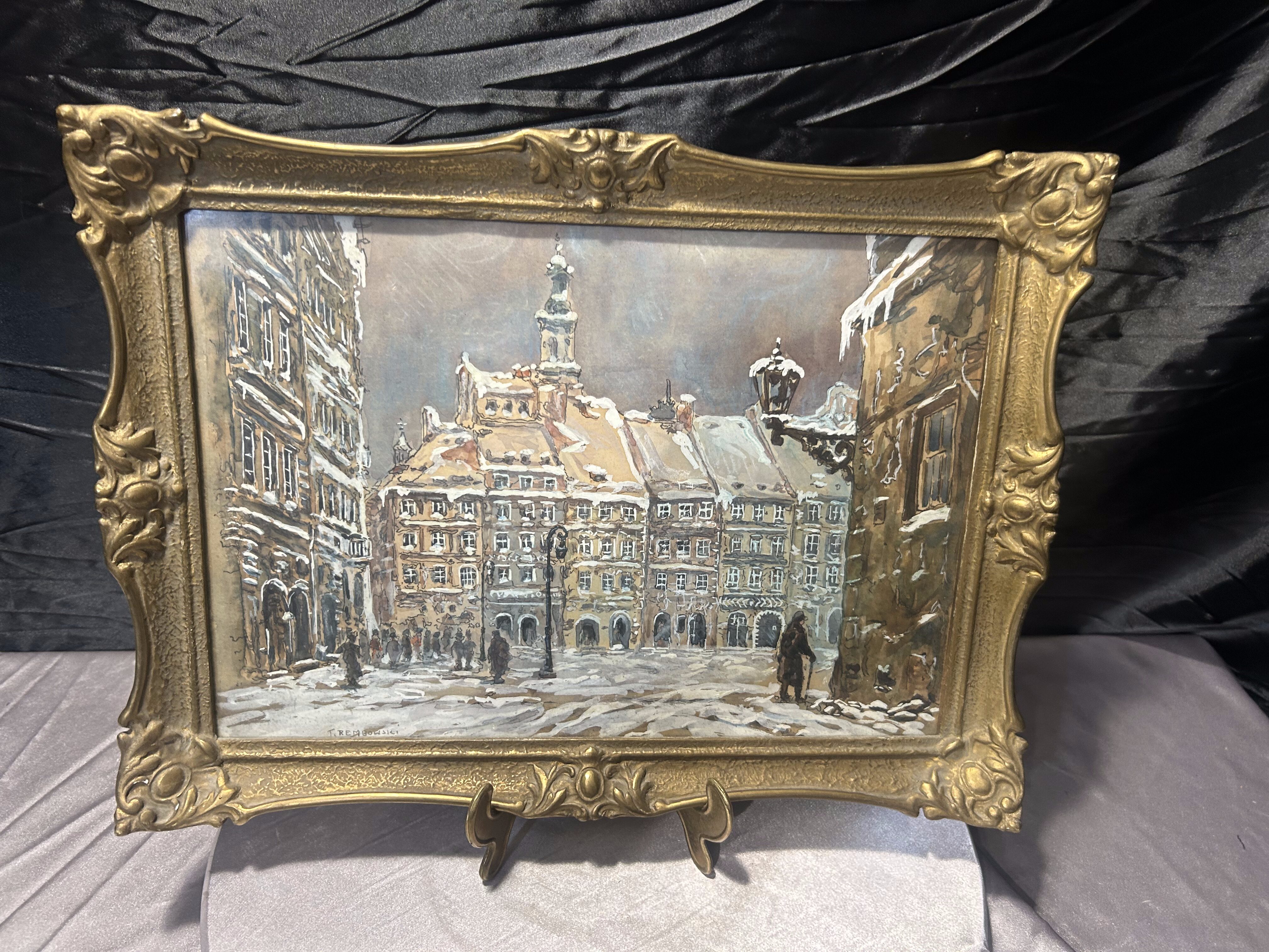 - T. Rembowski – „Stare Miasto w Warszawie” 1935 – akwarela w zdobionej złotej ramie