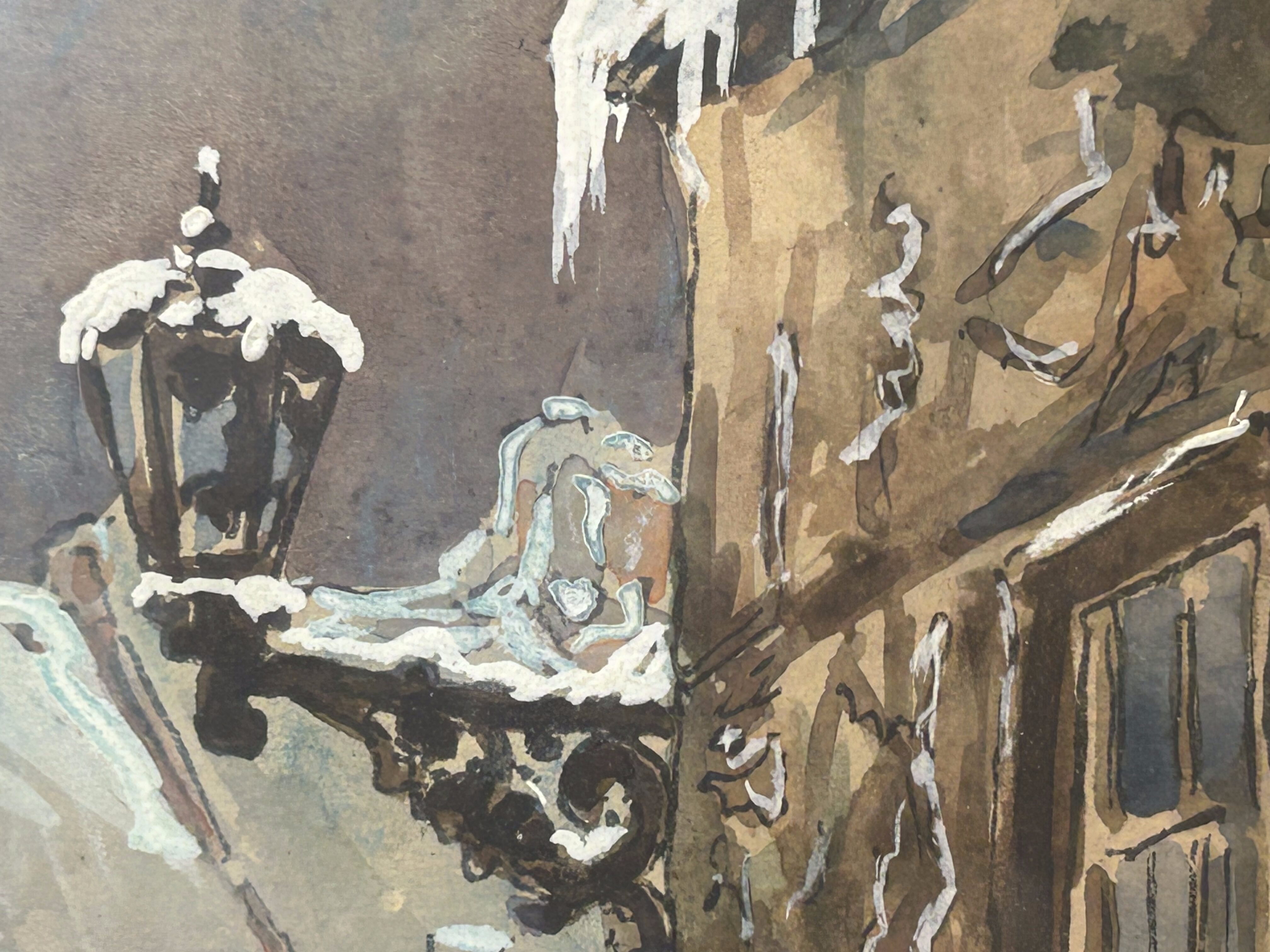 Artysta zastosował delikatną gamę kolorystyczną z ciepłymi tonami architektury oraz chłodniejszymi akcentami zimowego krajobrazu. Dzięki temu praca oddaje atmosferę dawnej Warszawy i przyciąga uwagę detalami architektonicznymi.