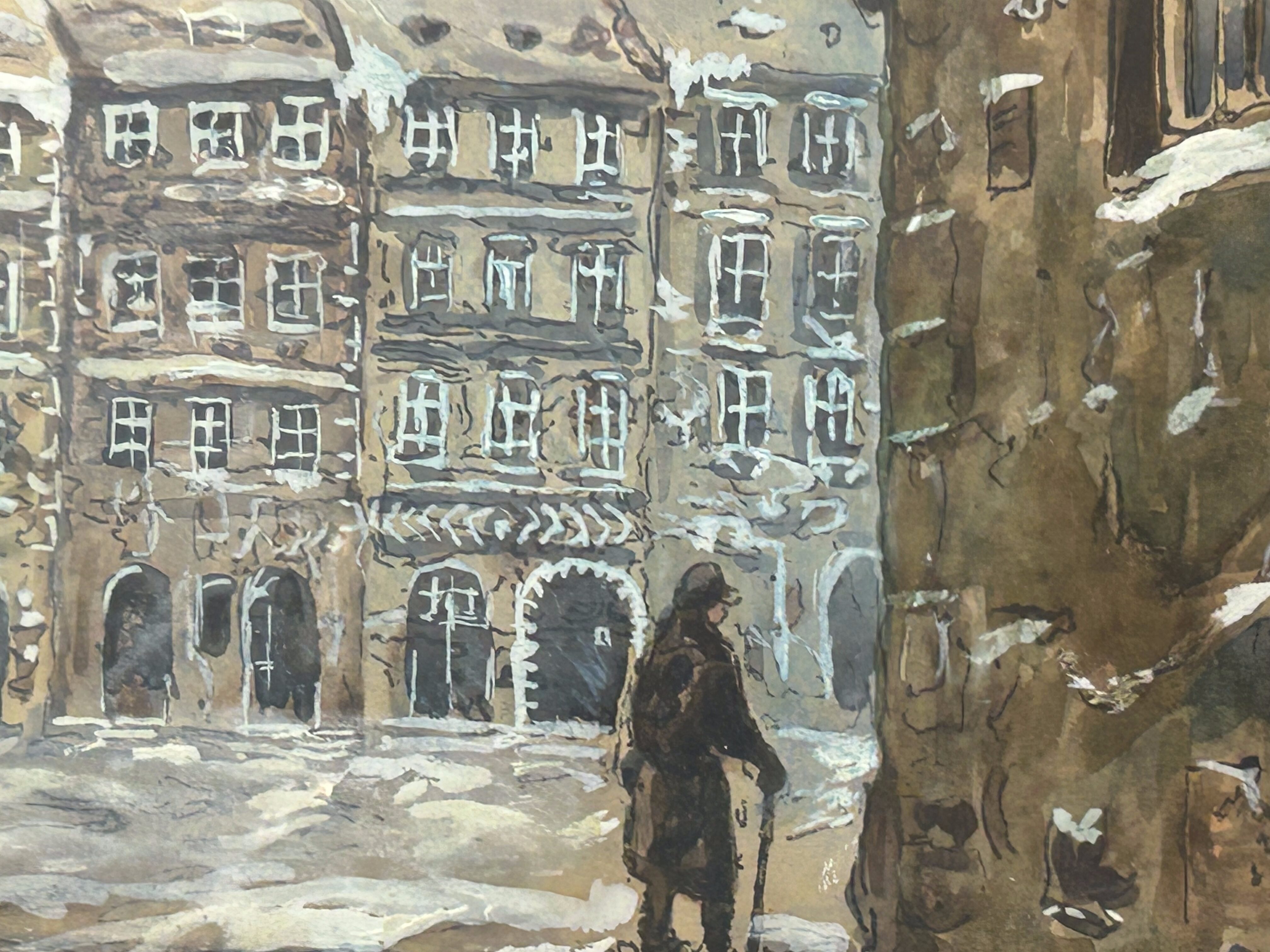 Praca autorstwa T. Rembowskiego, artysty malarza tworzącego pejzaże miejskie inspirowane historyczną architekturą i klimatem dawnych miast. Jego twórczość koncentrowała się przede wszystkim na przedstawianiu fragmentów zabudowy miejskiej oraz atmosfery ulic i placów, oddanych w lekkiej, nastrojowej technice akwareli.
