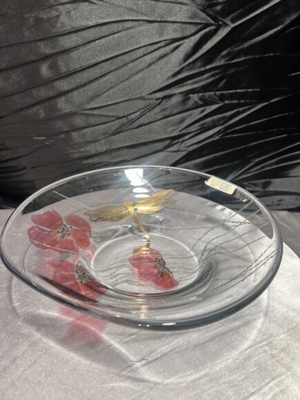 Talerz szklany „Dansk Glas Kunst” – maki i ważka – Ø 25×23 cm – design duński