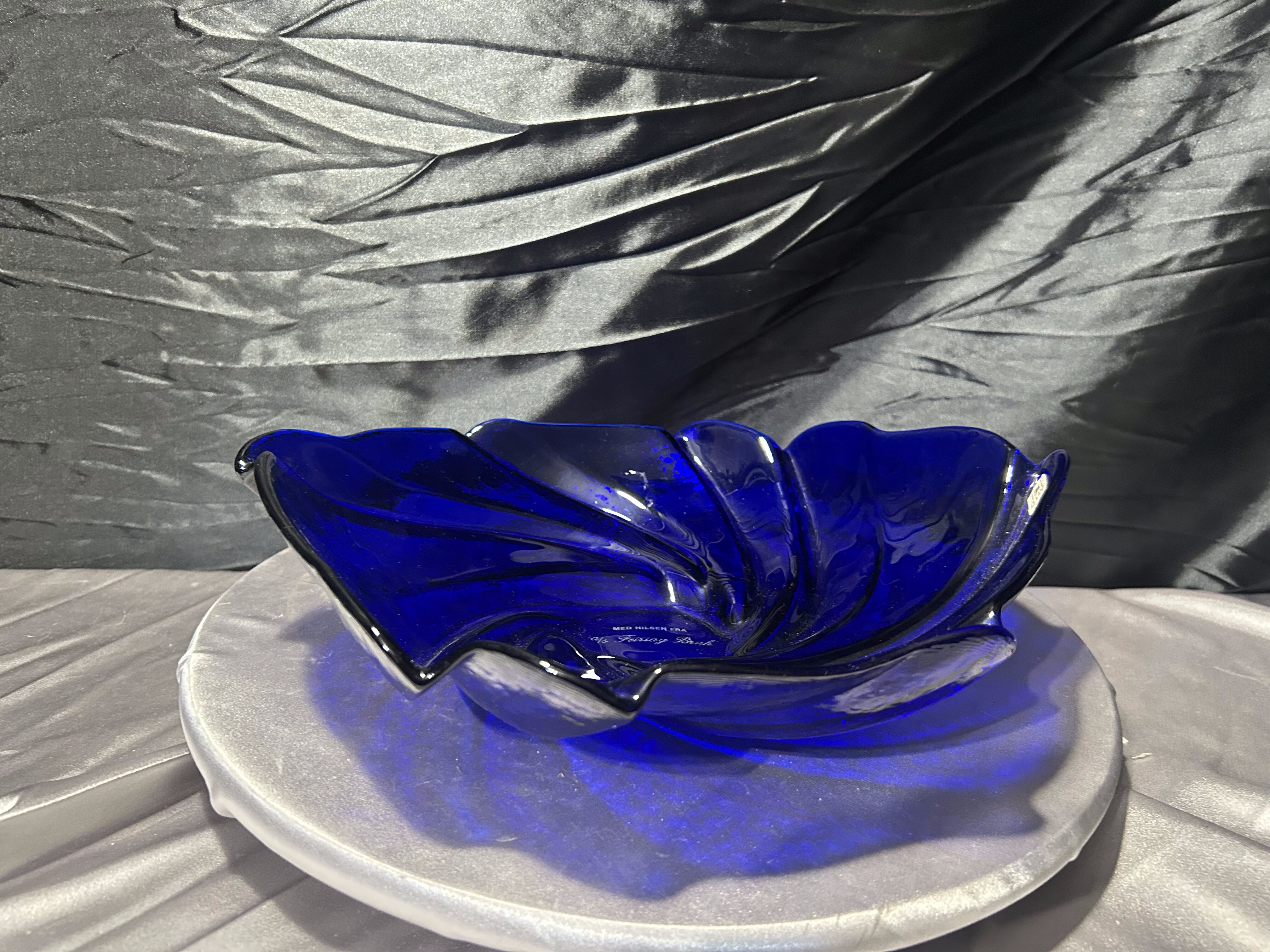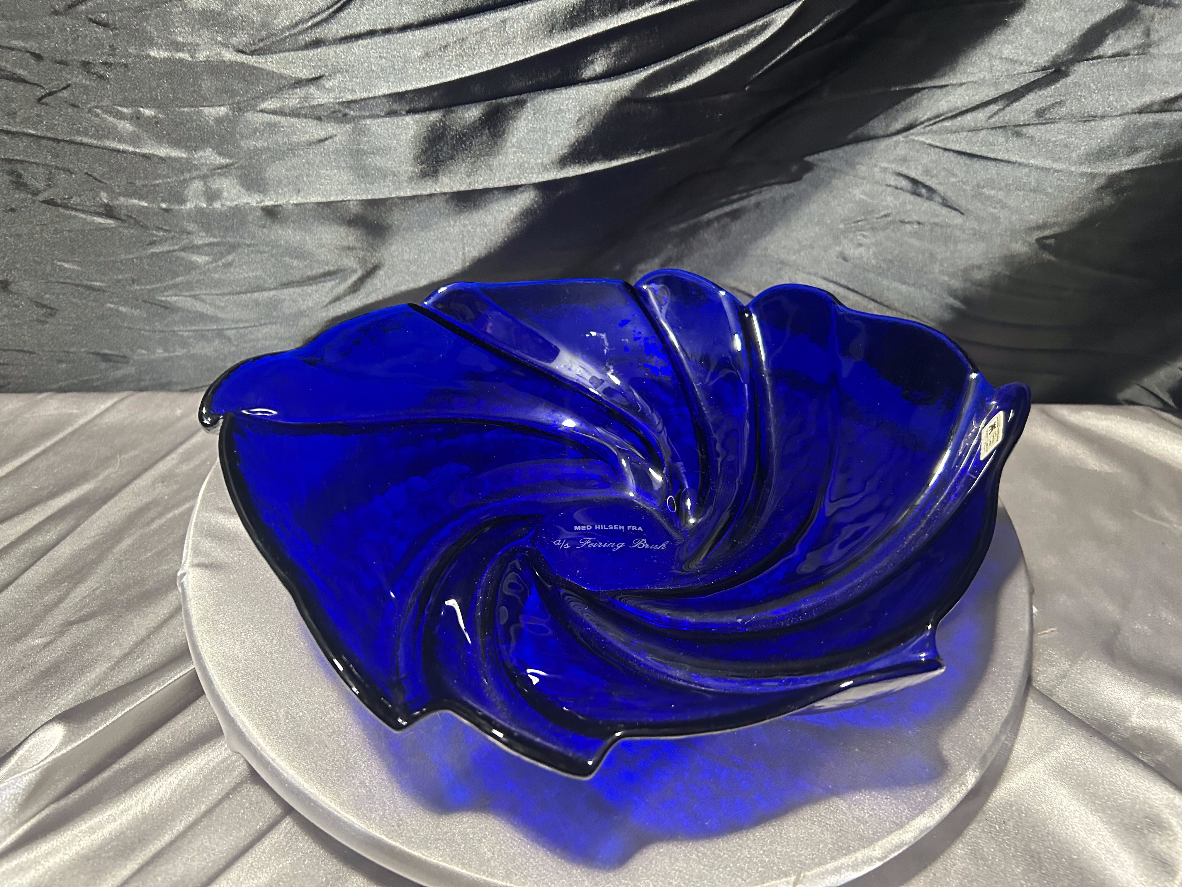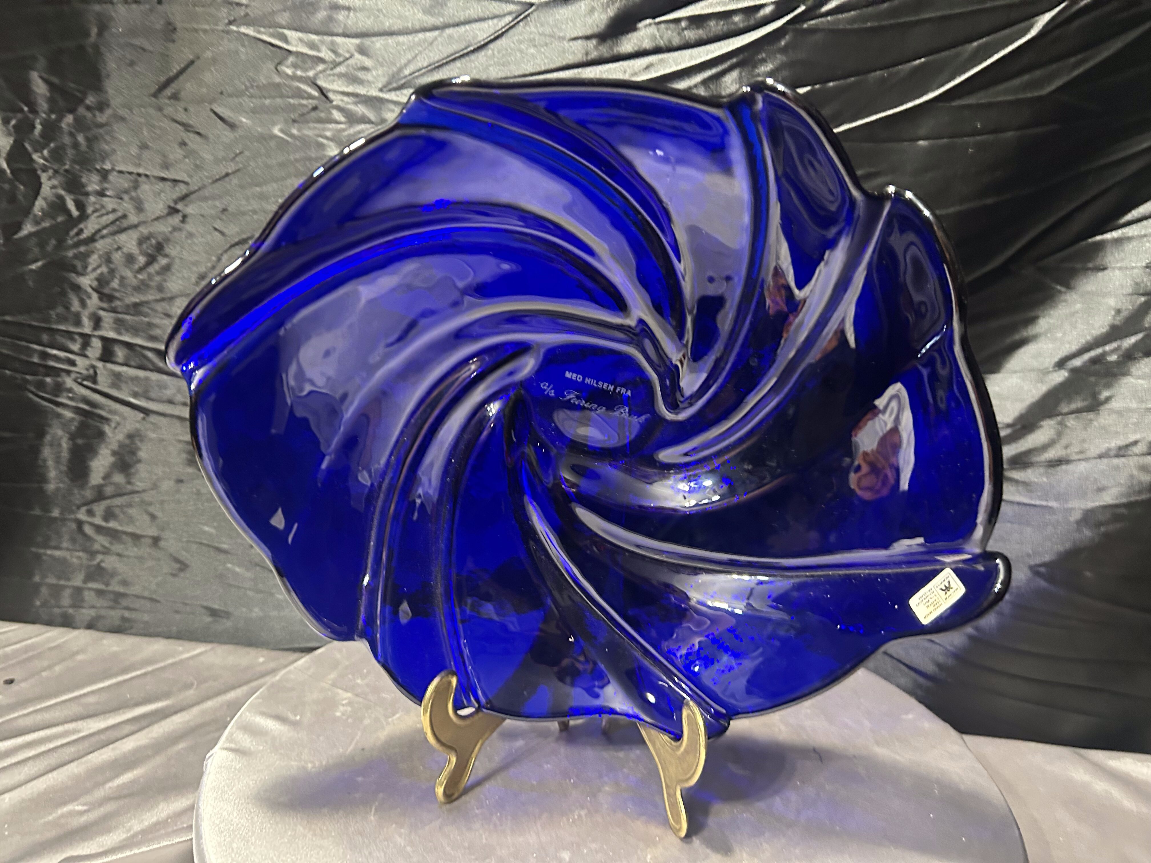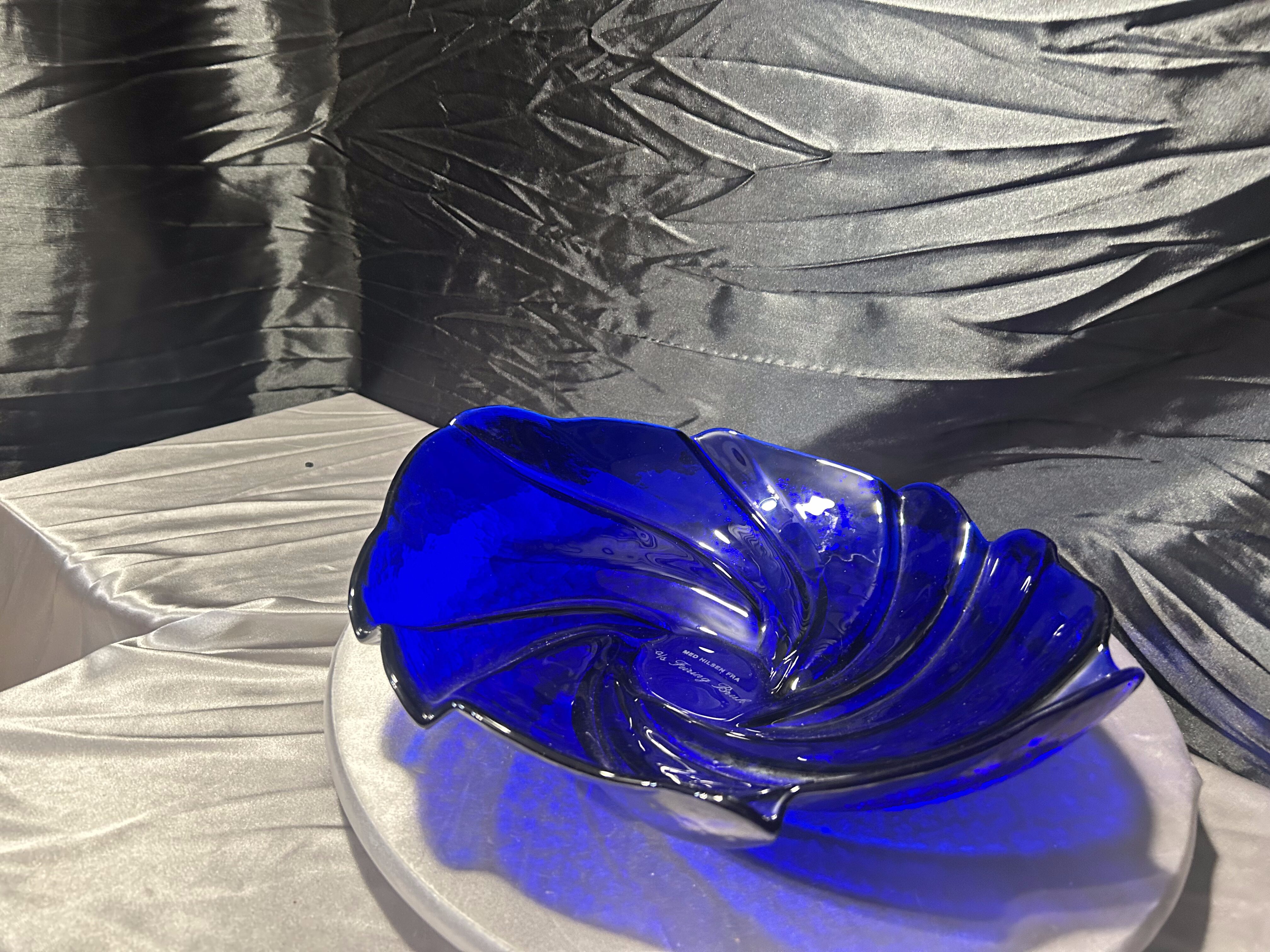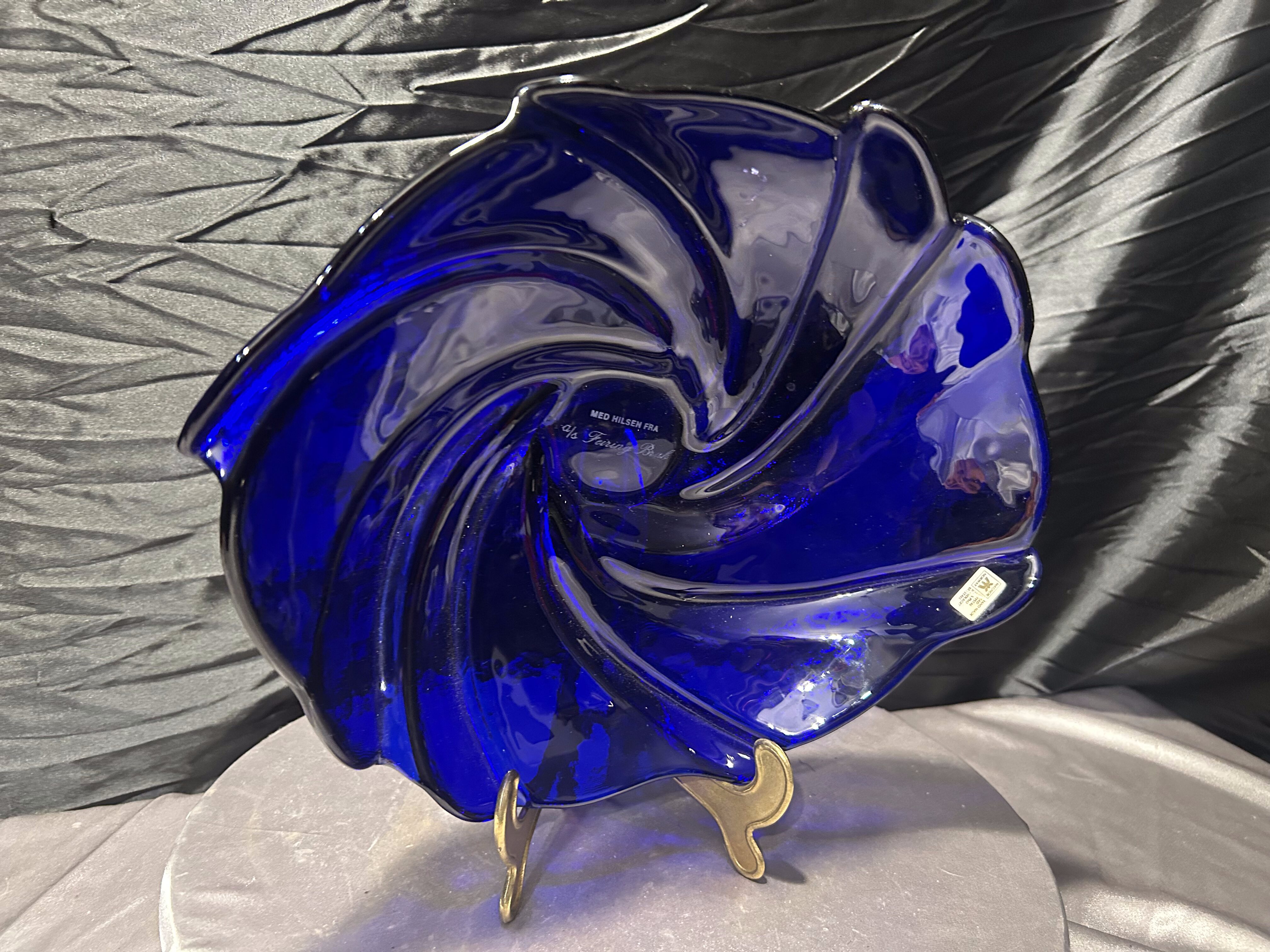 Talerz dekoracyjny Hadeland Glassverk – szkło artystyczne – Norwegia – granatowy
