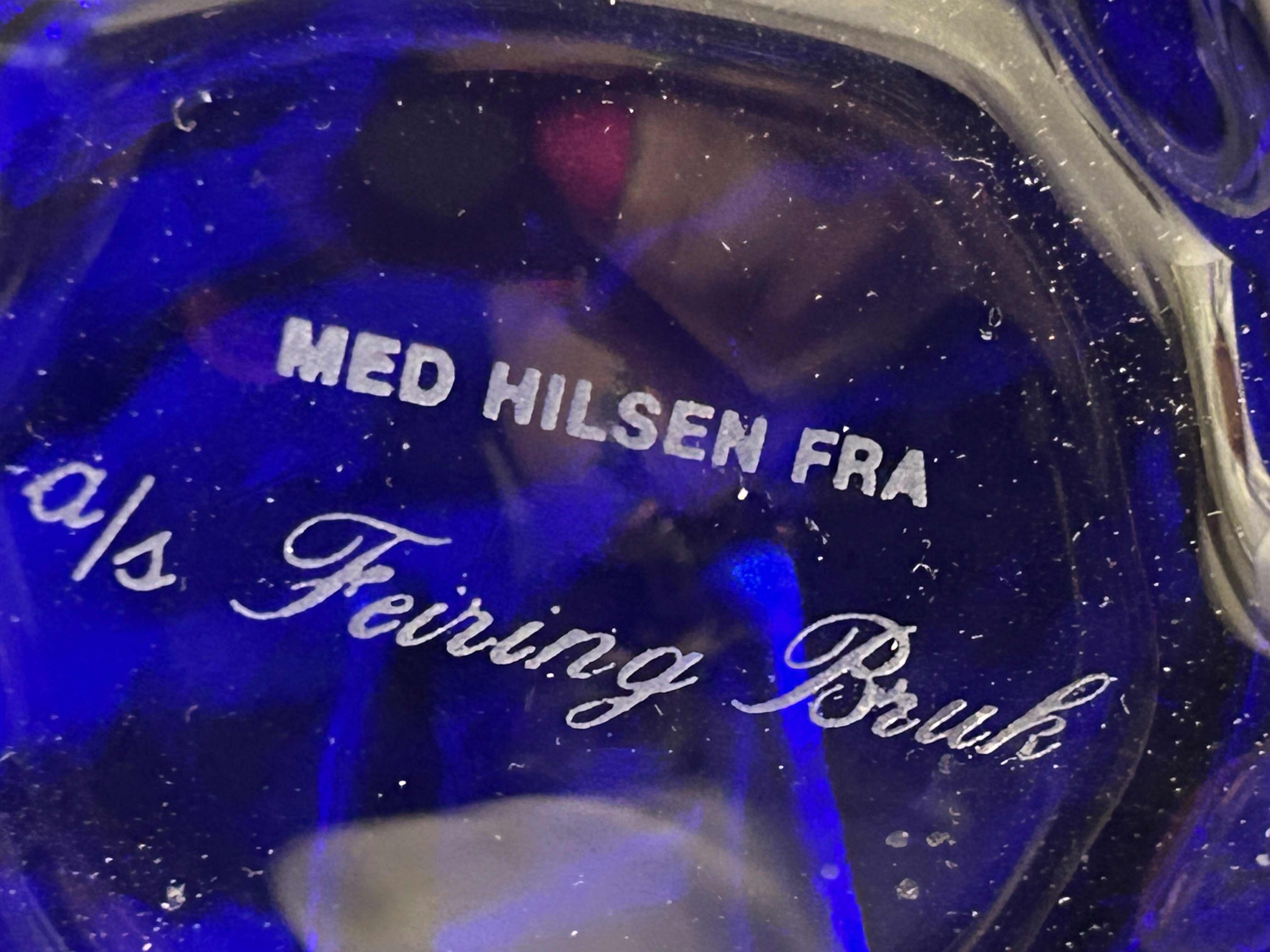 Na spodzie zachowana oryginalna etykieta producenta oraz ręczny napis „Med hilsen fra Feiring Bruk”, wskazujący na pamiątkowy charakter wyrobu, związany z jednym z historycznych miejsc norweskiego przemysłu.