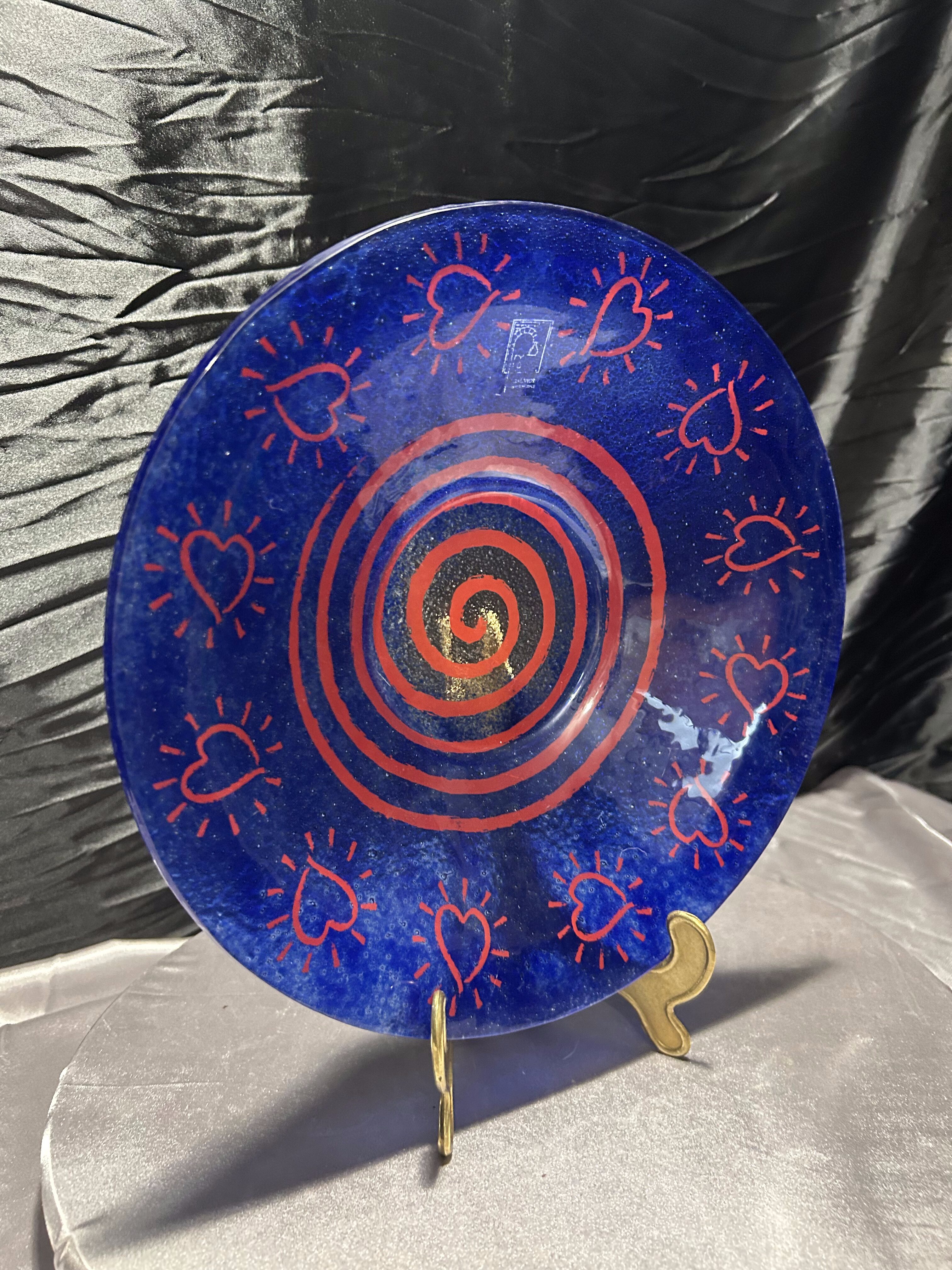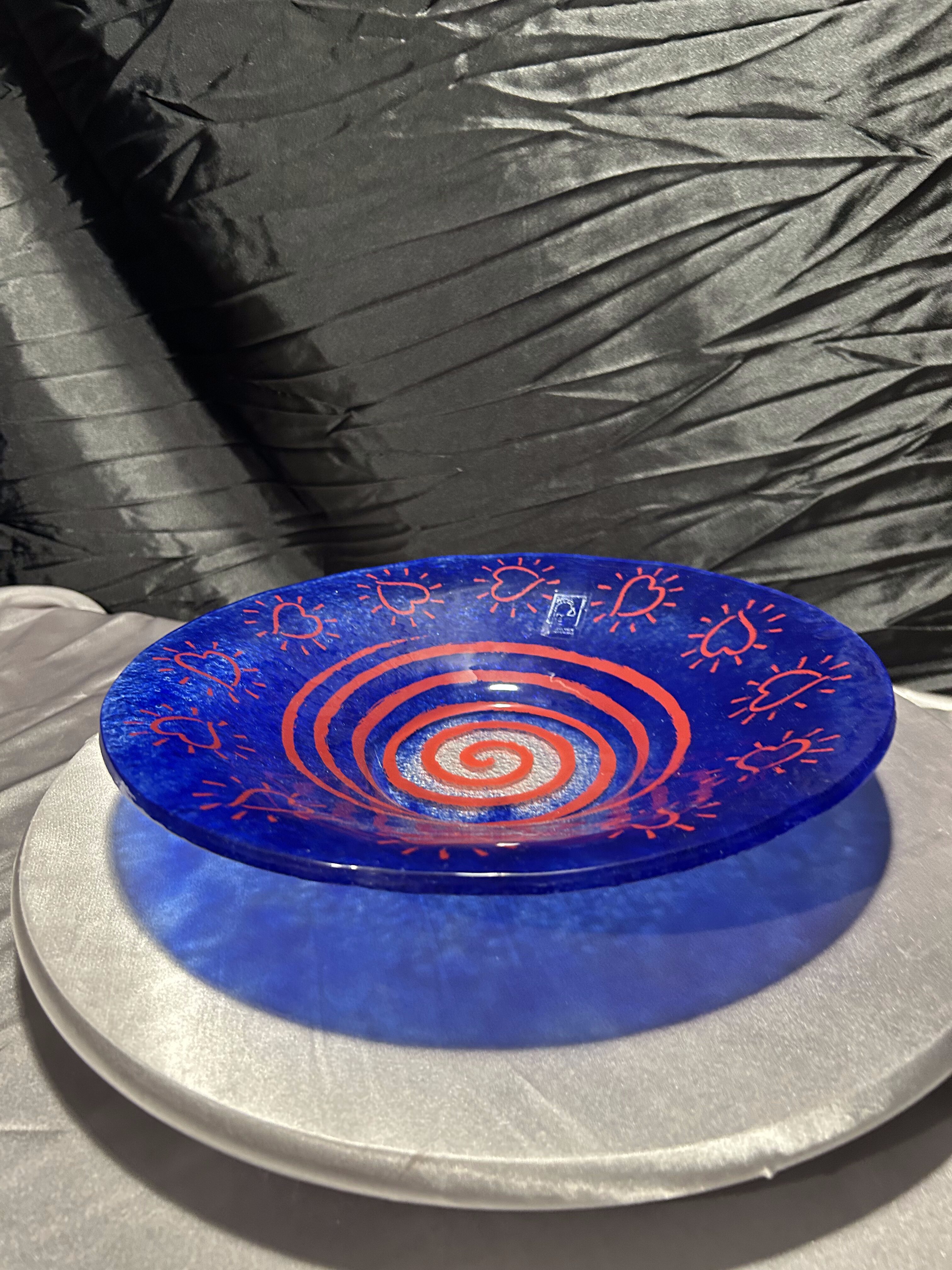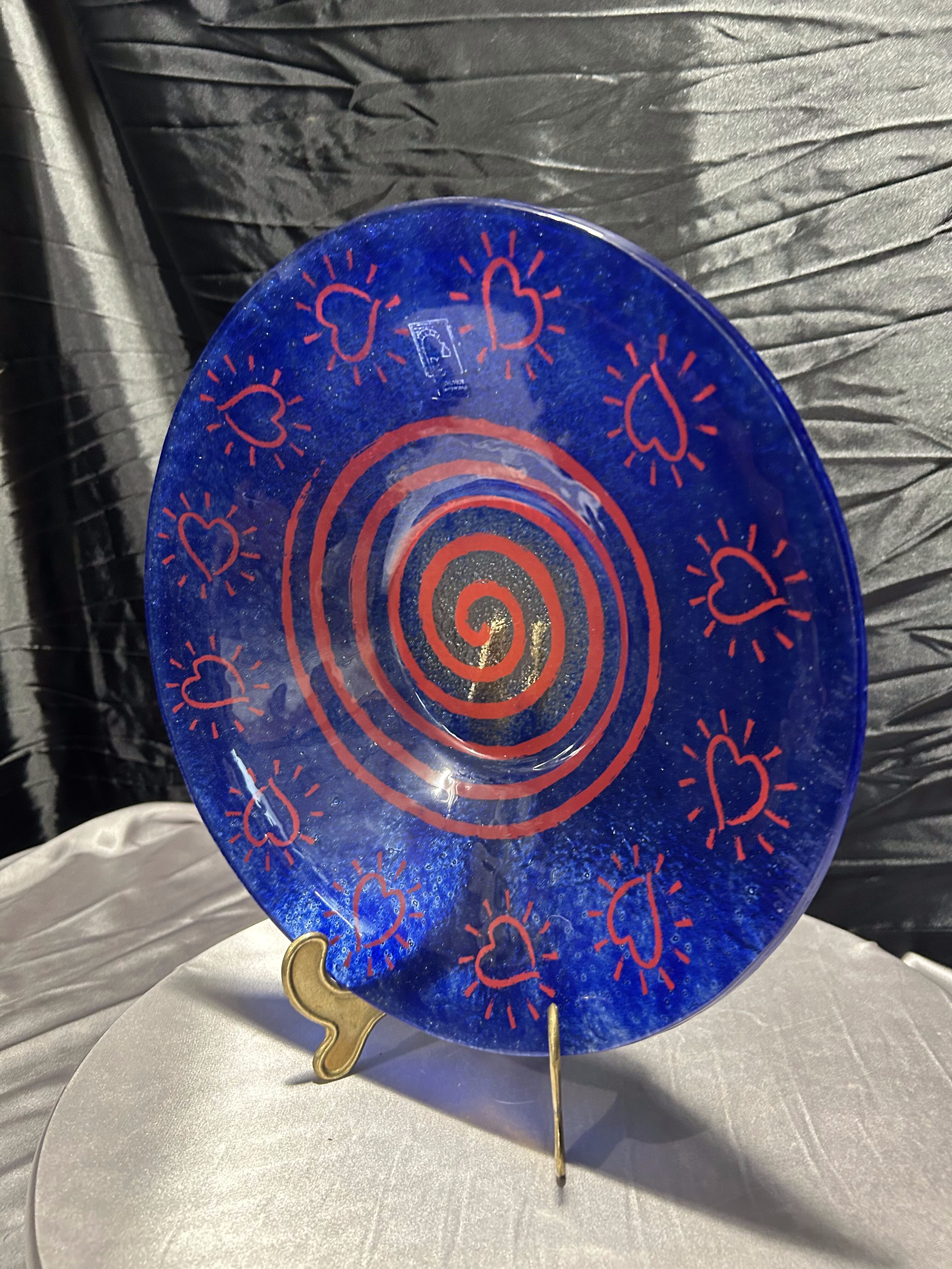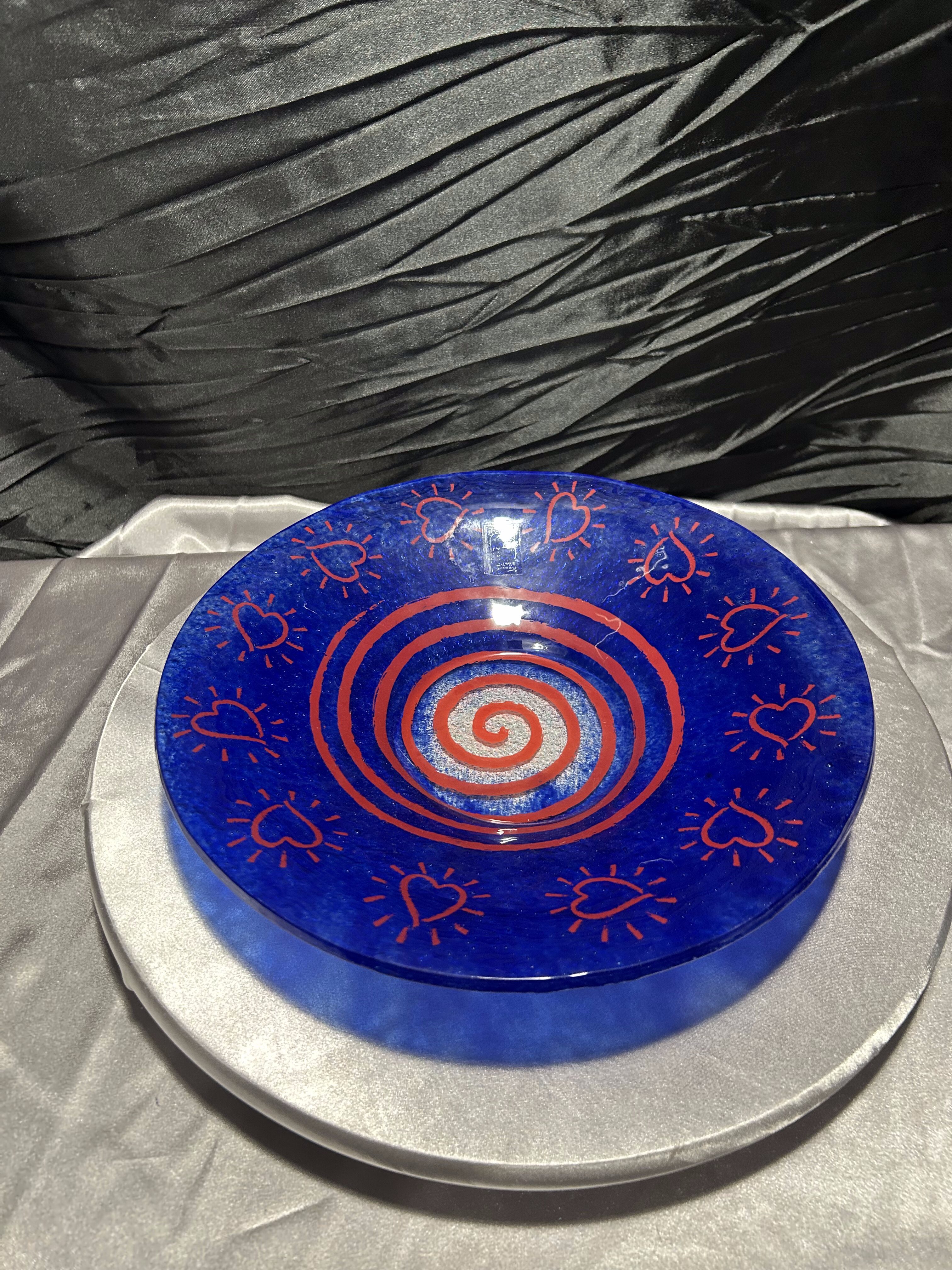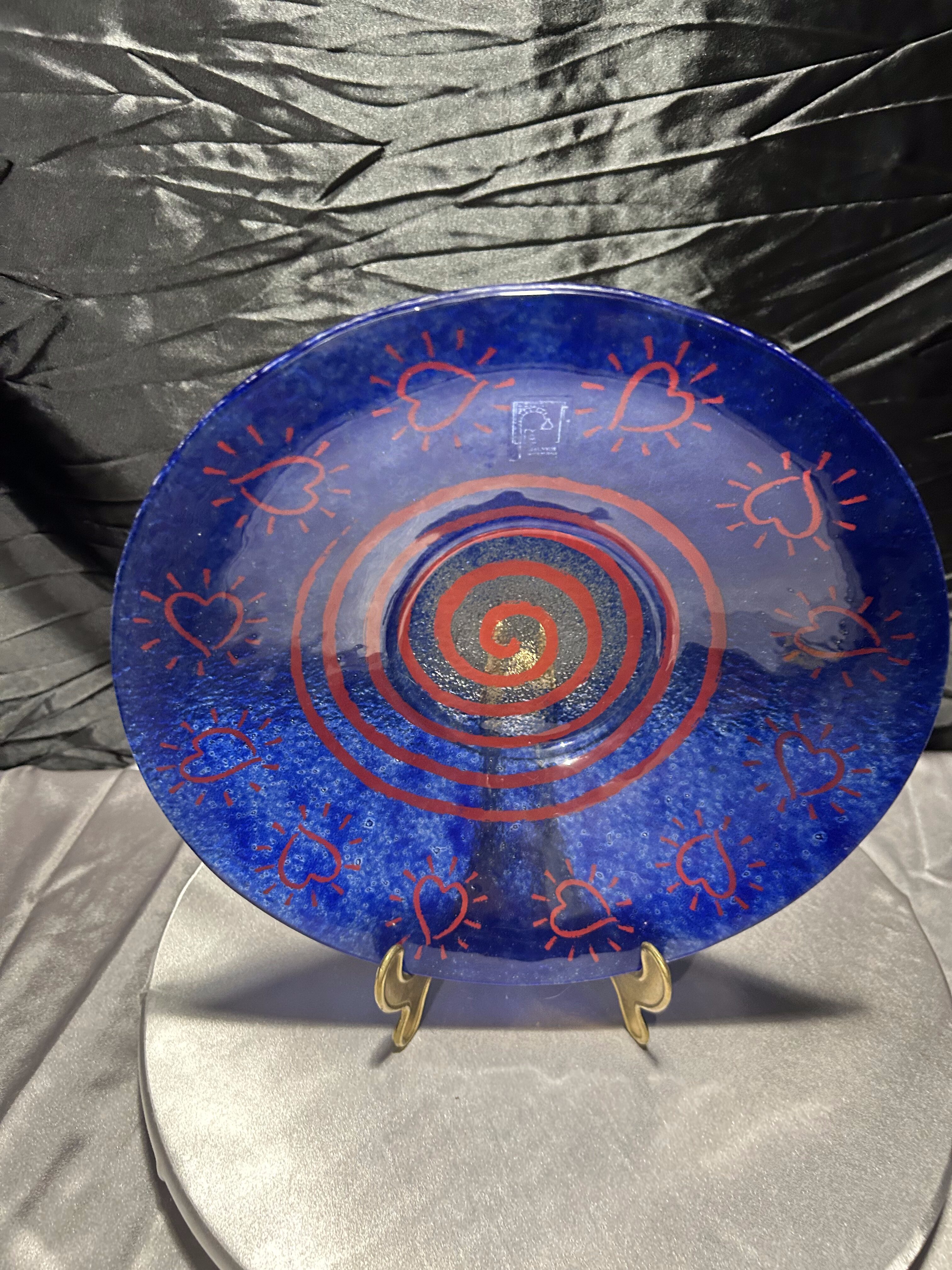 Talerz dekoracyjny Vidrios San Miguel – szkło artystyczne z motywem serc – Hiszpania
