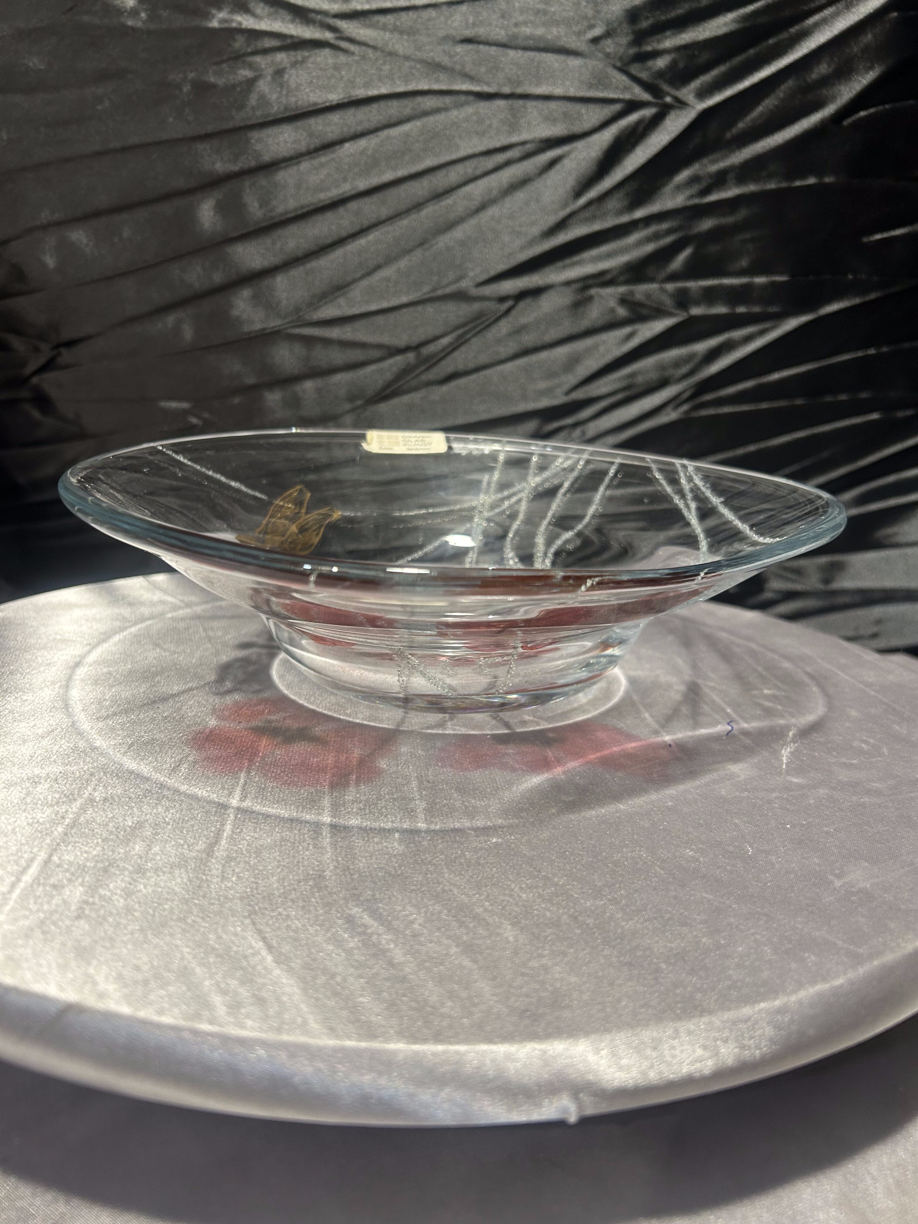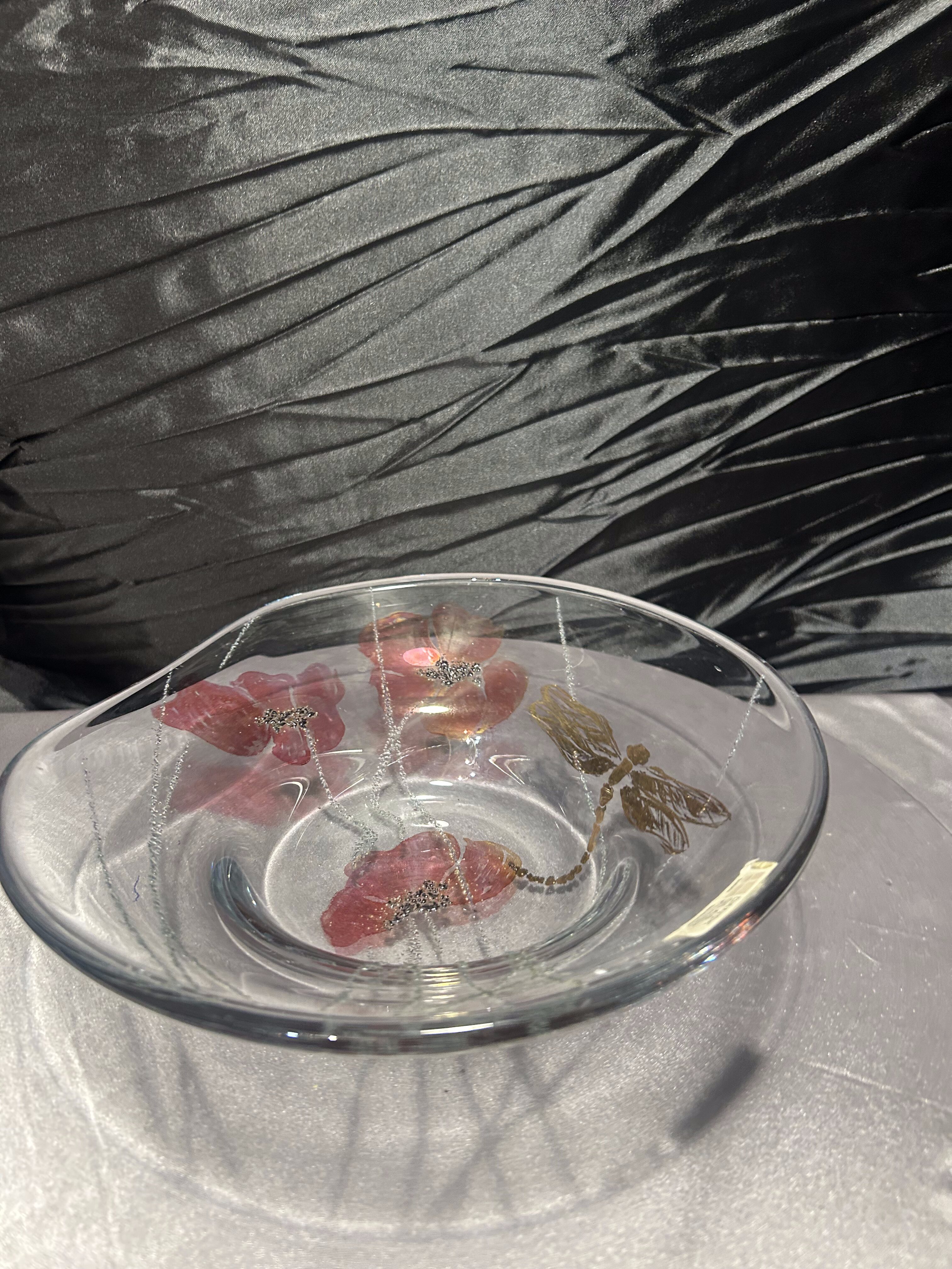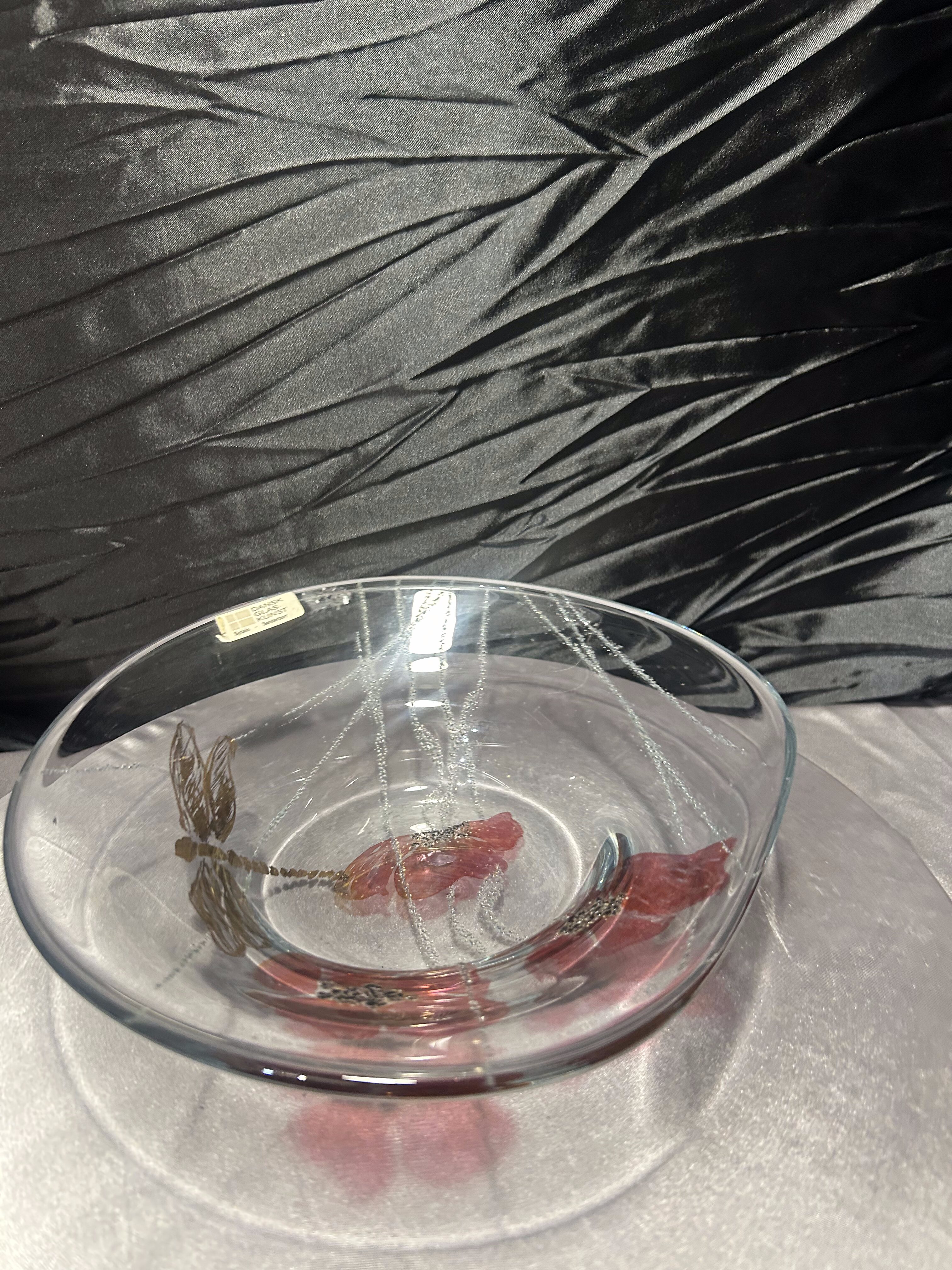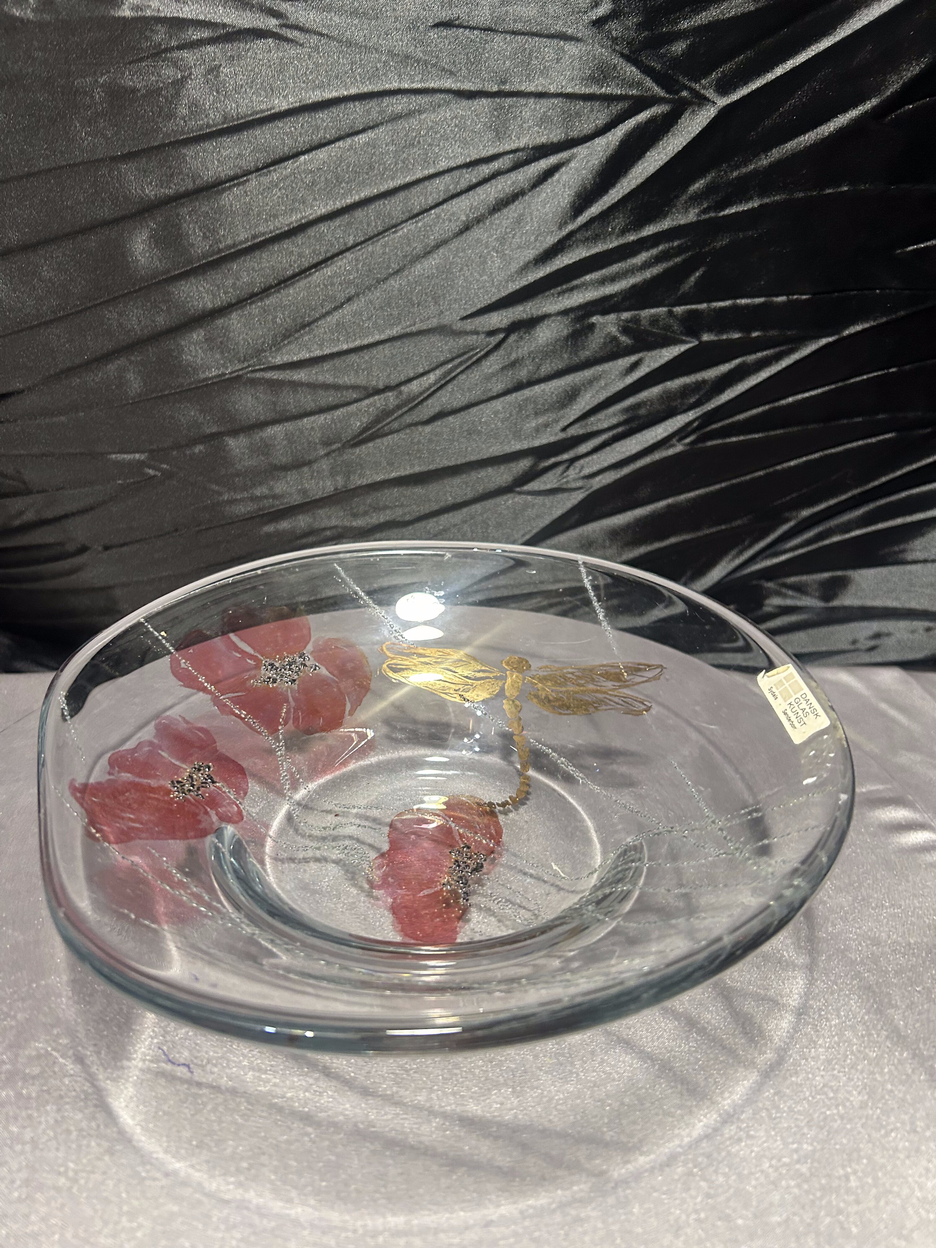 Talerz szklany „Dansk Glas Kunst” – maki i ważka – Ø 25×23 cm – design duński